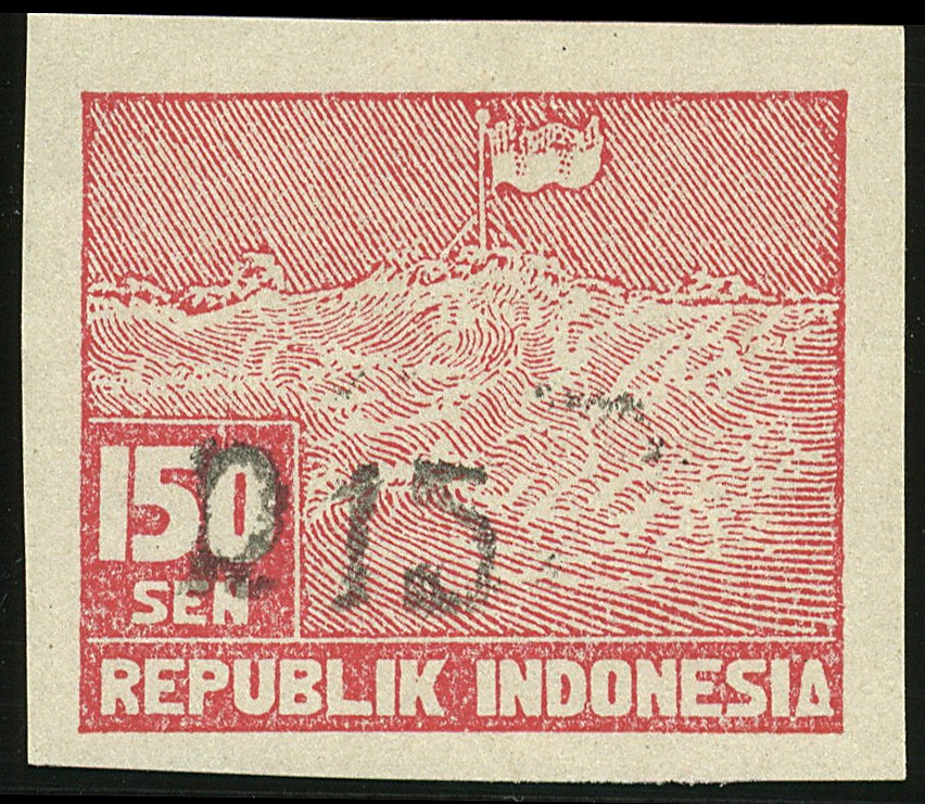 Republik. Sumatra. Commemorative issue of Java and a Sumatra stamp, all with R 15 overprint, nos. 0196 (pair), 0197 and 0198, all unused. € 316