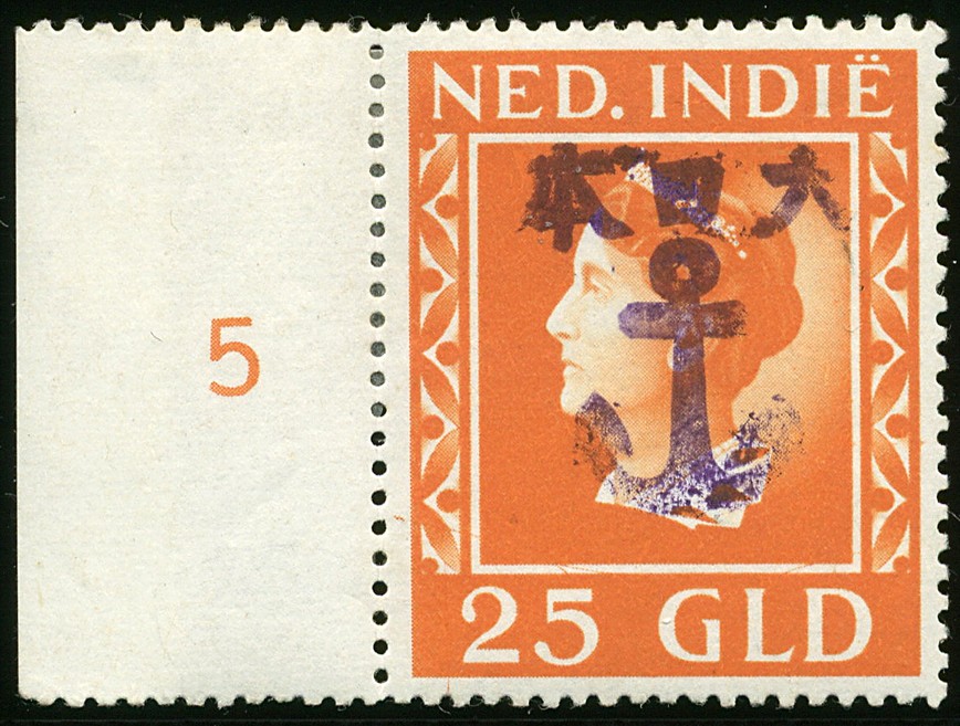 West Borneo. 25 Gulden Van Konijnenburg with violet large Pontianak anchor overprint no. 411v-58, unused with sheet margin. Cert. ´Van Dieten, 2019´. € 675