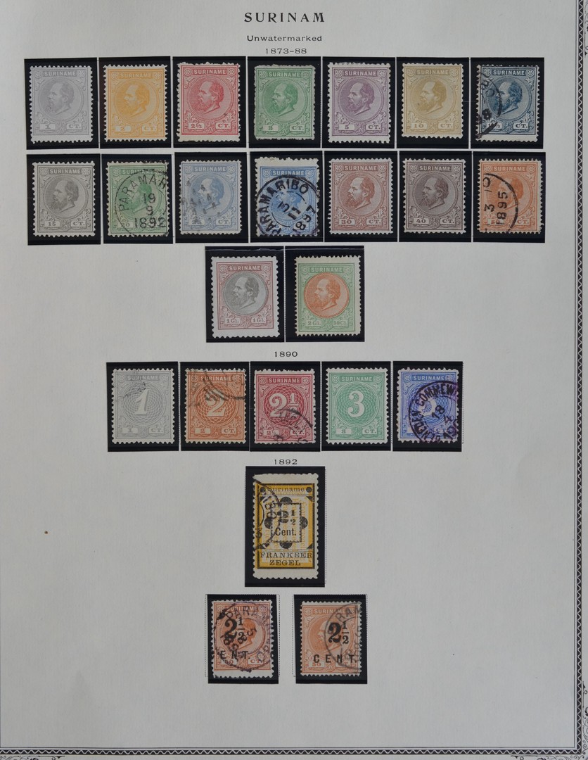 SURINAME 1873-1942, o/*/** verzameling op albumbladen, bevat o.a. 1/15, 37/40, 60/64, 104/10, LP.8/14 Do.x, 15/19, Port 15/16, etc.