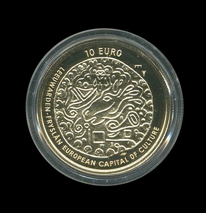 DIVERSEN, wb. Gouden 10 Euro "Leeuwarden Tientje" in cassette, enkele porseleinen Penningen en iets Euro