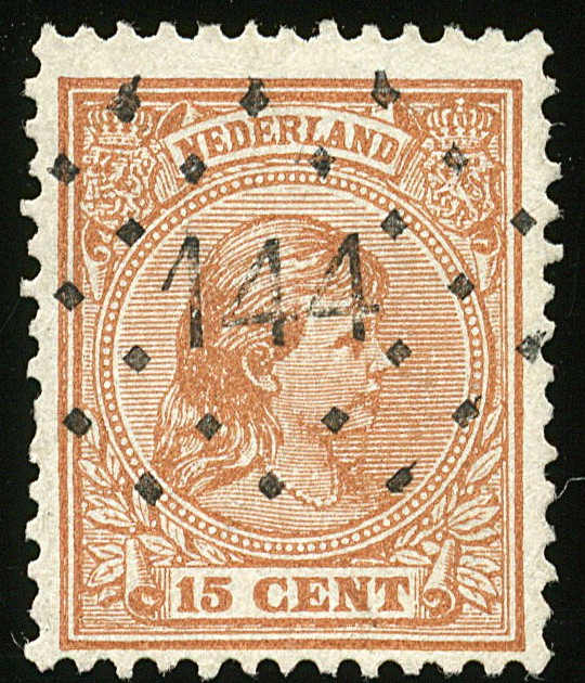144 = Bruinisse op 15 cent nr. 23. Prachtex. met ideale afst. Uitermate zeldzaam en mogelijk uniek op deze zegel!