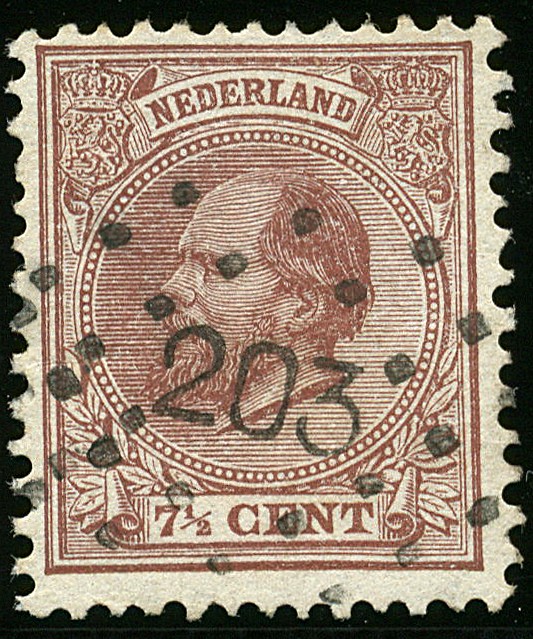 203 = Epe op 7½ cent nr. 20. Zeer fraai ex. (nauwelijks zichtbare hor. vouw) met ideale afst.