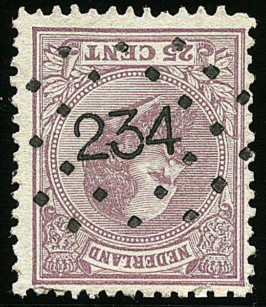 234 = Vlijmen op 25 cent nr. 26. Zeer fraaie zegel (bovenzijde gerepareerd) met vlijmscherpe afst. Cert. NVPH (2009)