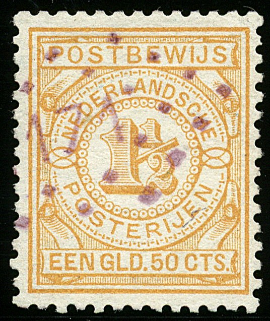 171 = Wijhe op 1½ gulden Postbewijs. Prachtzegel met ideale afst. in violet. Slechts 1 op de 1½ gulden bekend (Jans, p.557)