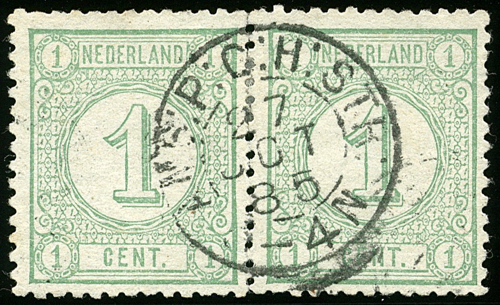 AMS:P:C:H:STR: op 1 cent nr. 31. Prachtpaar met mooie, centrale afst. Schaars. € 100