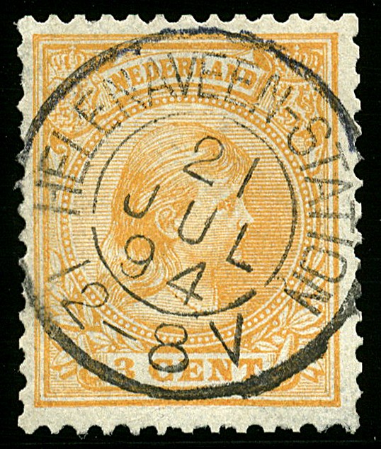 HELENAVEEN-STATION op 3 cent nr. 34. Vrijwel prachtex. met sublieme afdruk van dit schaarse stempel! € 125+