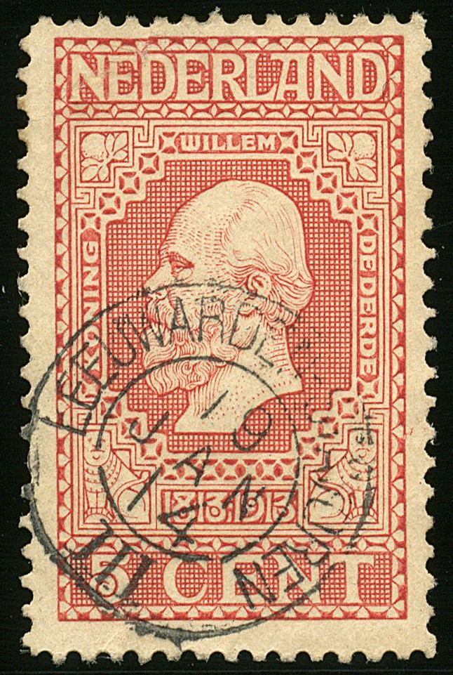 LEEUWARDEN-STAVOREN op 5 cent Jub. 1913. Vrijwel prachtzegel met volledige afst.