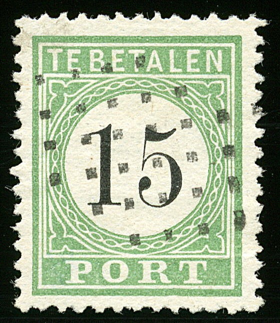 Blind Puntstempel op 15 cent Port P5 type II. Zeldzaam