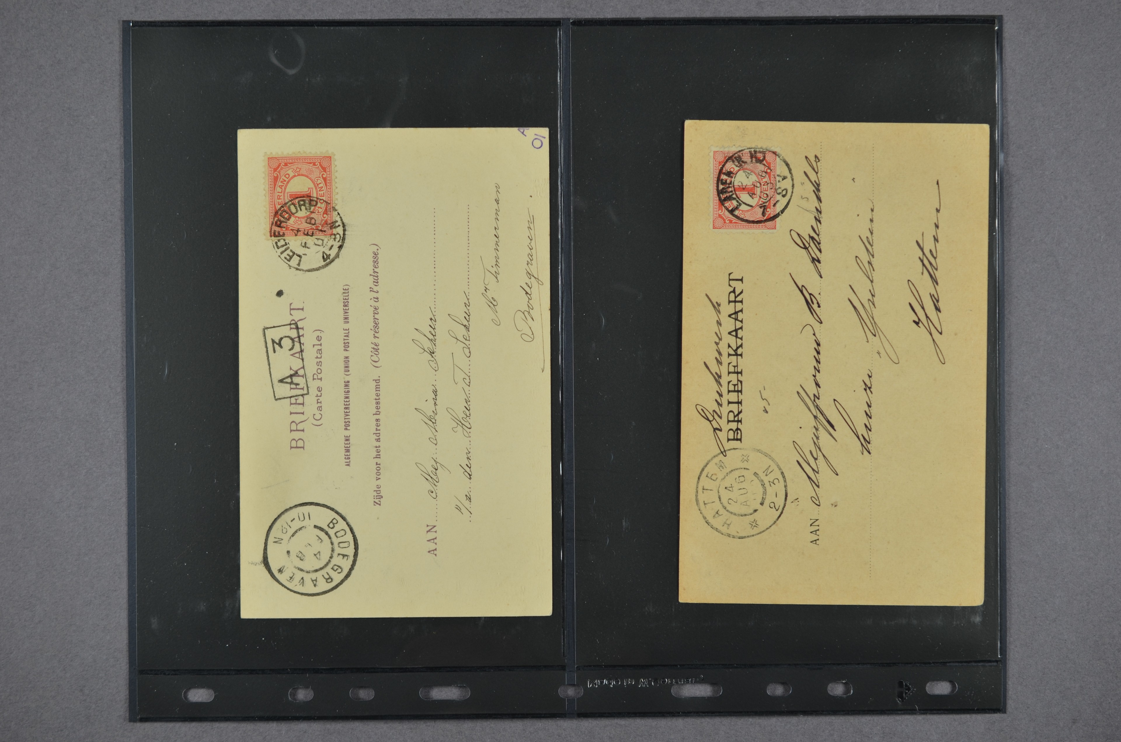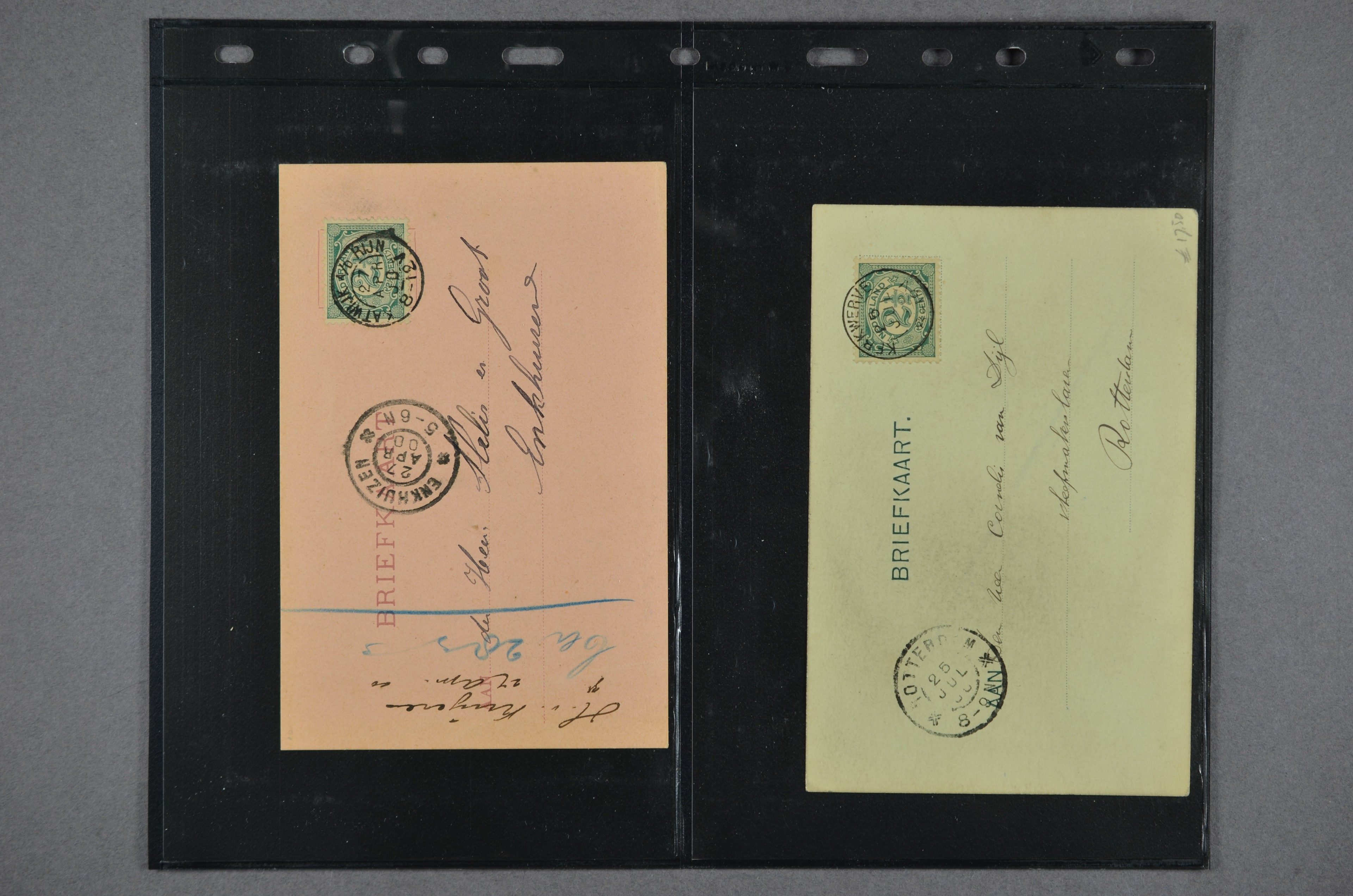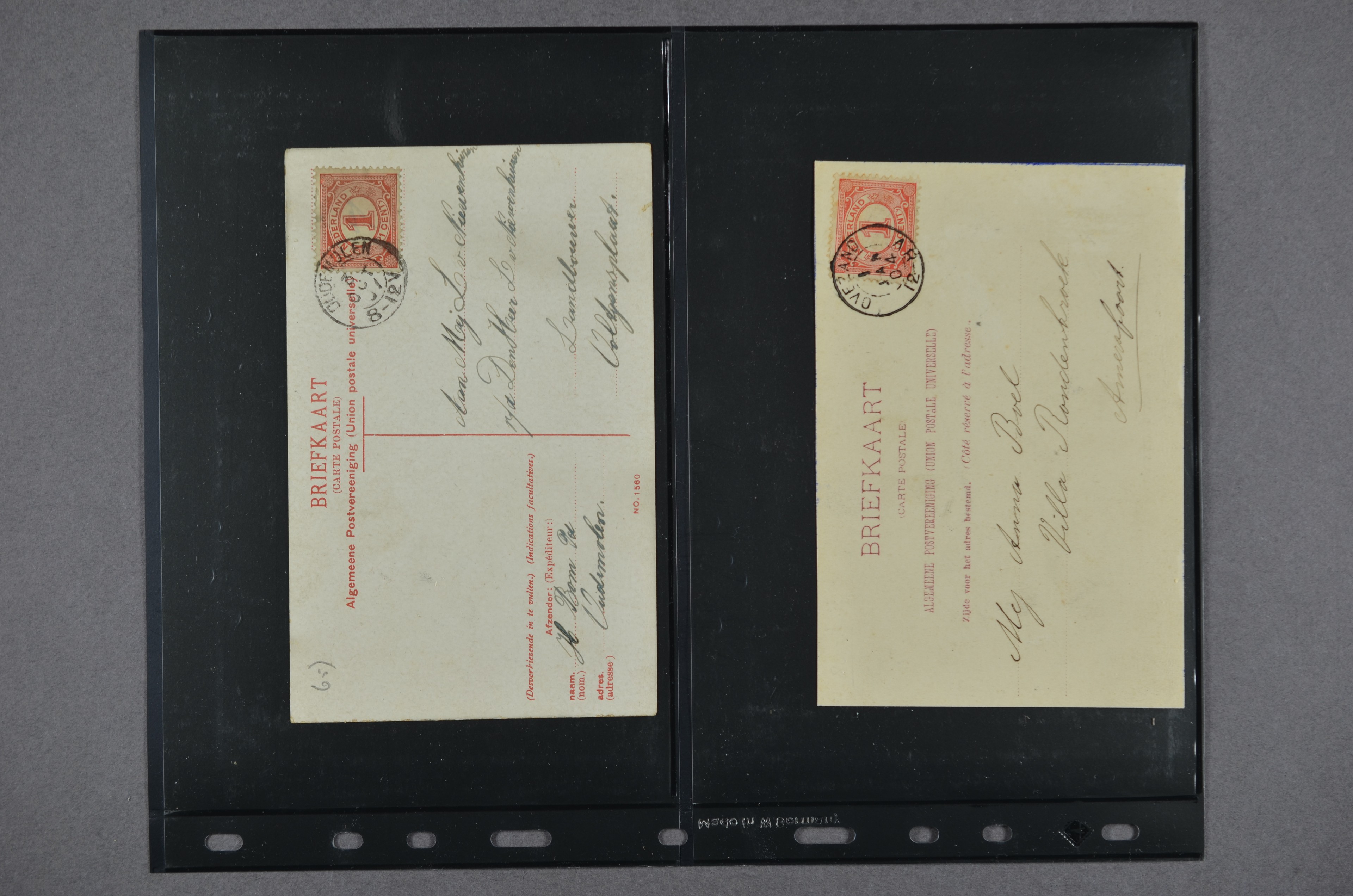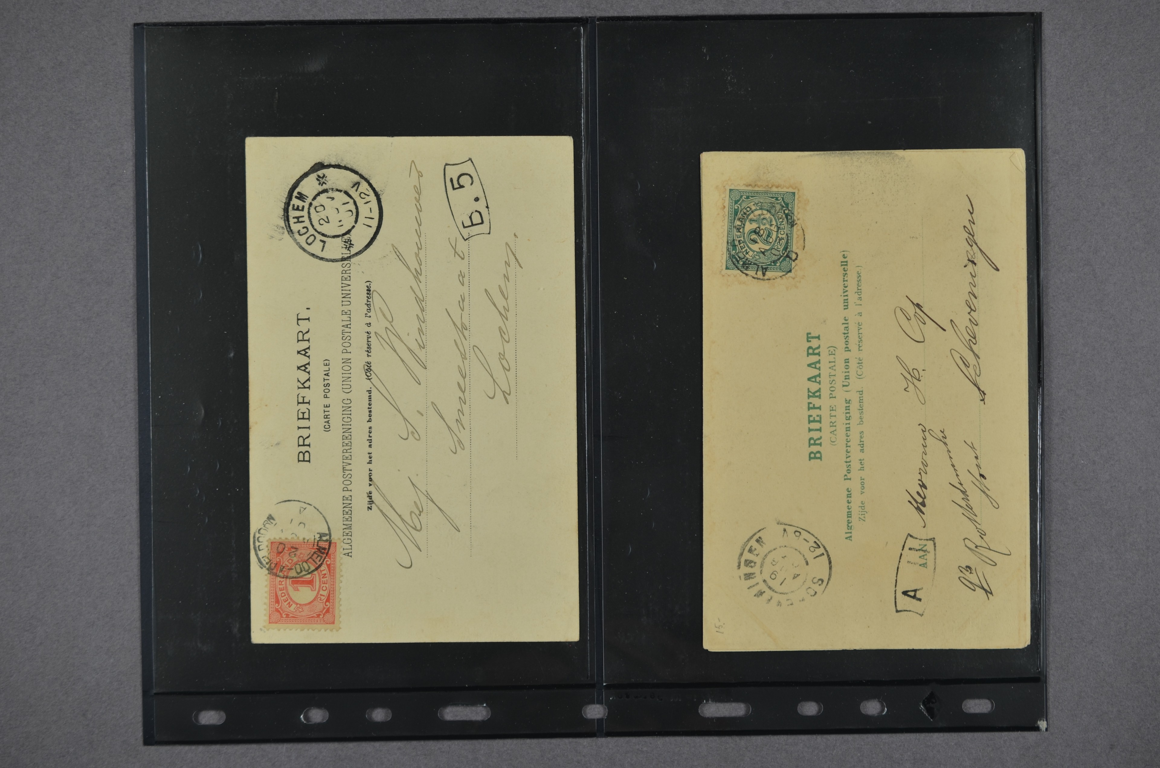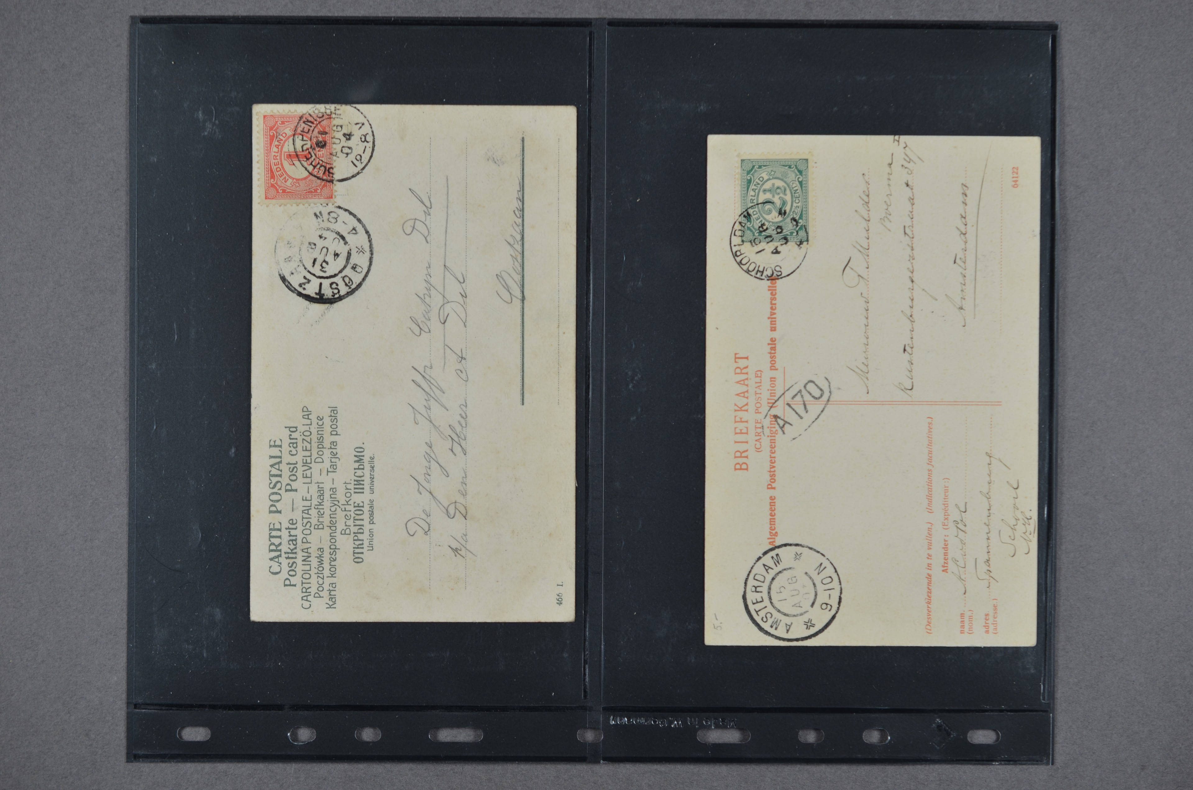 KLEINROND OP POSTSTUK, collectie van ruim 450 poststukken w.o. veel prentbriefkaarten, allemaal met kleinrondstempels van post-, hulppost- (merendeels) en bijpostkantoren, ook van spoorwegtrajecten, stations, Kamp bij Rijen (meerdere ex.), Amsterdam E, diverse schaarse stempels, enige doubletten, veel prachtige afstempelingen, enkele in blauw of violet, in 2 Leuchtturm-ringbanden. Prachtobject voor de handel of verzamelaar om op te zetten