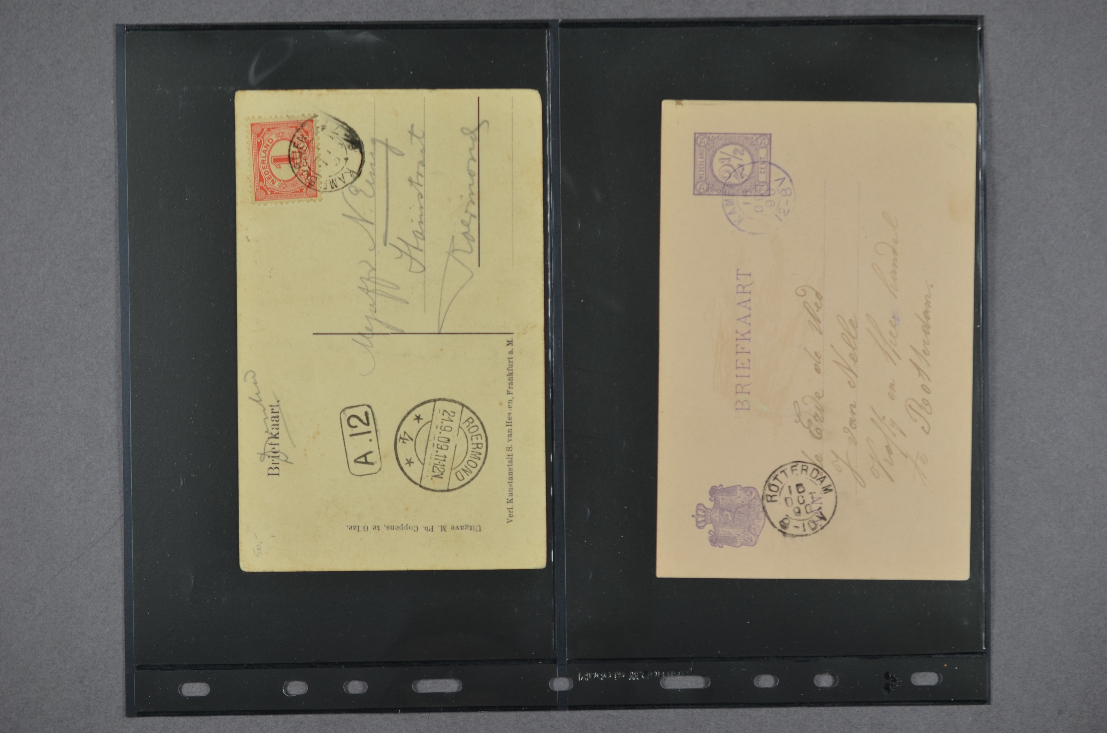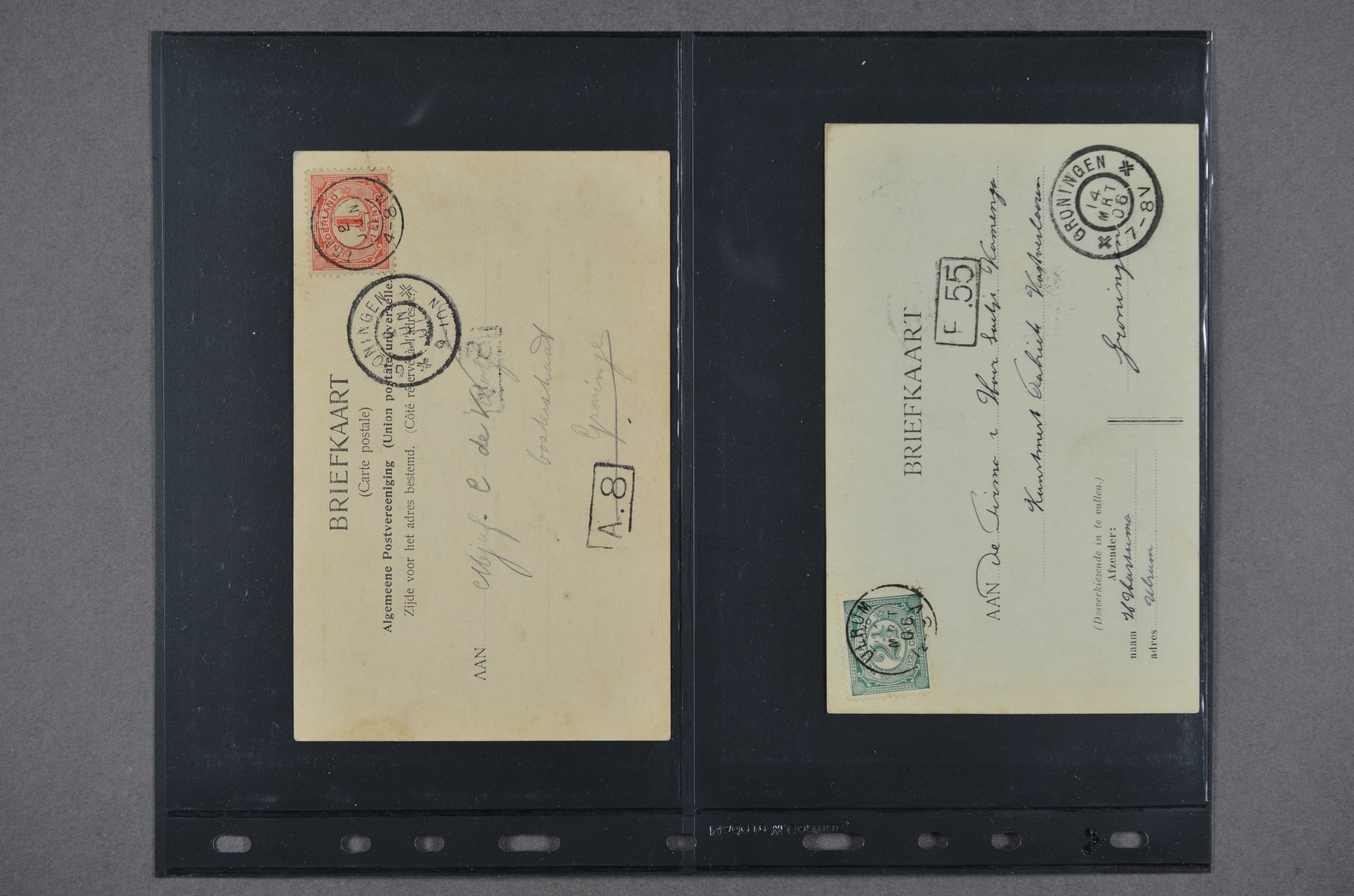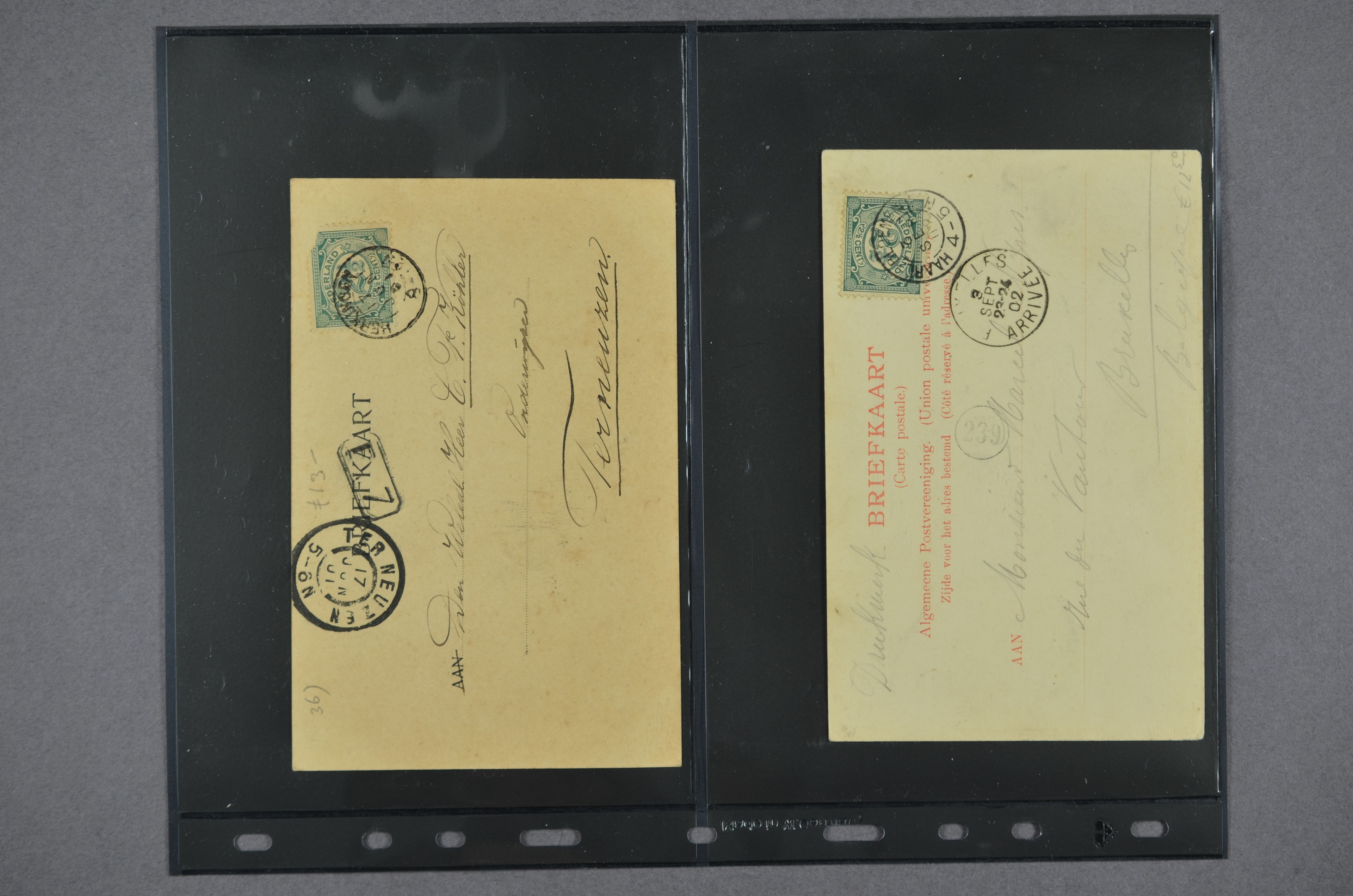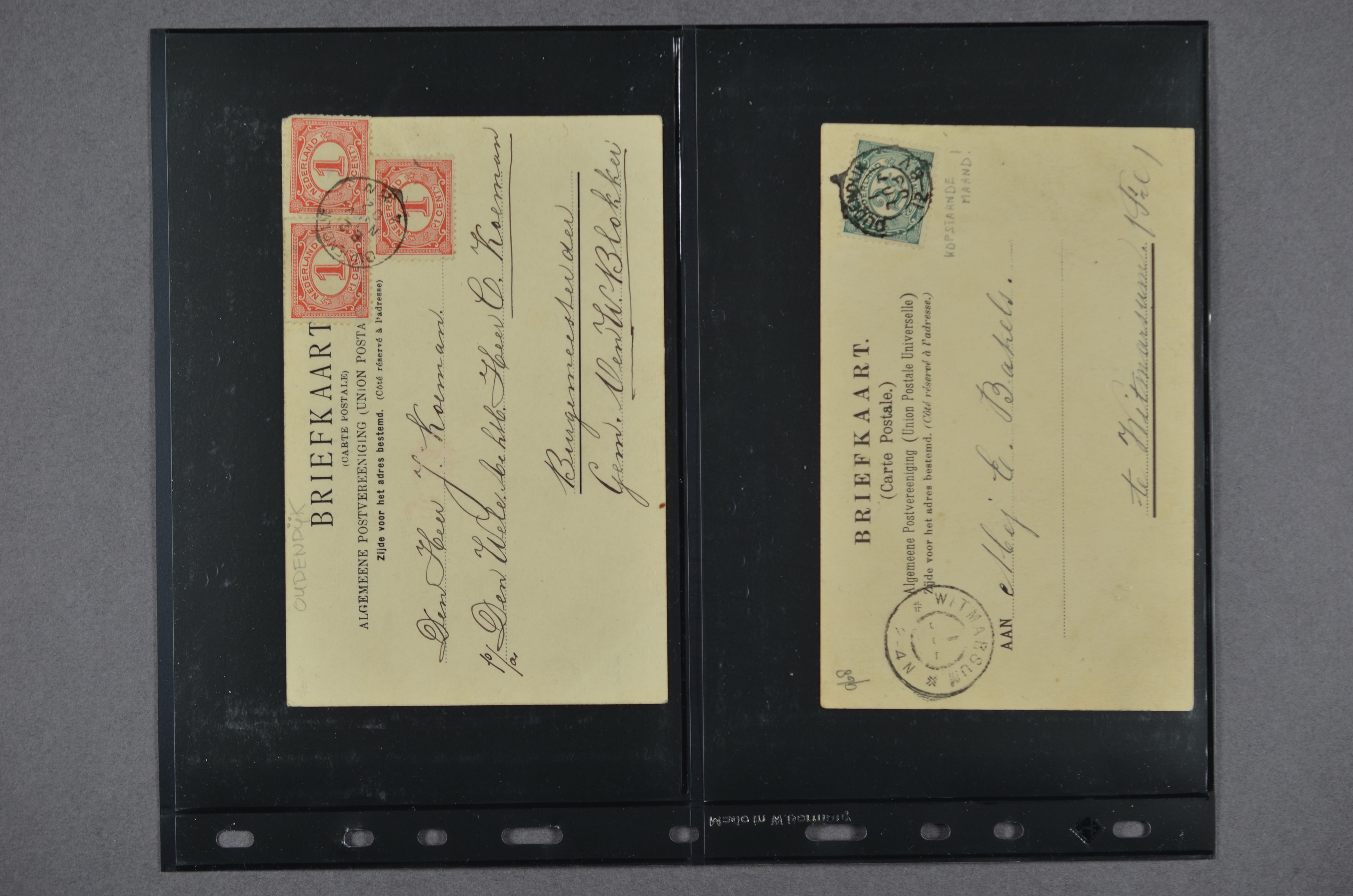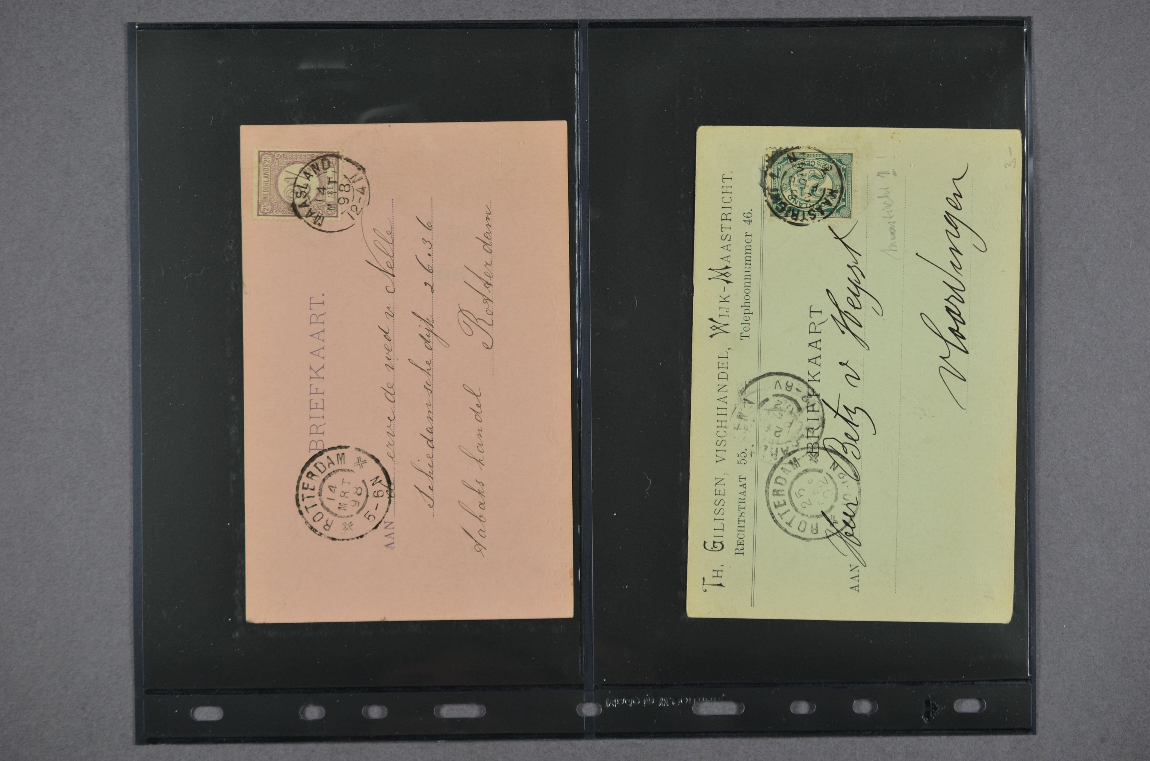 KLEINROND OP POSTSTUK, collectie van ruim 450 poststukken w.o. veel prentbriefkaarten, allemaal met kleinrondstempels van post-, hulppost- (merendeels) en bijpostkantoren, ook van spoorwegtrajecten, stations, Kamp bij Rijen (meerdere ex.), Amsterdam E, diverse schaarse stempels, enige doubletten, veel prachtige afstempelingen, enkele in blauw of violet, in 2 Leuchtturm-ringbanden. Prachtobject voor de handel of verzamelaar om op te zetten