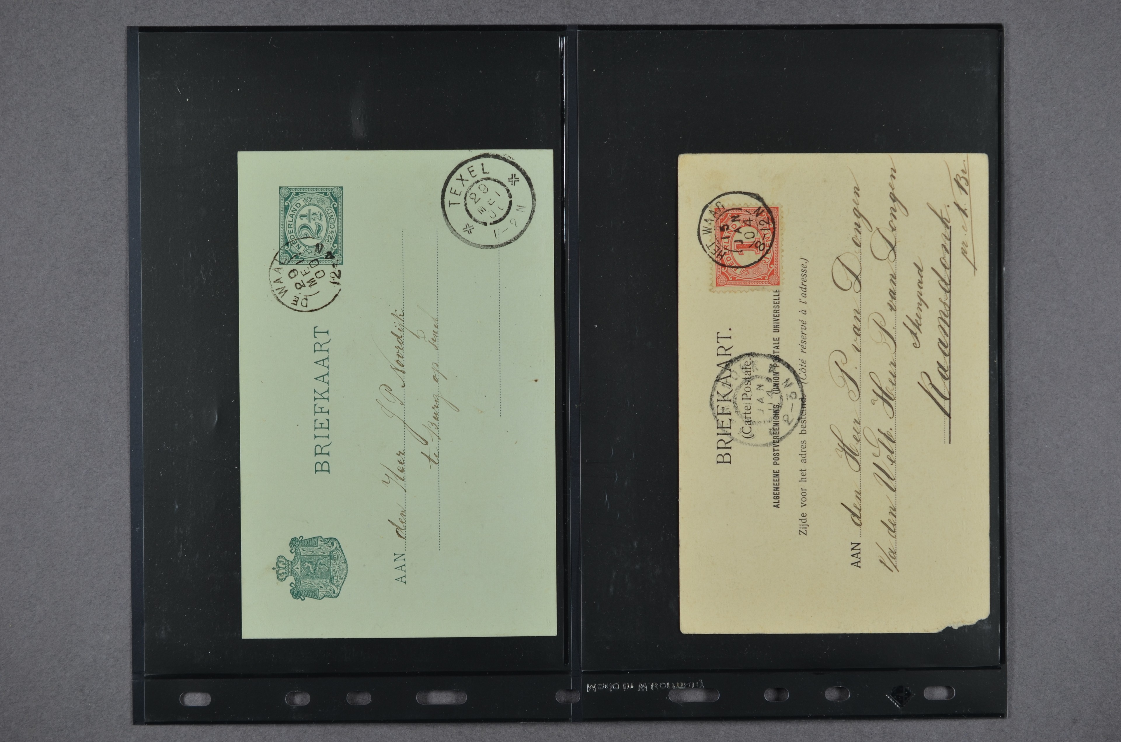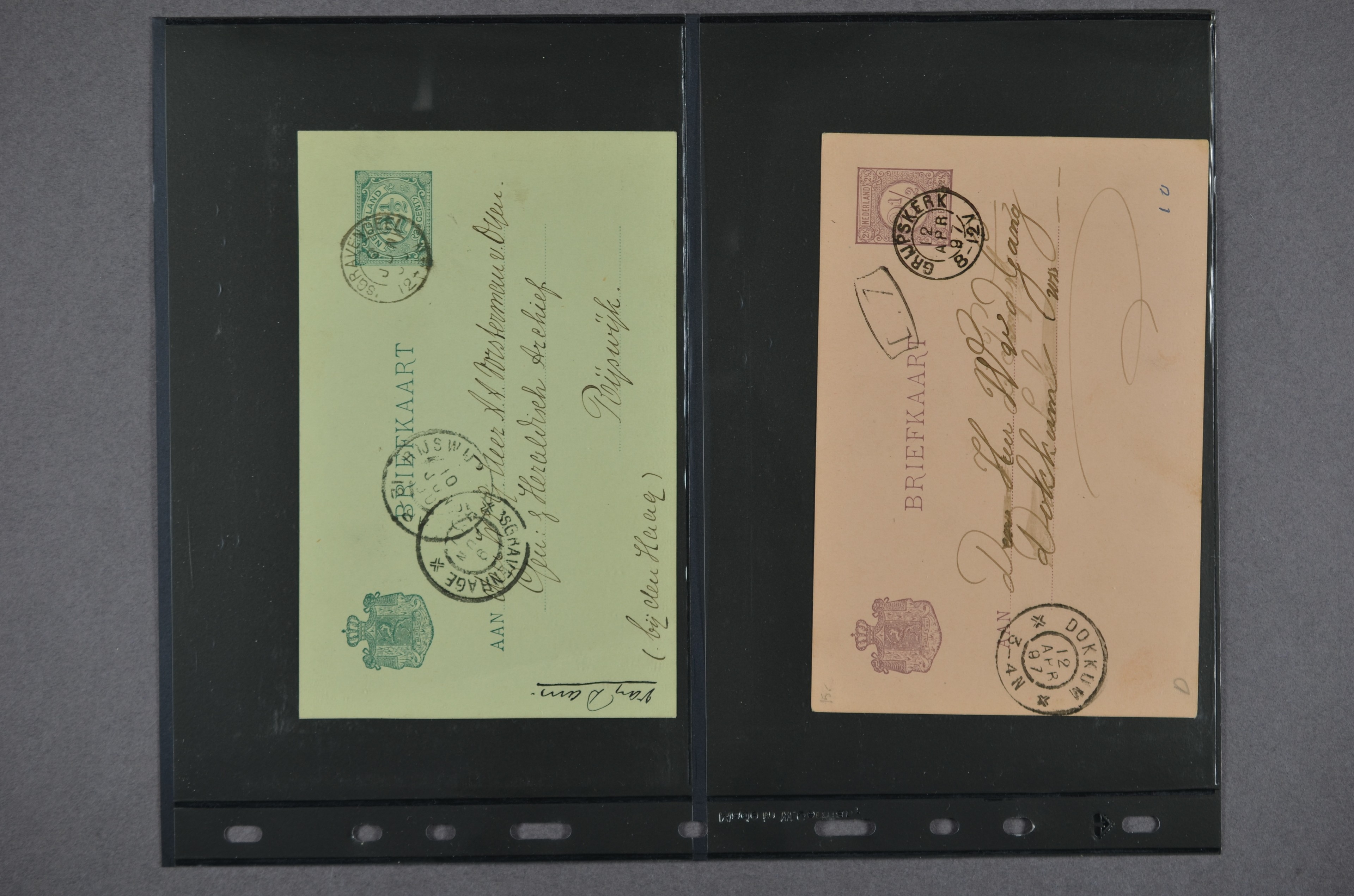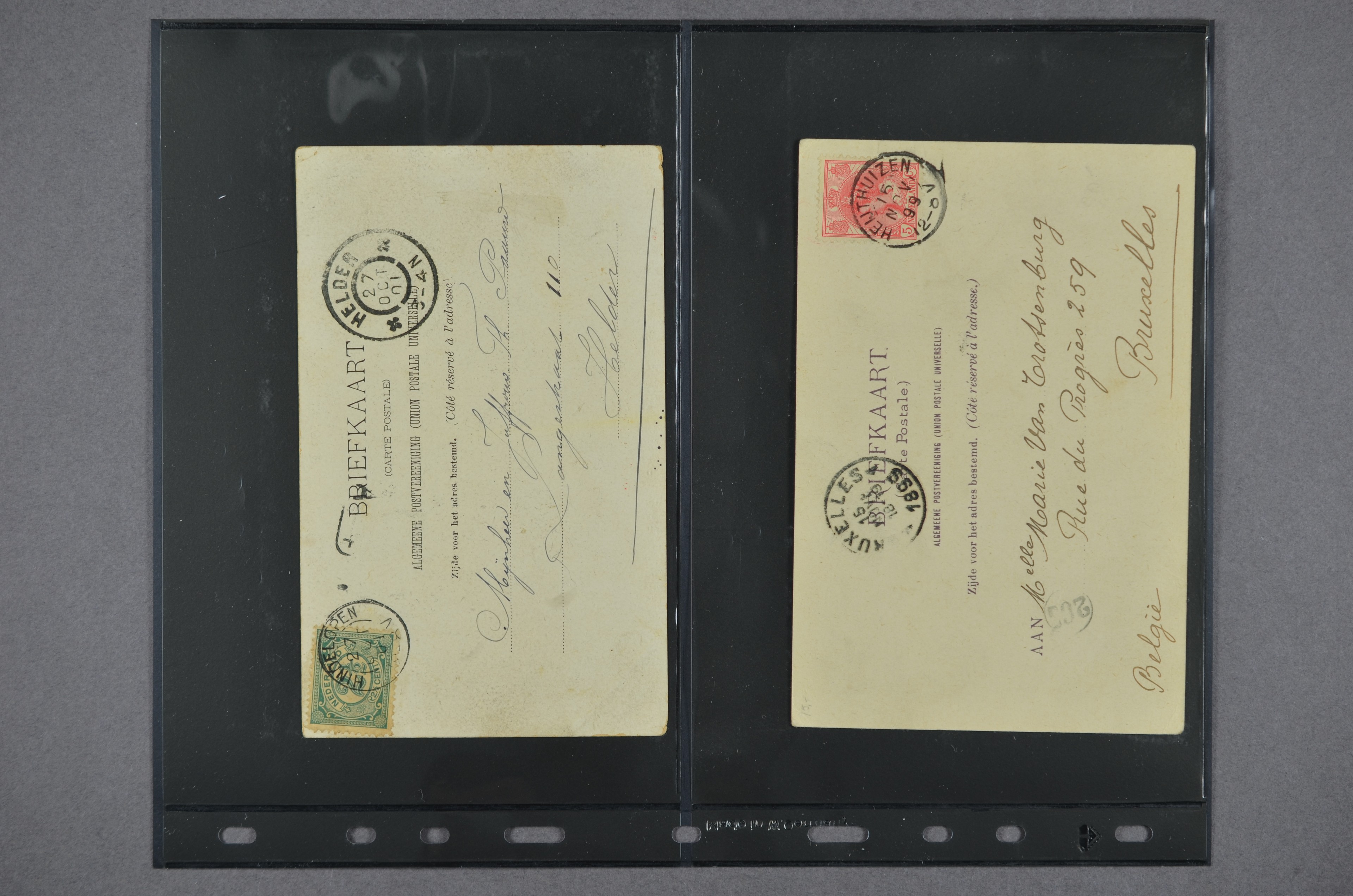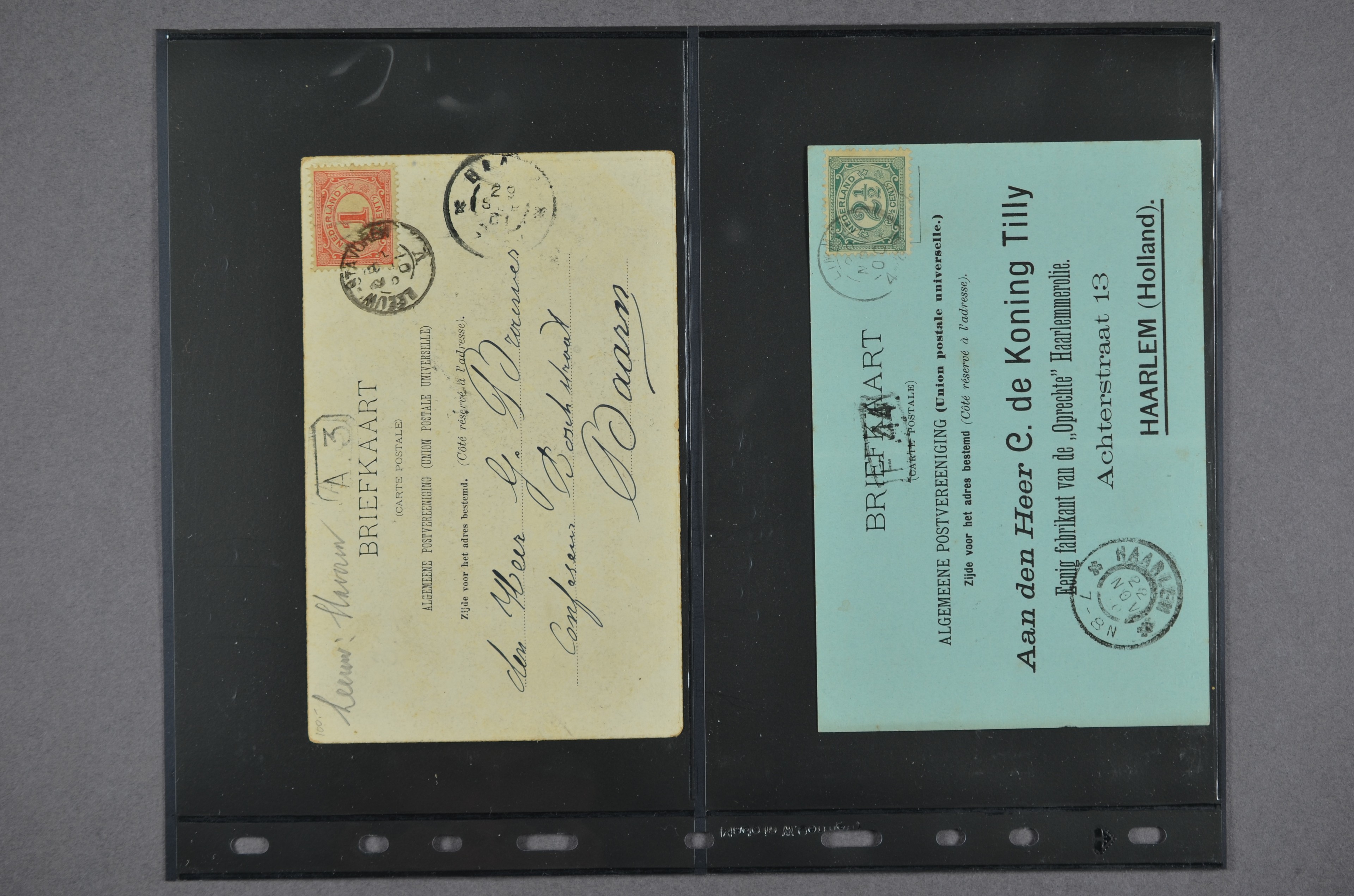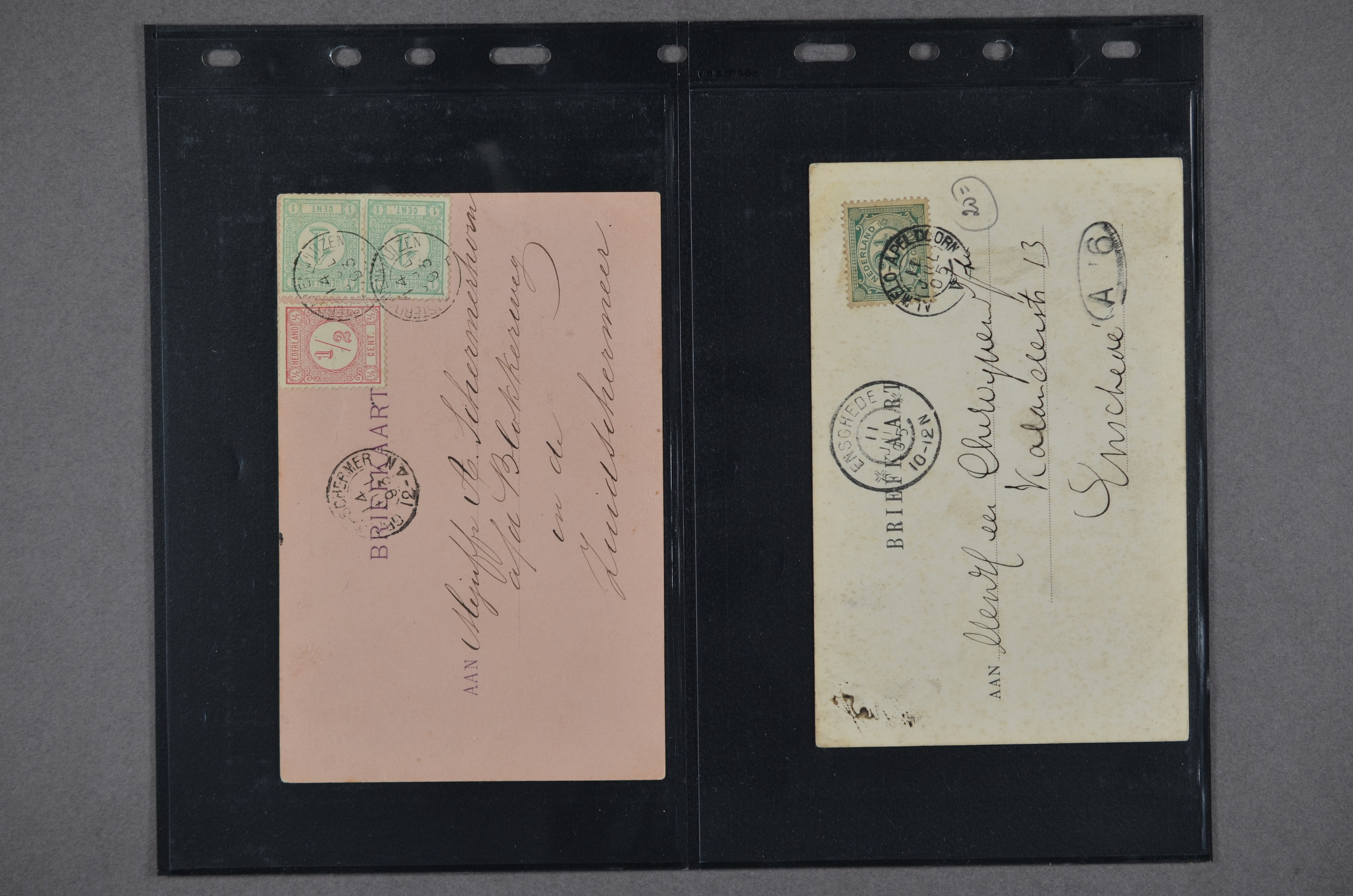 KLEINROND OP POSTSTUK, collectie van ruim 450 poststukken w.o. veel prentbriefkaarten, allemaal met kleinrondstempels van post-, hulppost- (merendeels) en bijpostkantoren, ook van spoorwegtrajecten, stations, Kamp bij Rijen (meerdere ex.), Amsterdam E, diverse schaarse stempels, enige doubletten, veel prachtige afstempelingen, enkele in blauw of violet, in 2 Leuchtturm-ringbanden. Prachtobject voor de handel of verzamelaar om op te zetten