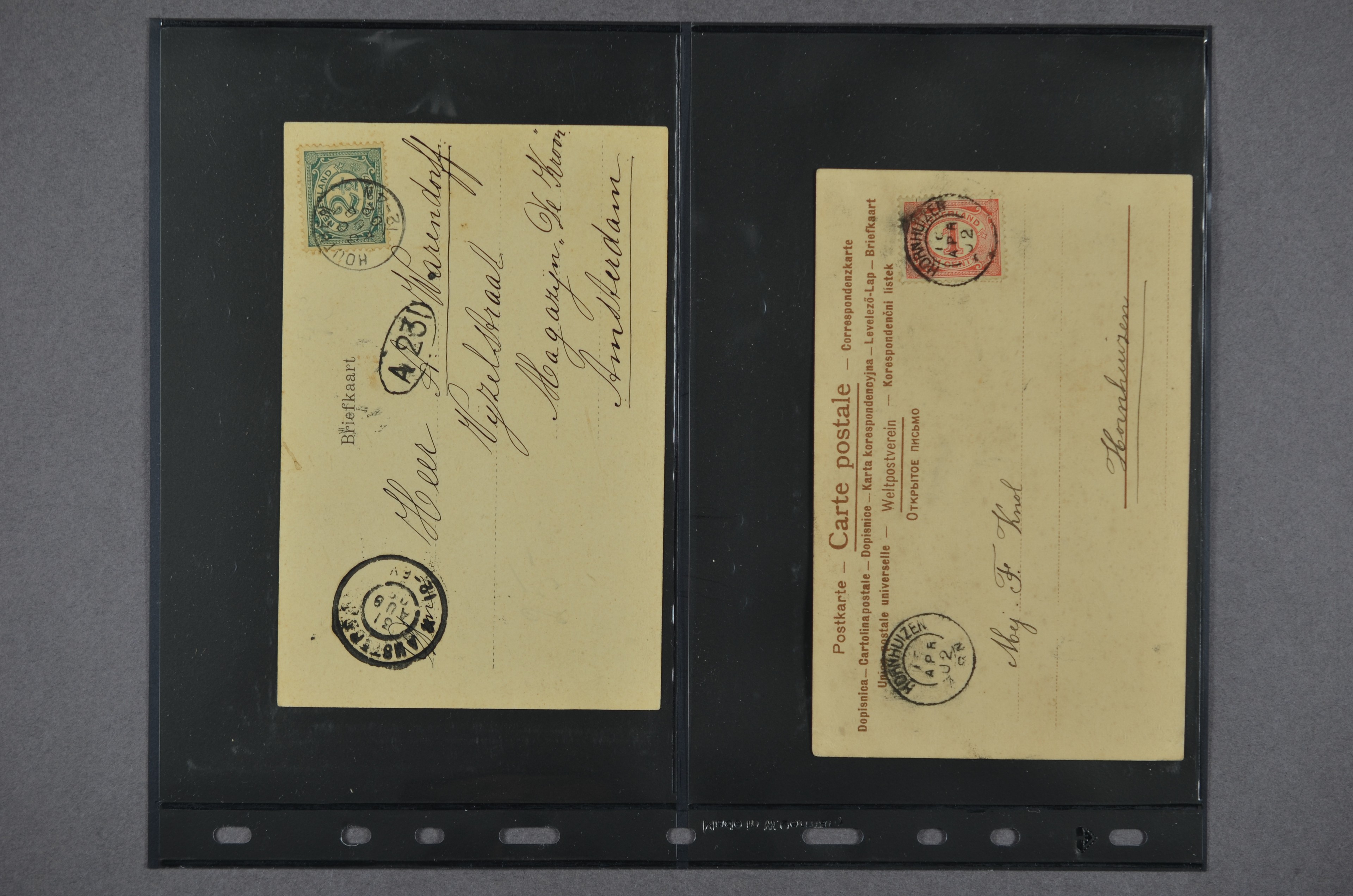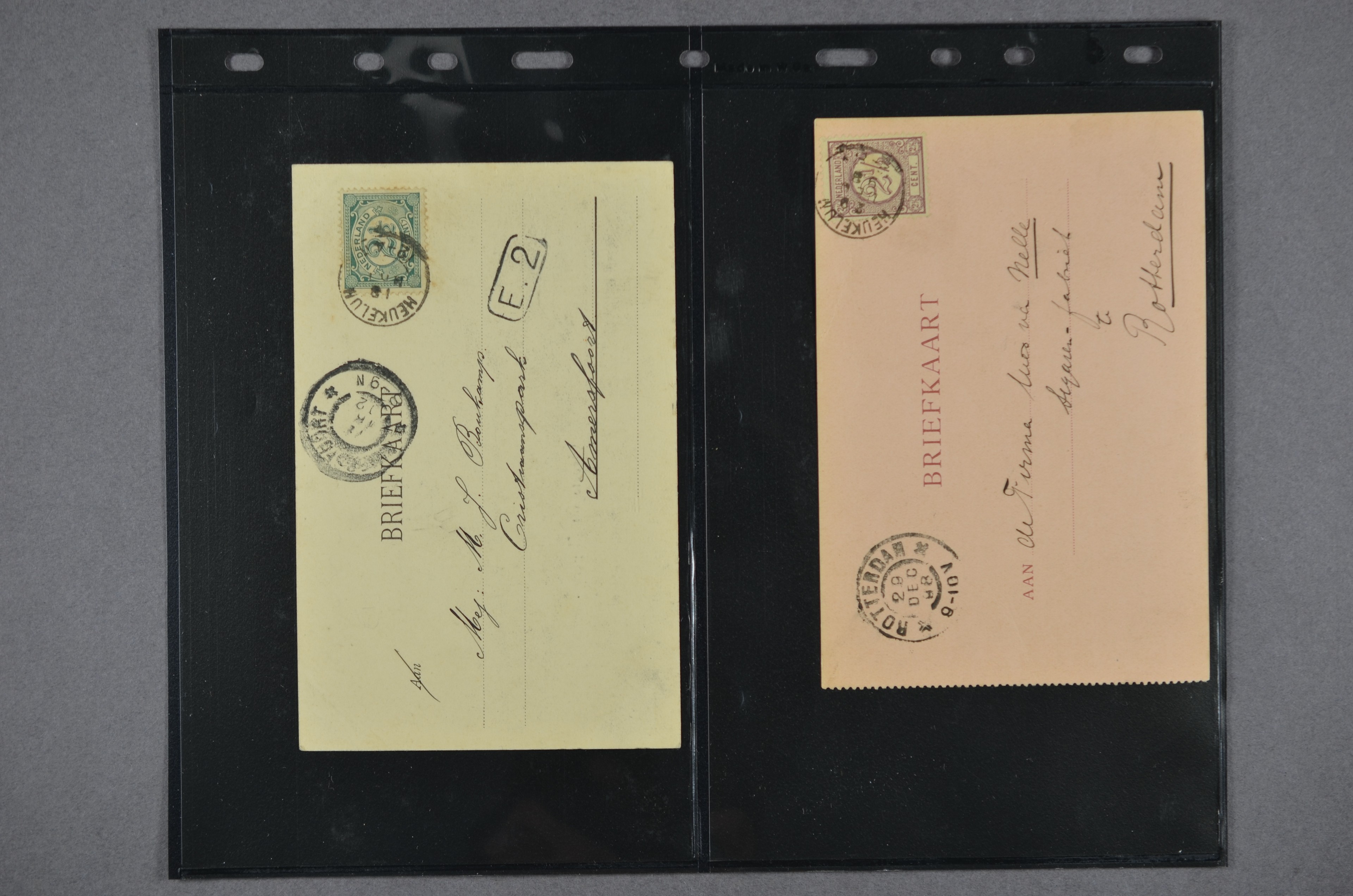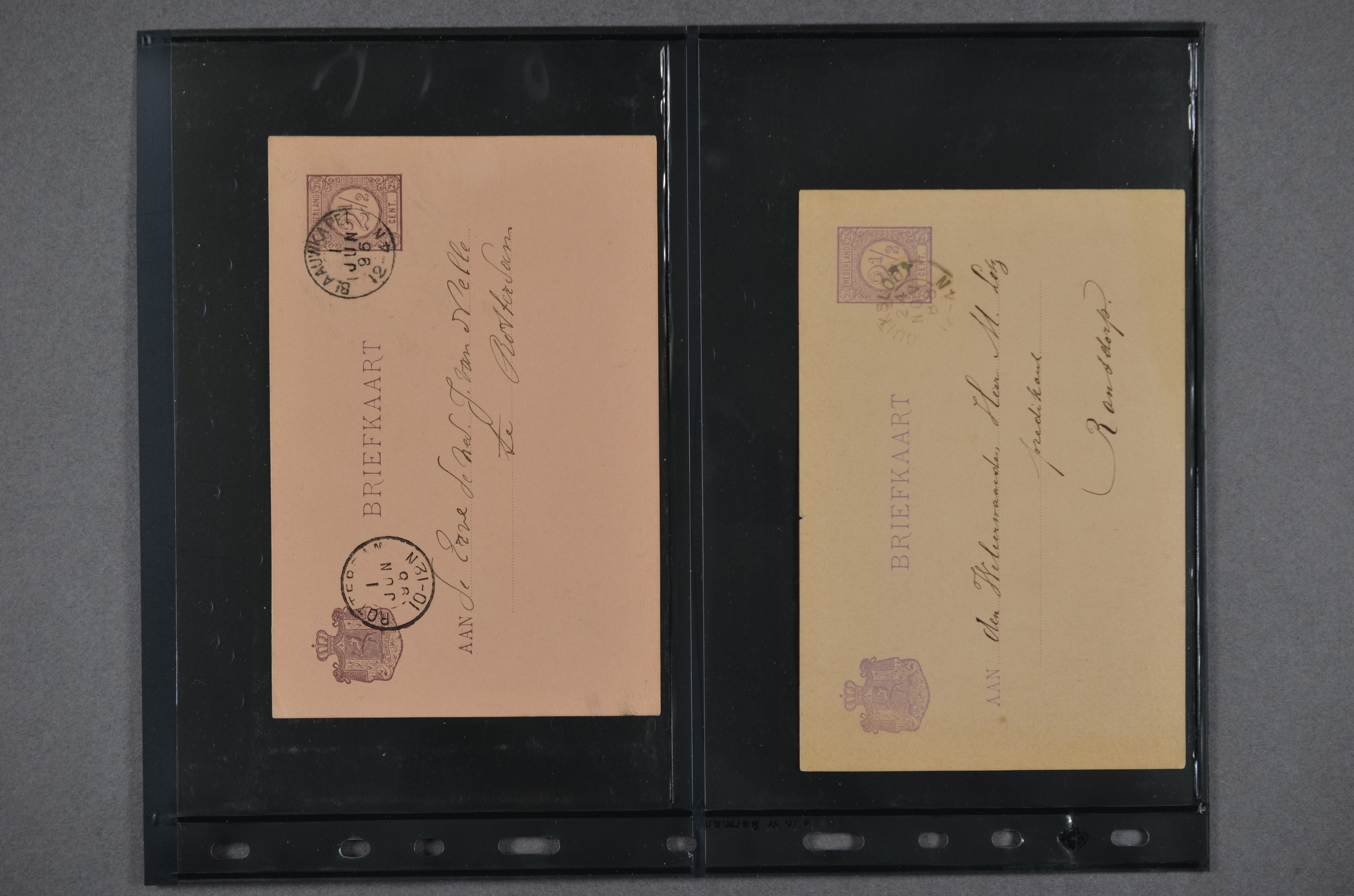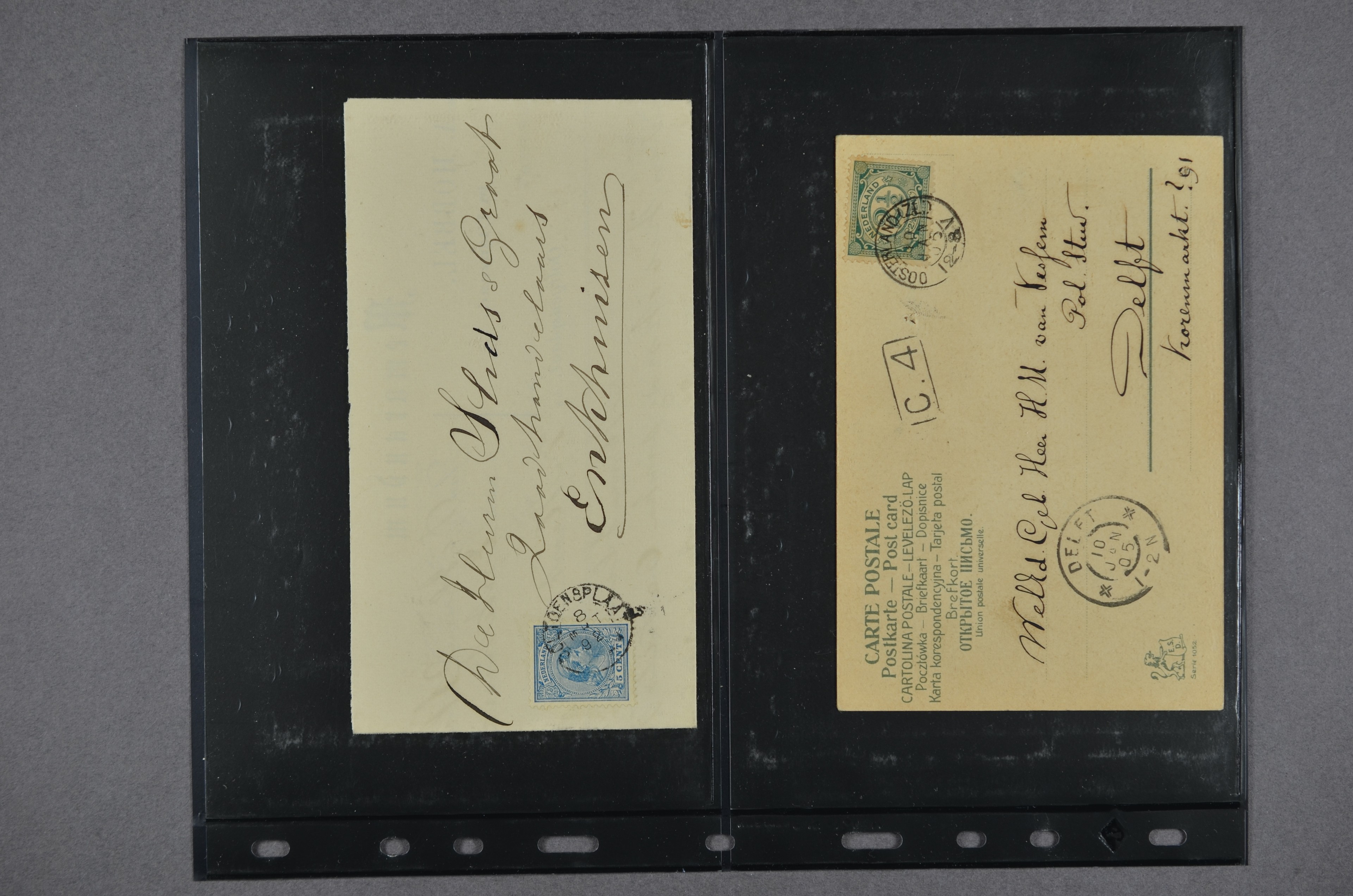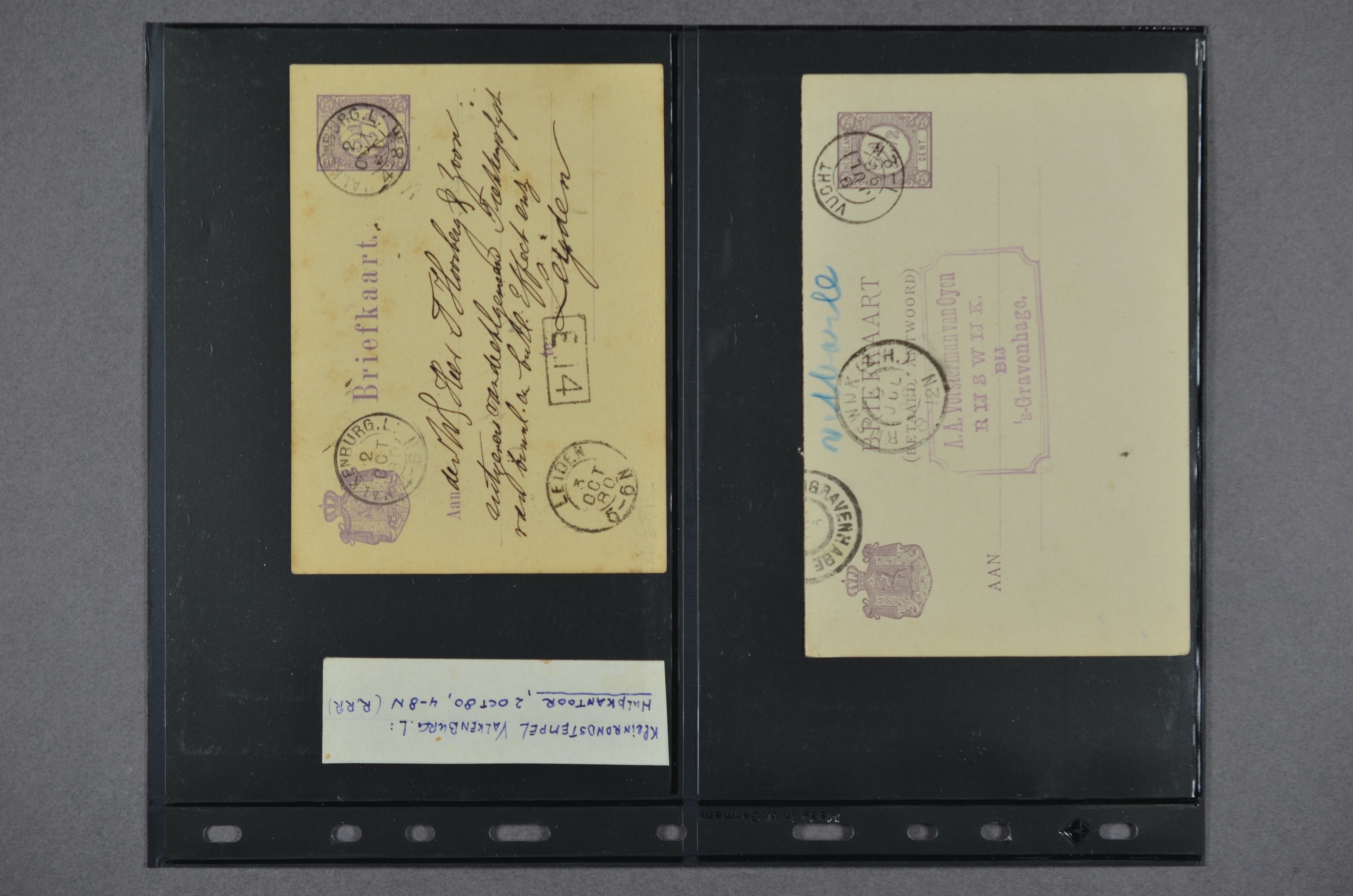KLEINROND OP POSTSTUK, collectie van ruim 450 poststukken w.o. veel prentbriefkaarten, allemaal met kleinrondstempels van post-, hulppost- (merendeels) en bijpostkantoren, ook van spoorwegtrajecten, stations, Kamp bij Rijen (meerdere ex.), Amsterdam E, diverse schaarse stempels, enige doubletten, veel prachtige afstempelingen, enkele in blauw of violet, in 2 Leuchtturm-ringbanden. Prachtobject voor de handel of verzamelaar om op te zetten
