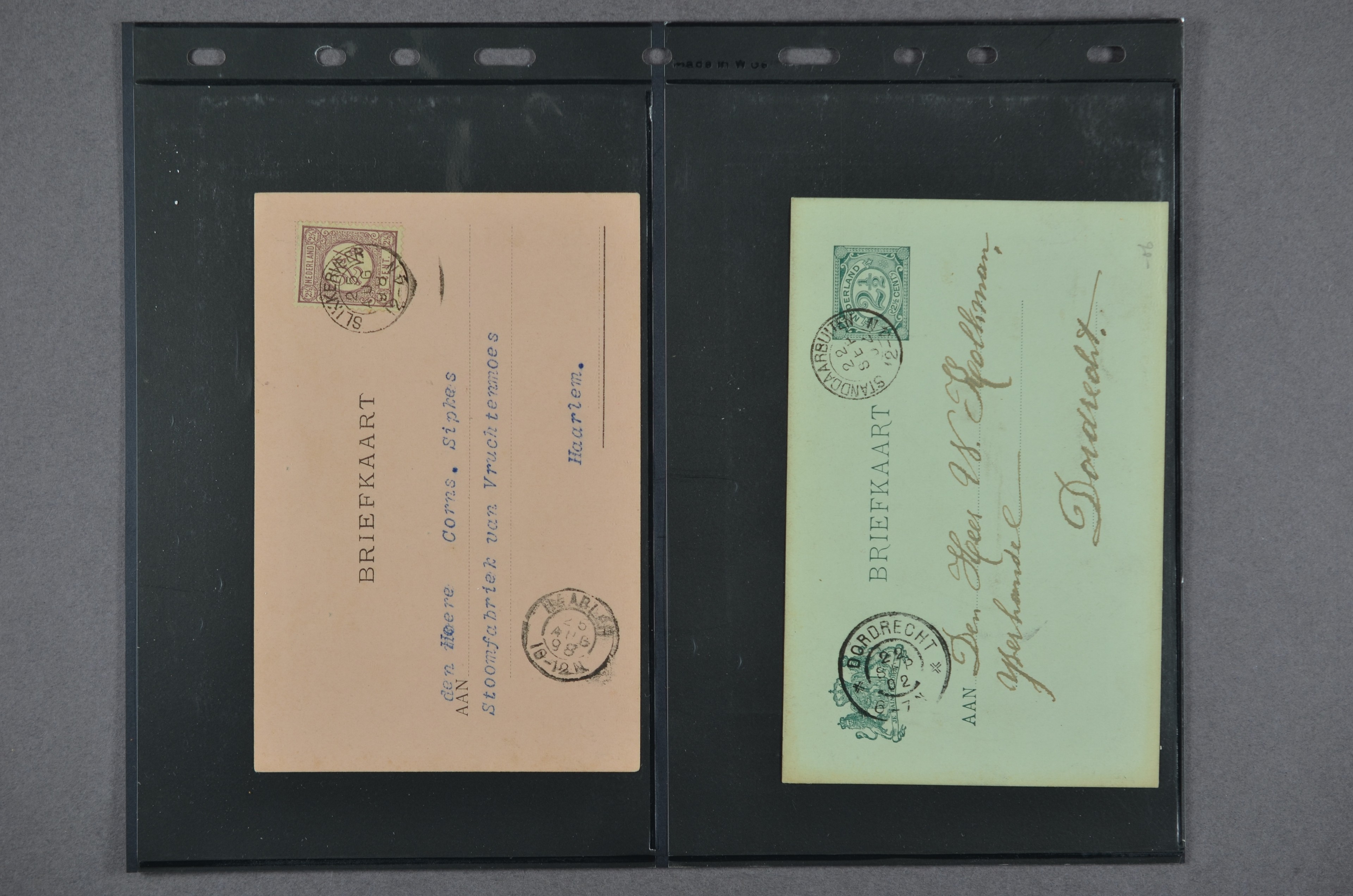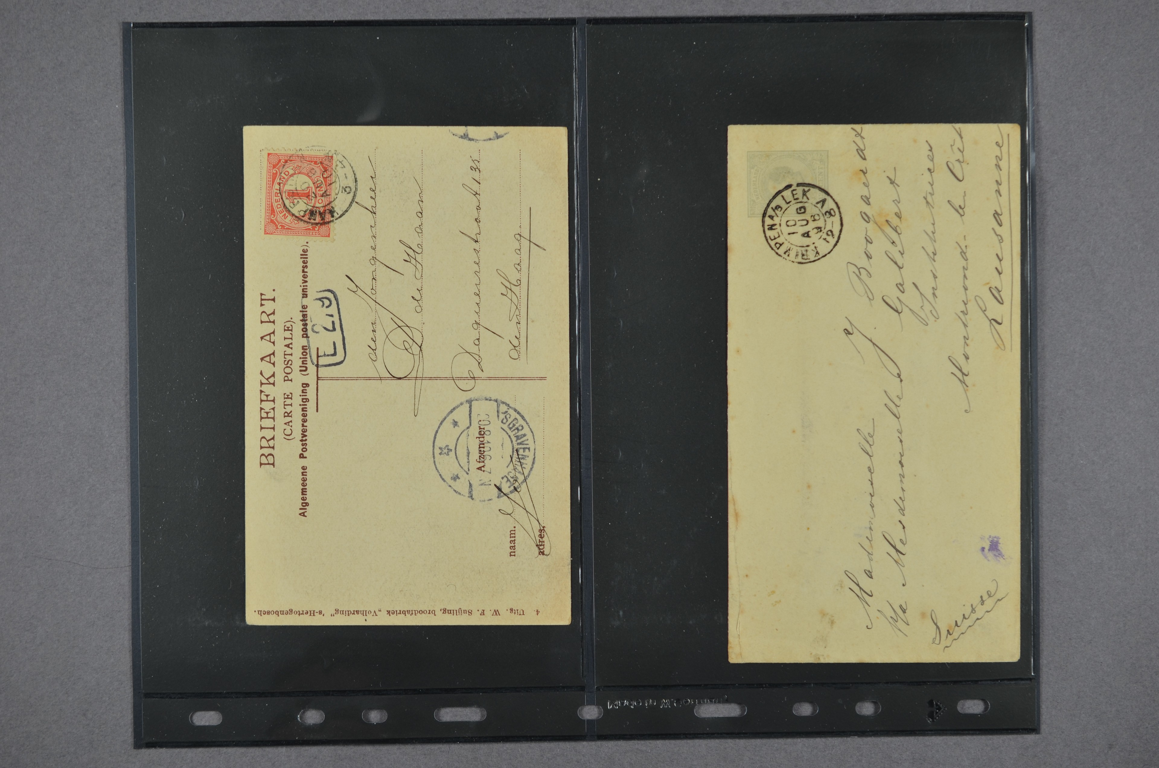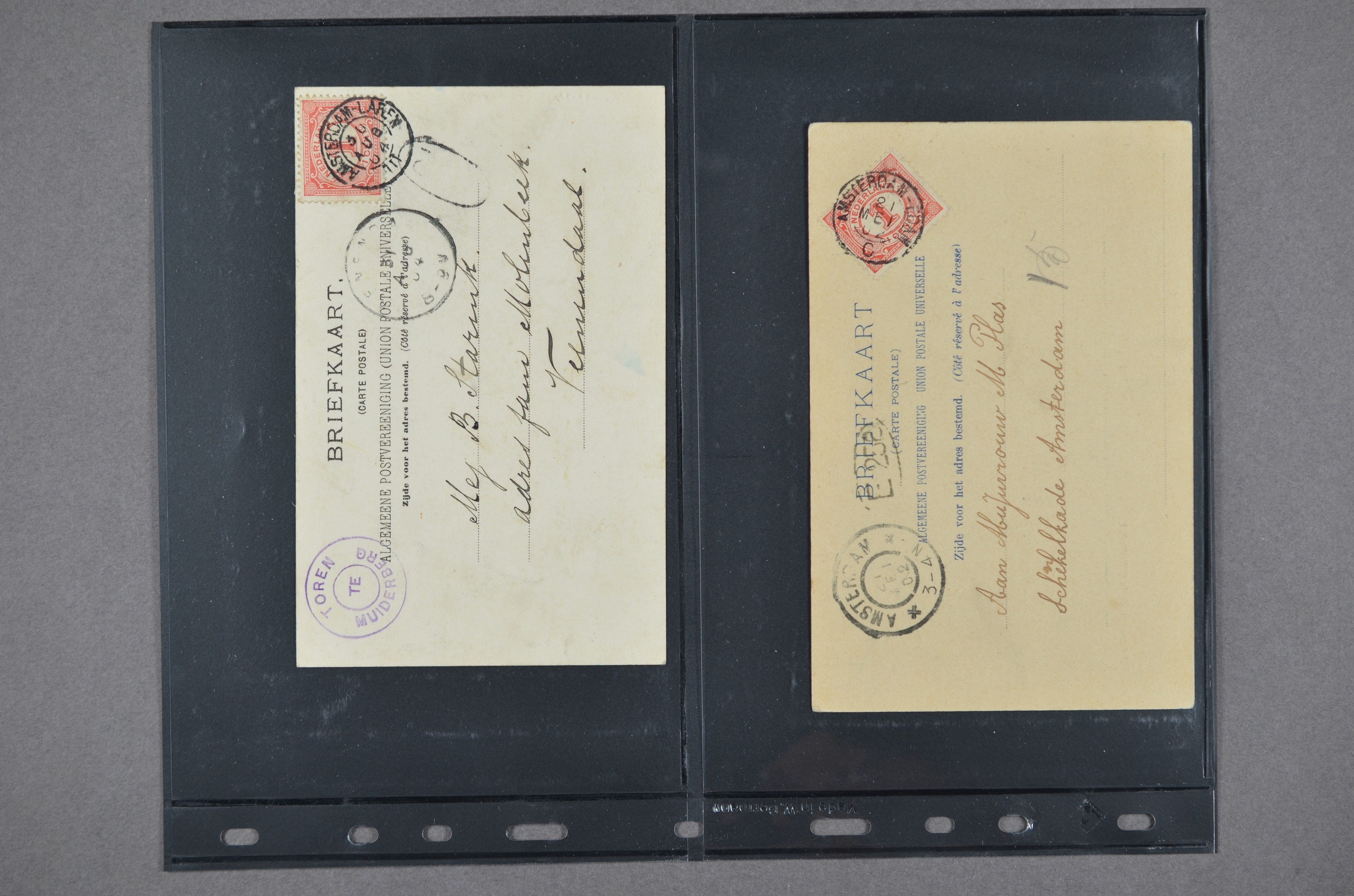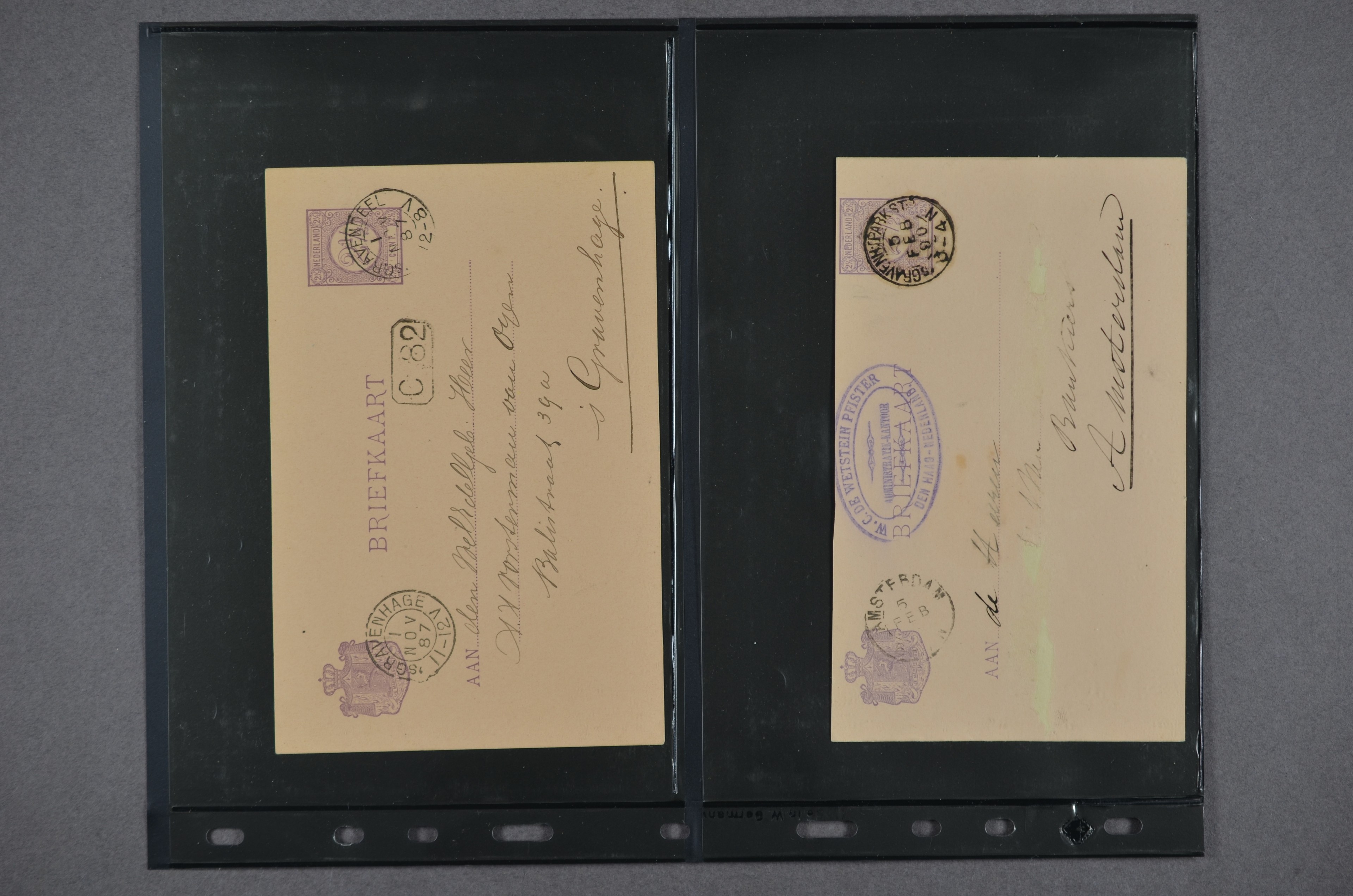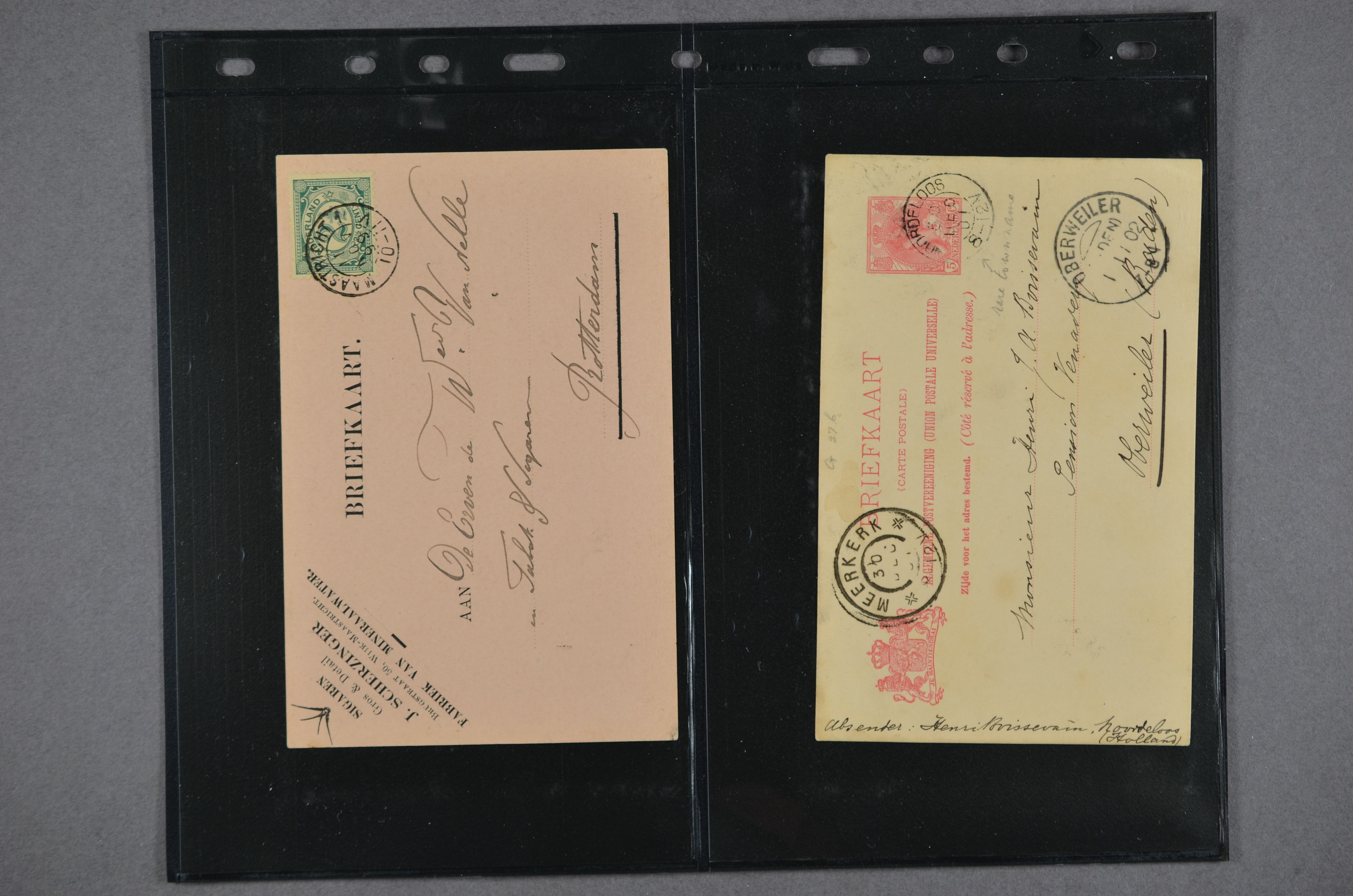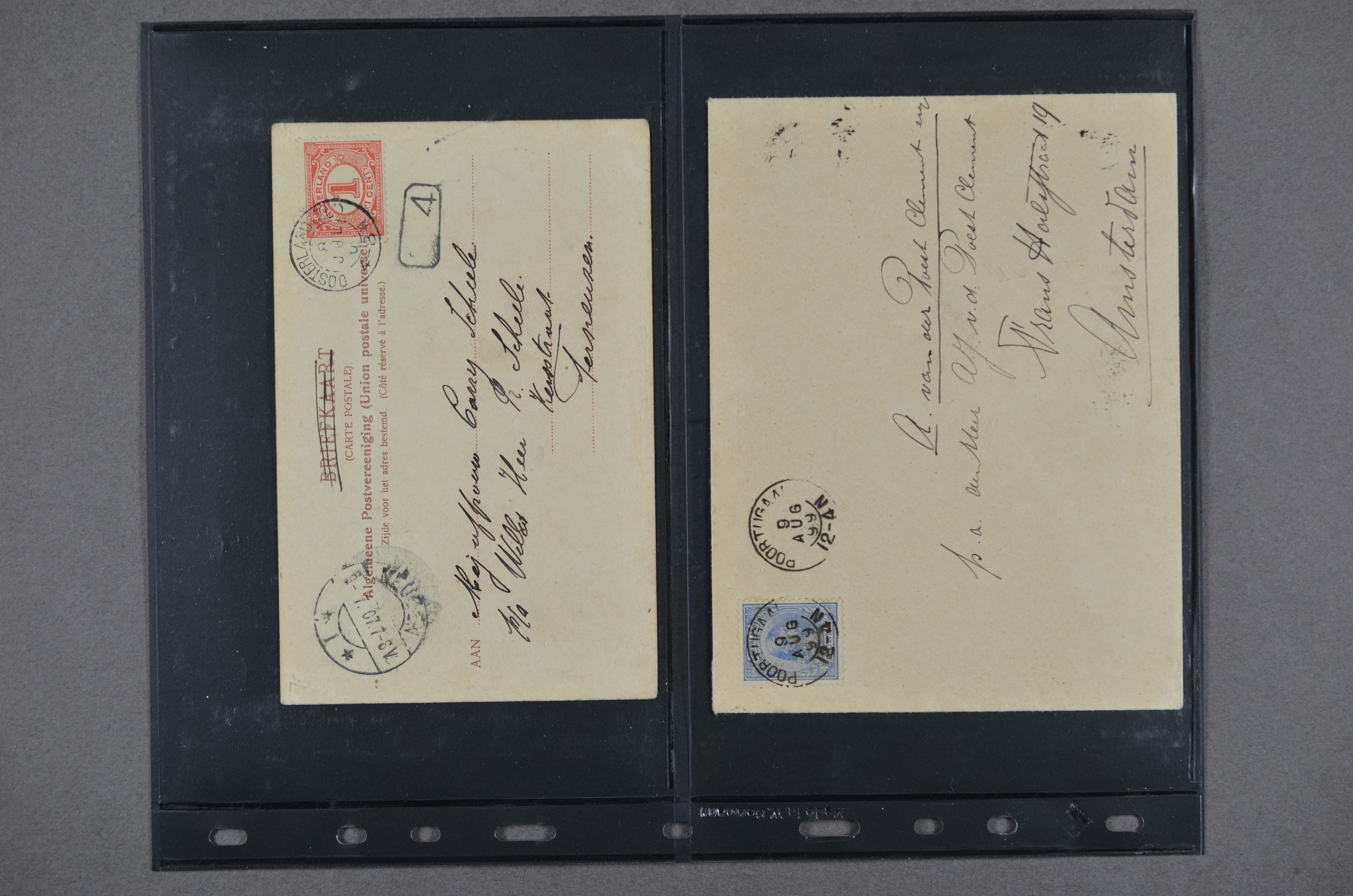 KLEINROND OP POSTSTUK, collectie van ruim 450 poststukken w.o. veel prentbriefkaarten, allemaal met kleinrondstempels van post-, hulppost- (merendeels) en bijpostkantoren, ook van spoorwegtrajecten, stations, Kamp bij Rijen (meerdere ex.), Amsterdam E, diverse schaarse stempels, enige doubletten, veel prachtige afstempelingen, enkele in blauw of violet, in 2 Leuchtturm-ringbanden. Prachtobject voor de handel of verzamelaar om op te zetten