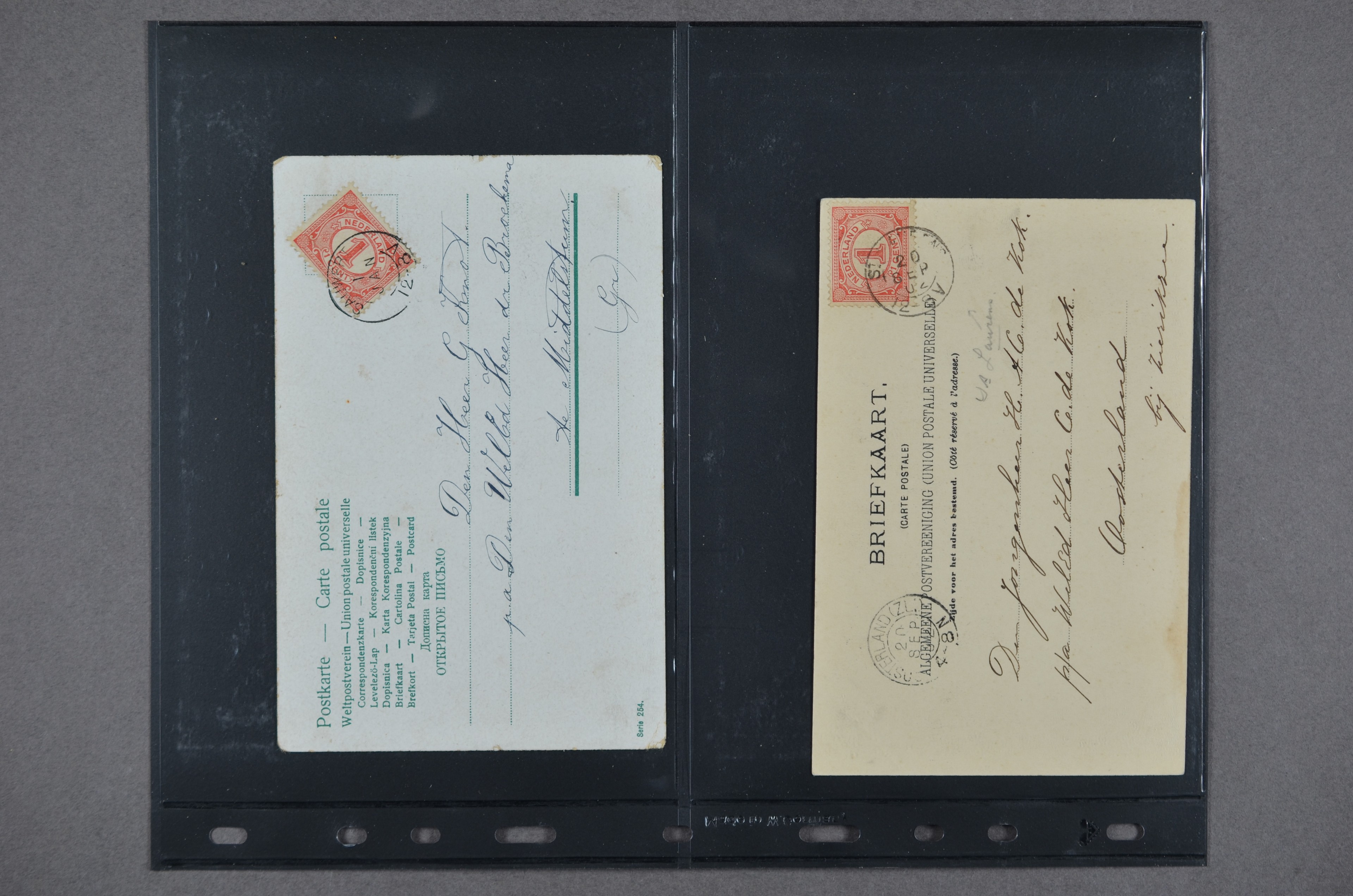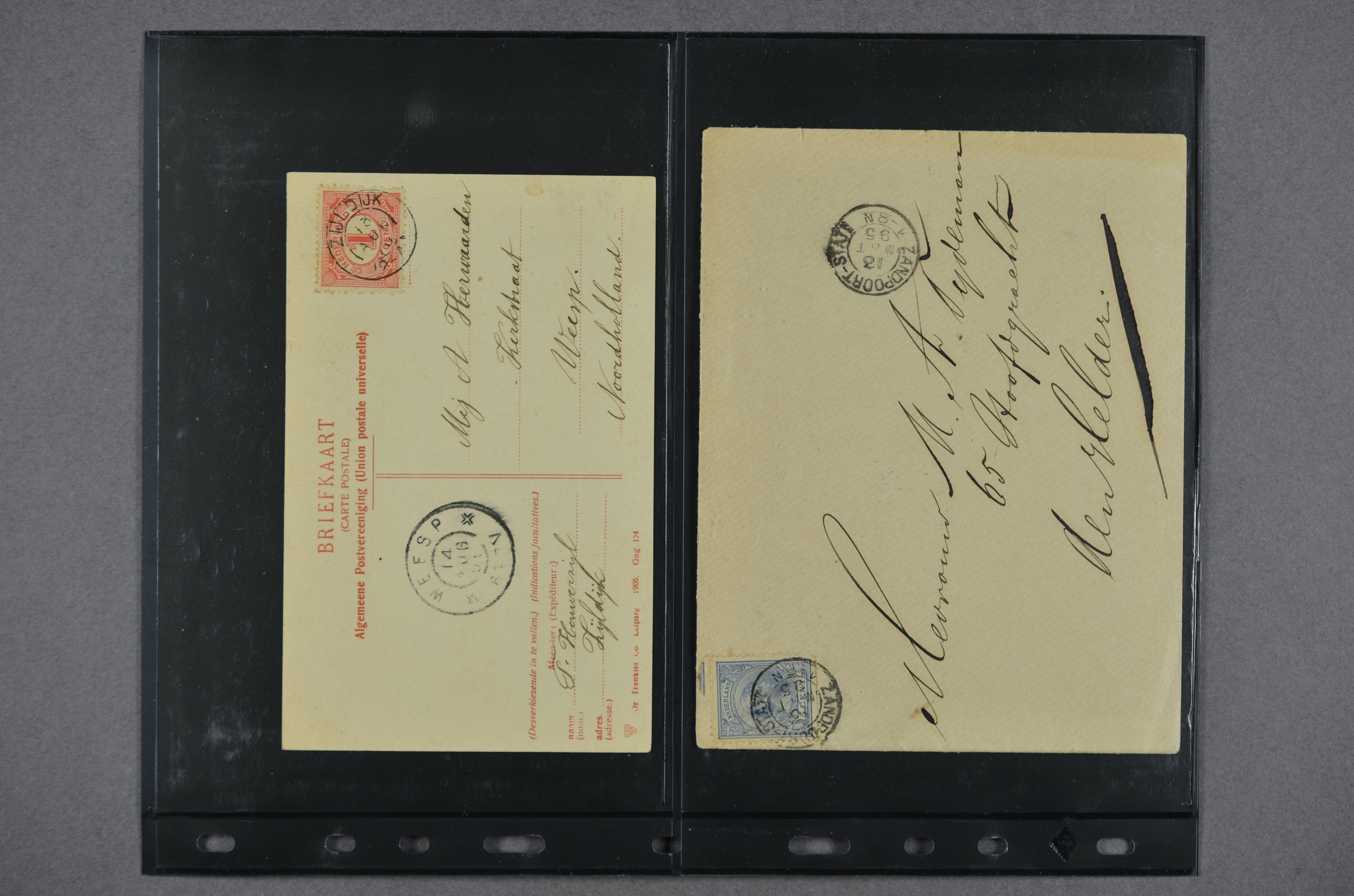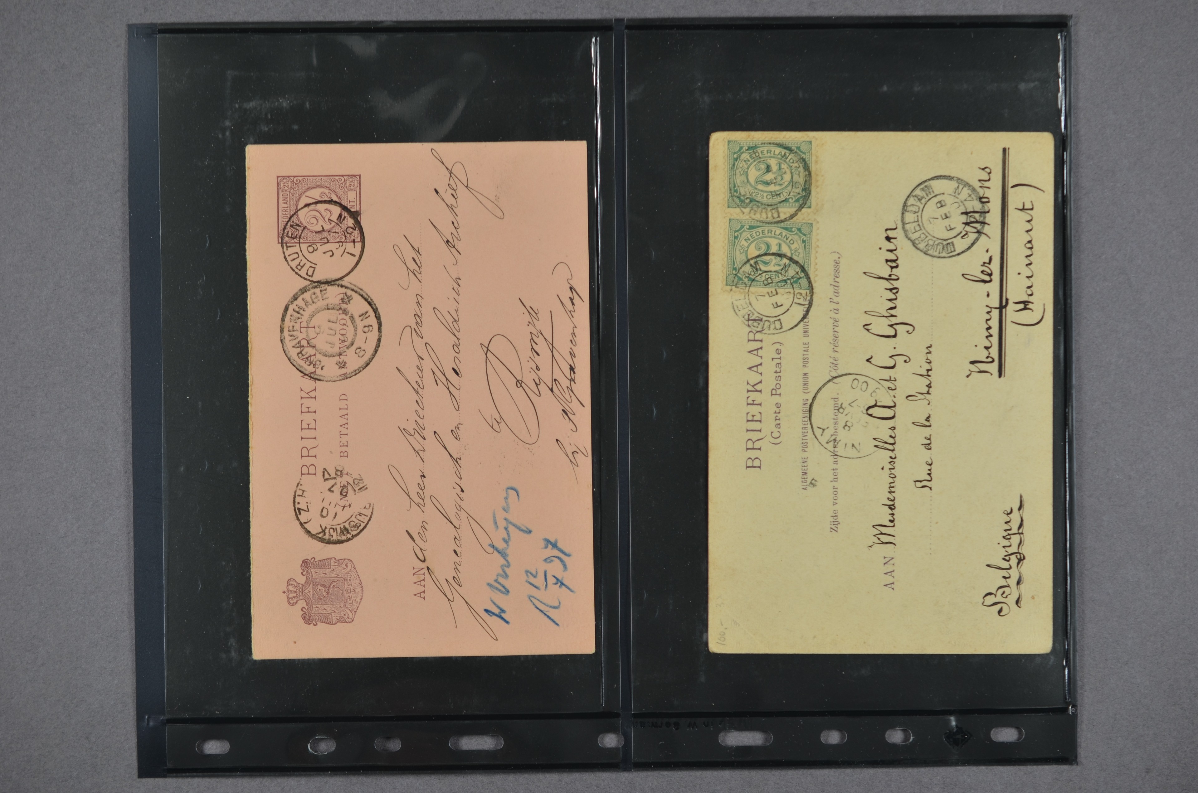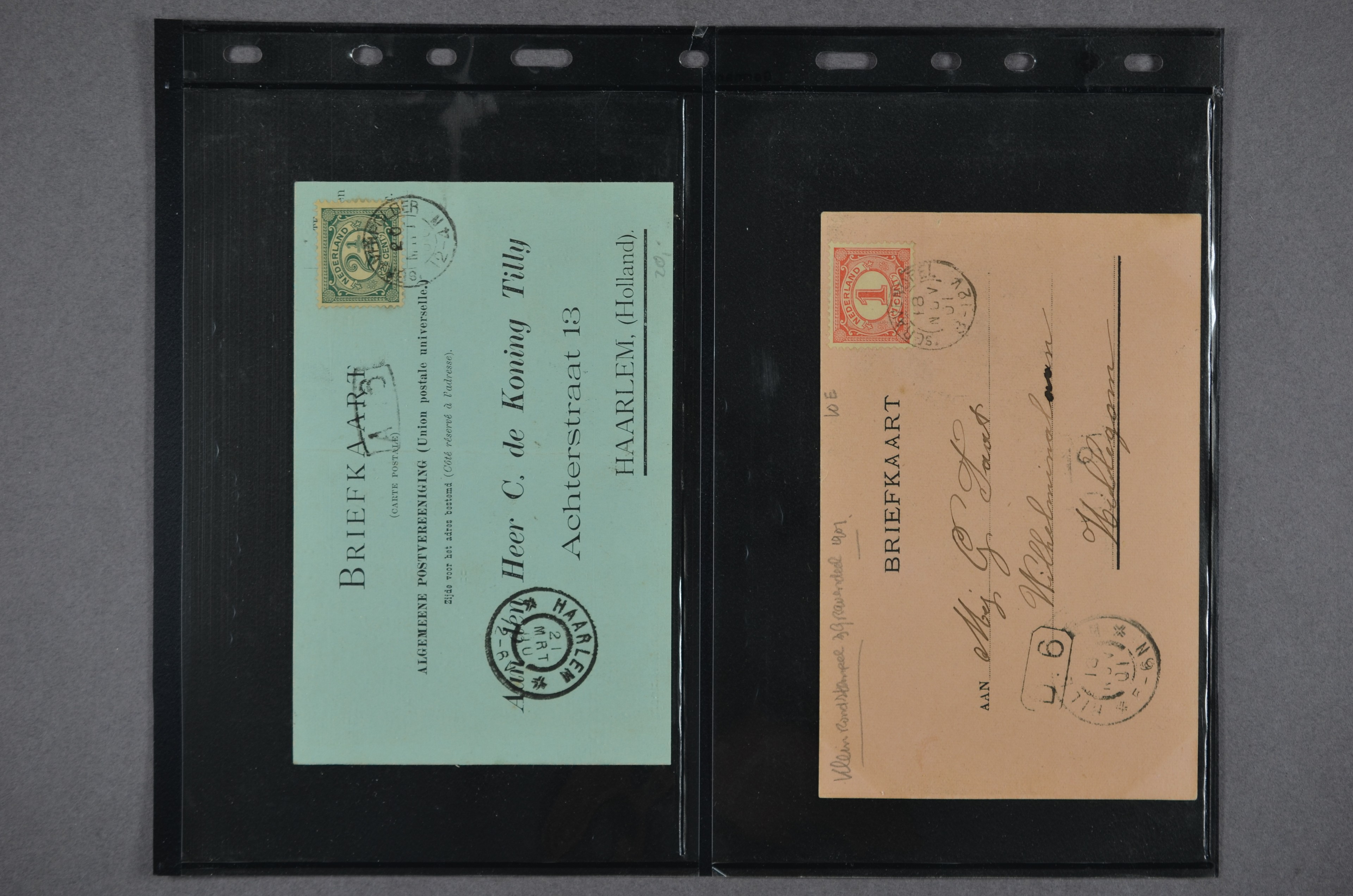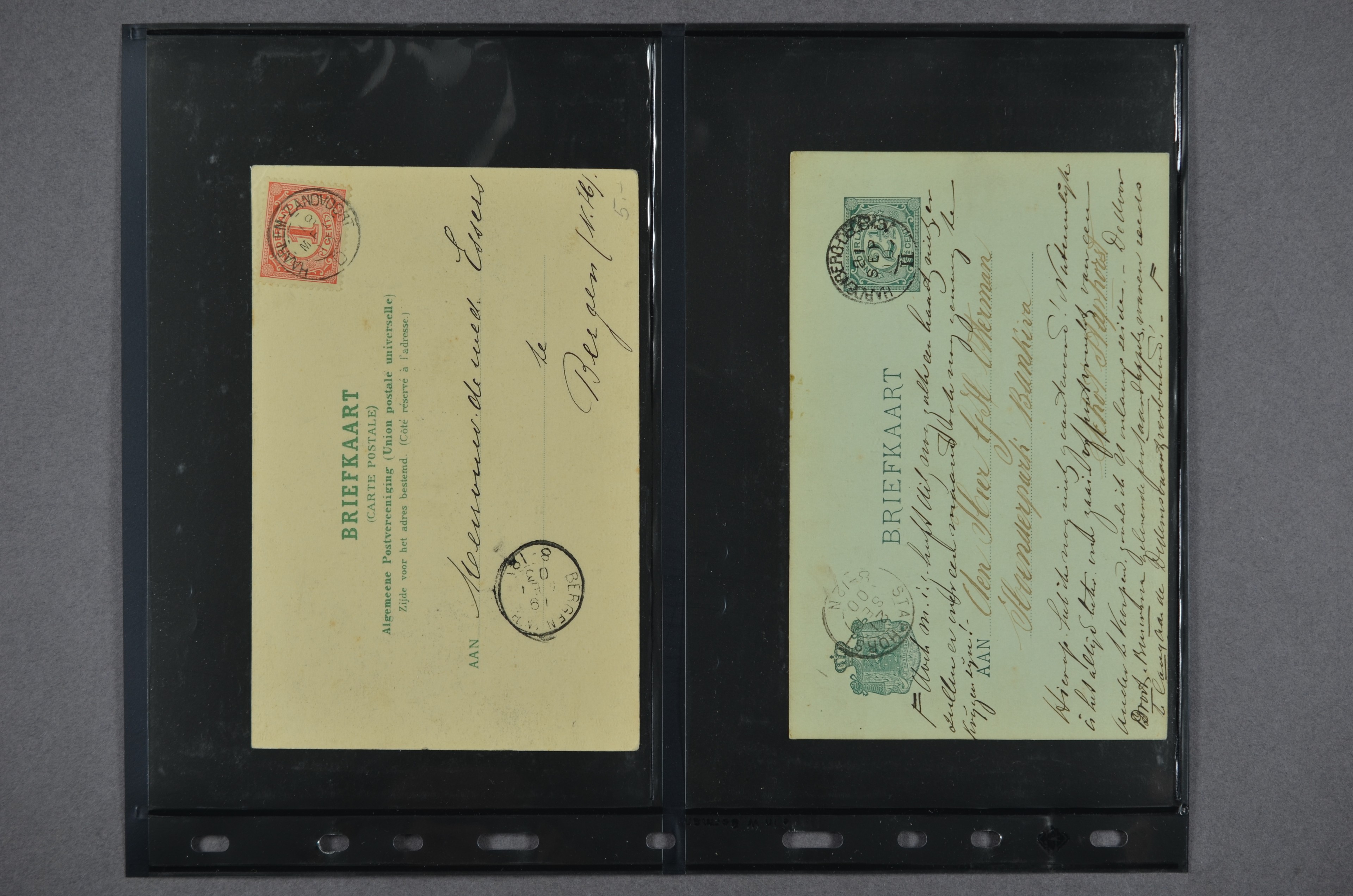 KLEINROND OP POSTSTUK, collectie van ruim 450 poststukken w.o. veel prentbriefkaarten, allemaal met kleinrondstempels van post-, hulppost- (merendeels) en bijpostkantoren, ook van spoorwegtrajecten, stations, Kamp bij Rijen (meerdere ex.), Amsterdam E, diverse schaarse stempels, enige doubletten, veel prachtige afstempelingen, enkele in blauw of violet, in 2 Leuchtturm-ringbanden. Prachtobject voor de handel of verzamelaar om op te zetten