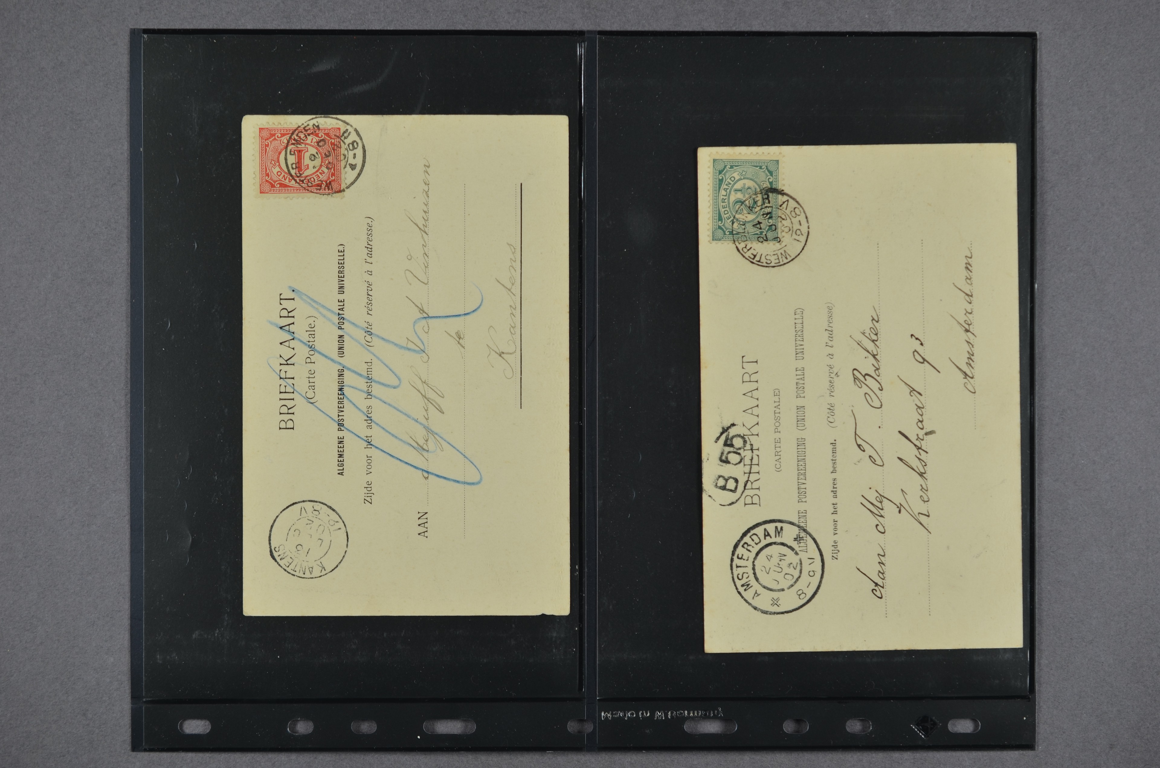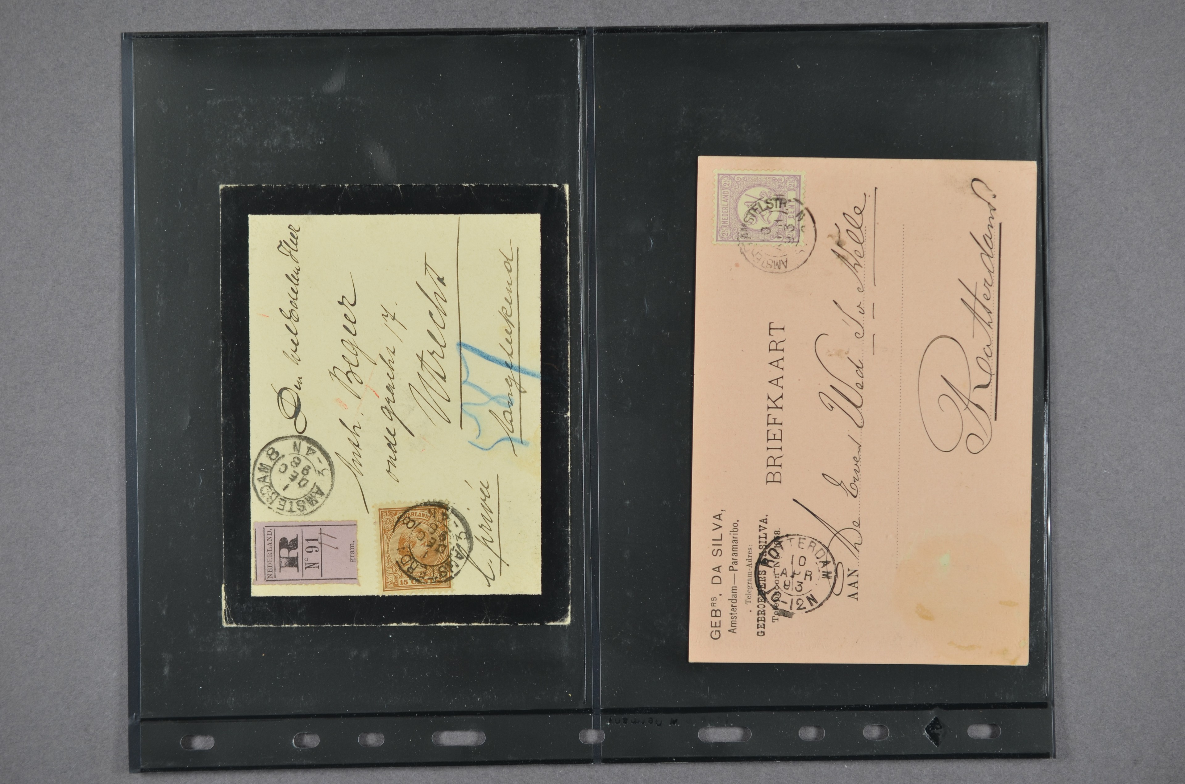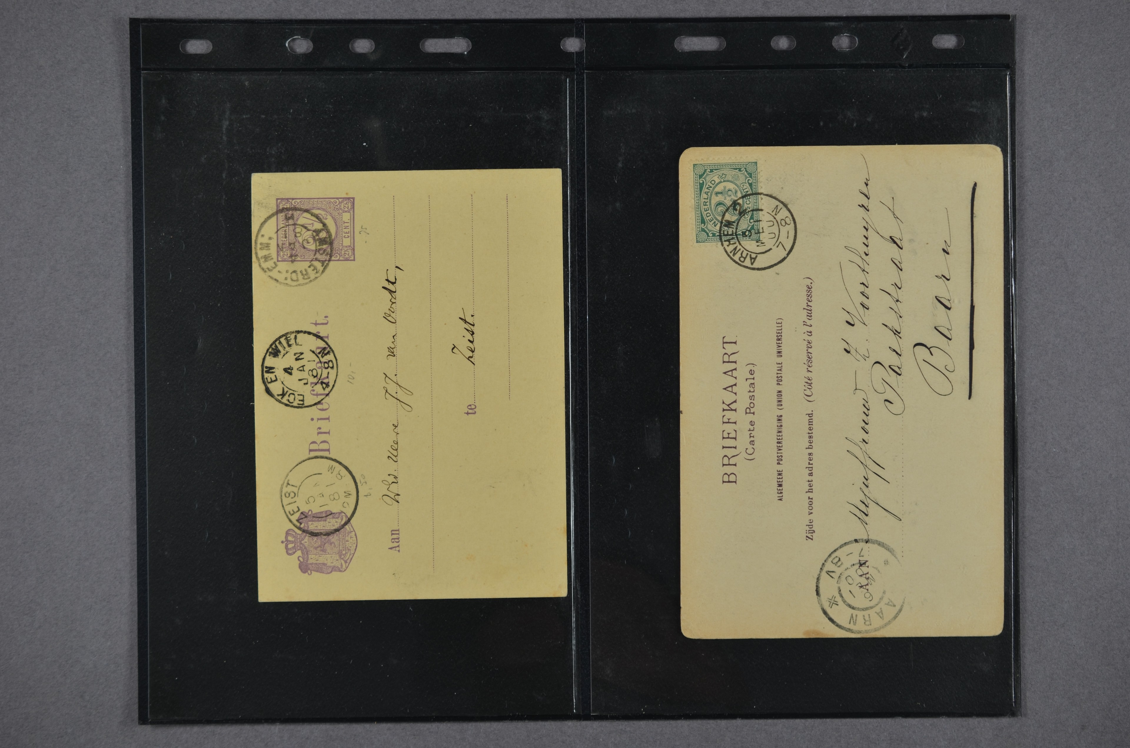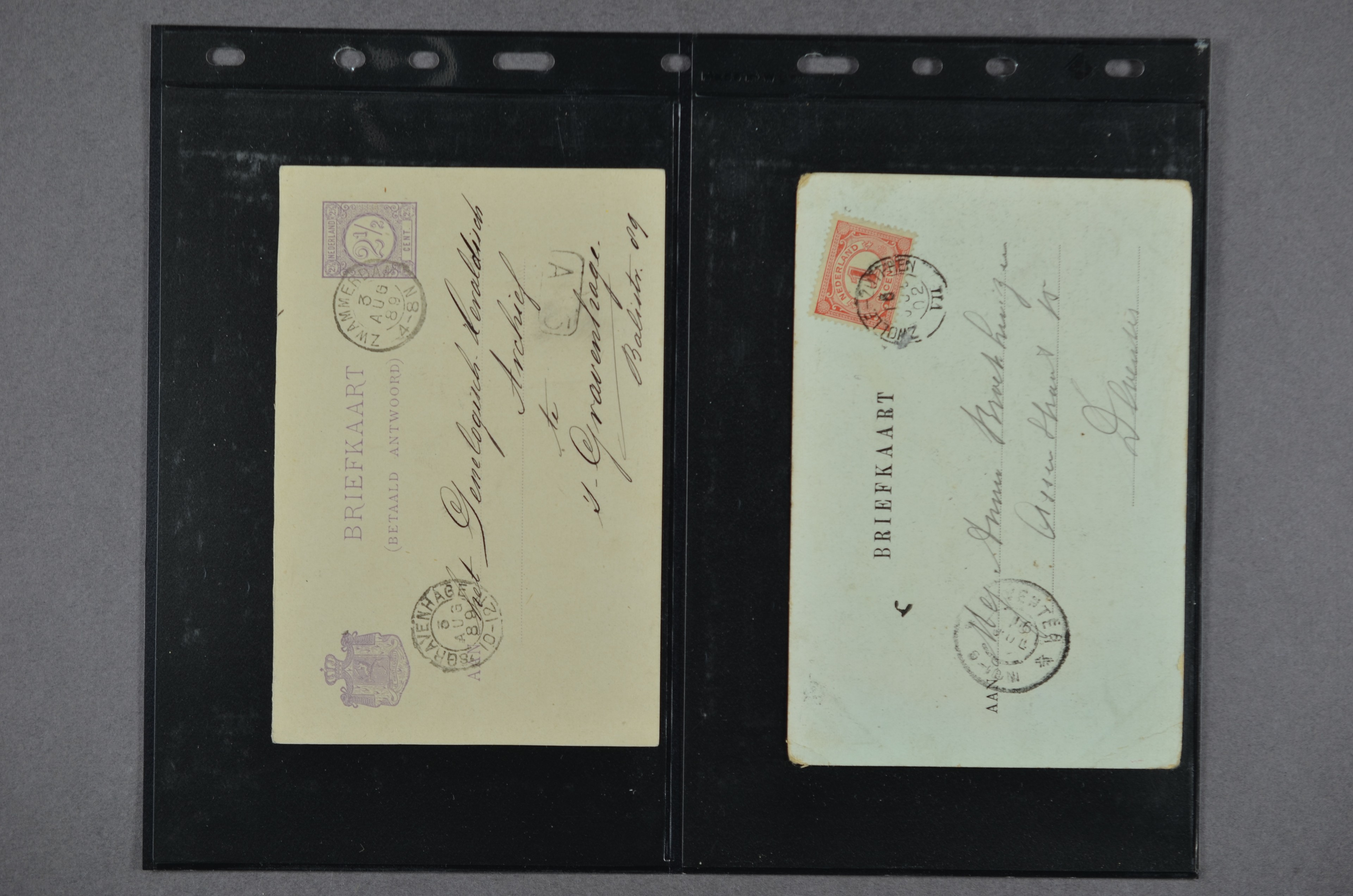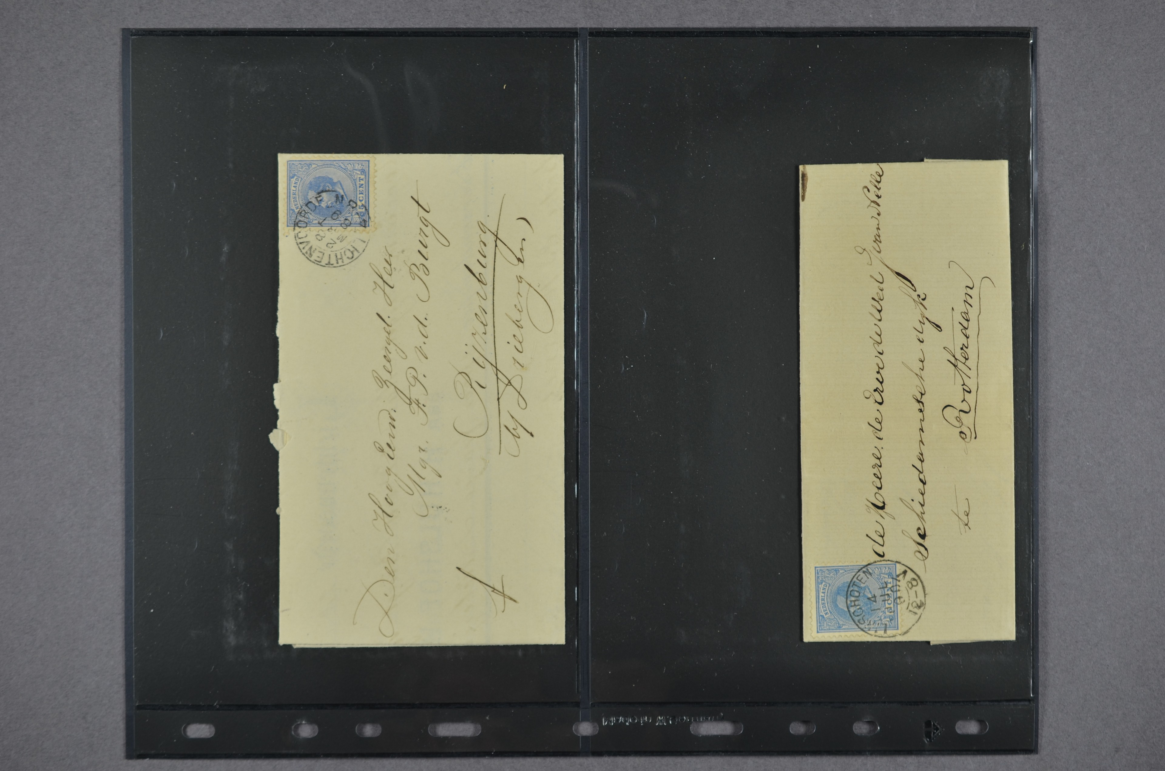KLEINROND OP POSTSTUK, collectie van ruim 450 poststukken w.o. veel prentbriefkaarten, allemaal met kleinrondstempels van post-, hulppost- (merendeels) en bijpostkantoren, ook van spoorwegtrajecten, stations, Kamp bij Rijen (meerdere ex.), Amsterdam E, diverse schaarse stempels, enige doubletten, veel prachtige afstempelingen, enkele in blauw of violet, in 2 Leuchtturm-ringbanden. Prachtobject voor de handel of verzamelaar om op te zetten