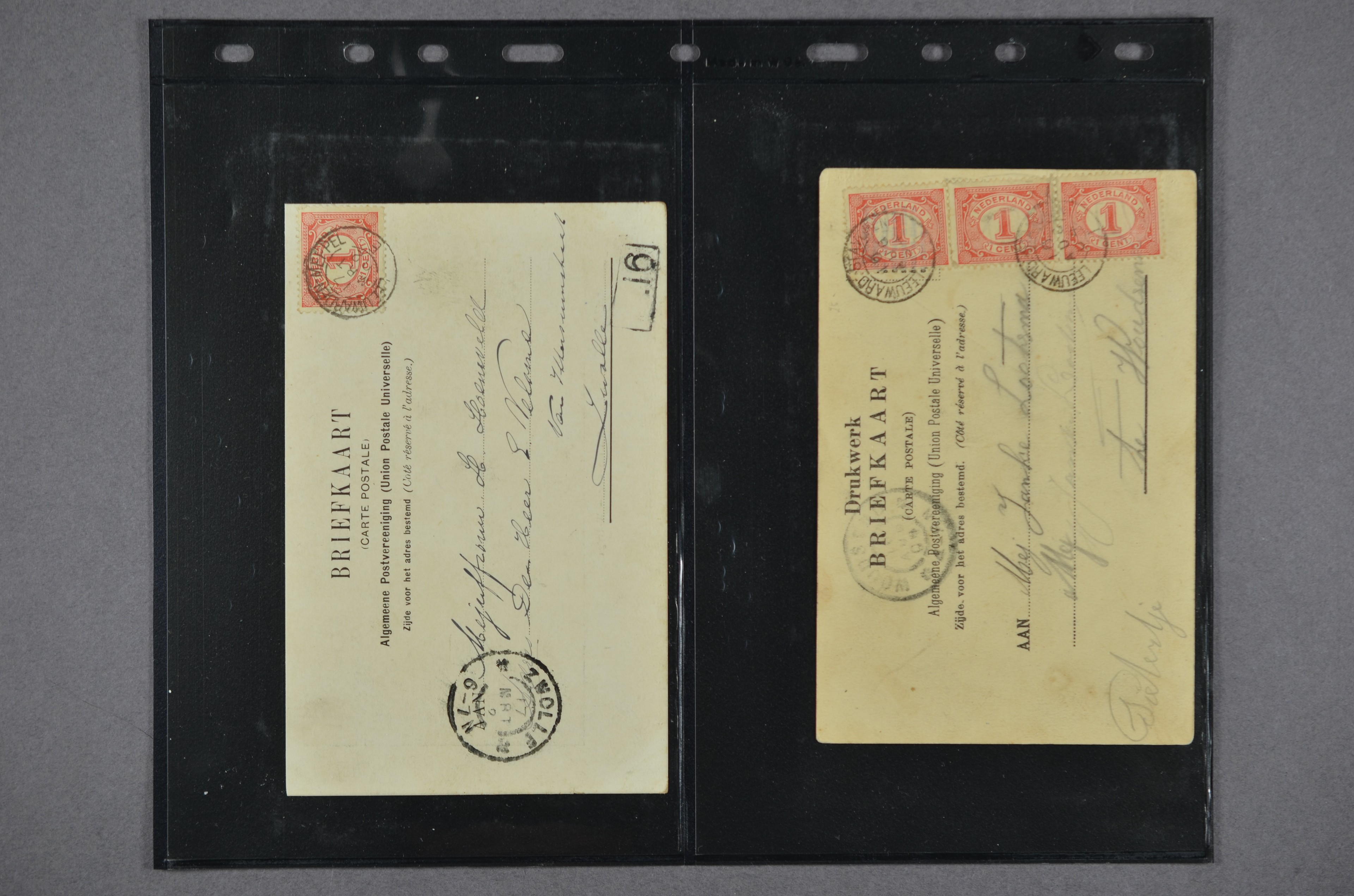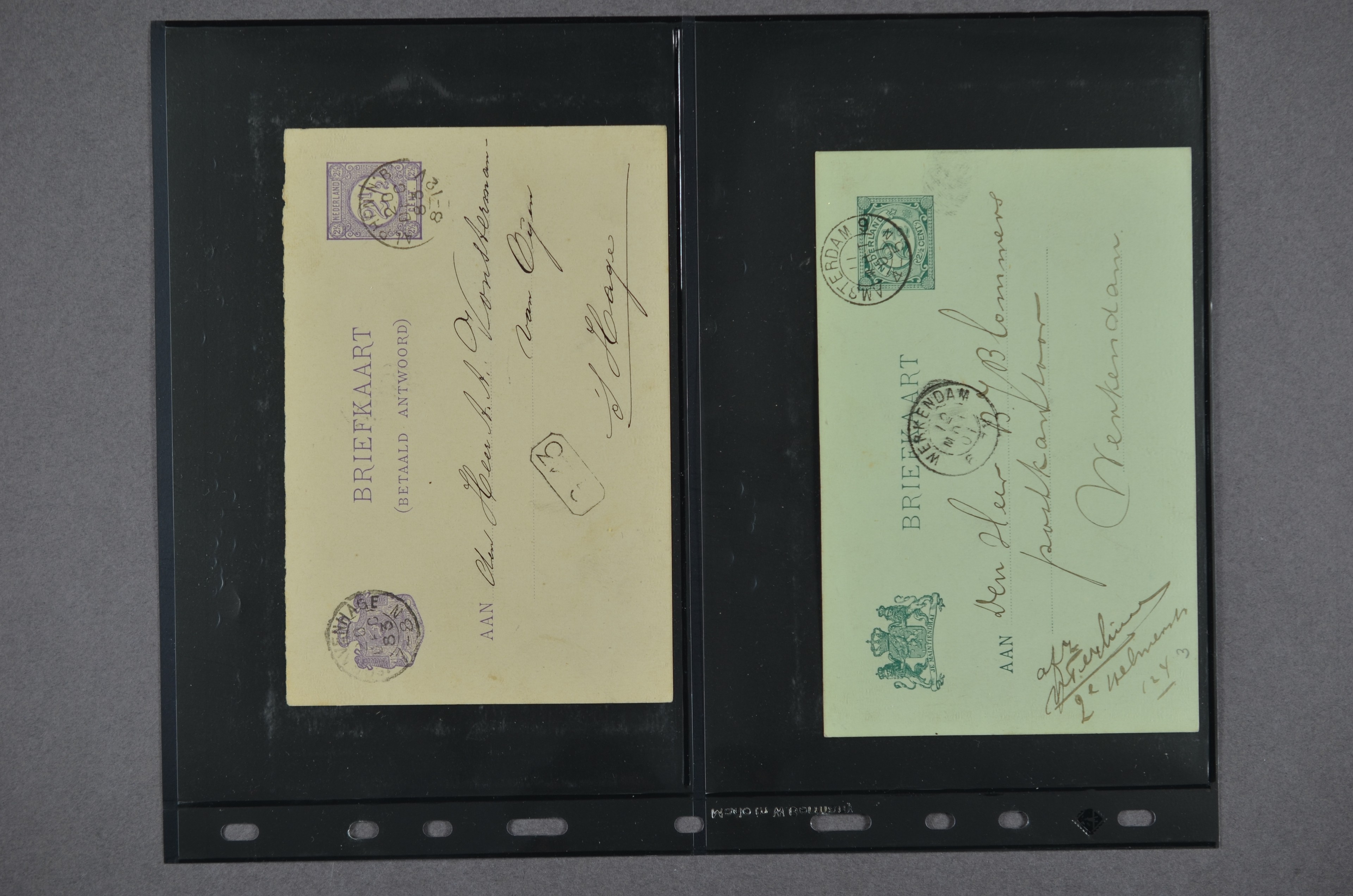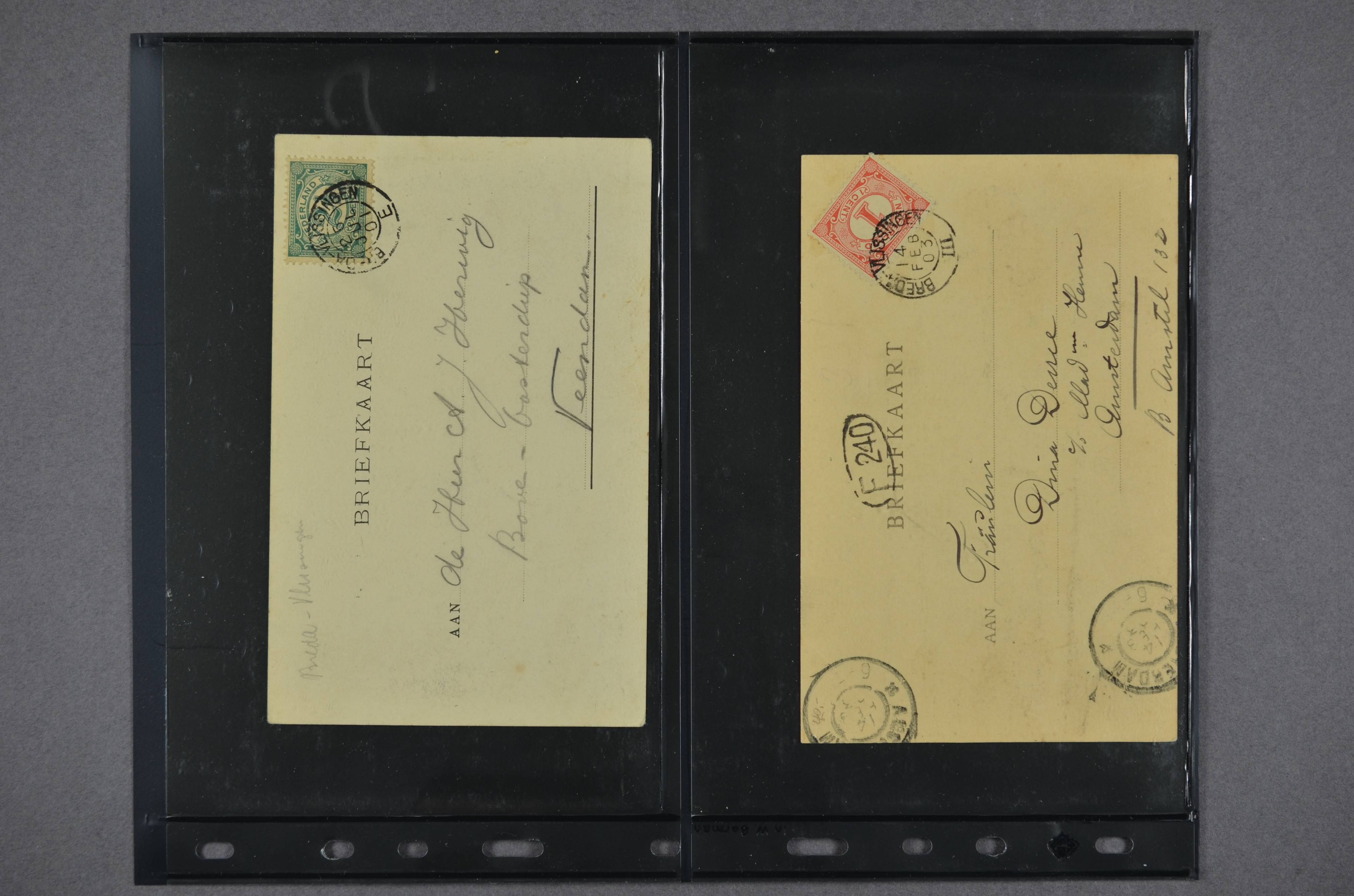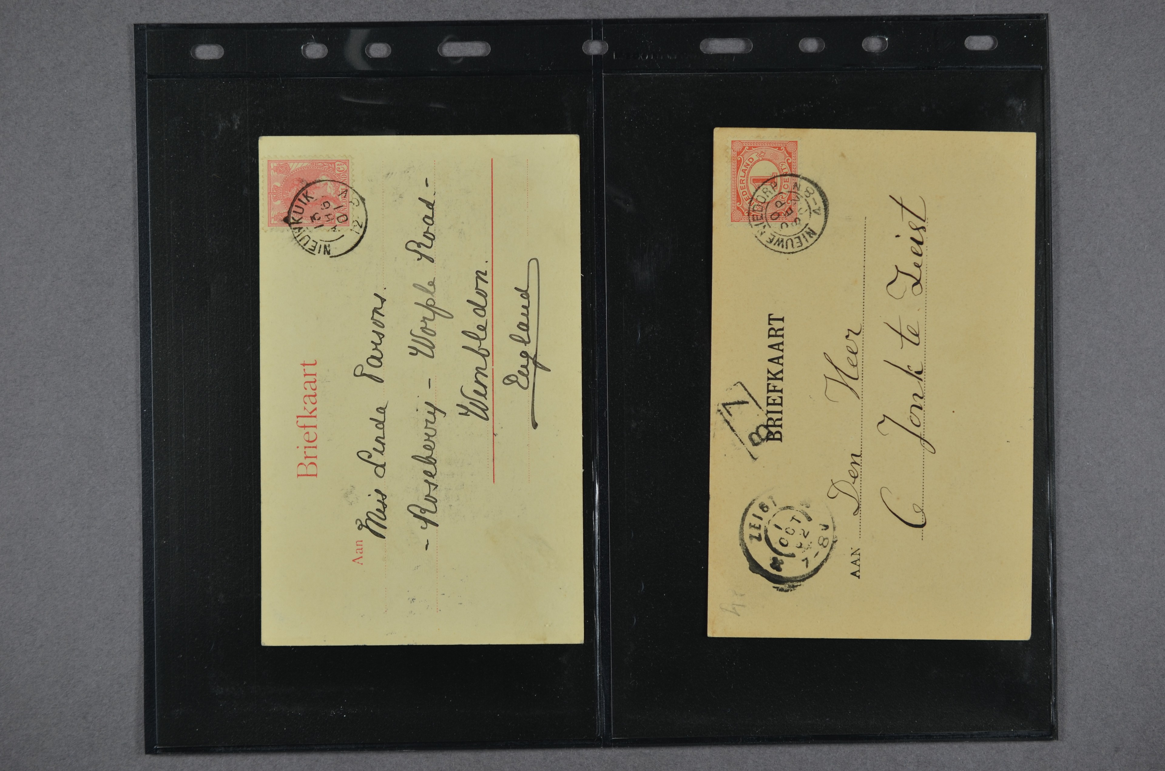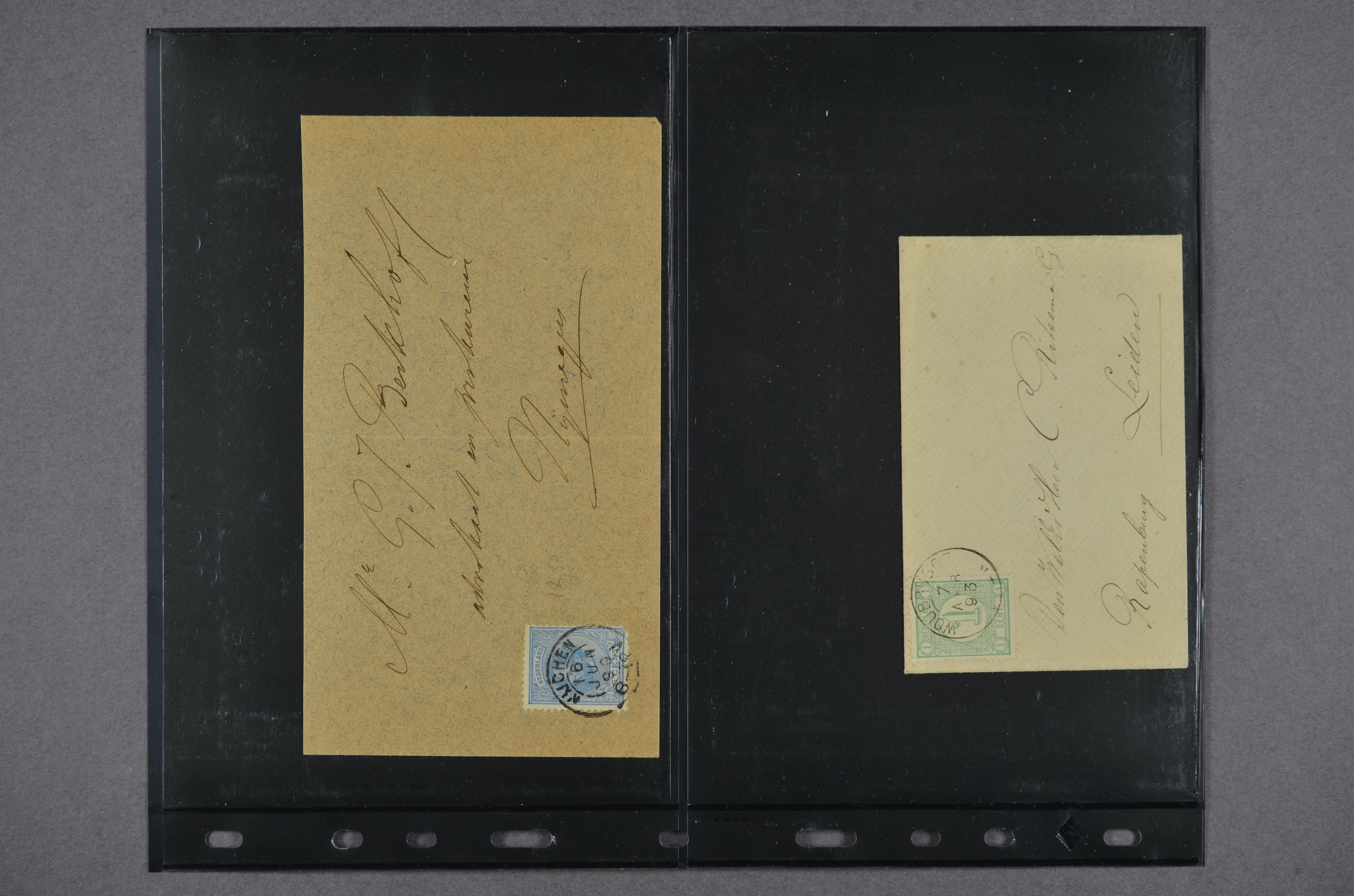 KLEINROND OP POSTSTUK, collectie van ruim 450 poststukken w.o. veel prentbriefkaarten, allemaal met kleinrondstempels van post-, hulppost- (merendeels) en bijpostkantoren, ook van spoorwegtrajecten, stations, Kamp bij Rijen (meerdere ex.), Amsterdam E, diverse schaarse stempels, enige doubletten, veel prachtige afstempelingen, enkele in blauw of violet, in 2 Leuchtturm-ringbanden. Prachtobject voor de handel of verzamelaar om op te zetten
