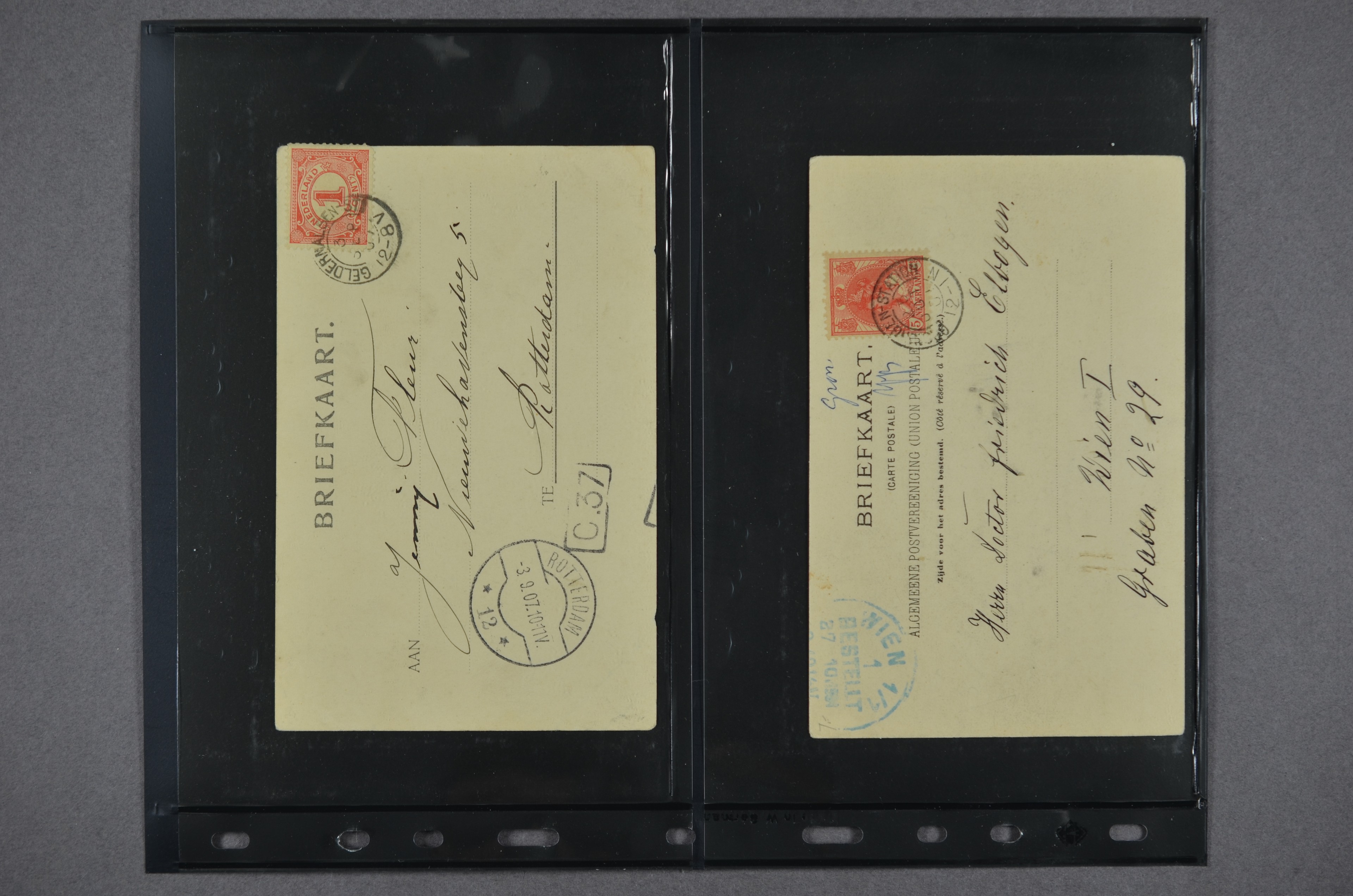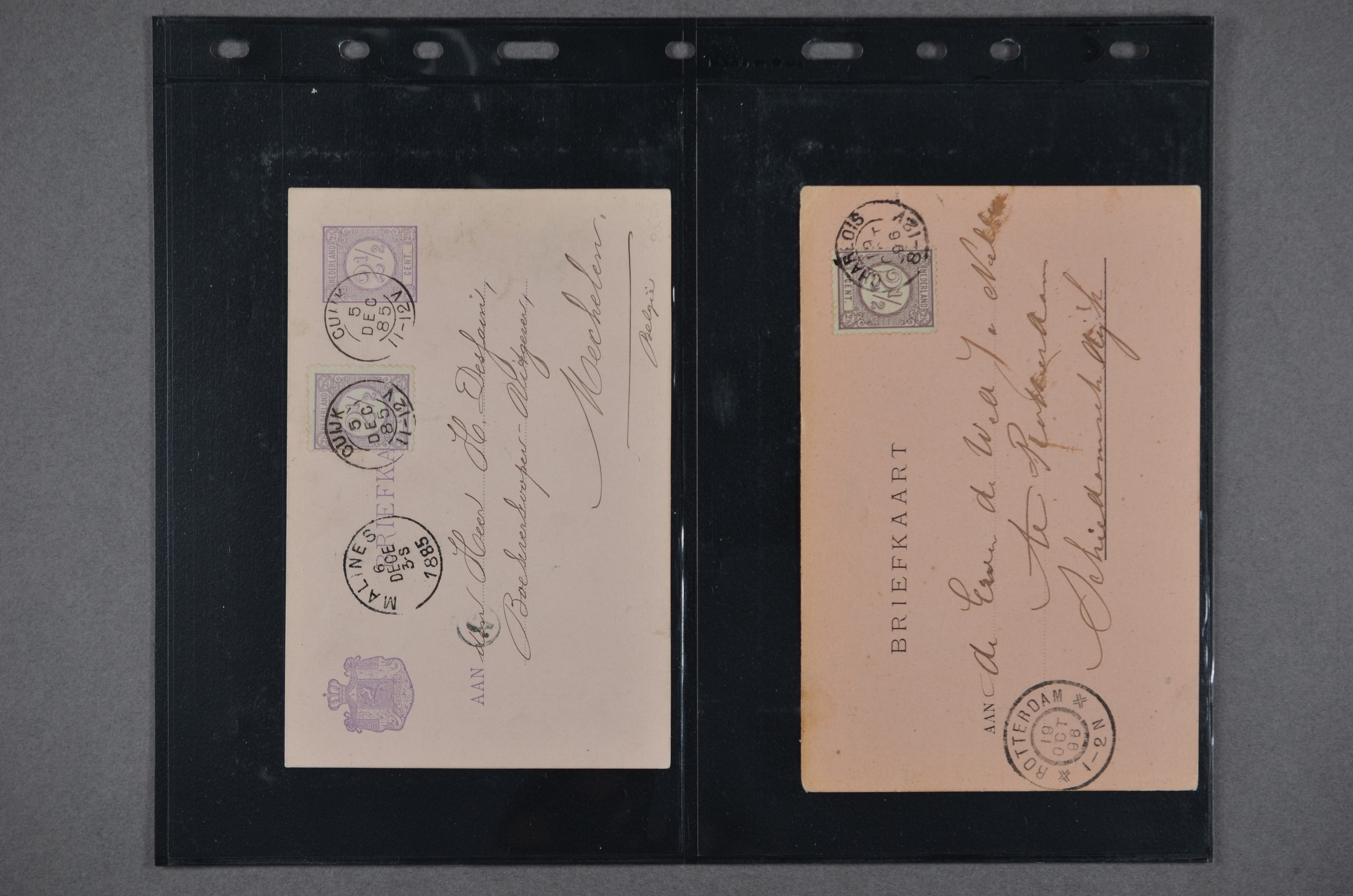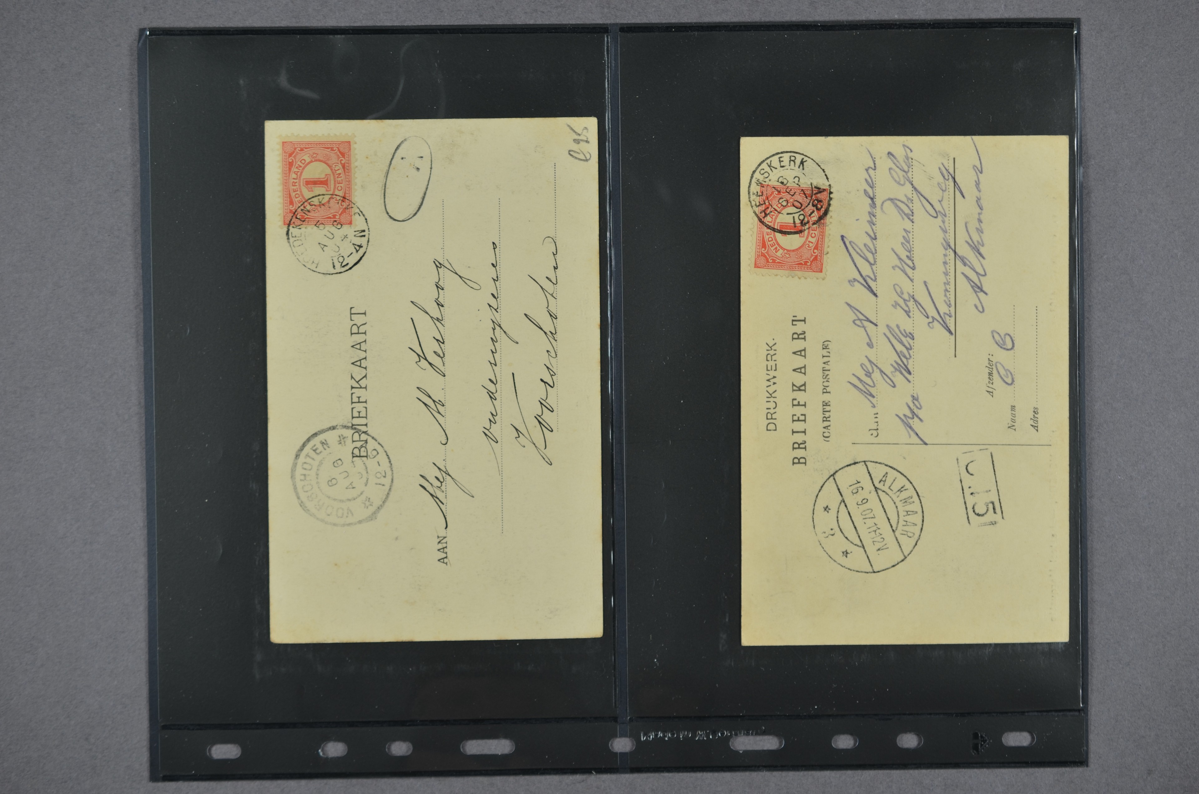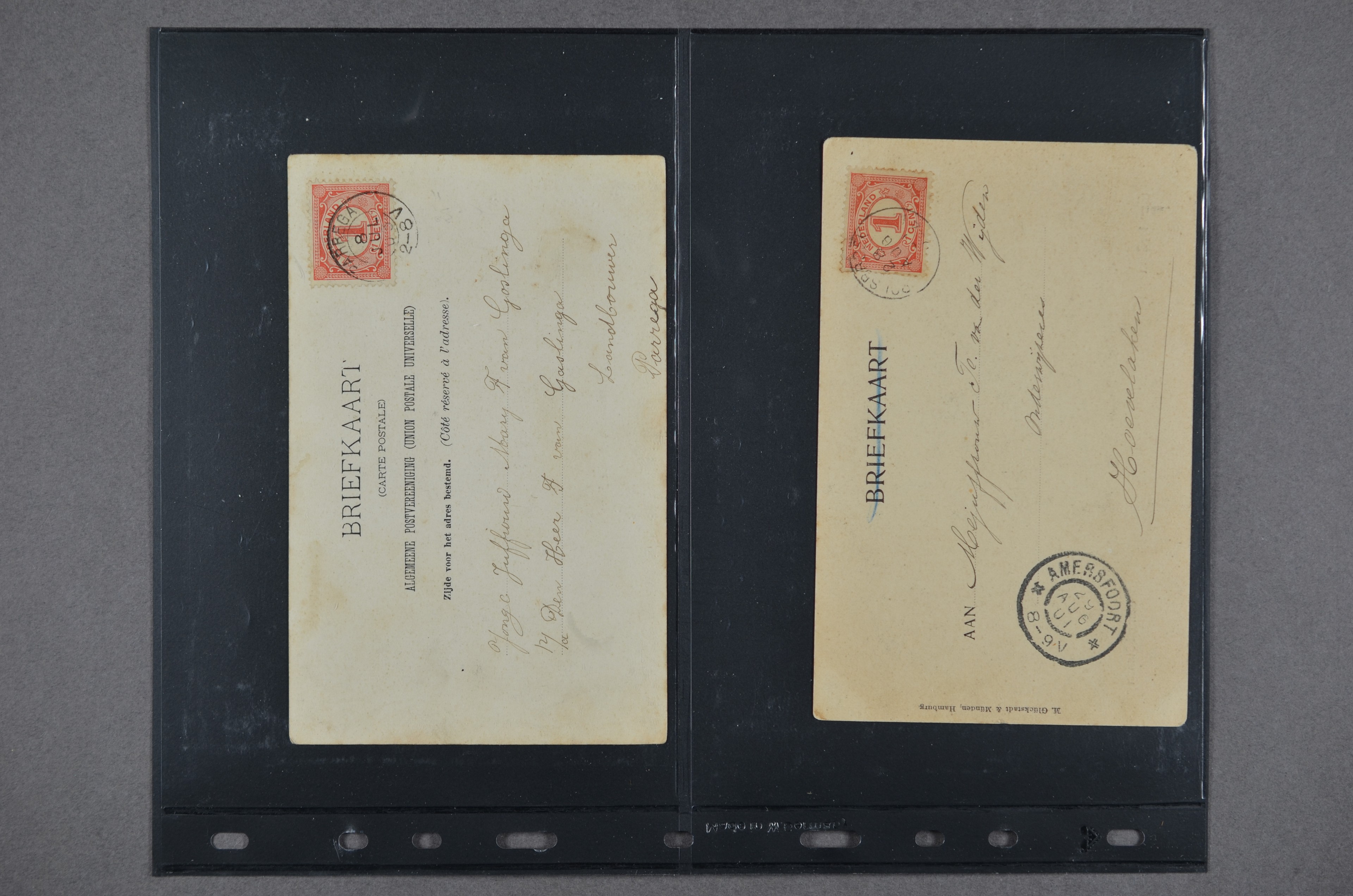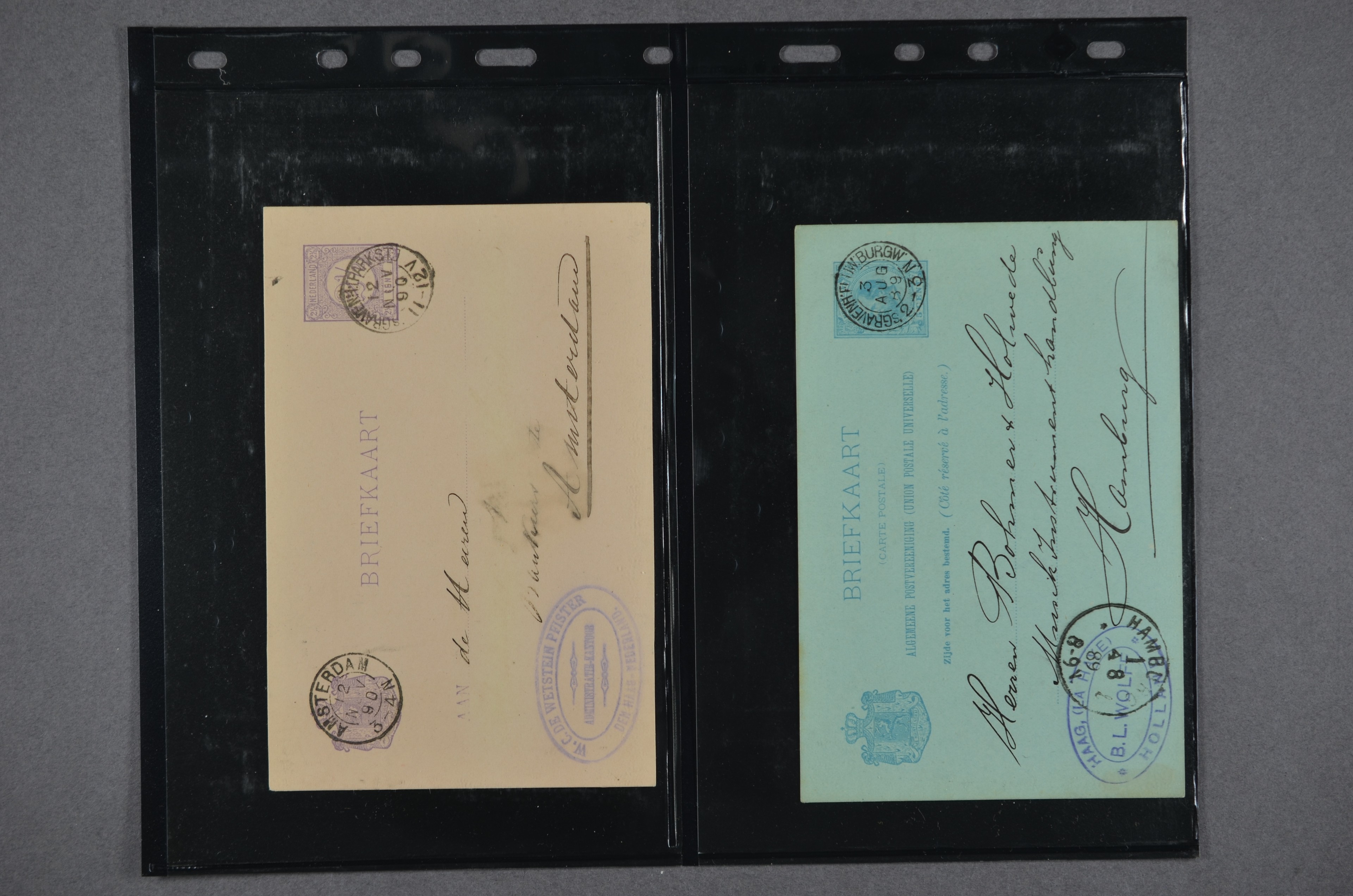 KLEINROND OP POSTSTUK, collectie van ruim 450 poststukken w.o. veel prentbriefkaarten, allemaal met kleinrondstempels van post-, hulppost- (merendeels) en bijpostkantoren, ook van spoorwegtrajecten, stations, Kamp bij Rijen (meerdere ex.), Amsterdam E, diverse schaarse stempels, enige doubletten, veel prachtige afstempelingen, enkele in blauw of violet, in 2 Leuchtturm-ringbanden. Prachtobject voor de handel of verzamelaar om op te zetten