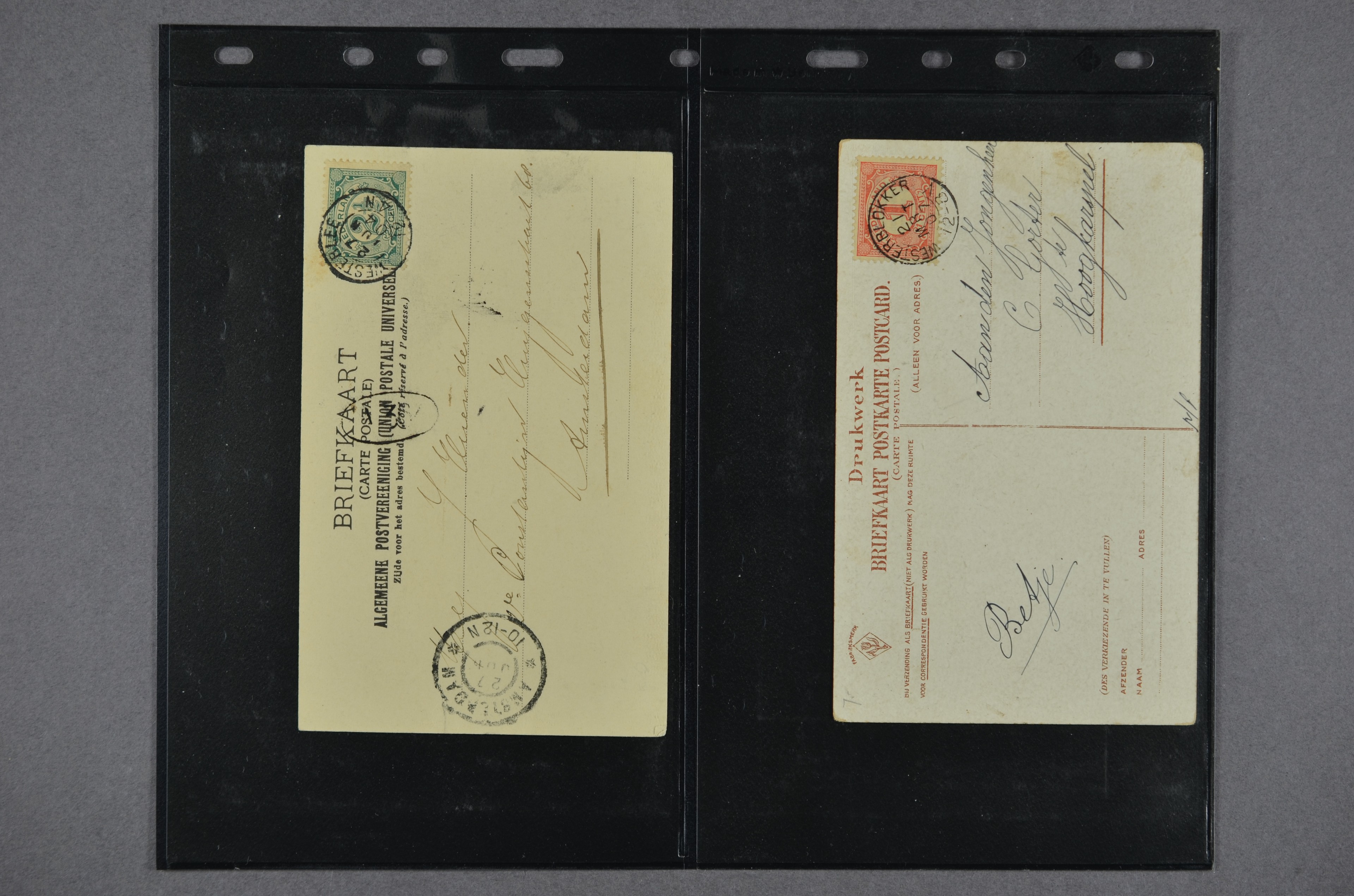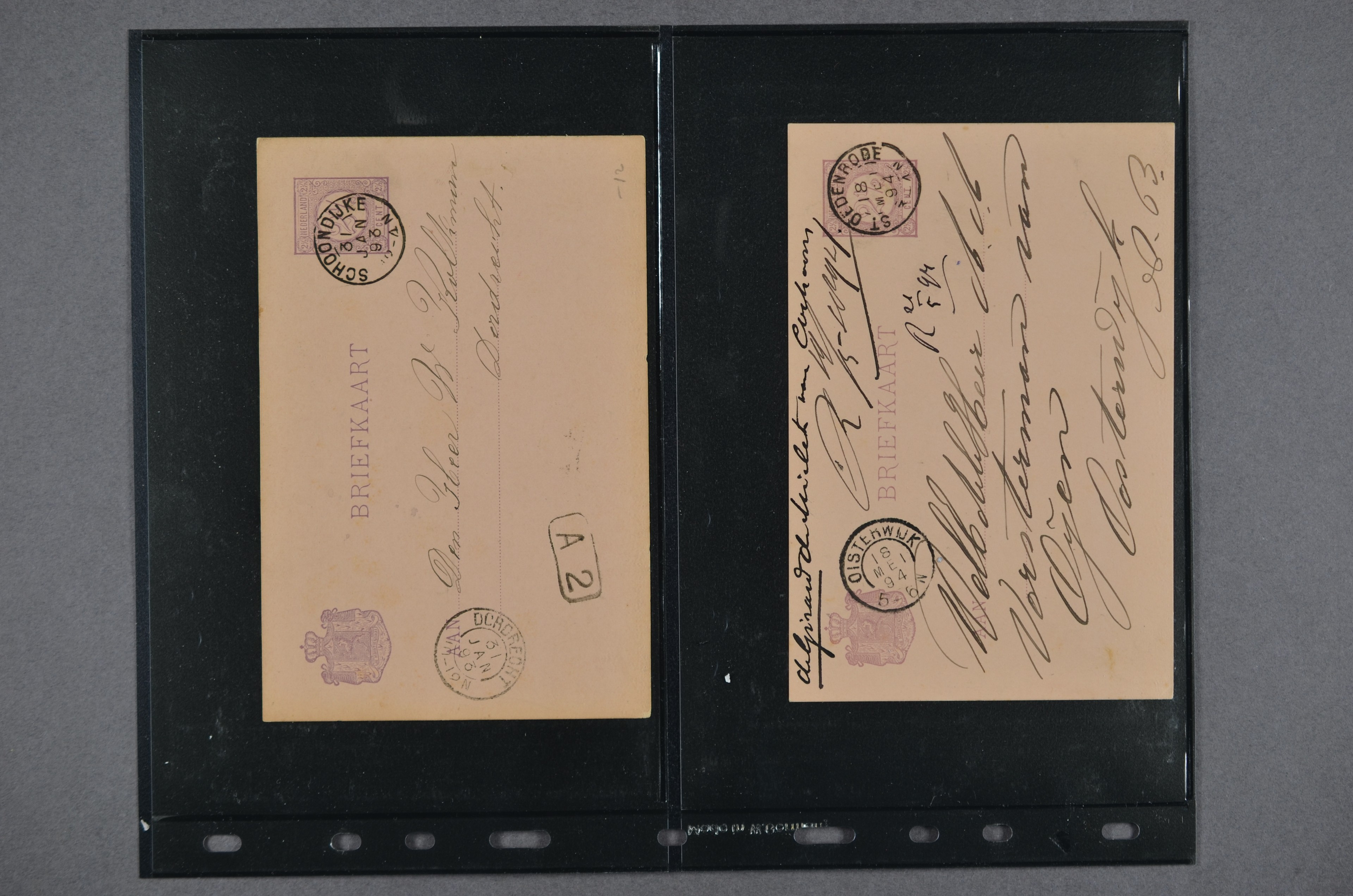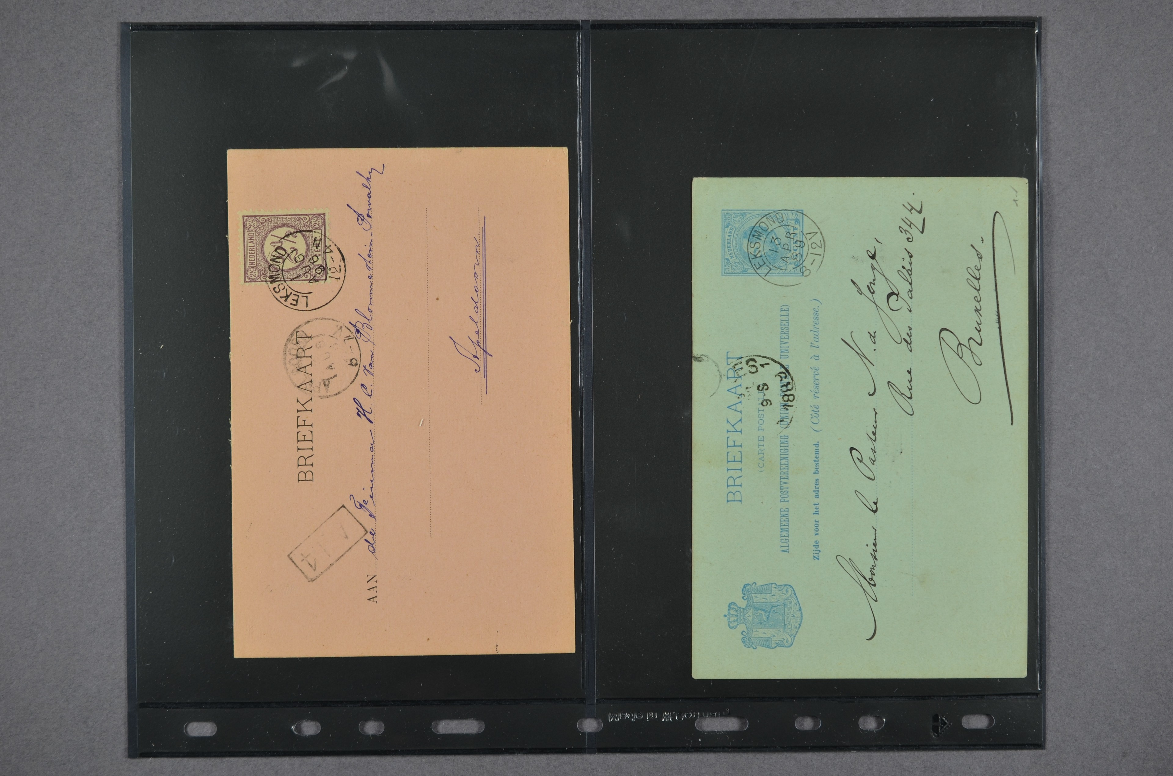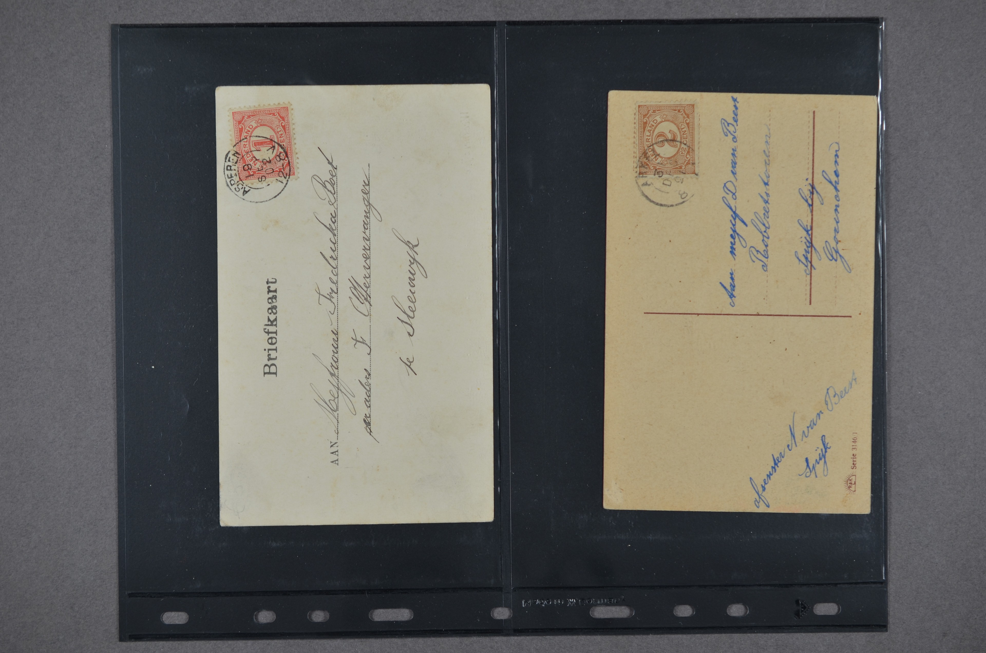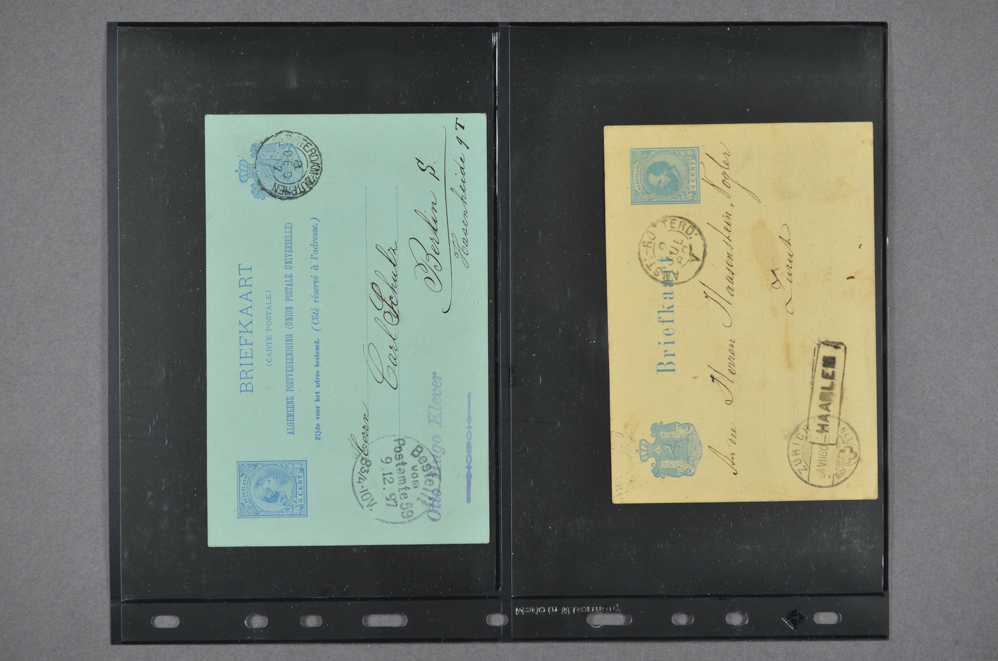 KLEINROND OP POSTSTUK, collectie van ruim 450 poststukken w.o. veel prentbriefkaarten, allemaal met kleinrondstempels van post-, hulppost- (merendeels) en bijpostkantoren, ook van spoorwegtrajecten, stations, Kamp bij Rijen (meerdere ex.), Amsterdam E, diverse schaarse stempels, enige doubletten, veel prachtige afstempelingen, enkele in blauw of violet, in 2 Leuchtturm-ringbanden. Prachtobject voor de handel of verzamelaar om op te zetten