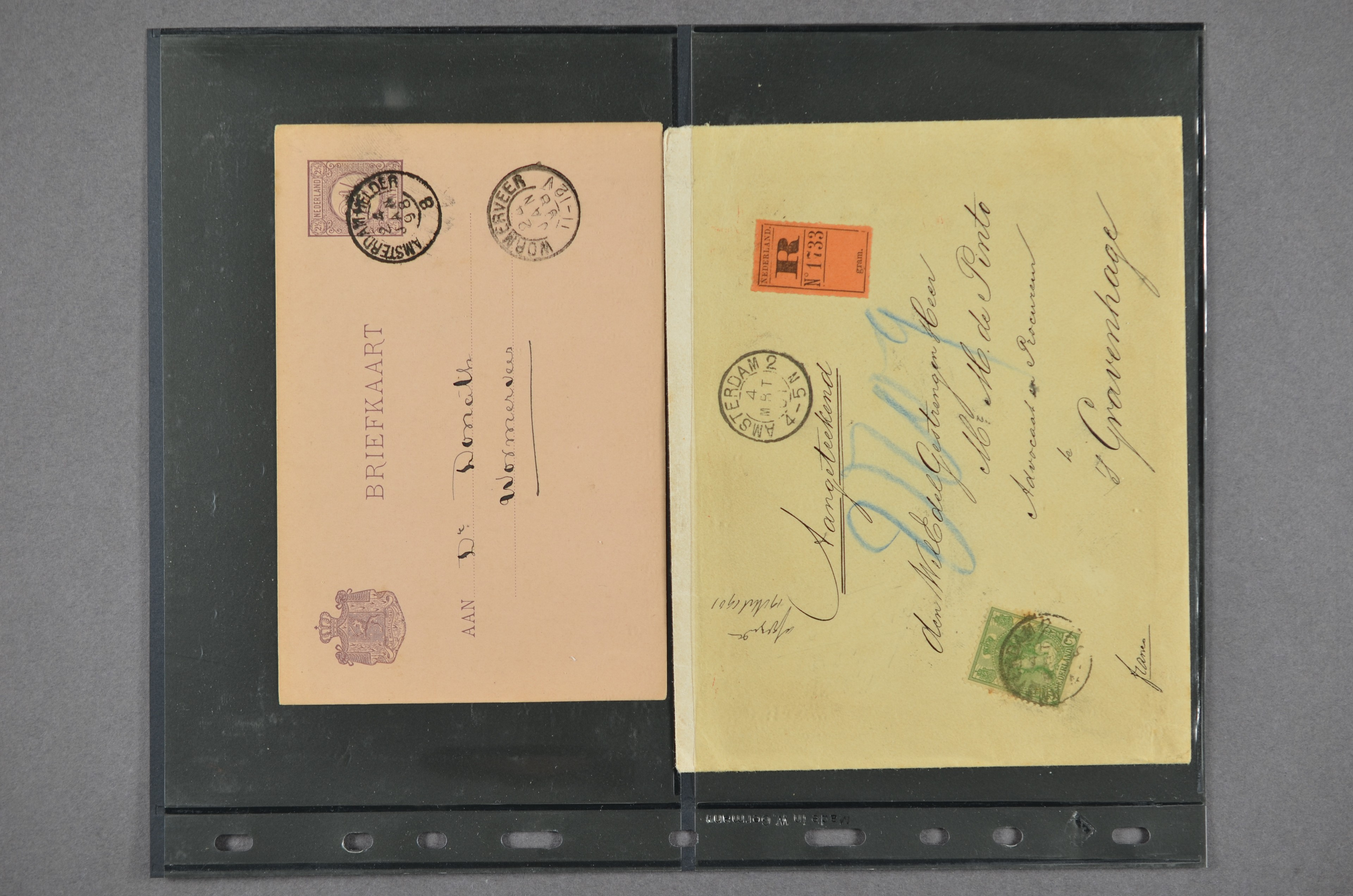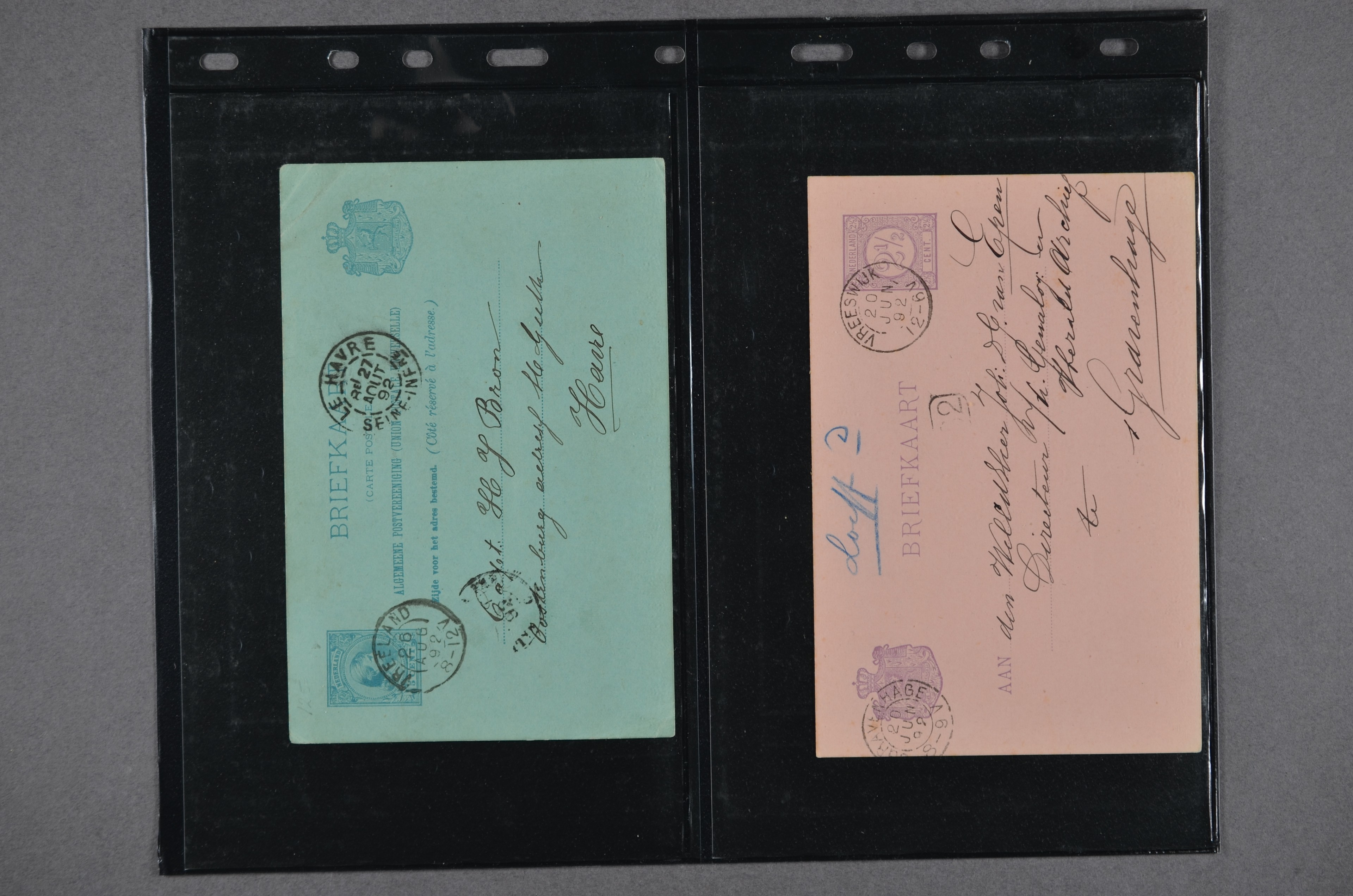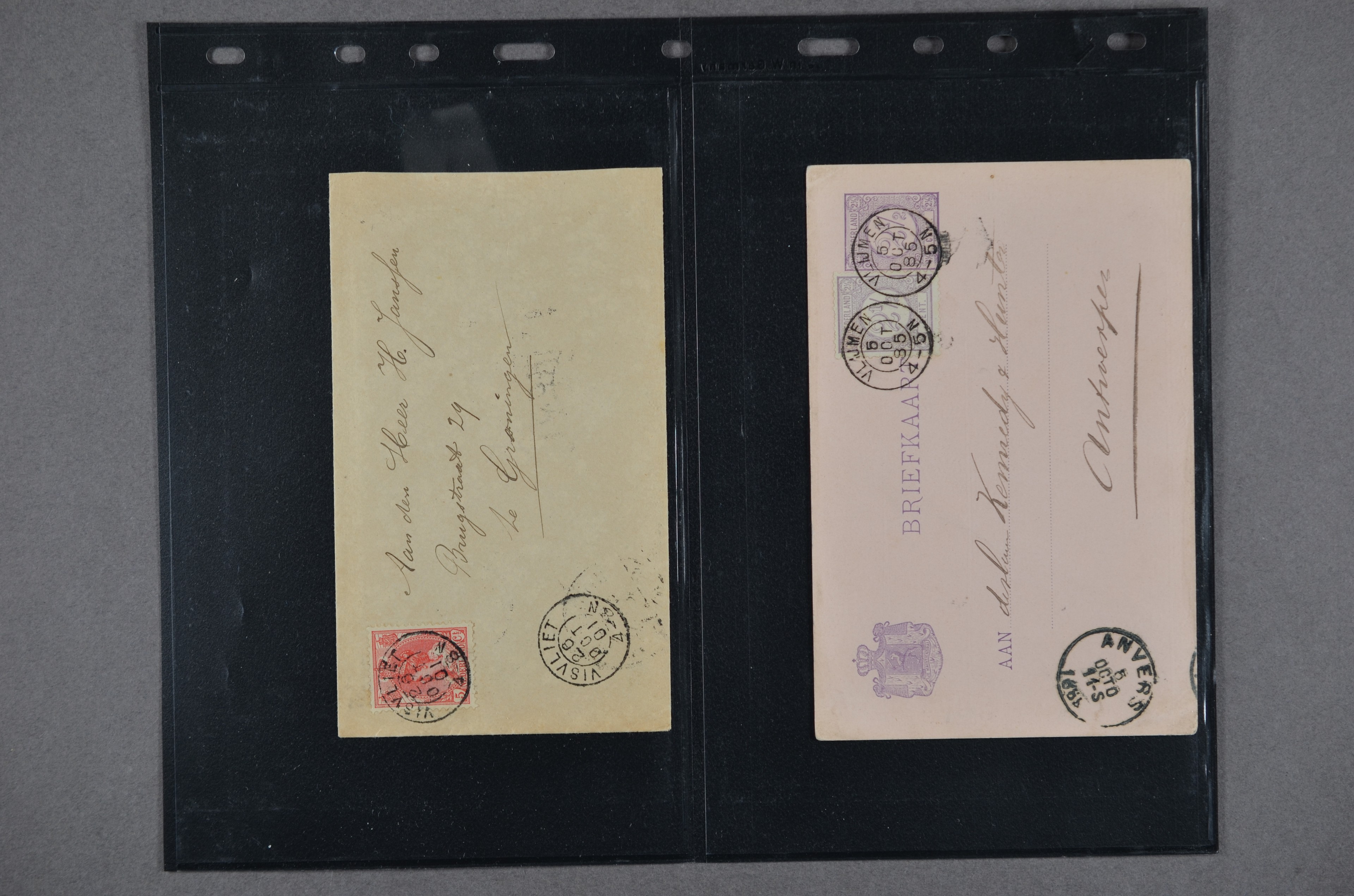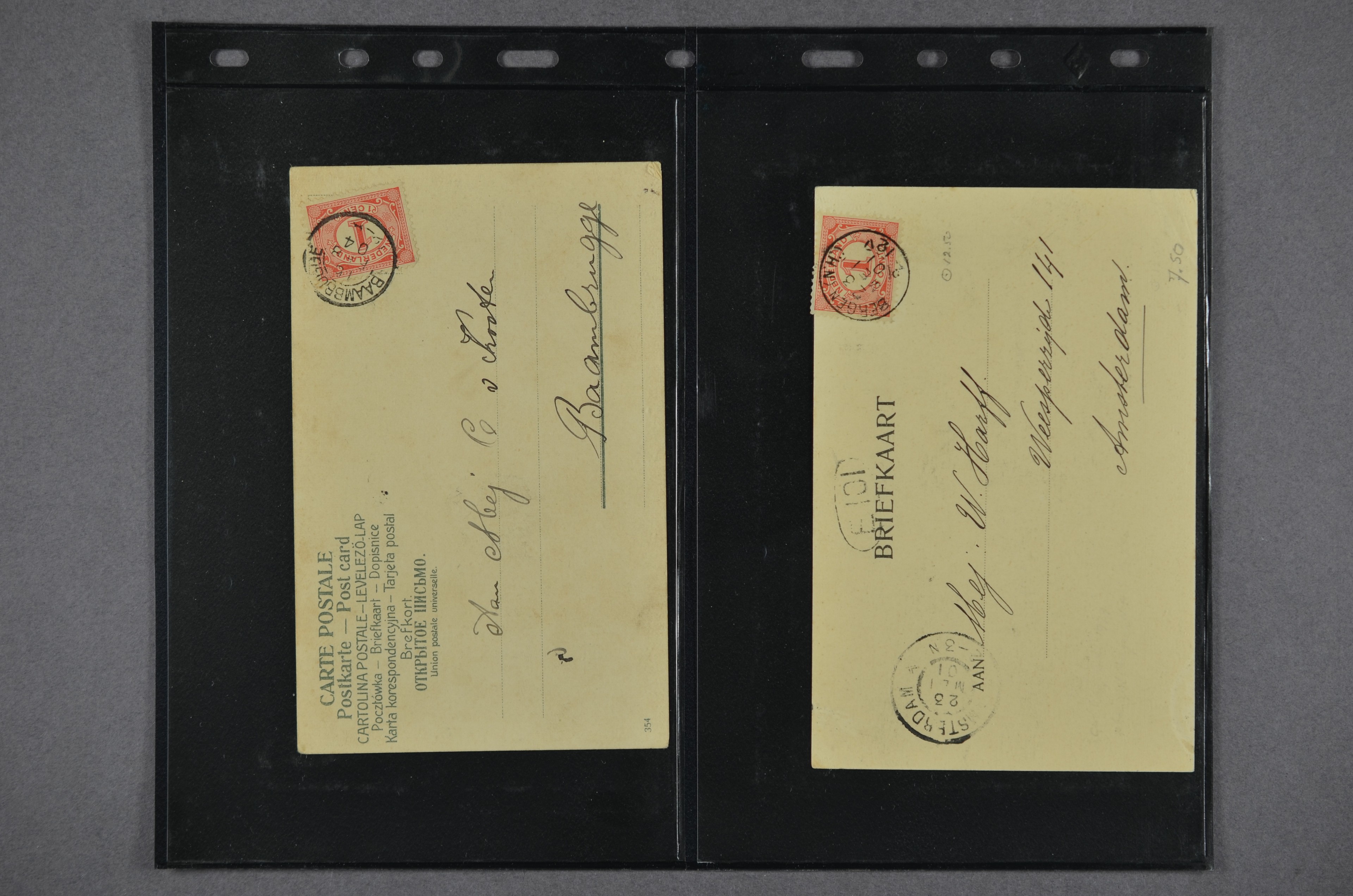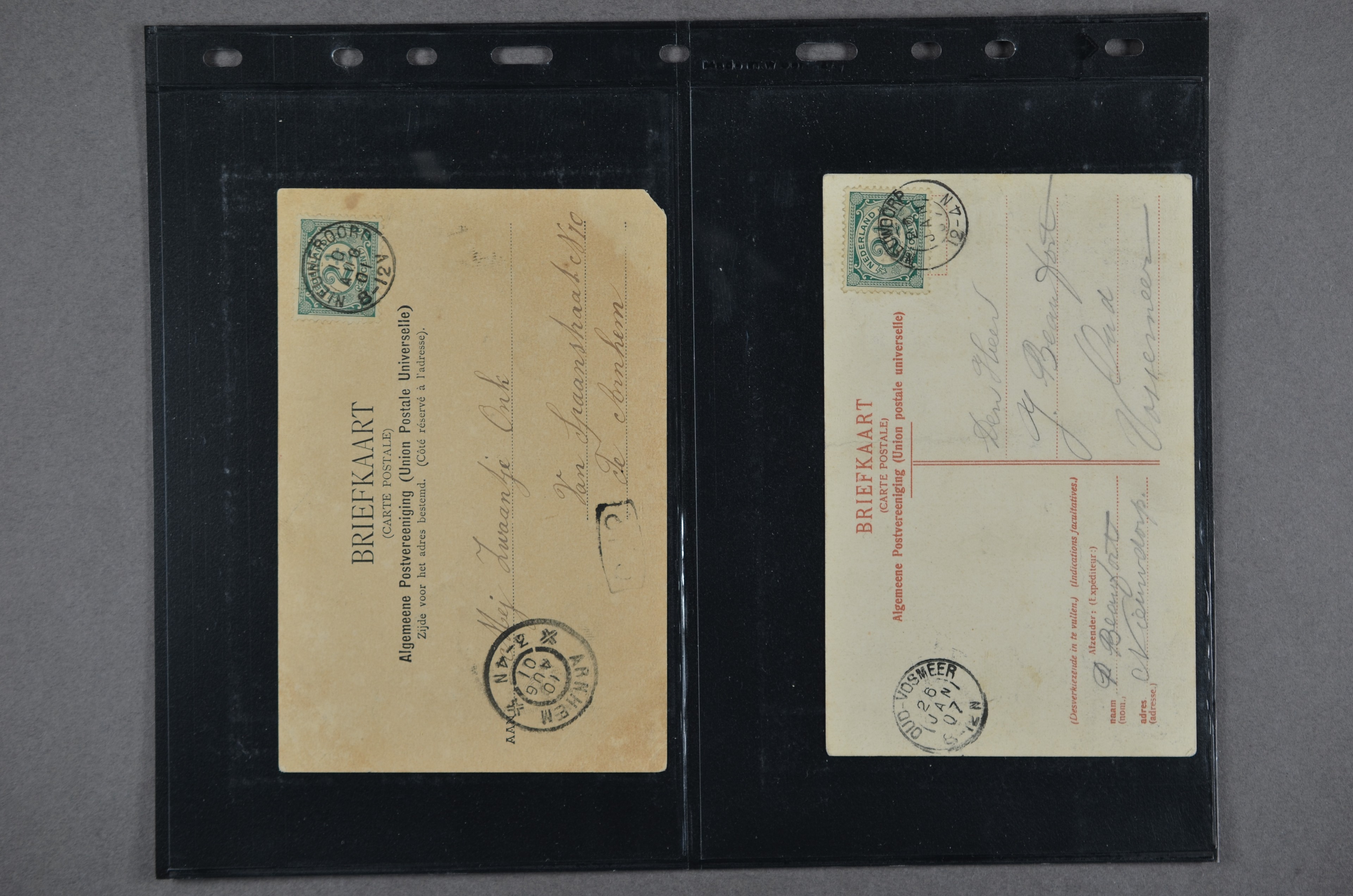 KLEINROND OP POSTSTUK, collectie van ruim 450 poststukken w.o. veel prentbriefkaarten, allemaal met kleinrondstempels van post-, hulppost- (merendeels) en bijpostkantoren, ook van spoorwegtrajecten, stations, Kamp bij Rijen (meerdere ex.), Amsterdam E, diverse schaarse stempels, enige doubletten, veel prachtige afstempelingen, enkele in blauw of violet, in 2 Leuchtturm-ringbanden. Prachtobject voor de handel of verzamelaar om op te zetten
