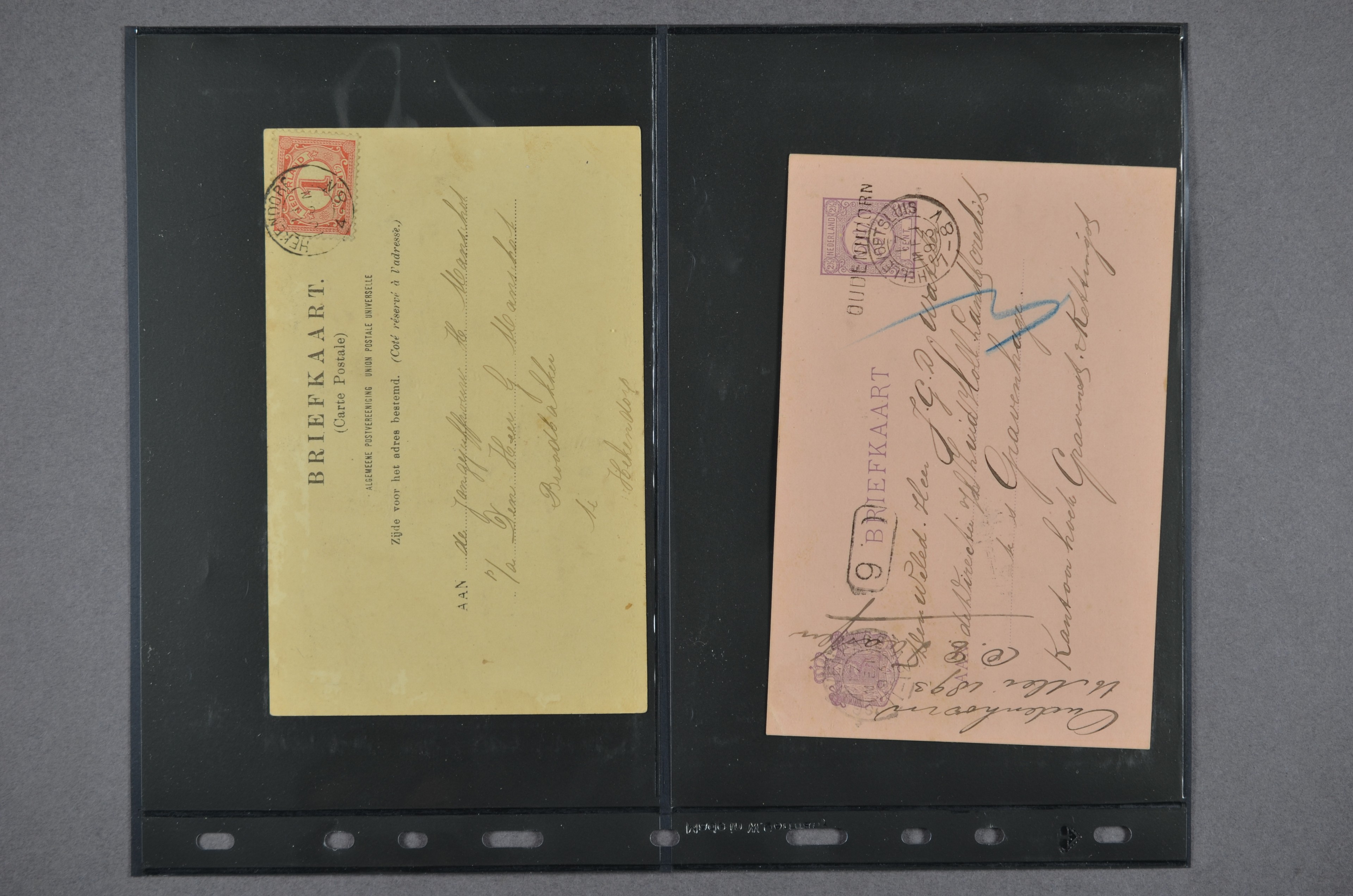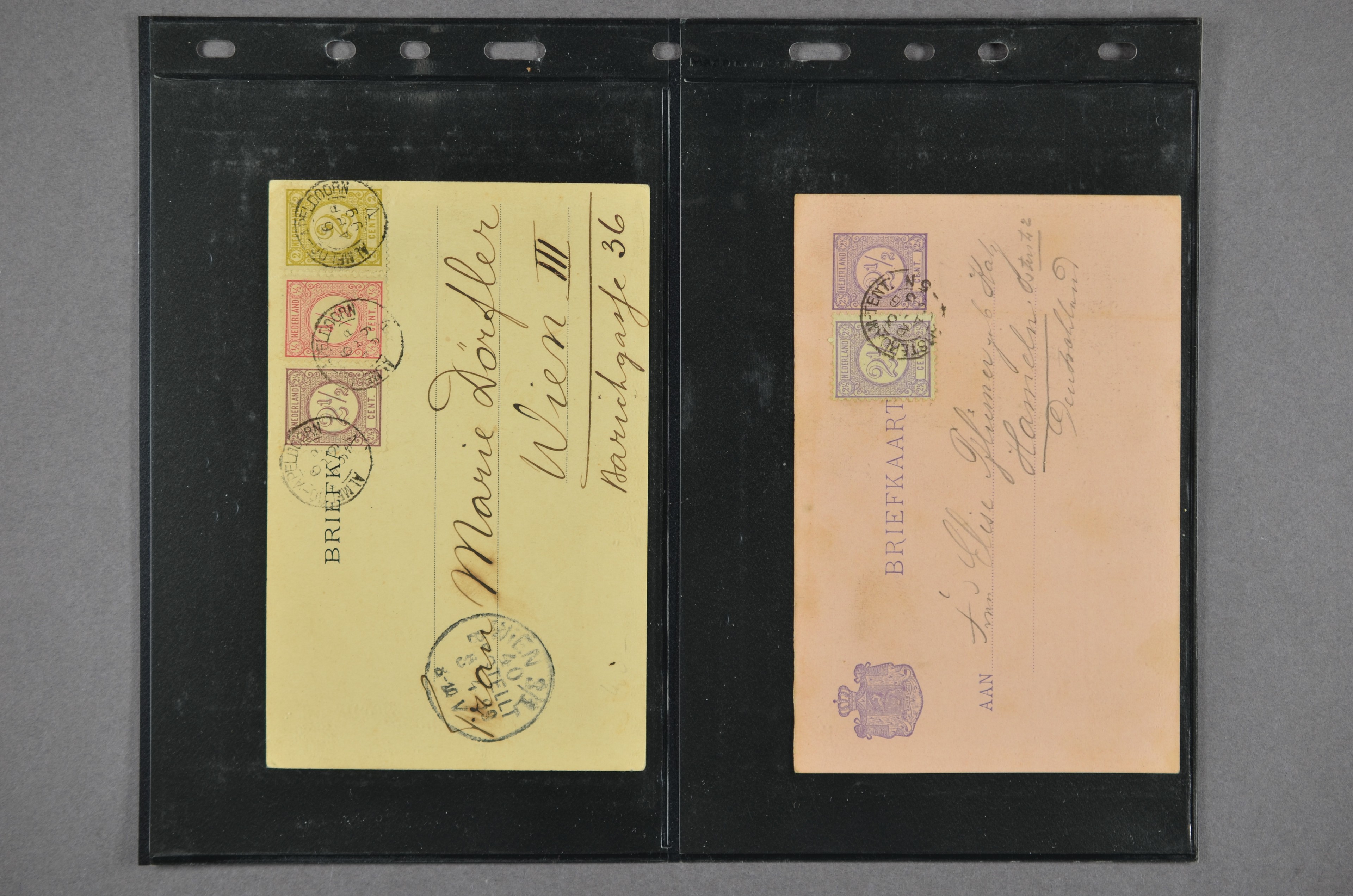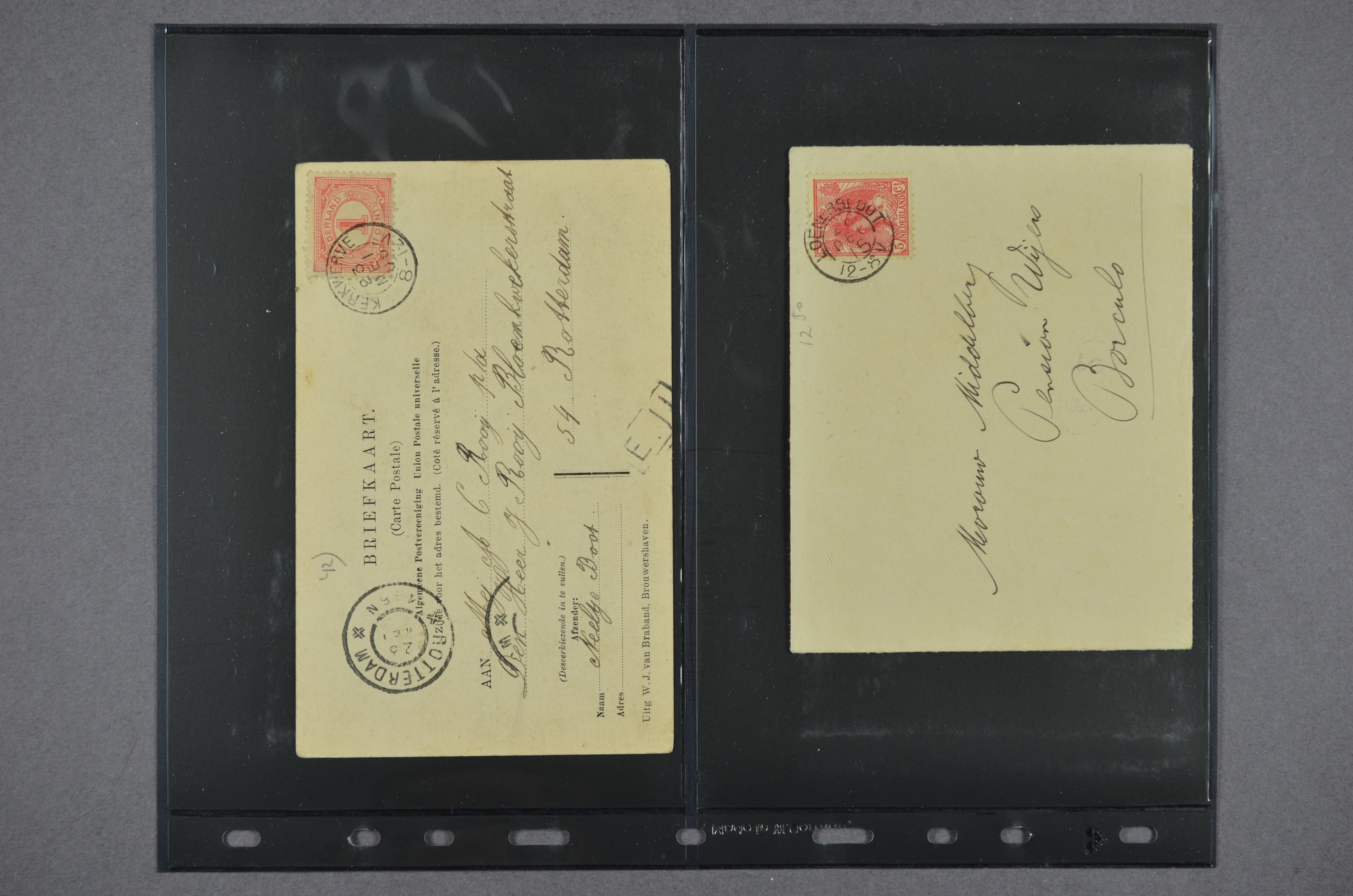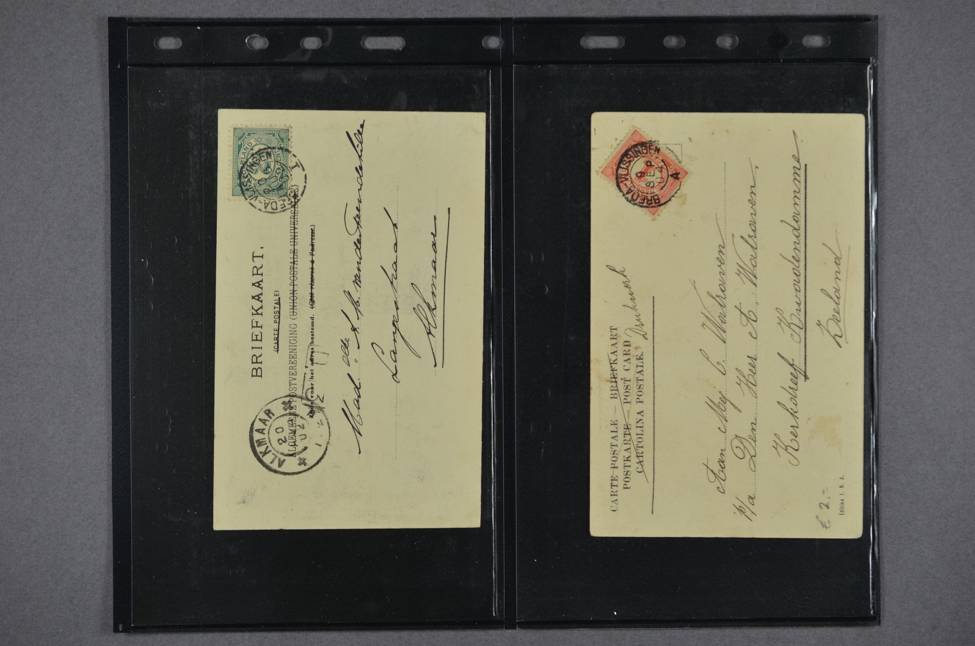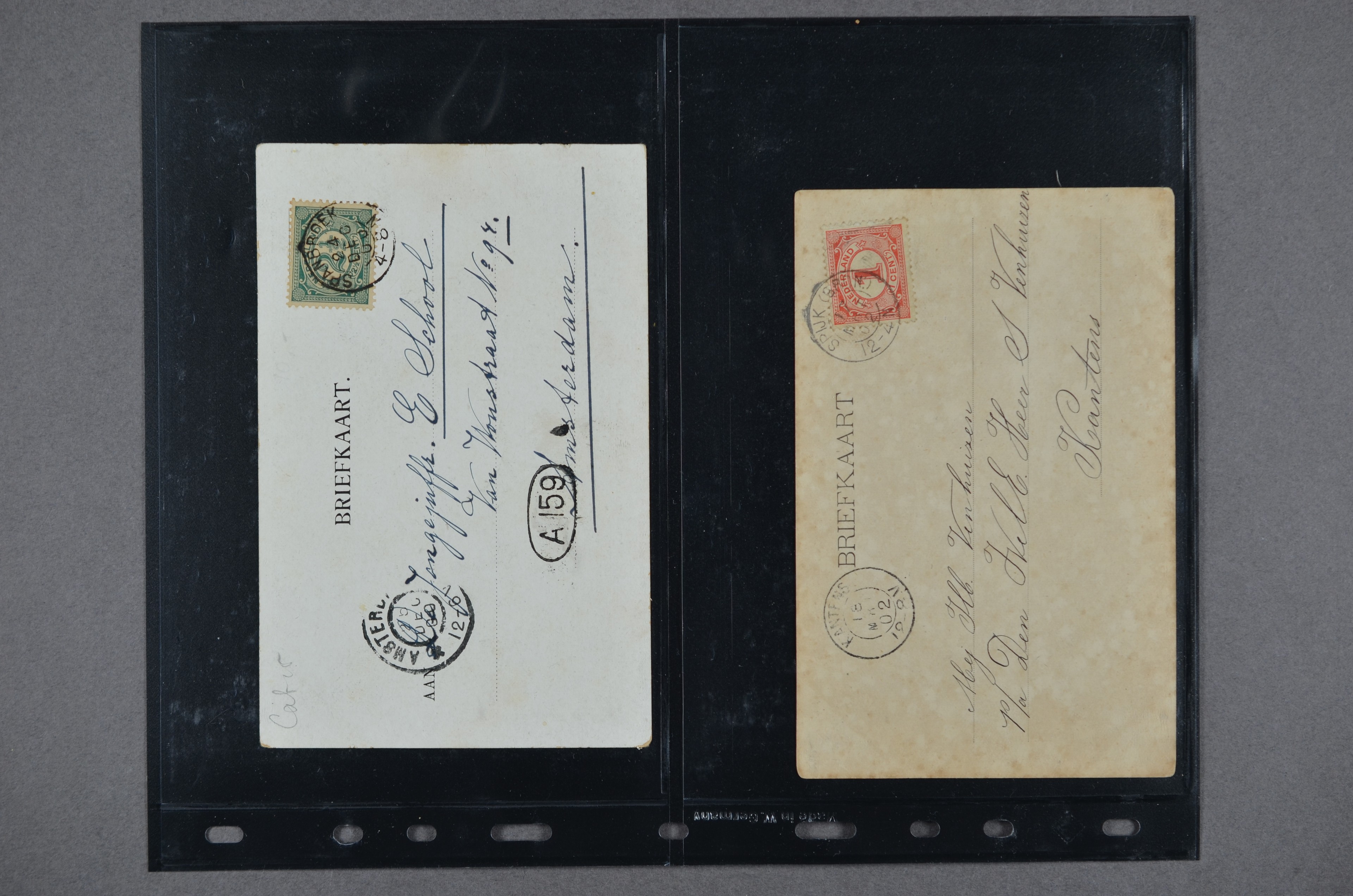 KLEINROND OP POSTSTUK, collectie van ruim 450 poststukken w.o. veel prentbriefkaarten, allemaal met kleinrondstempels van post-, hulppost- (merendeels) en bijpostkantoren, ook van spoorwegtrajecten, stations, Kamp bij Rijen (meerdere ex.), Amsterdam E, diverse schaarse stempels, enige doubletten, veel prachtige afstempelingen, enkele in blauw of violet, in 2 Leuchtturm-ringbanden. Prachtobject voor de handel of verzamelaar om op te zetten