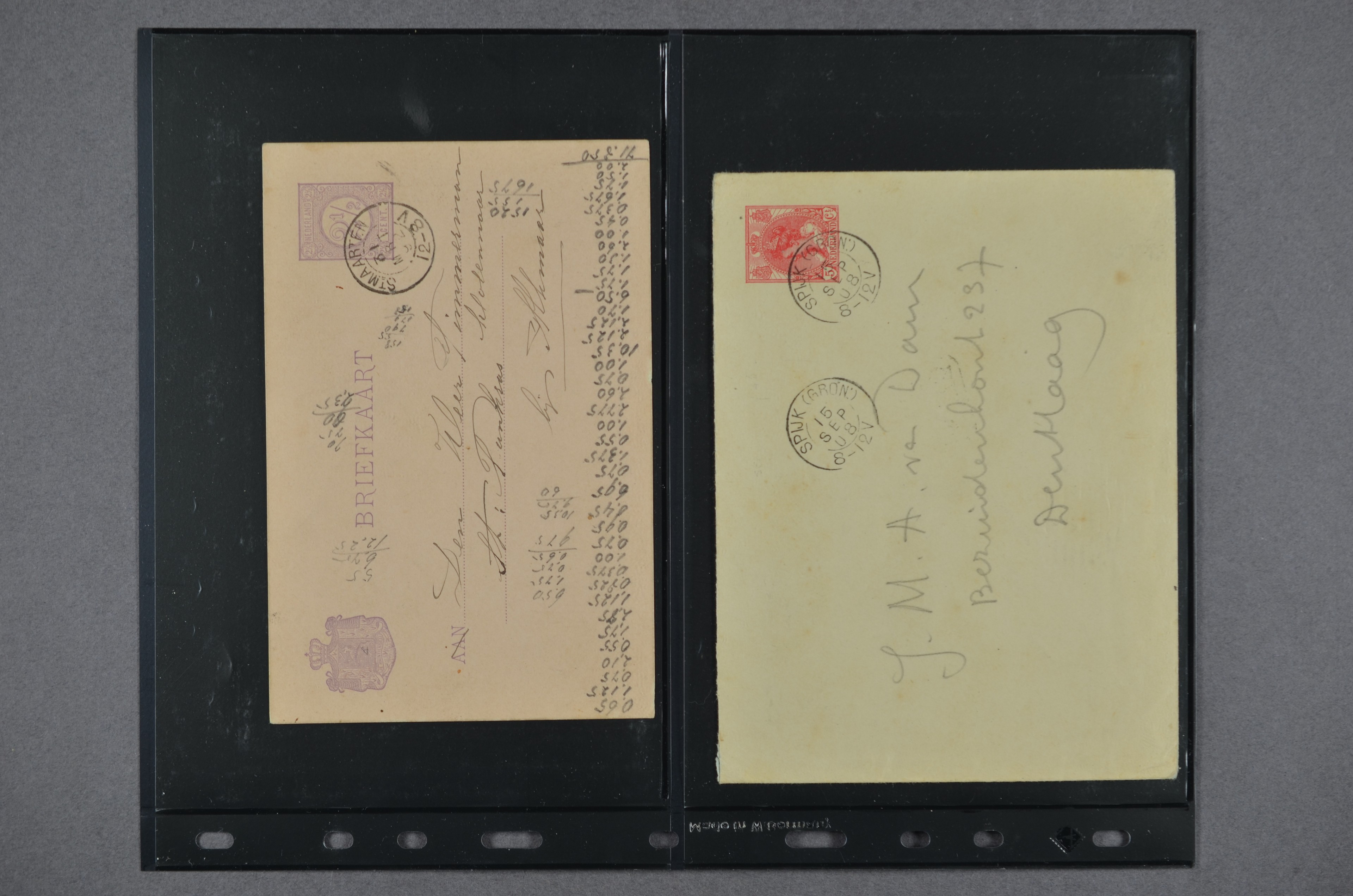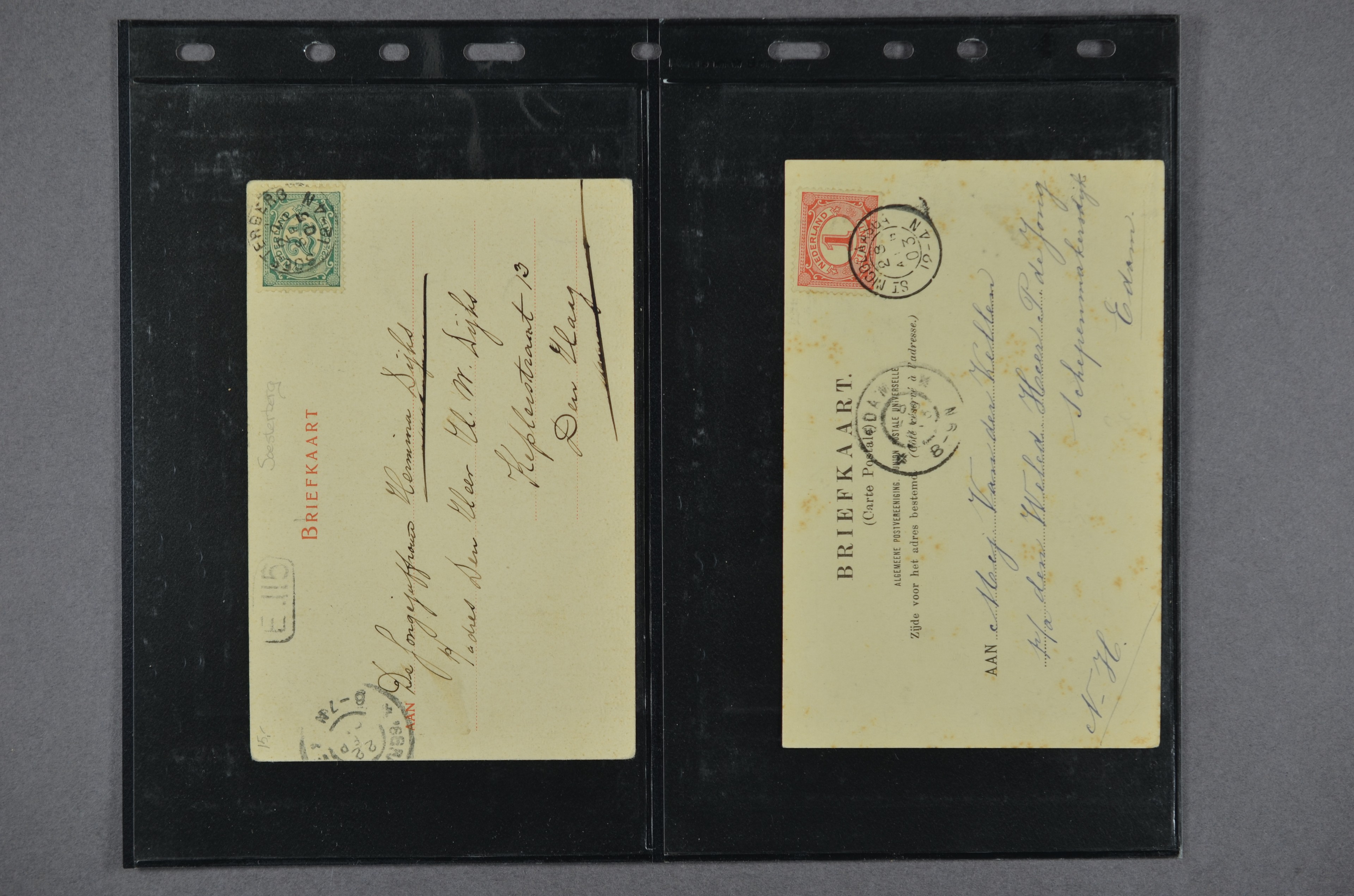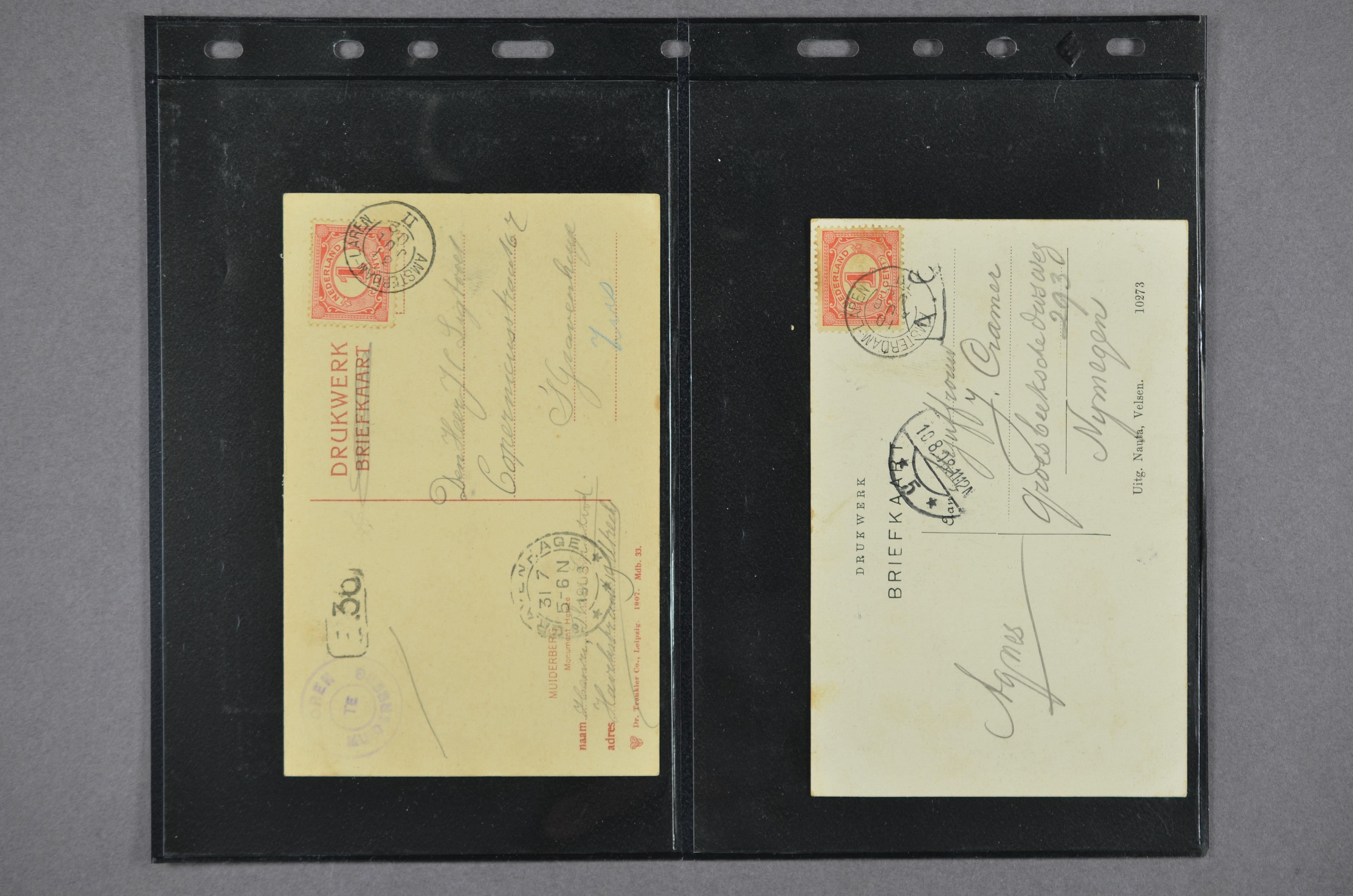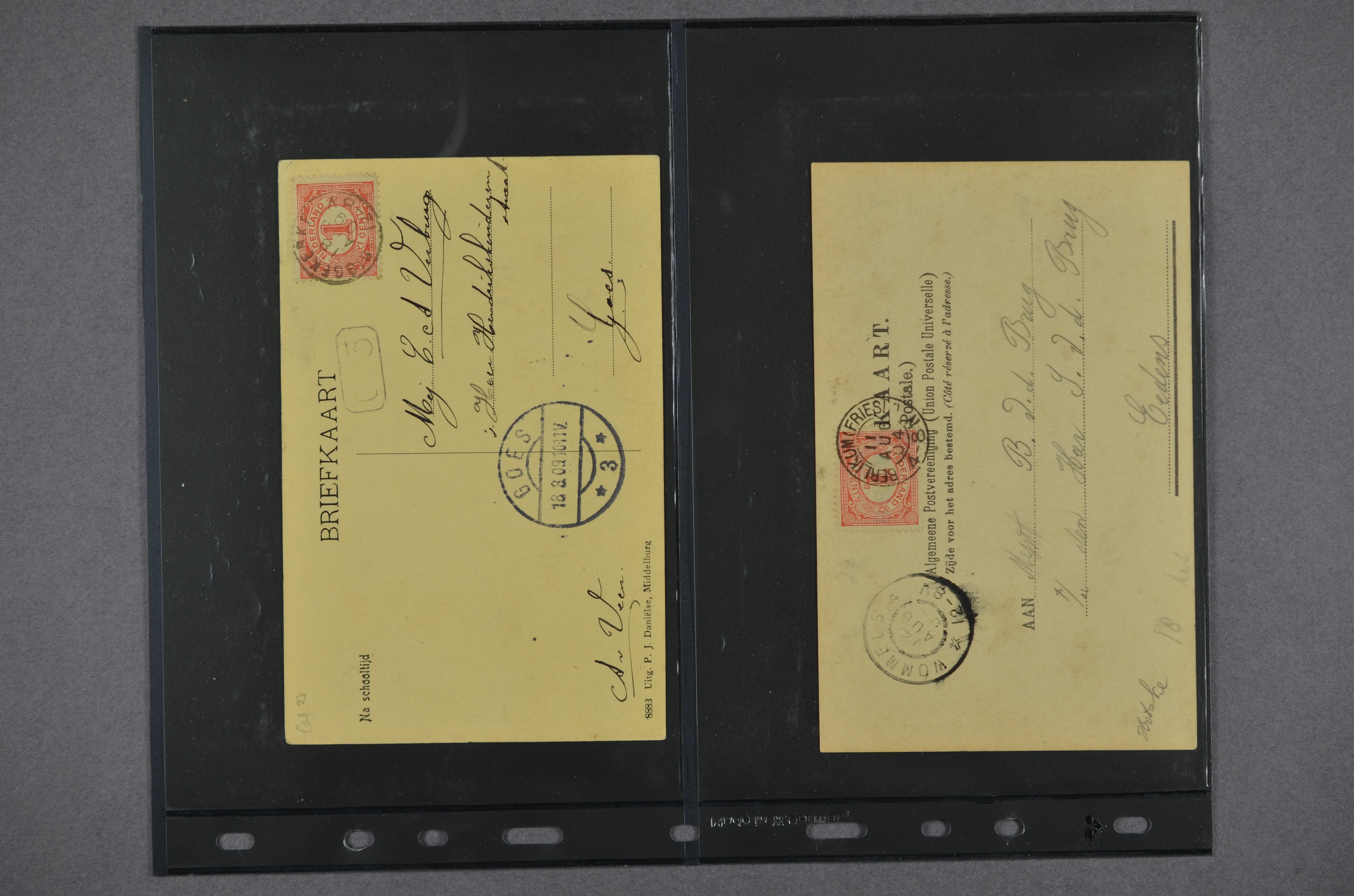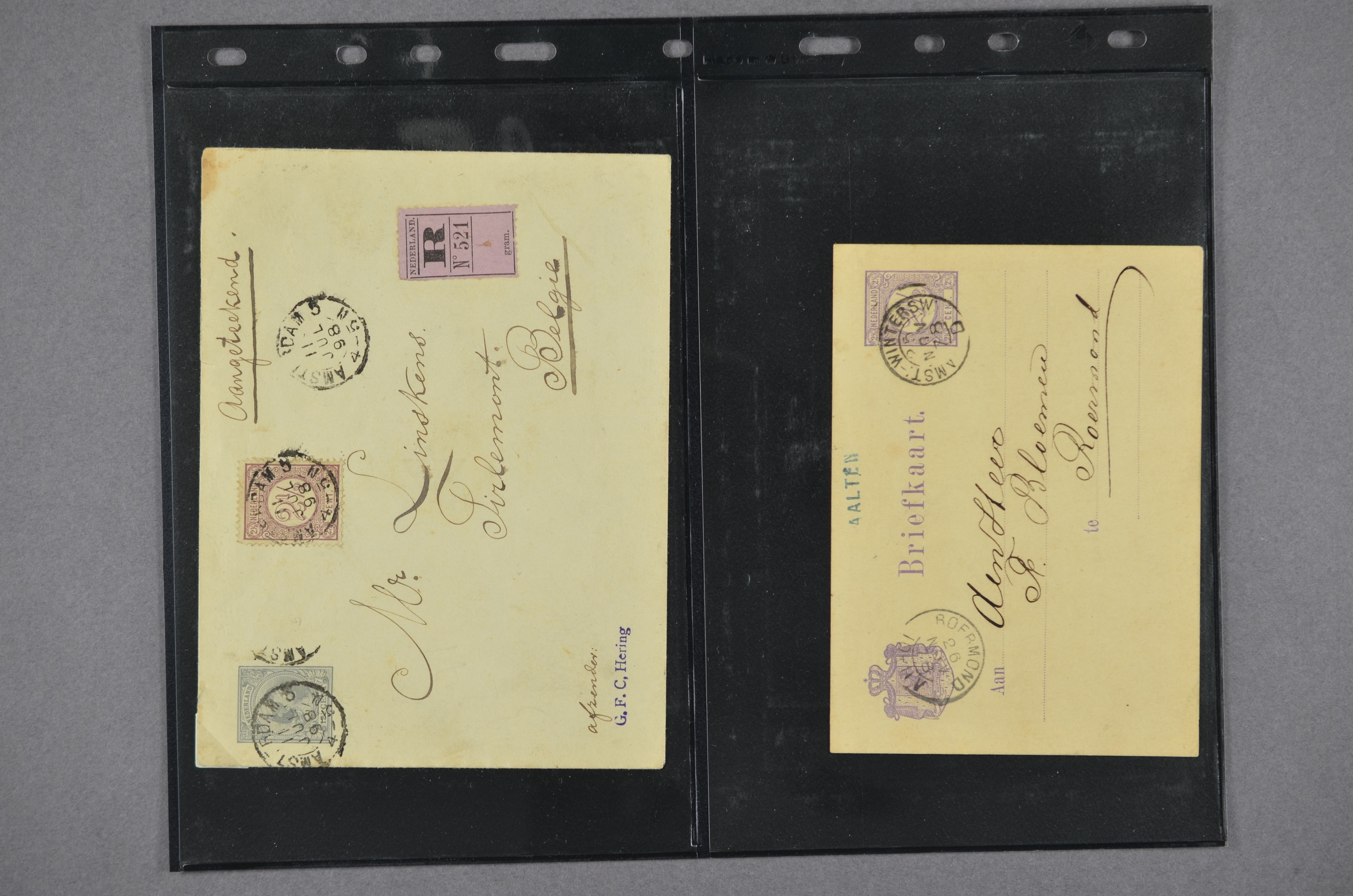 KLEINROND OP POSTSTUK, collectie van ruim 450 poststukken w.o. veel prentbriefkaarten, allemaal met kleinrondstempels van post-, hulppost- (merendeels) en bijpostkantoren, ook van spoorwegtrajecten, stations, Kamp bij Rijen (meerdere ex.), Amsterdam E, diverse schaarse stempels, enige doubletten, veel prachtige afstempelingen, enkele in blauw of violet, in 2 Leuchtturm-ringbanden. Prachtobject voor de handel of verzamelaar om op te zetten