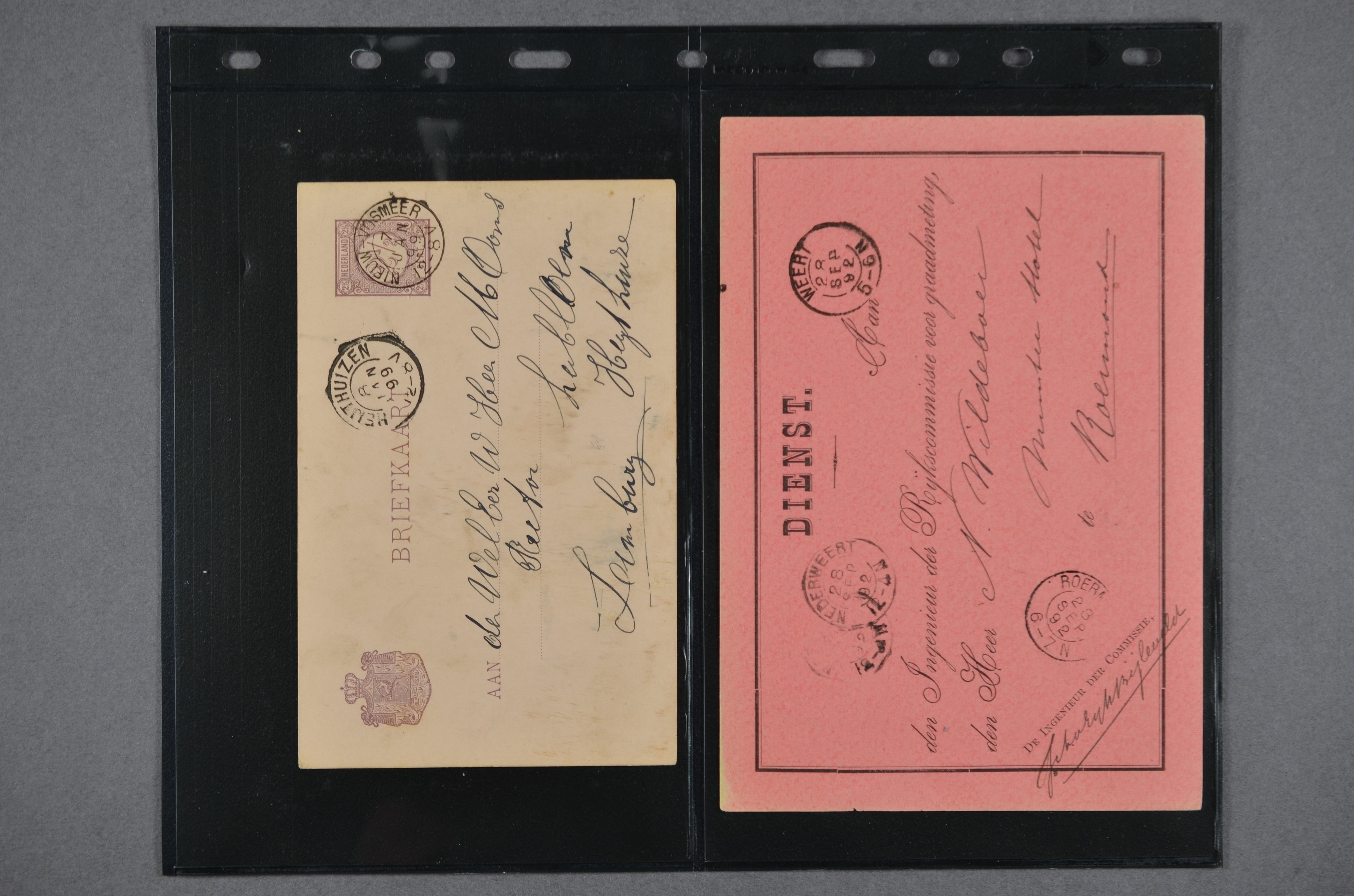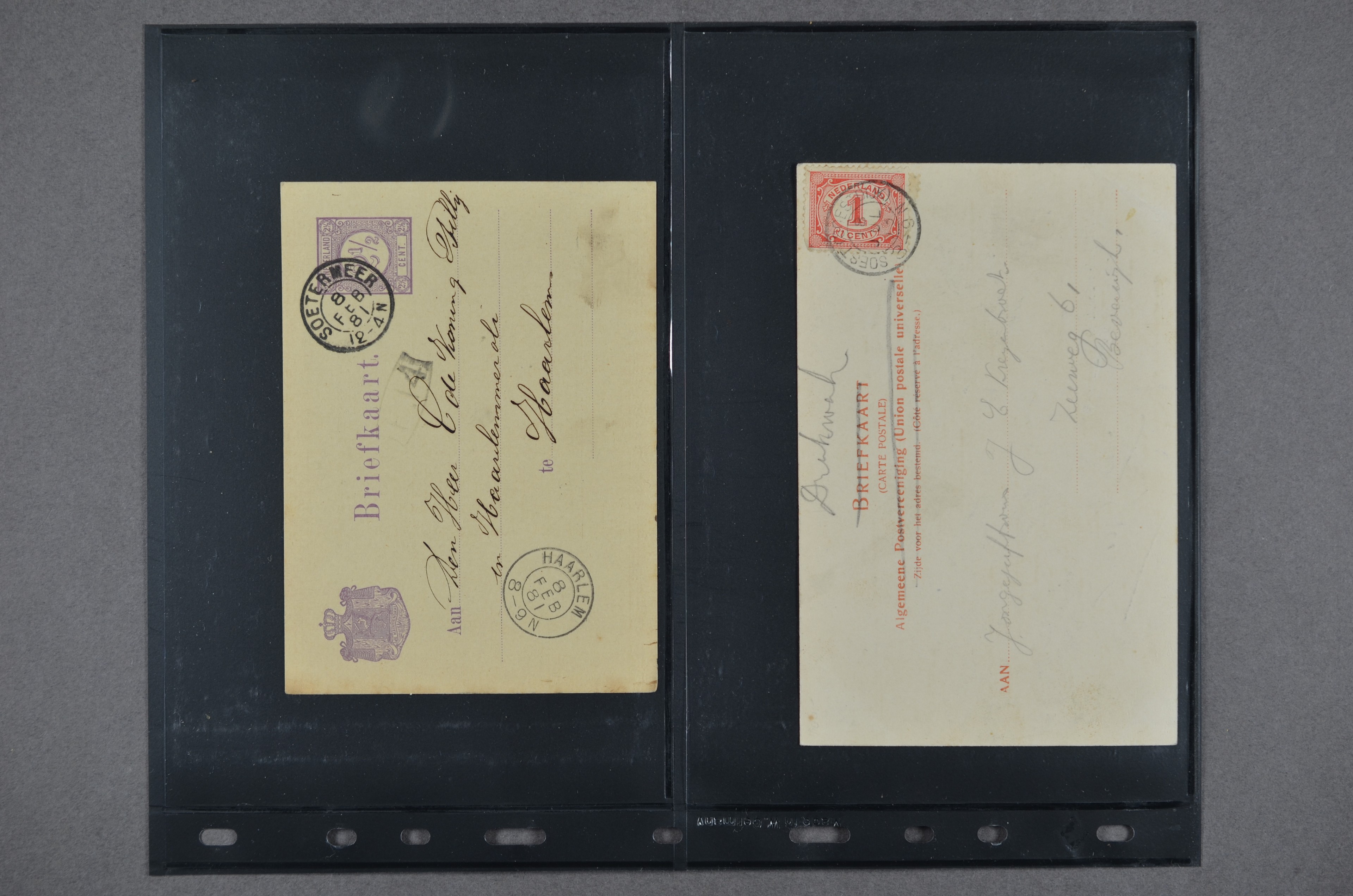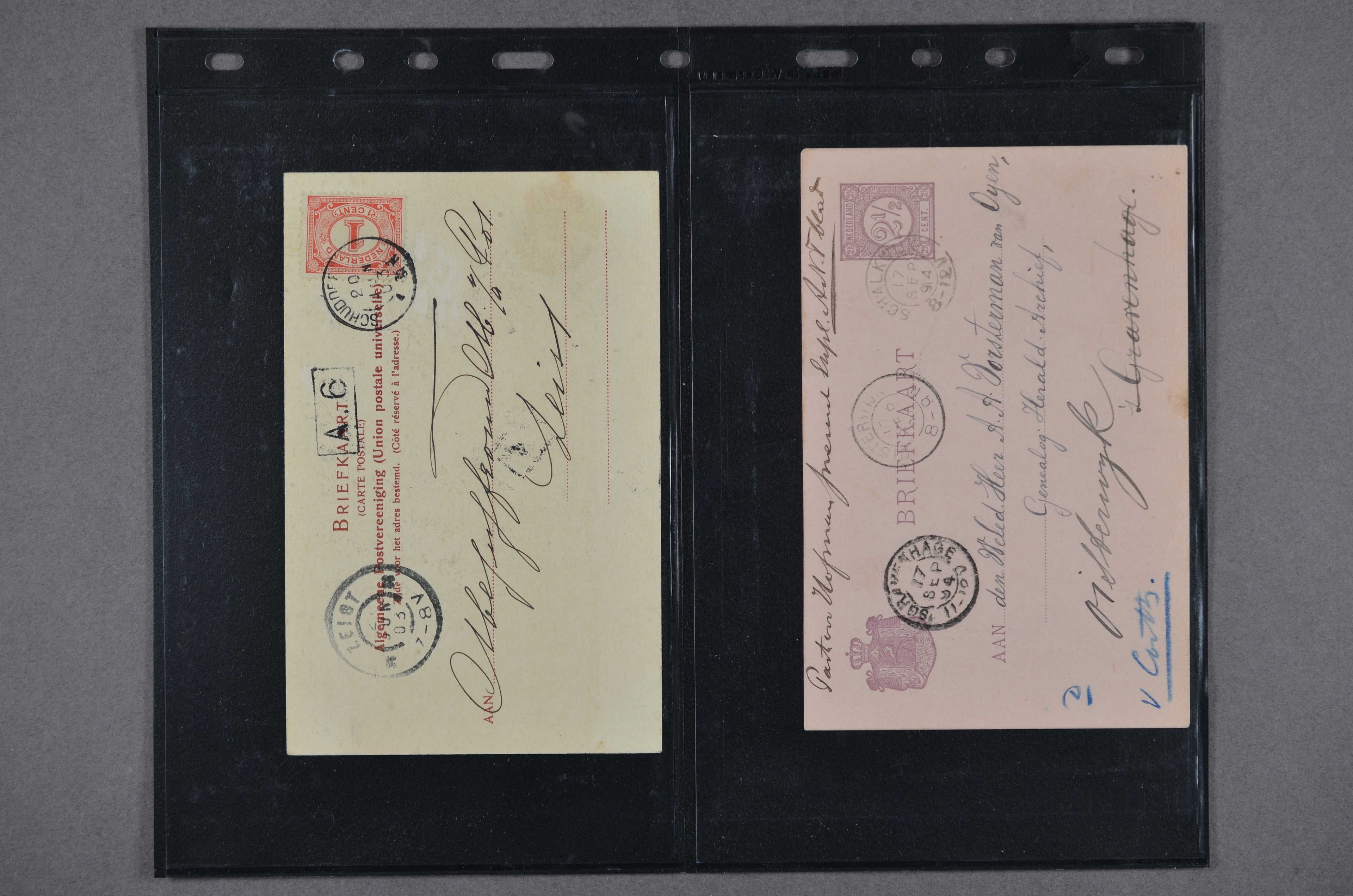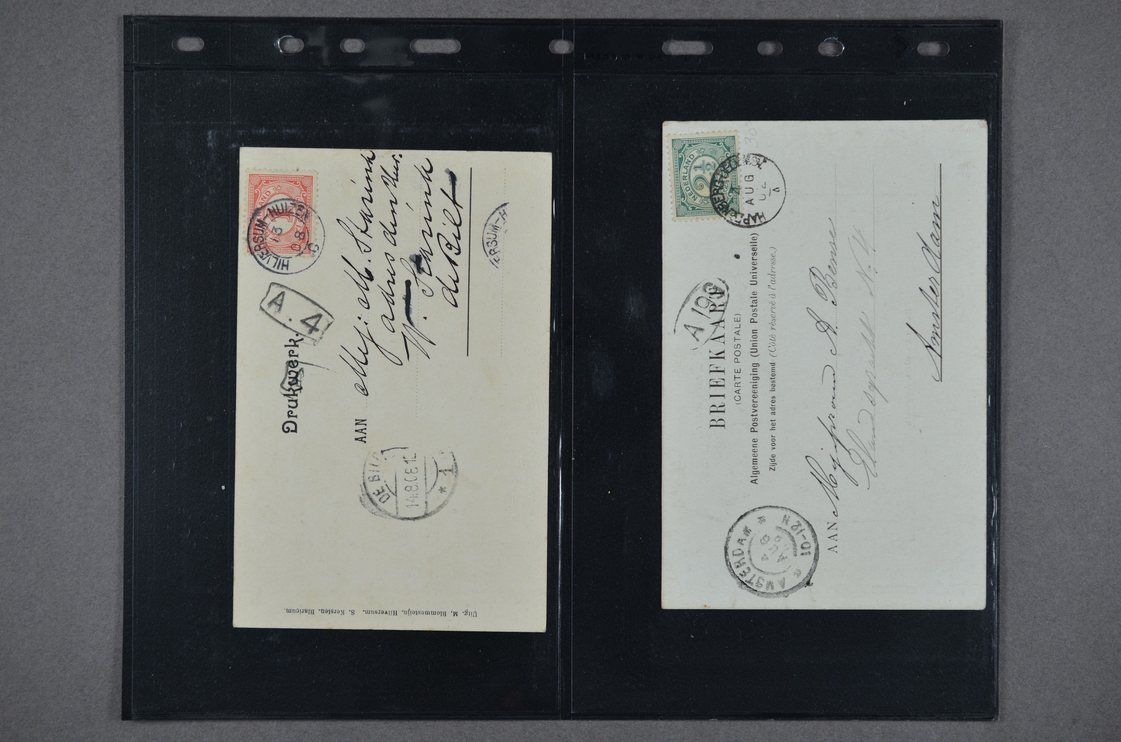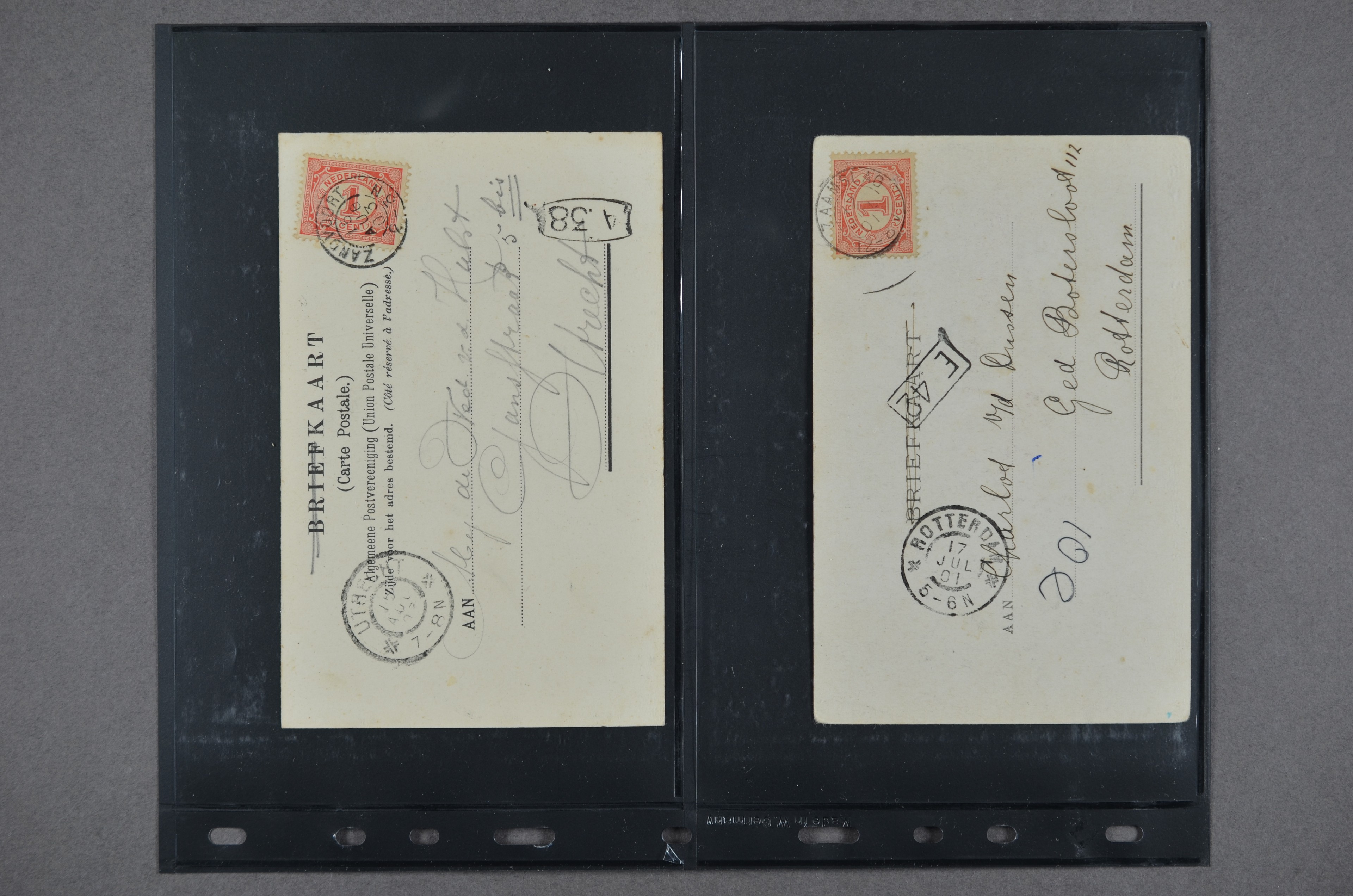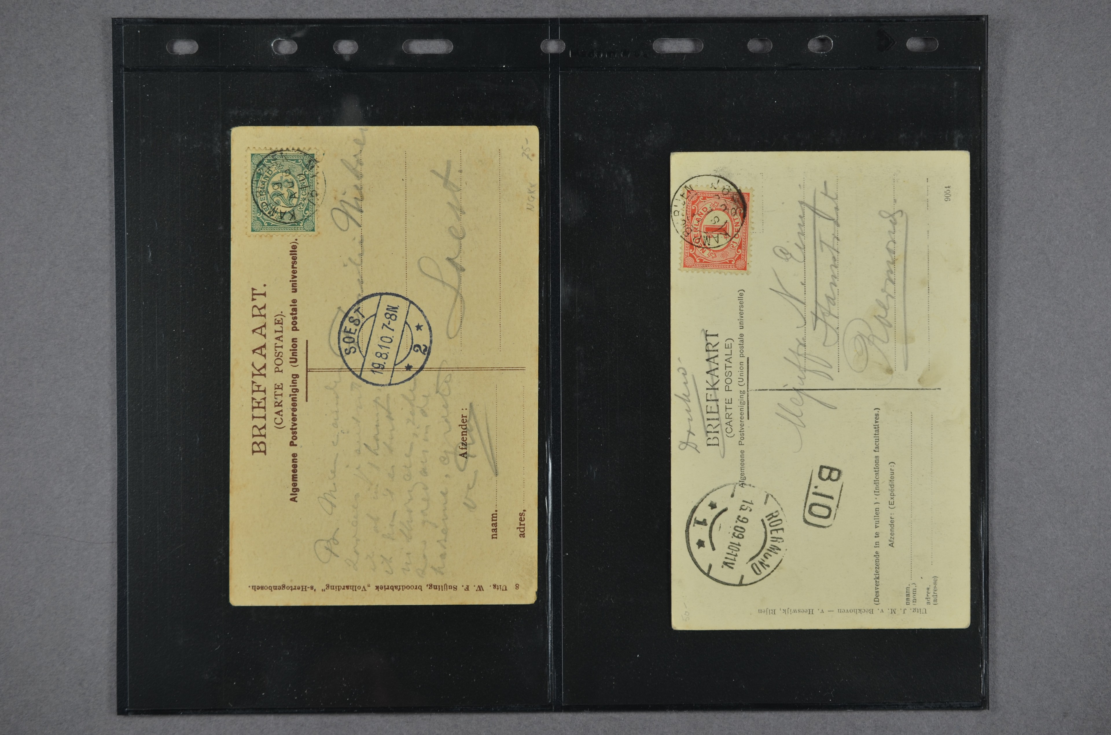 KLEINROND OP POSTSTUK, collectie van ruim 450 poststukken w.o. veel prentbriefkaarten, allemaal met kleinrondstempels van post-, hulppost- (merendeels) en bijpostkantoren, ook van spoorwegtrajecten, stations, Kamp bij Rijen (meerdere ex.), Amsterdam E, diverse schaarse stempels, enige doubletten, veel prachtige afstempelingen, enkele in blauw of violet, in 2 Leuchtturm-ringbanden. Prachtobject voor de handel of verzamelaar om op te zetten