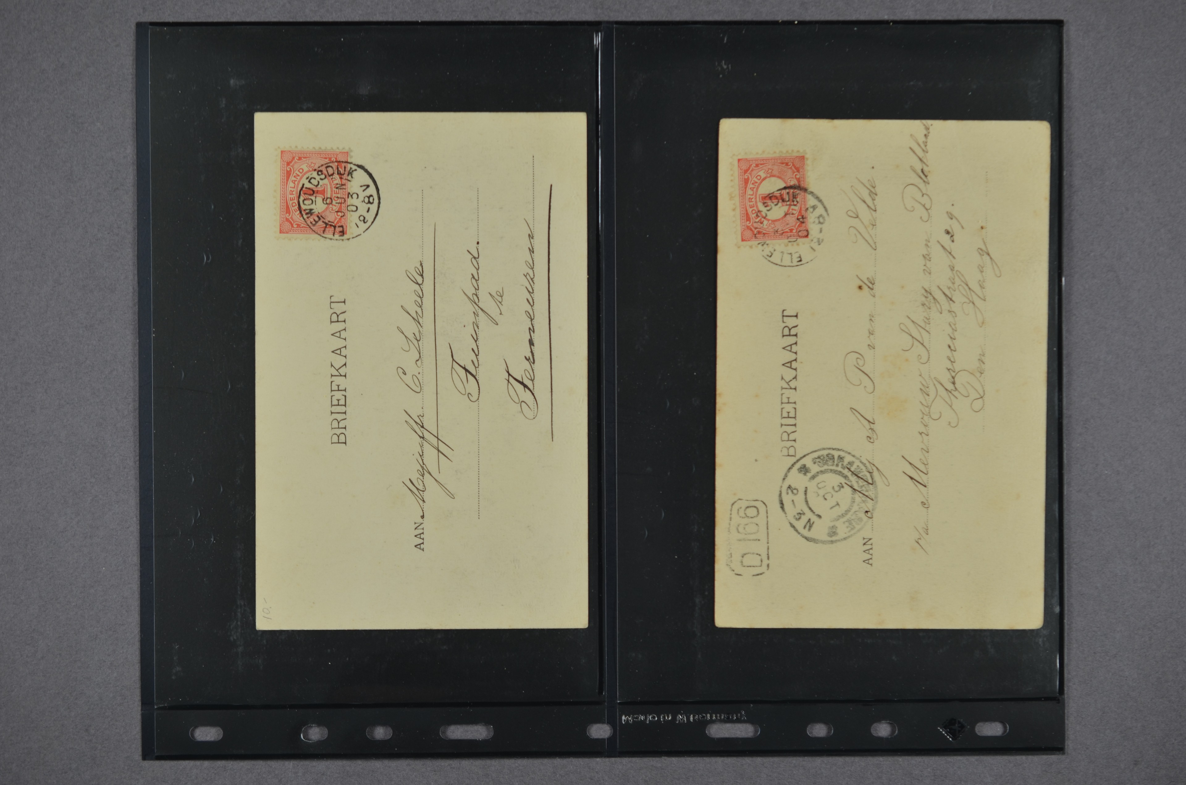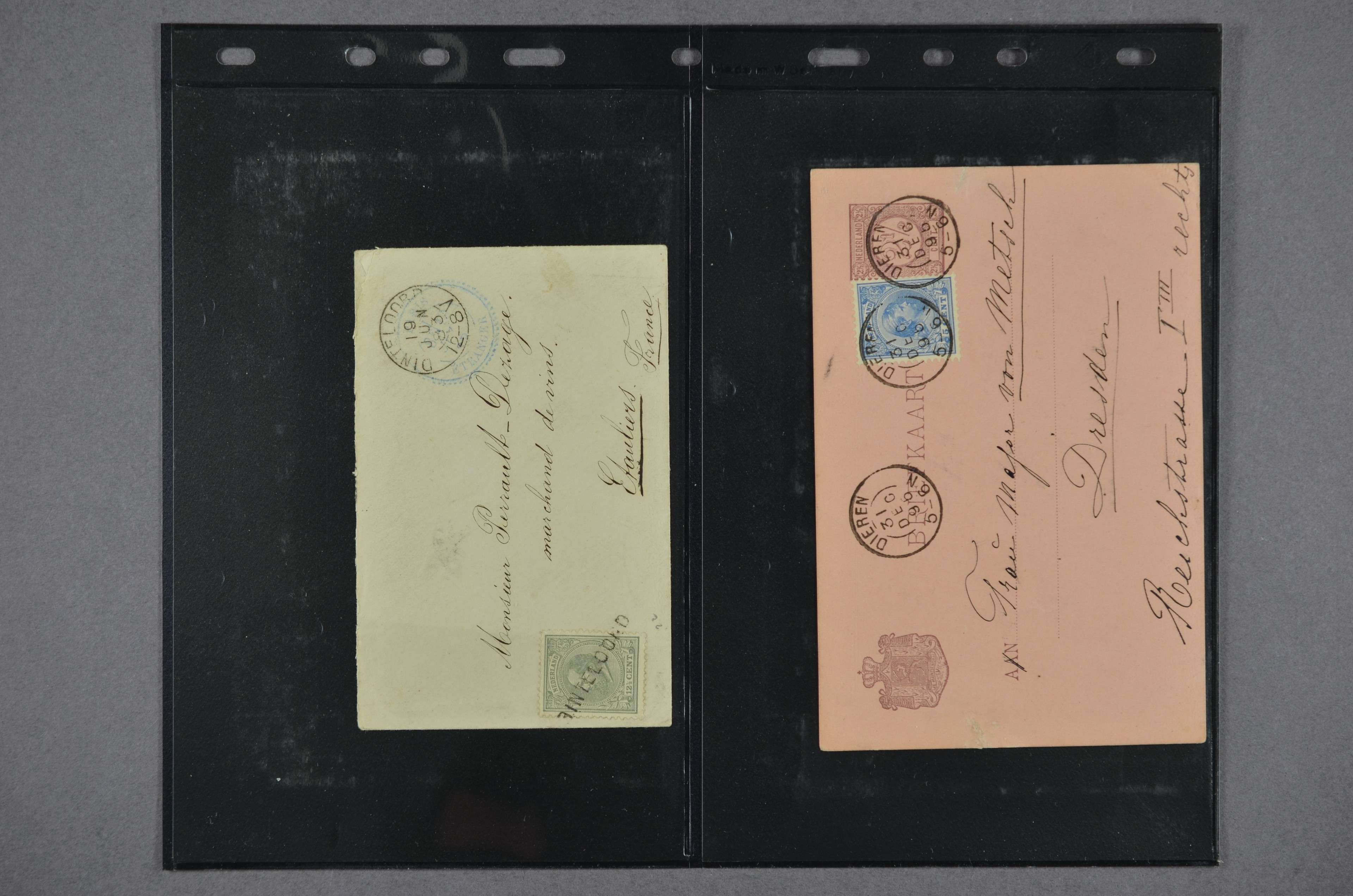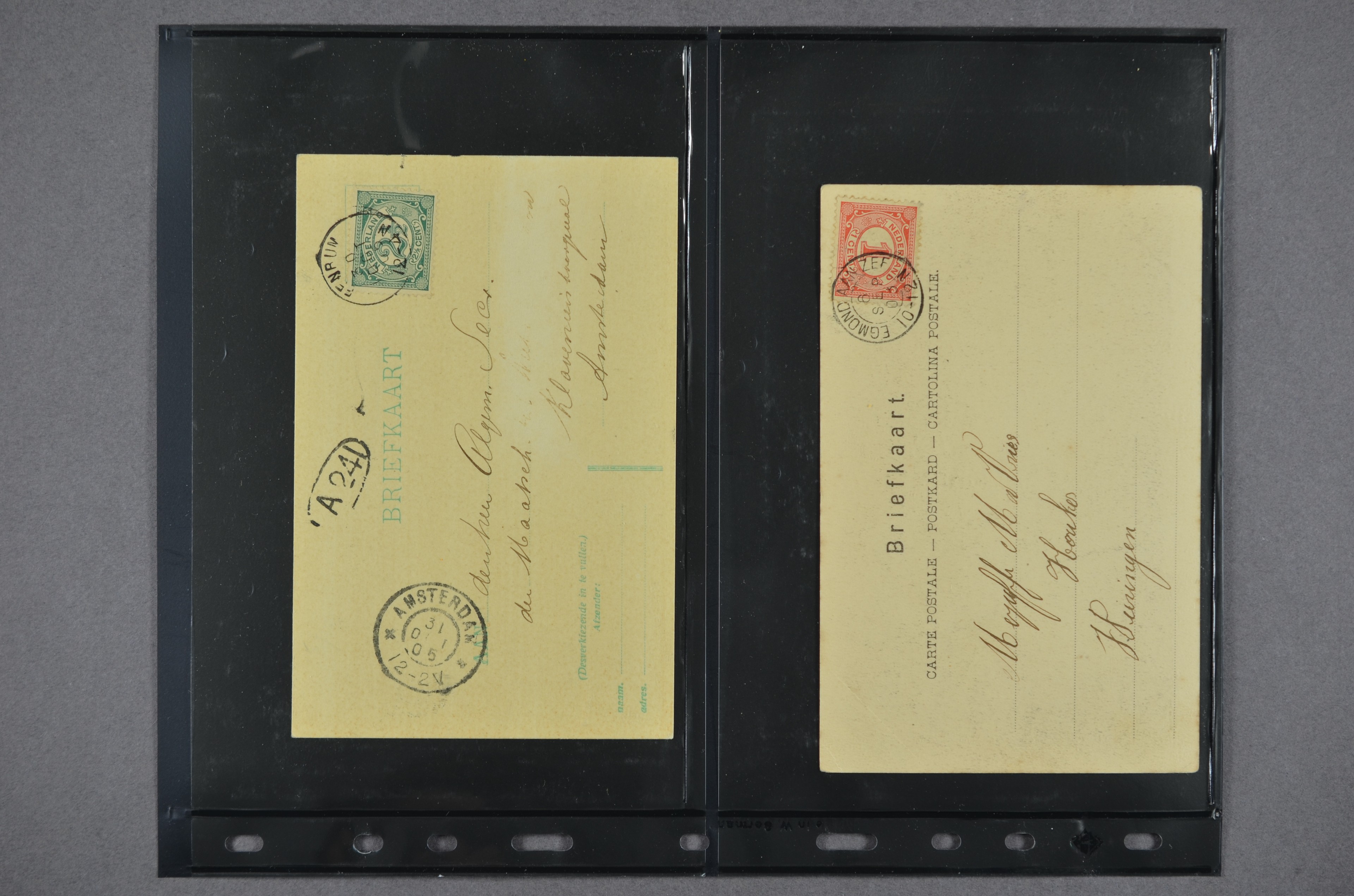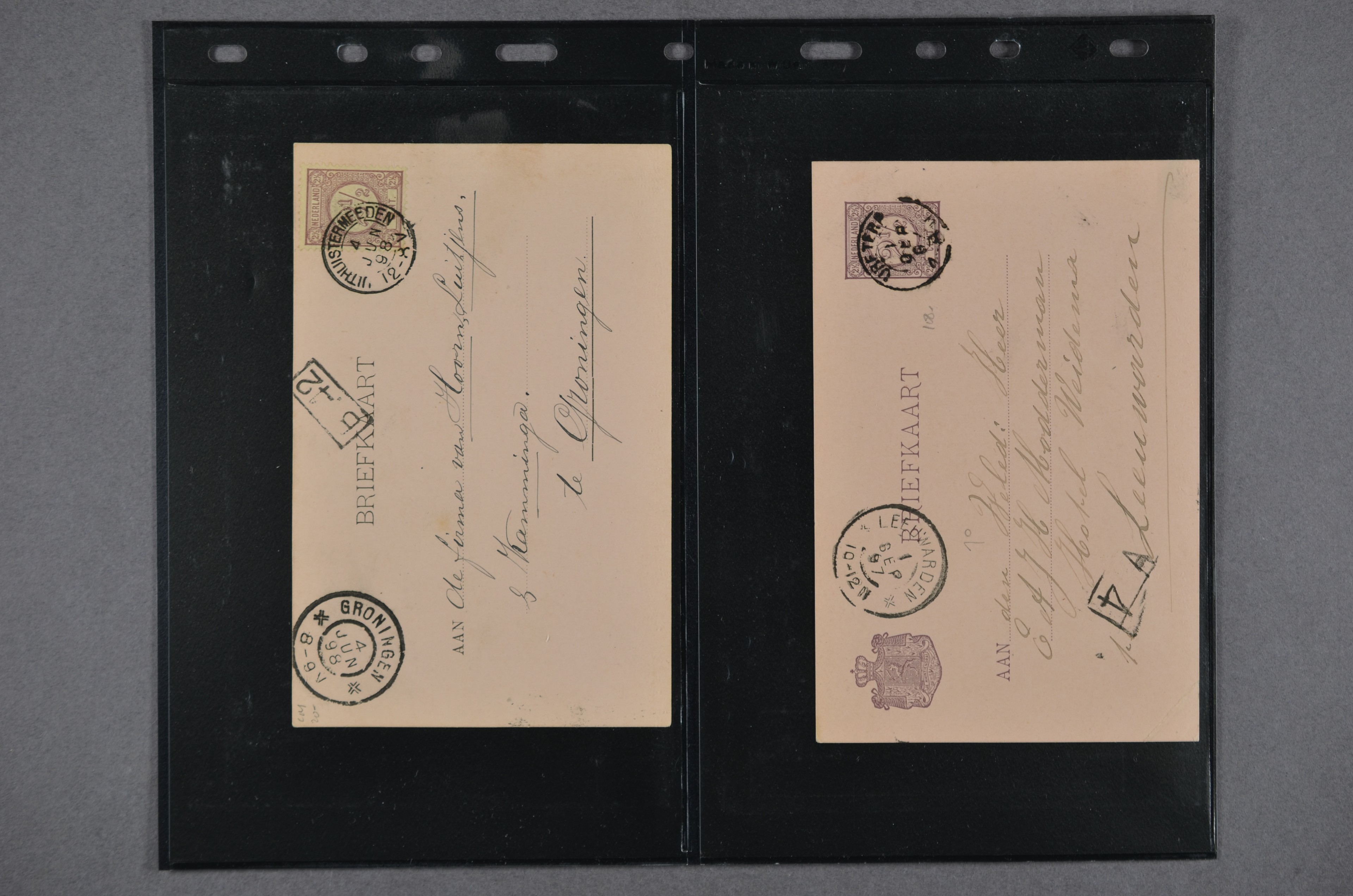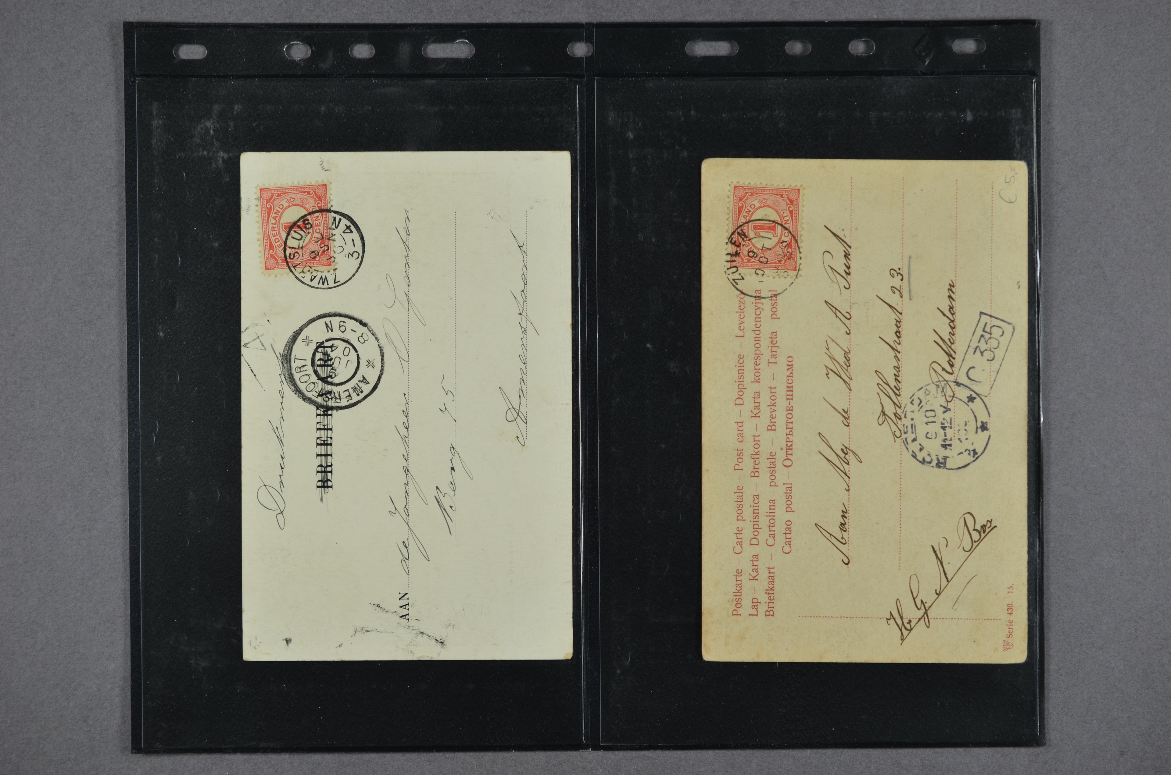 KLEINROND OP POSTSTUK, collectie van ruim 450 poststukken w.o. veel prentbriefkaarten, allemaal met kleinrondstempels van post-, hulppost- (merendeels) en bijpostkantoren, ook van spoorwegtrajecten, stations, Kamp bij Rijen (meerdere ex.), Amsterdam E, diverse schaarse stempels, enige doubletten, veel prachtige afstempelingen, enkele in blauw of violet, in 2 Leuchtturm-ringbanden. Prachtobject voor de handel of verzamelaar om op te zetten