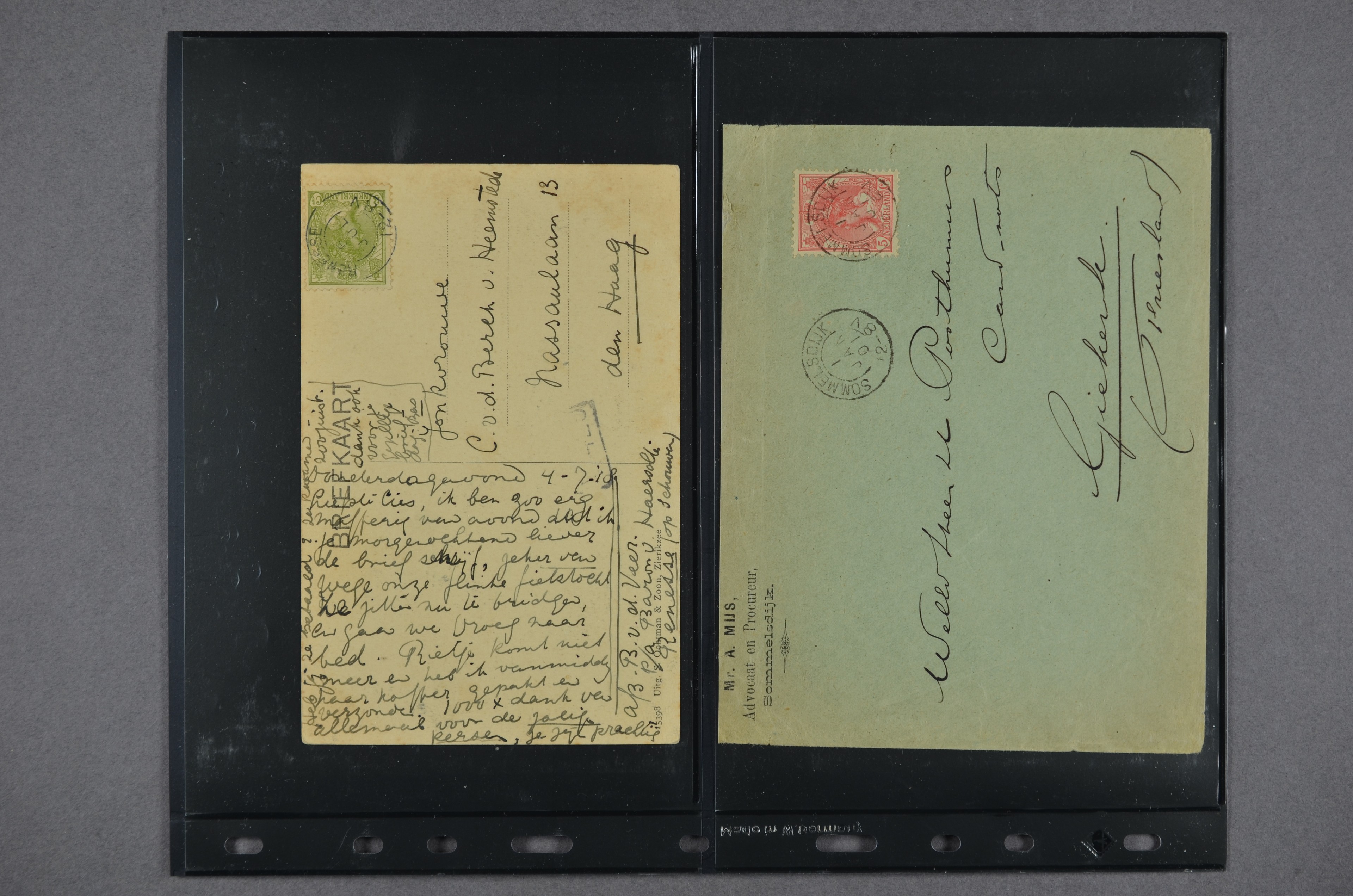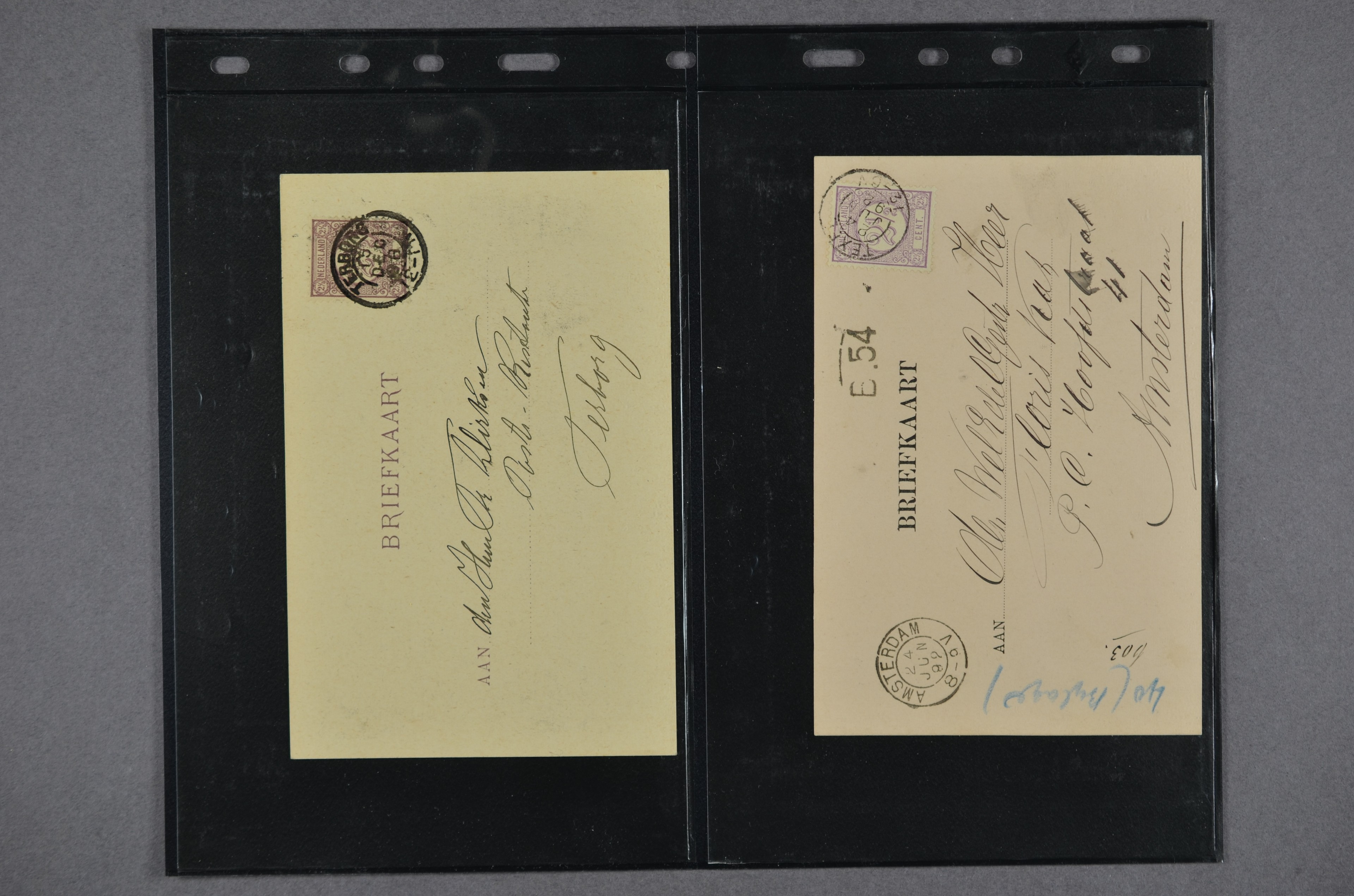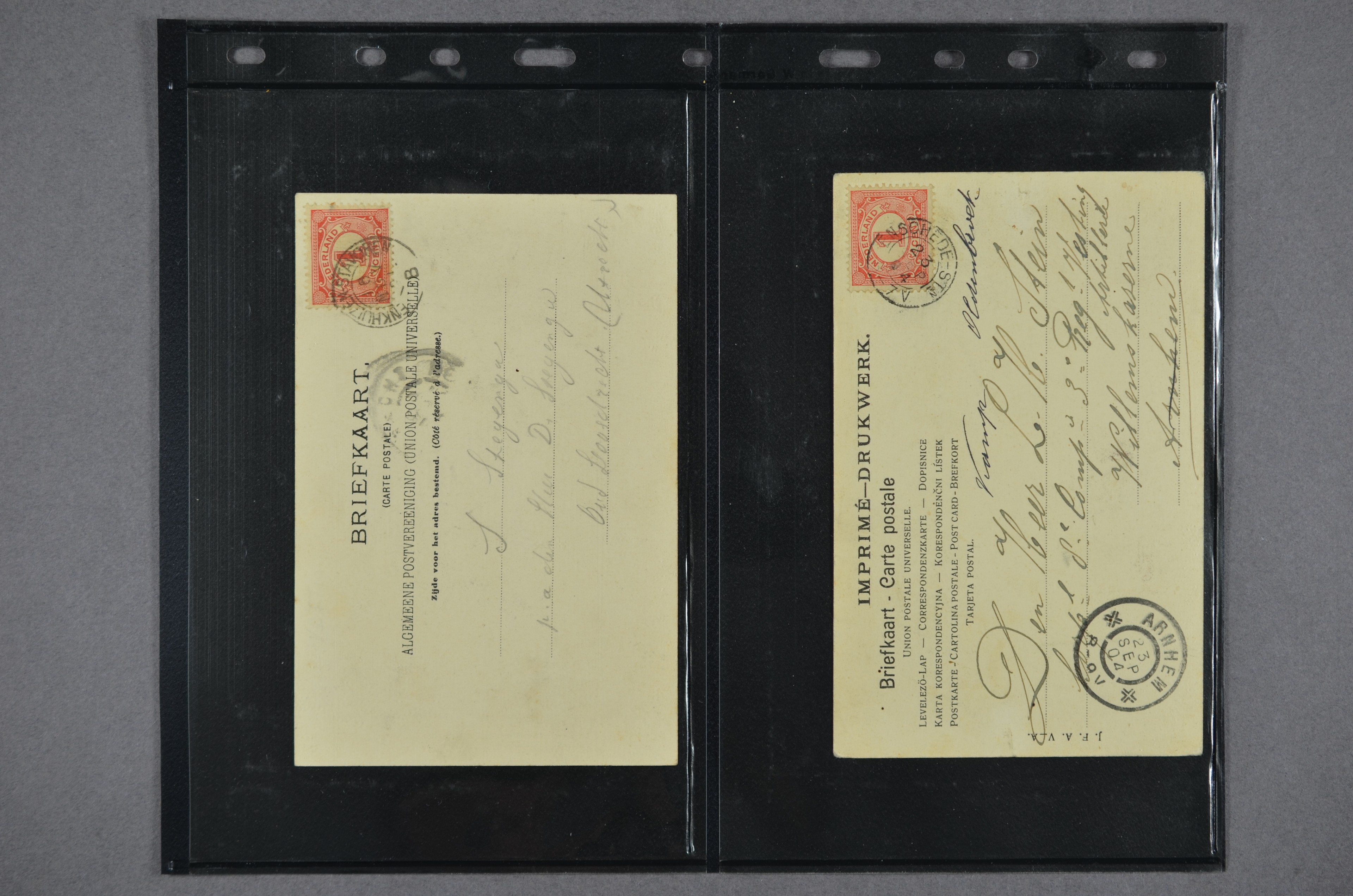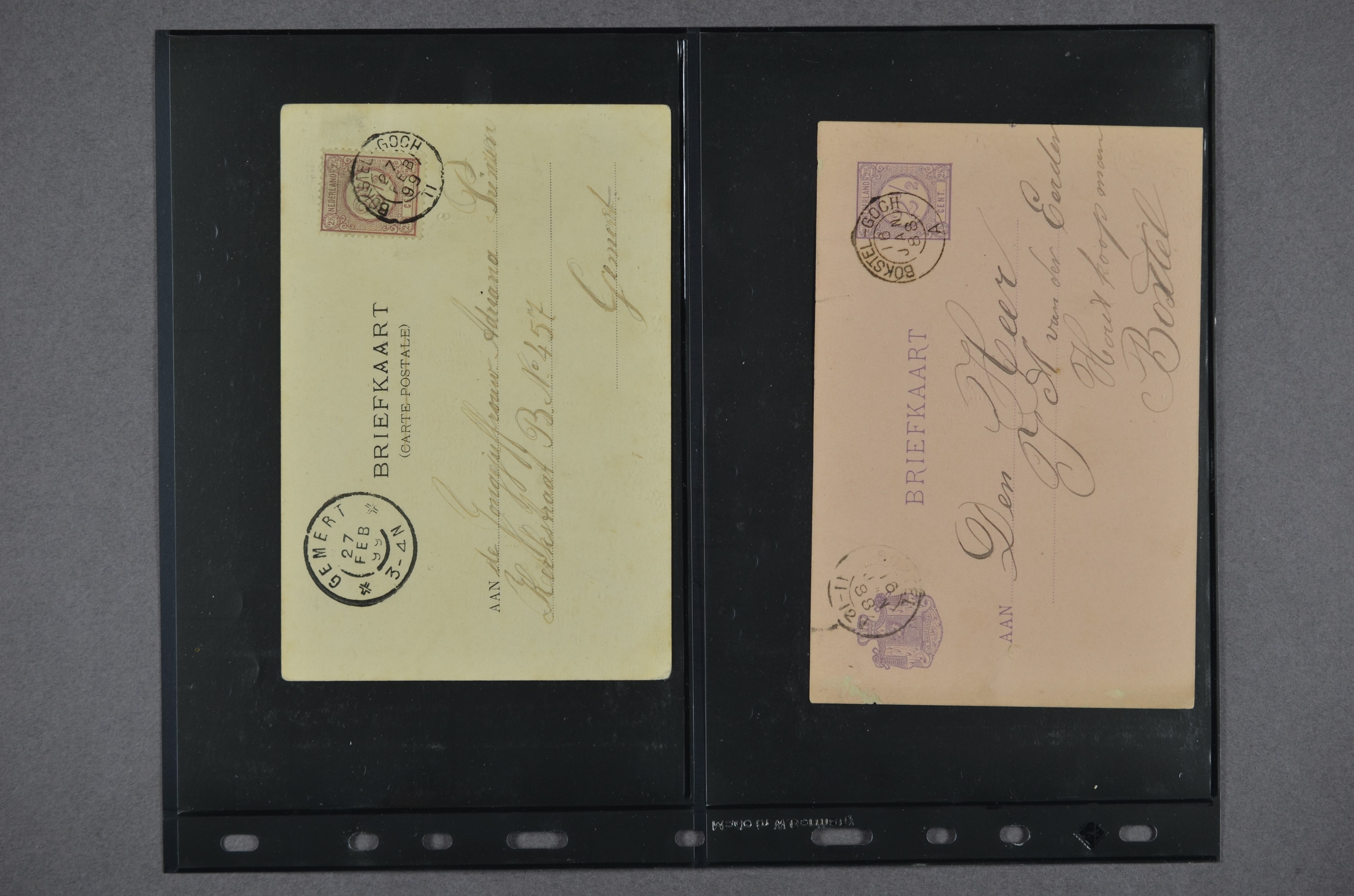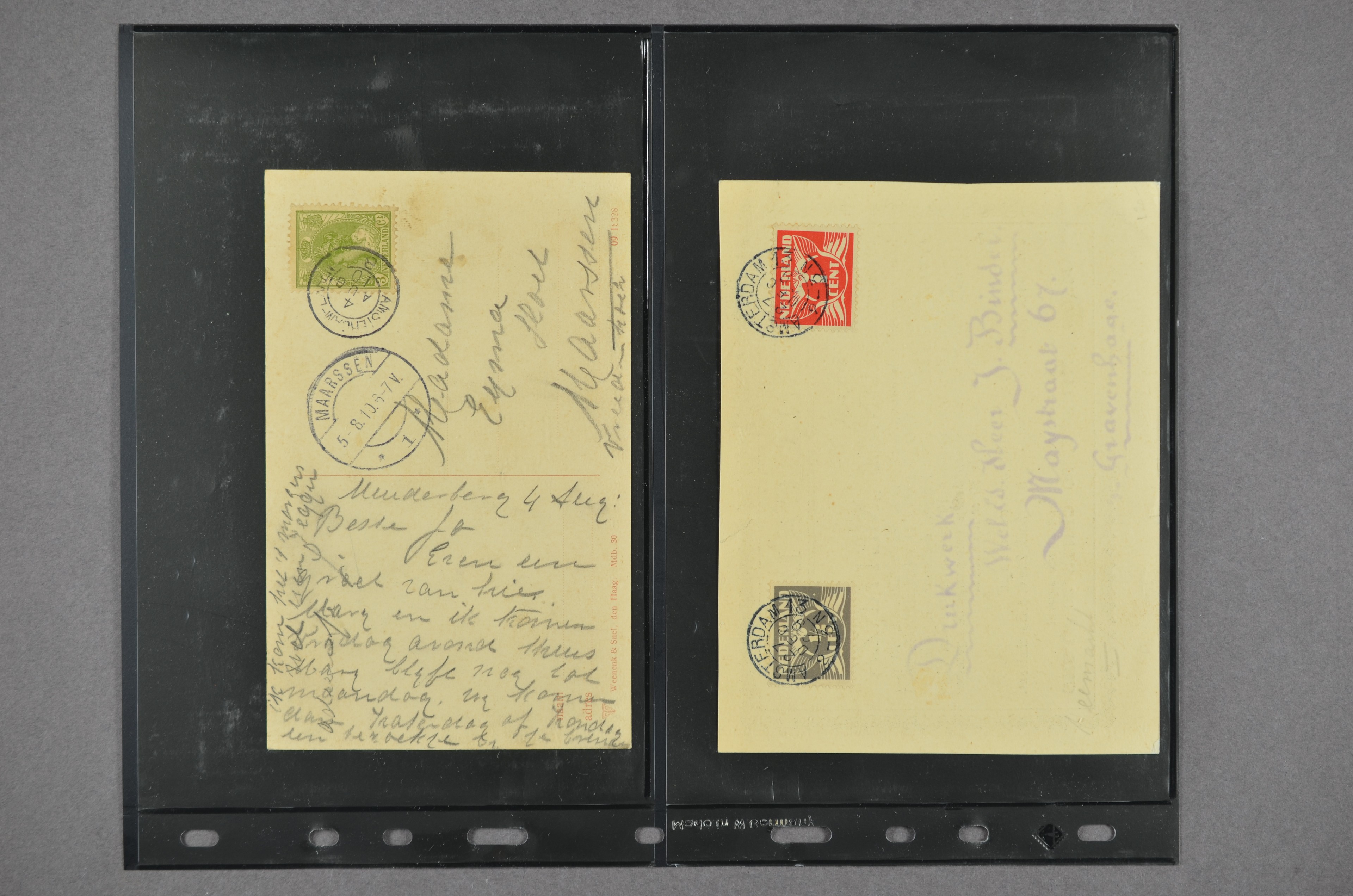 KLEINROND OP POSTSTUK, collectie van ruim 450 poststukken w.o. veel prentbriefkaarten, allemaal met kleinrondstempels van post-, hulppost- (merendeels) en bijpostkantoren, ook van spoorwegtrajecten, stations, Kamp bij Rijen (meerdere ex.), Amsterdam E, diverse schaarse stempels, enige doubletten, veel prachtige afstempelingen, enkele in blauw of violet, in 2 Leuchtturm-ringbanden. Prachtobject voor de handel of verzamelaar om op te zetten