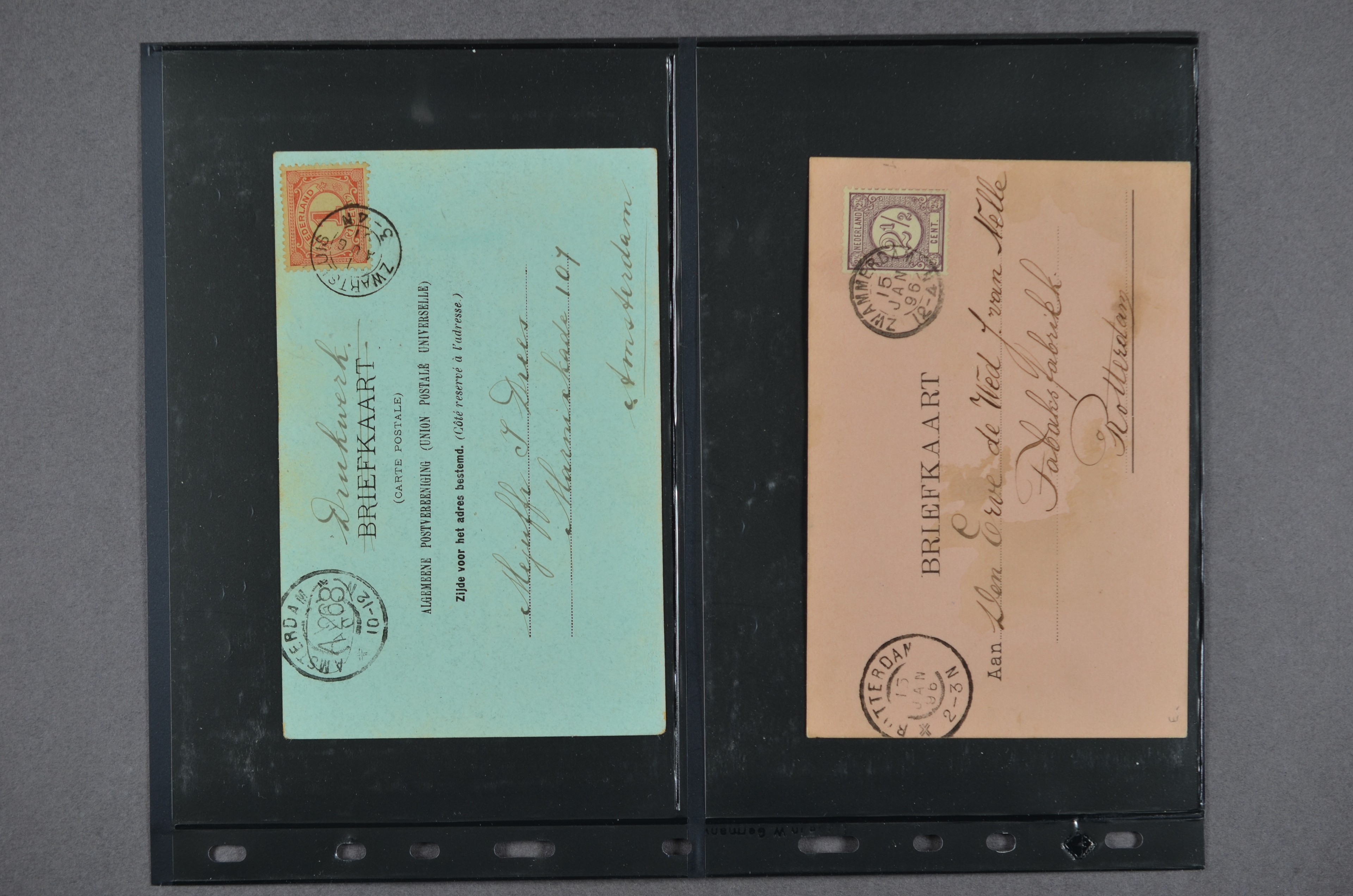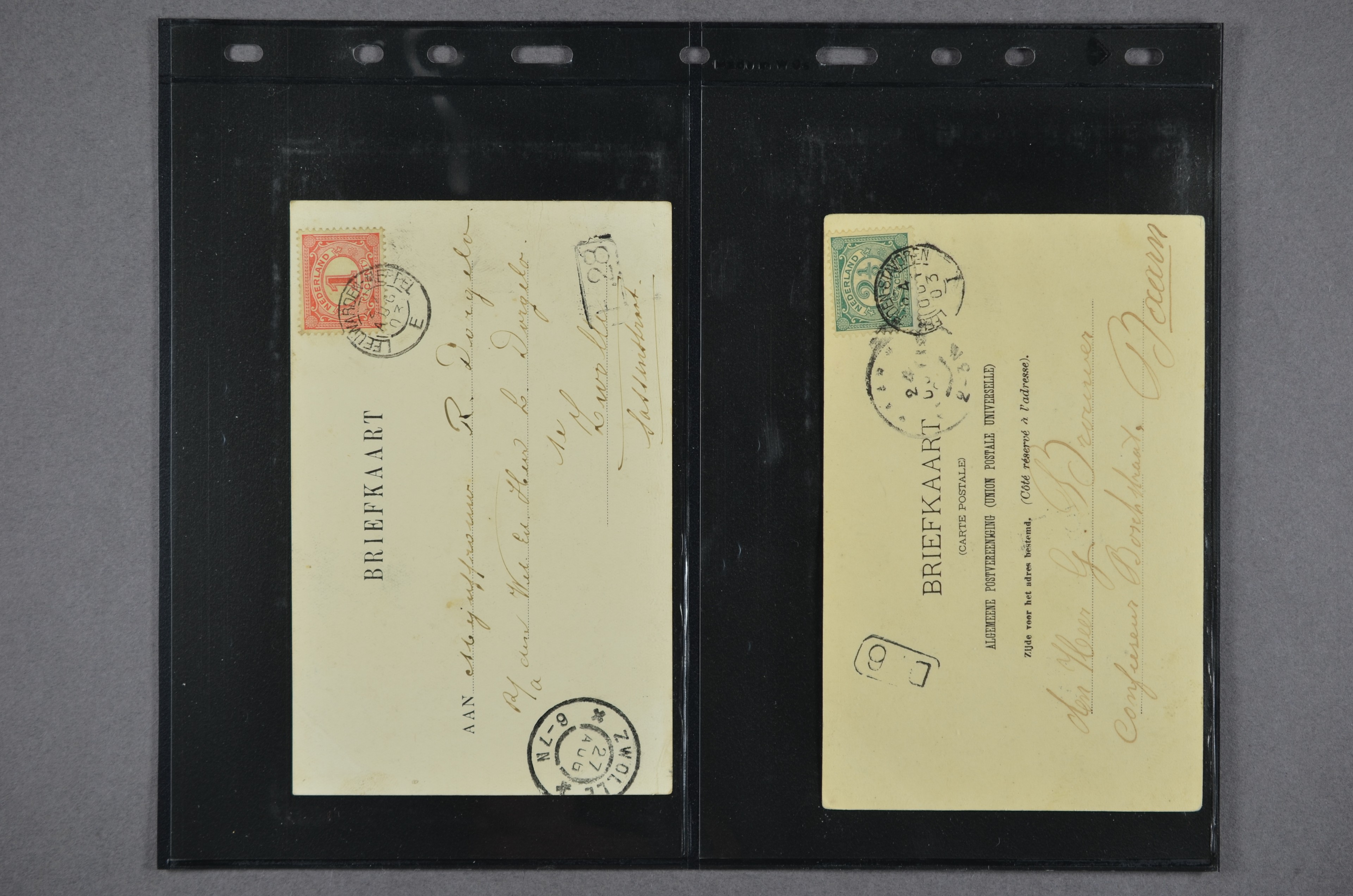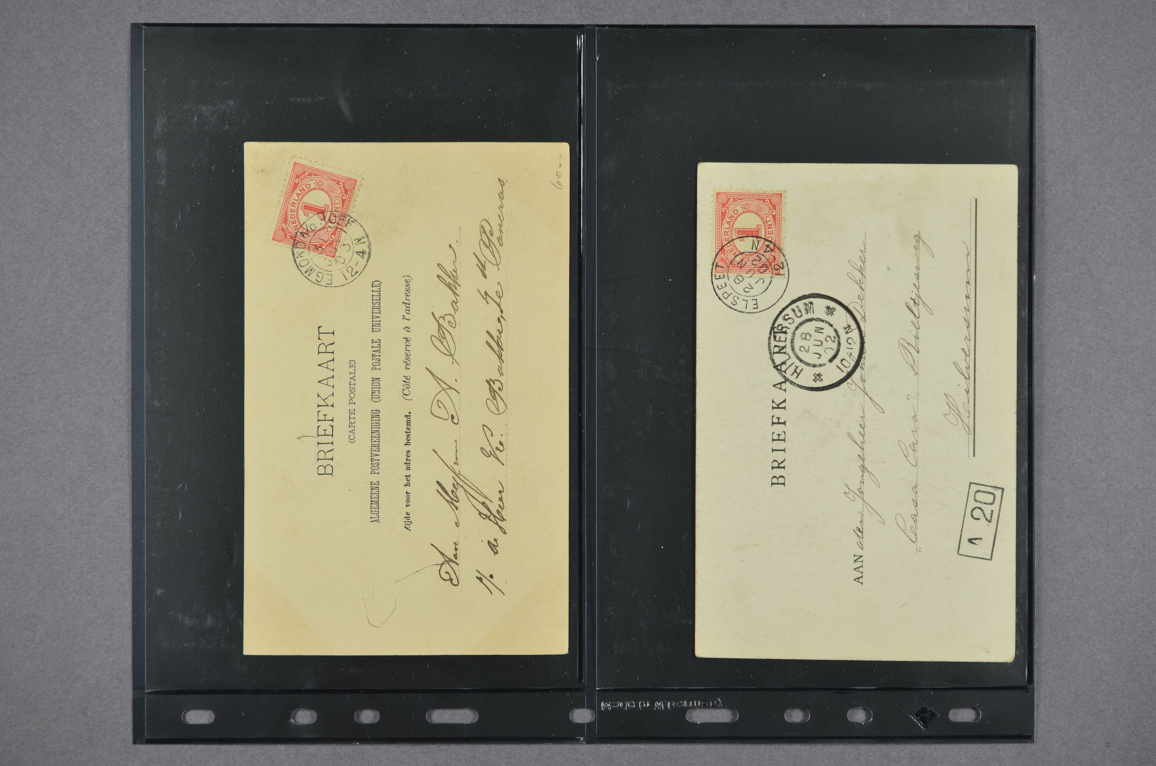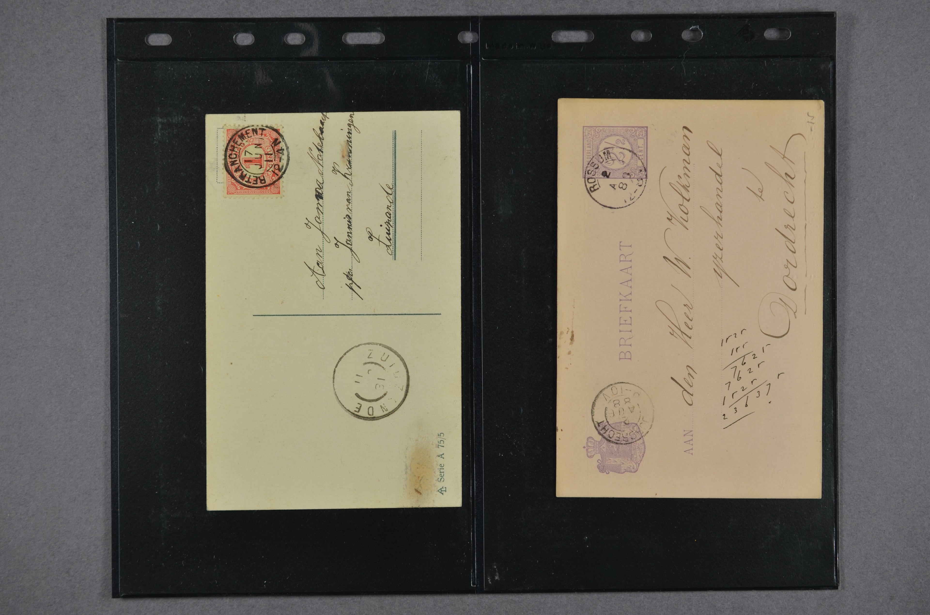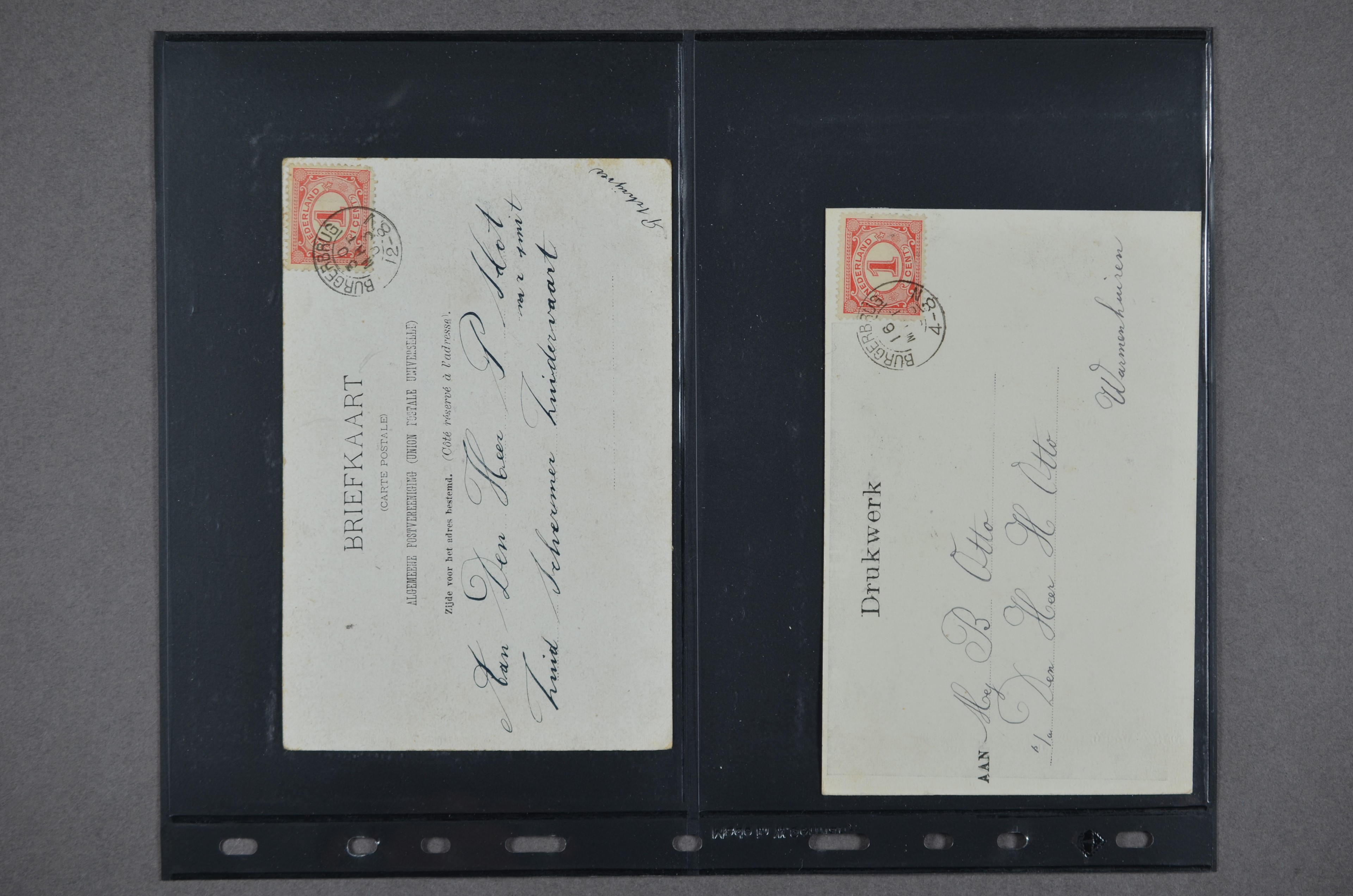 KLEINROND OP POSTSTUK, collectie van ruim 450 poststukken w.o. veel prentbriefkaarten, allemaal met kleinrondstempels van post-, hulppost- (merendeels) en bijpostkantoren, ook van spoorwegtrajecten, stations, Kamp bij Rijen (meerdere ex.), Amsterdam E, diverse schaarse stempels, enige doubletten, veel prachtige afstempelingen, enkele in blauw of violet, in 2 Leuchtturm-ringbanden. Prachtobject voor de handel of verzamelaar om op te zetten