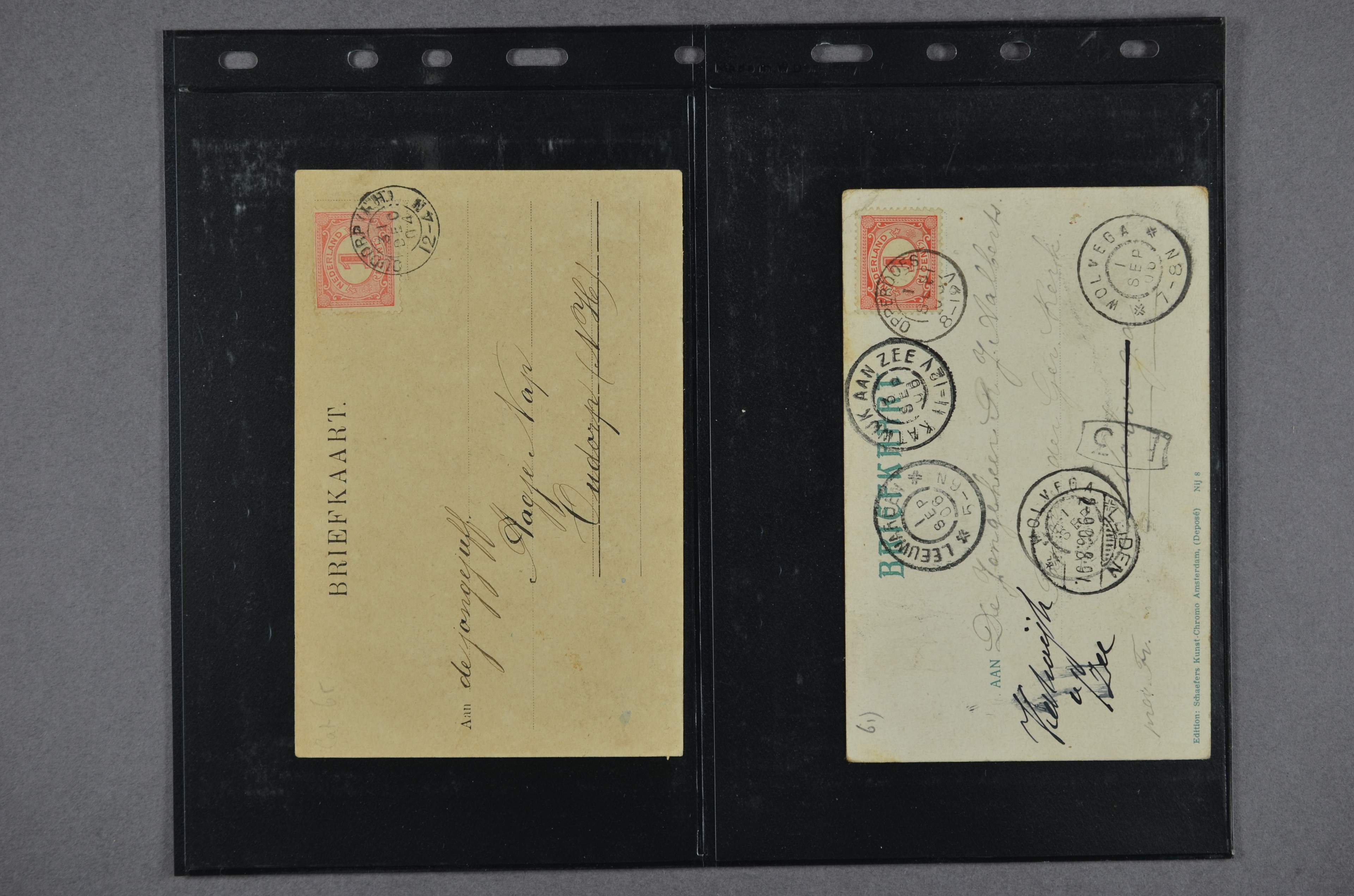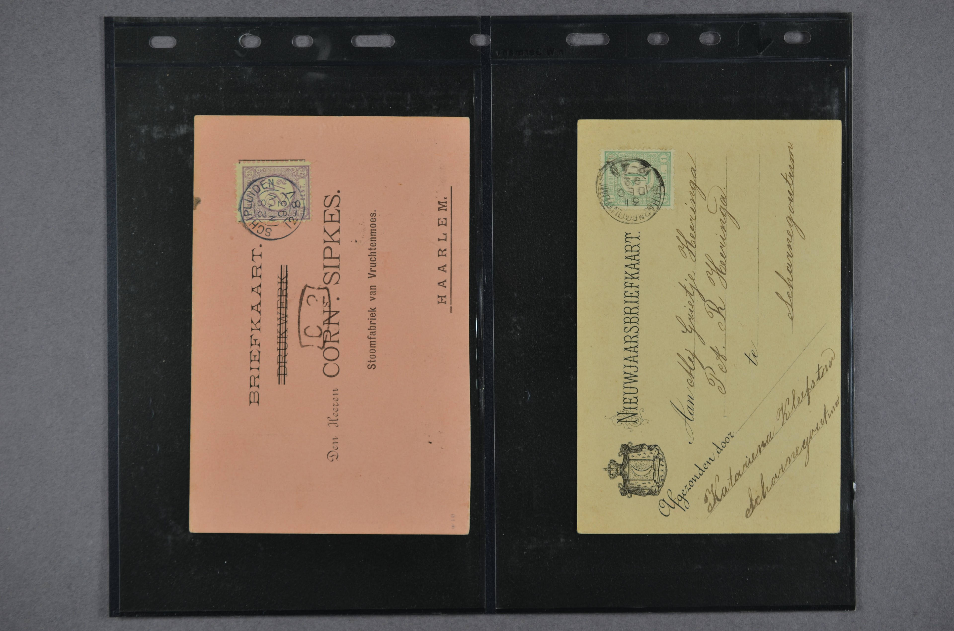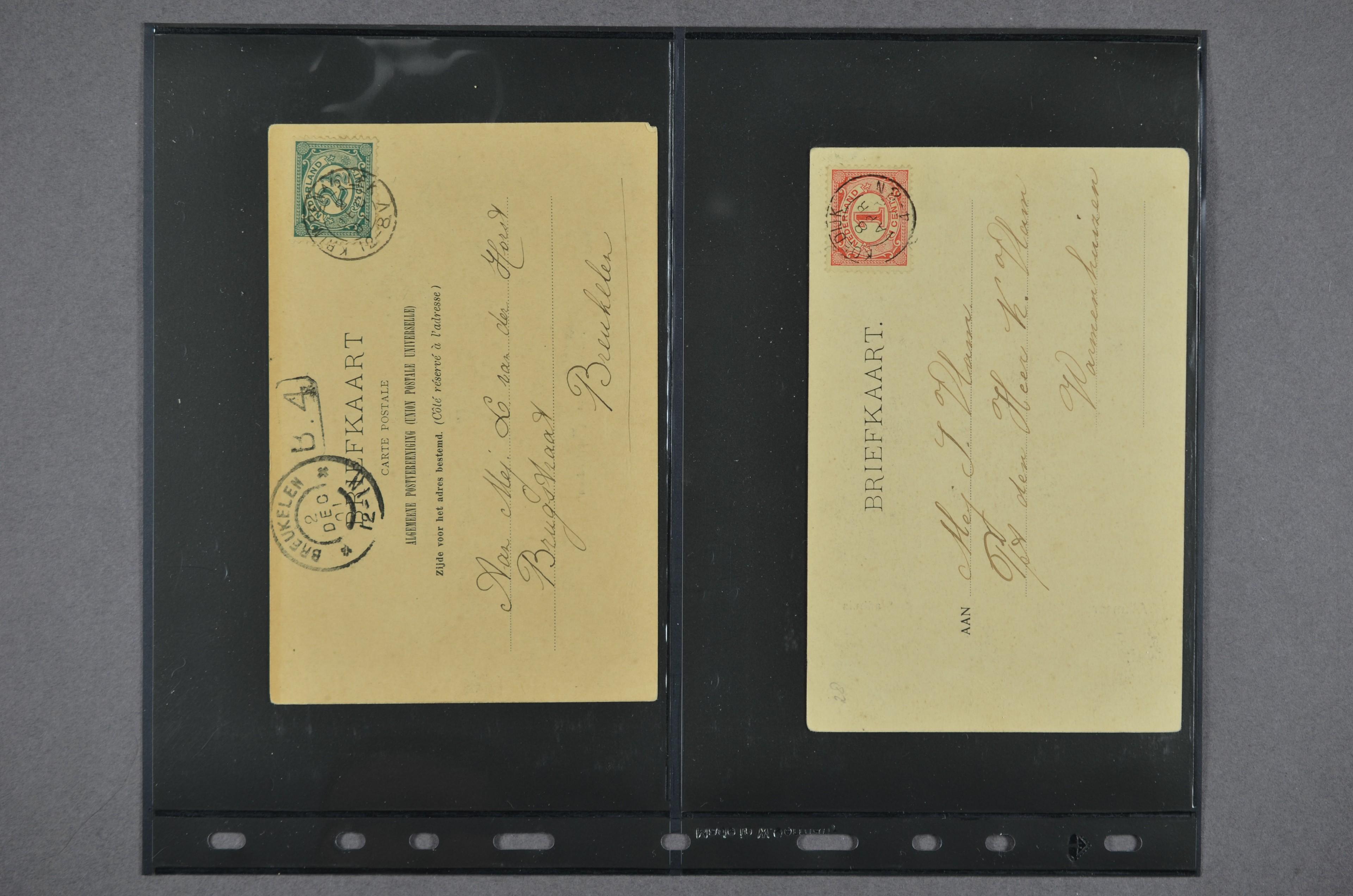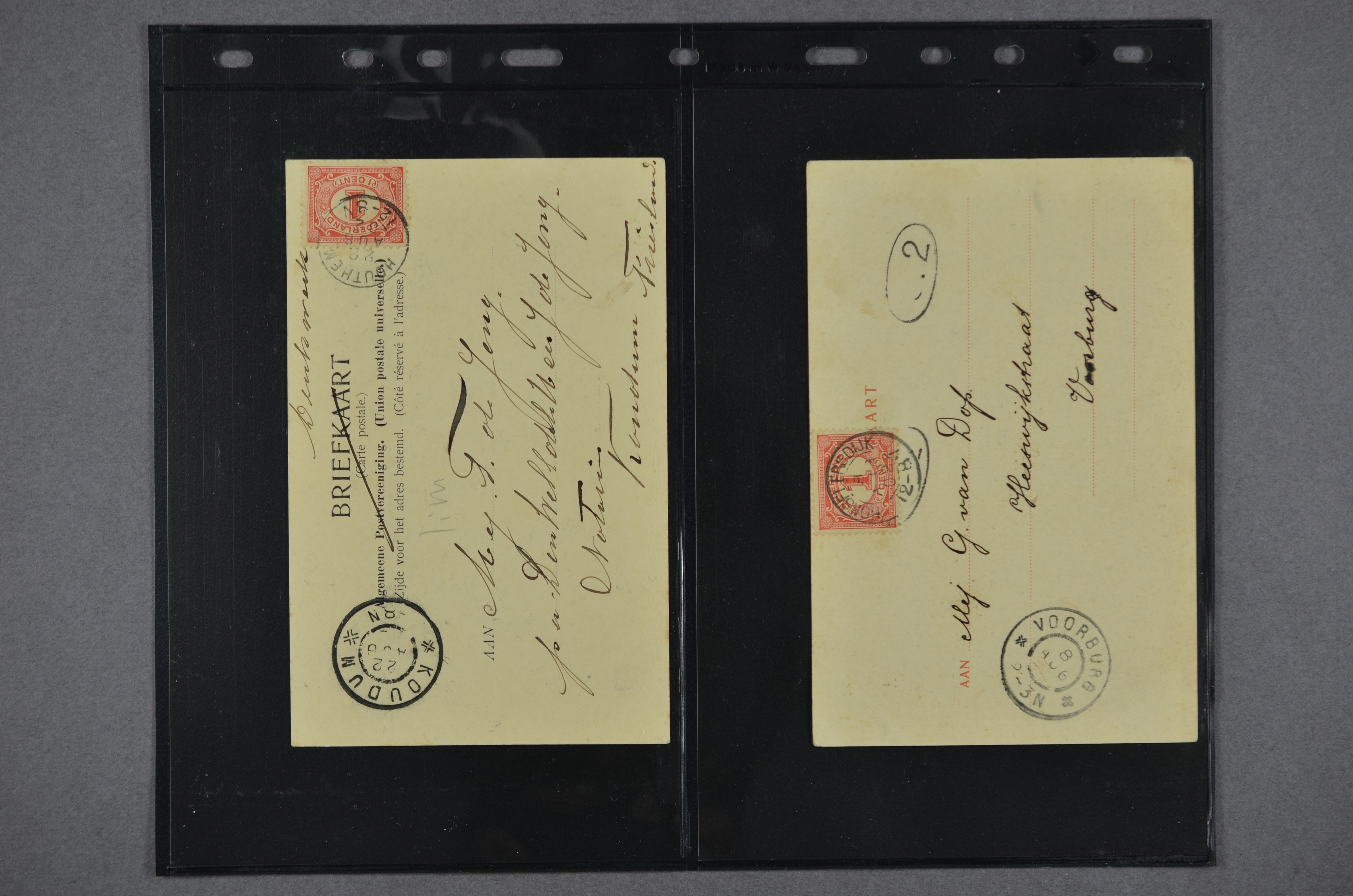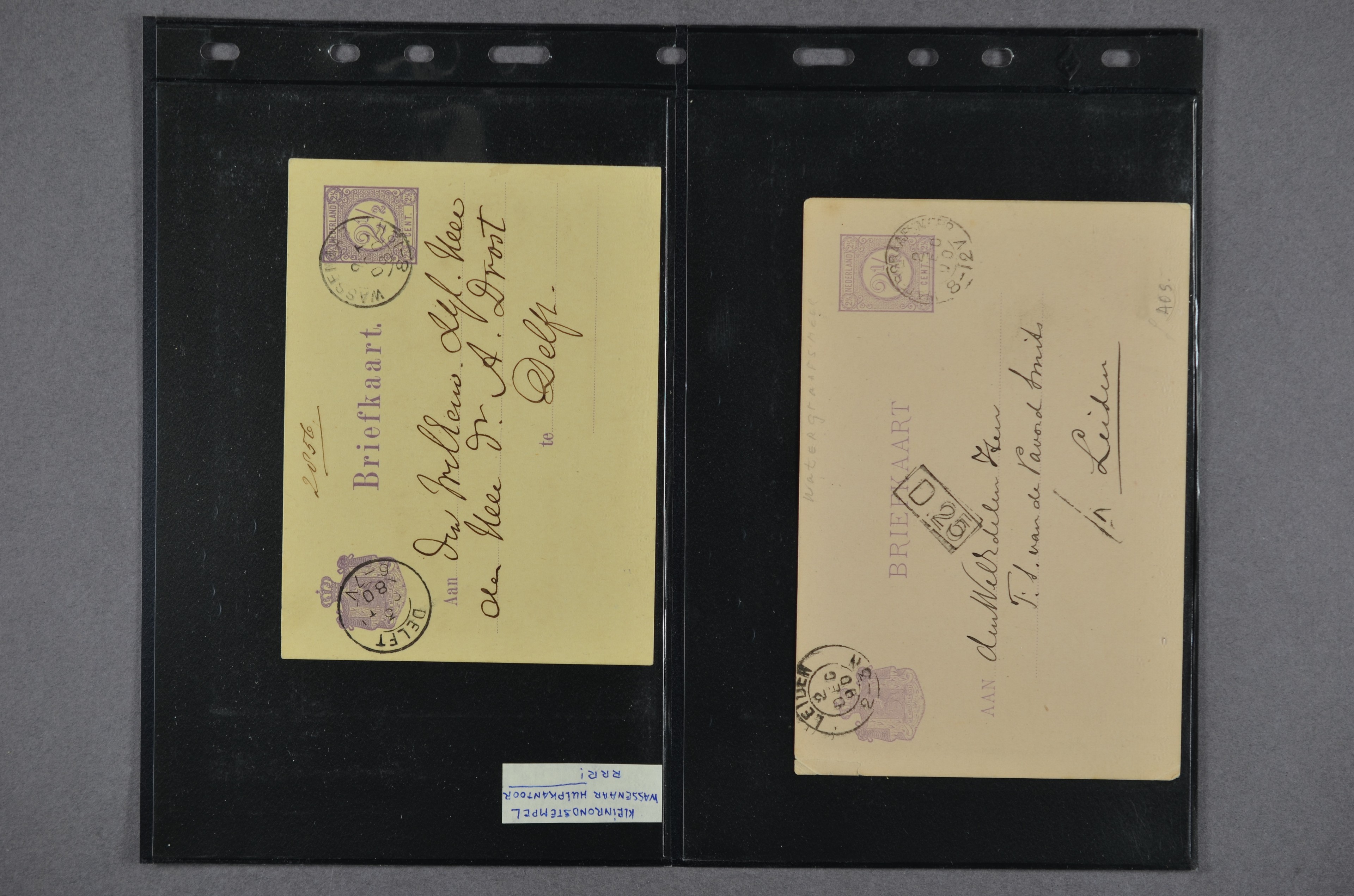 KLEINROND OP POSTSTUK, collectie van ruim 450 poststukken w.o. veel prentbriefkaarten, allemaal met kleinrondstempels van post-, hulppost- (merendeels) en bijpostkantoren, ook van spoorwegtrajecten, stations, Kamp bij Rijen (meerdere ex.), Amsterdam E, diverse schaarse stempels, enige doubletten, veel prachtige afstempelingen, enkele in blauw of violet, in 2 Leuchtturm-ringbanden. Prachtobject voor de handel of verzamelaar om op te zetten