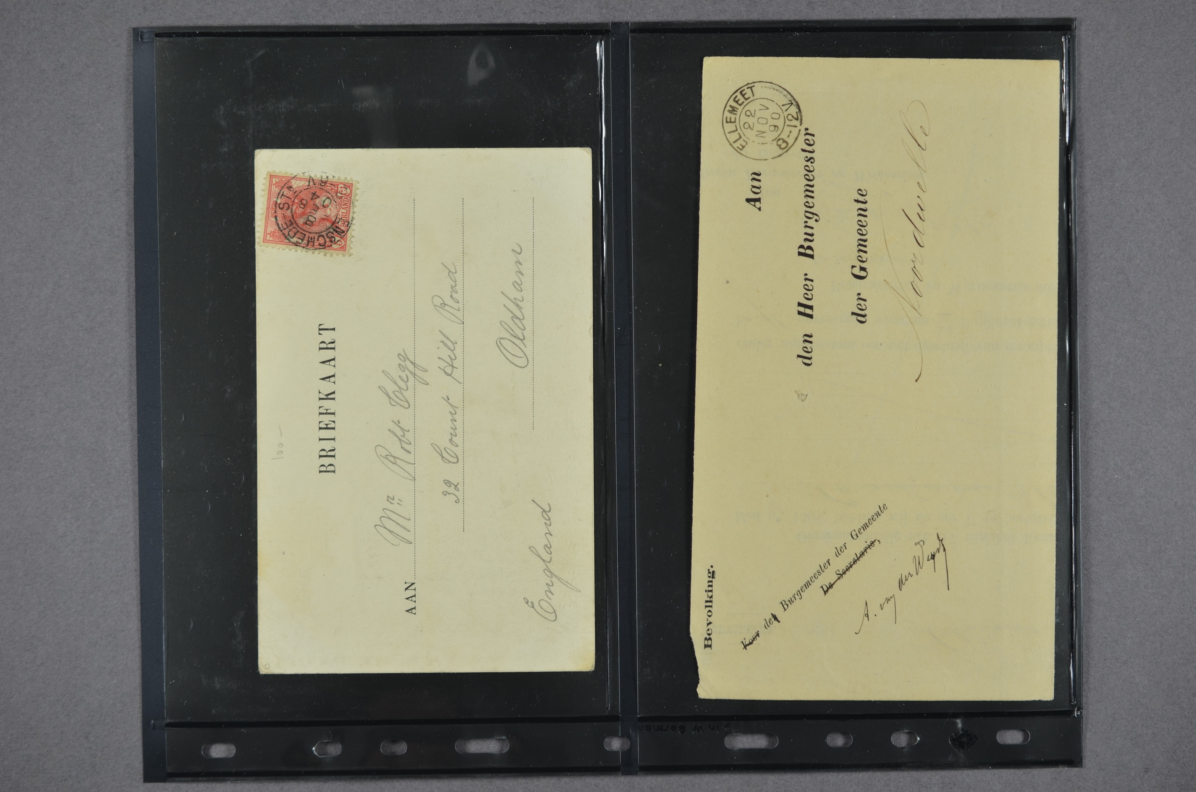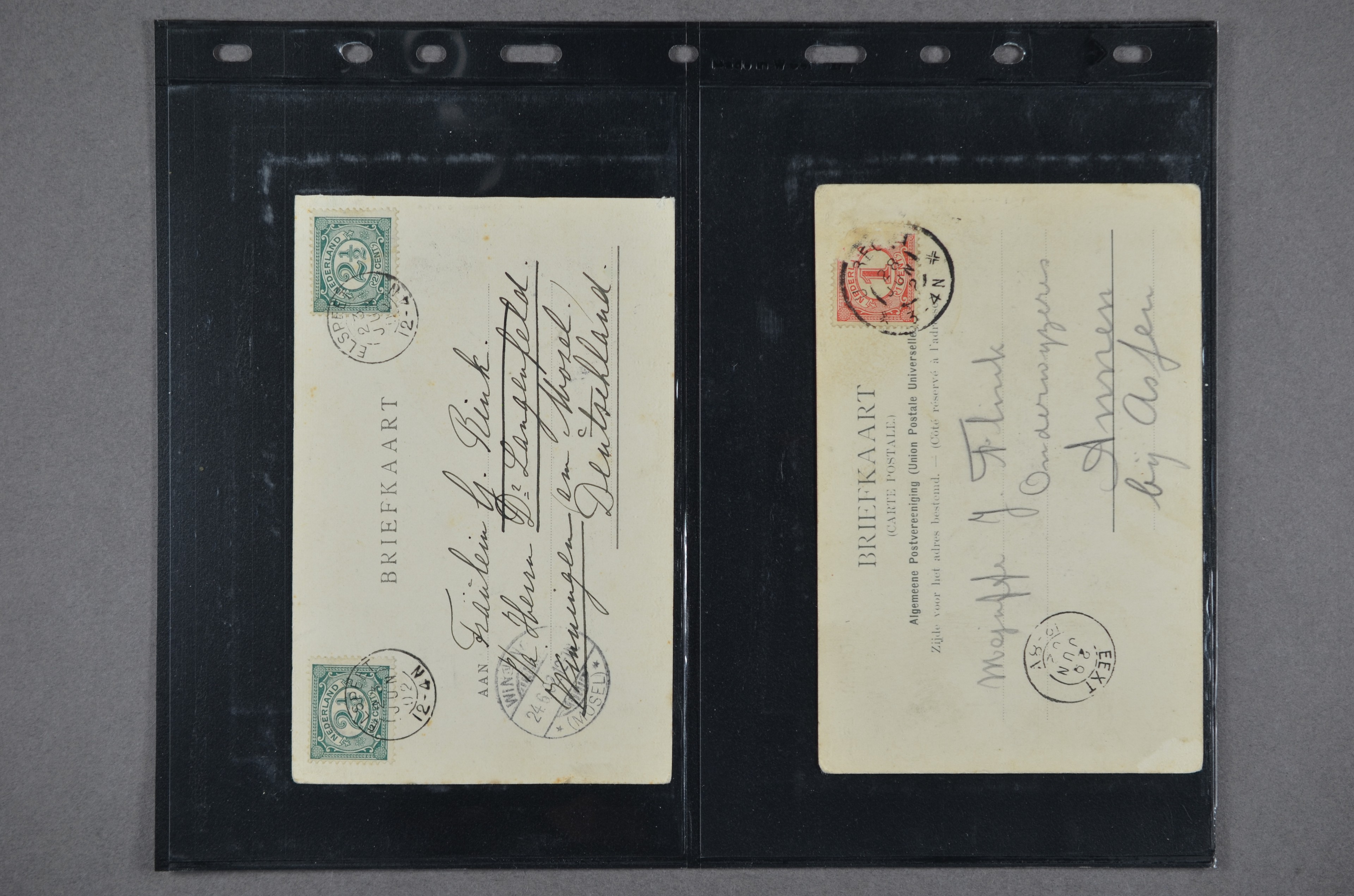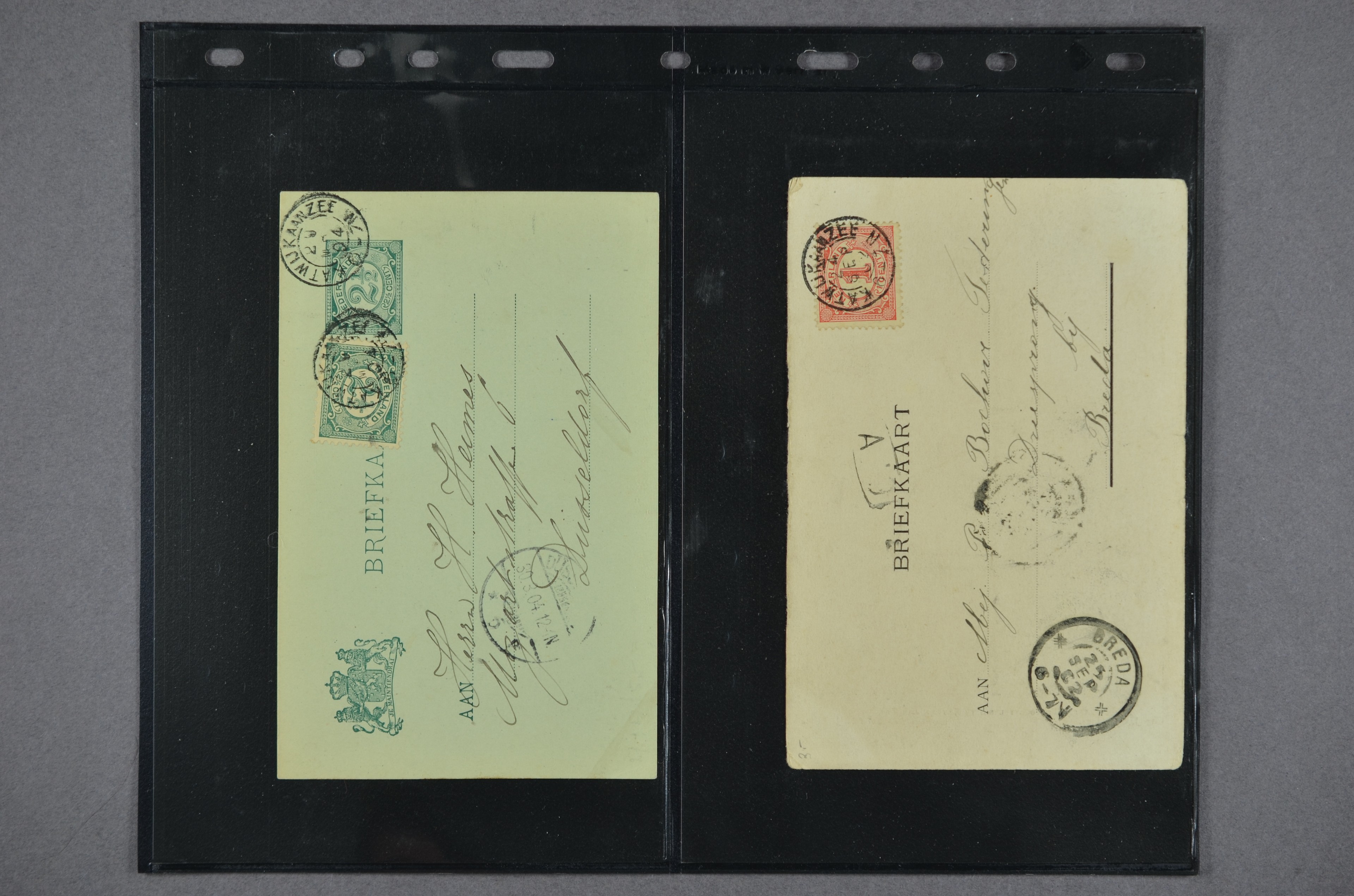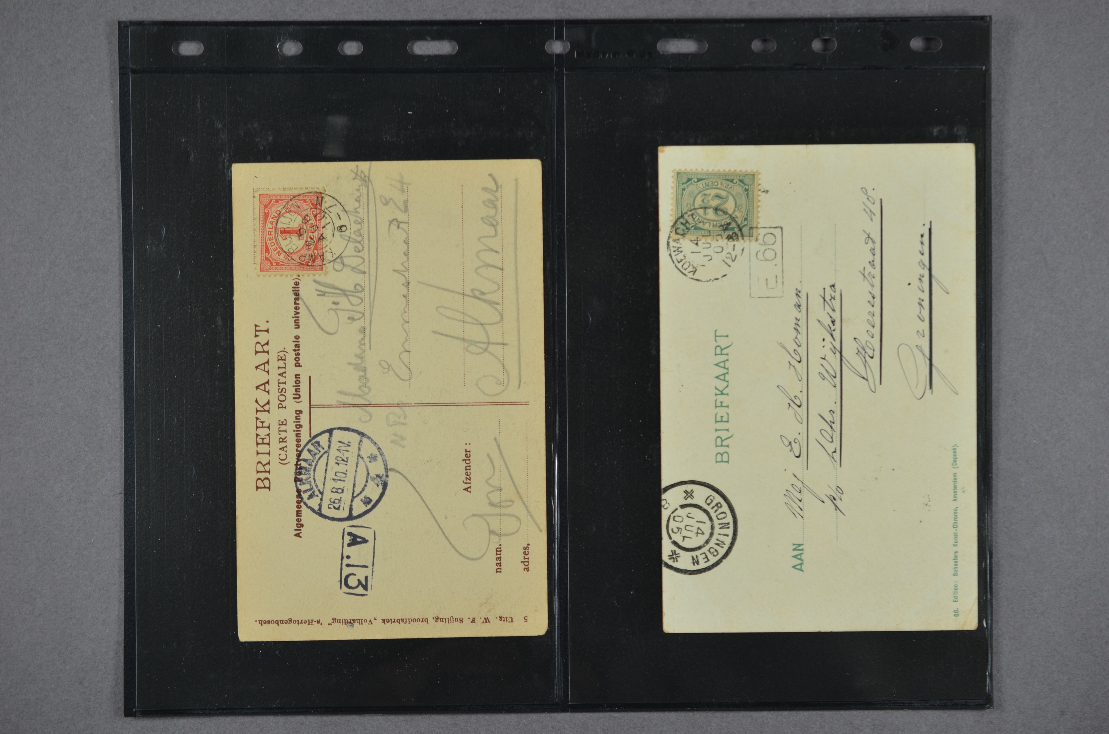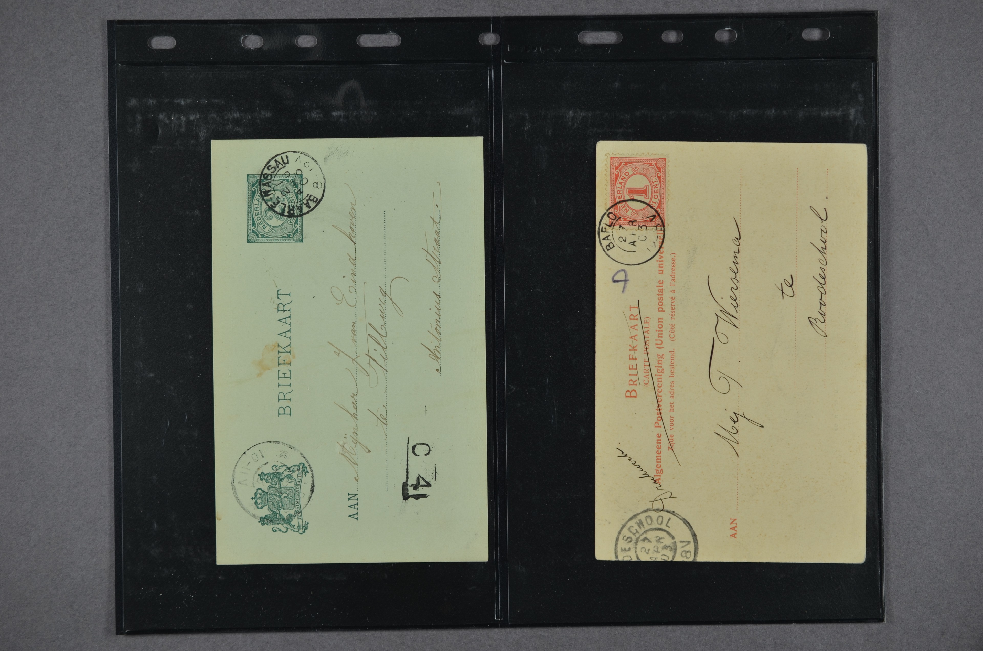 KLEINROND OP POSTSTUK, collectie van ruim 450 poststukken w.o. veel prentbriefkaarten, allemaal met kleinrondstempels van post-, hulppost- (merendeels) en bijpostkantoren, ook van spoorwegtrajecten, stations, Kamp bij Rijen (meerdere ex.), Amsterdam E, diverse schaarse stempels, enige doubletten, veel prachtige afstempelingen, enkele in blauw of violet, in 2 Leuchtturm-ringbanden. Prachtobject voor de handel of verzamelaar om op te zetten