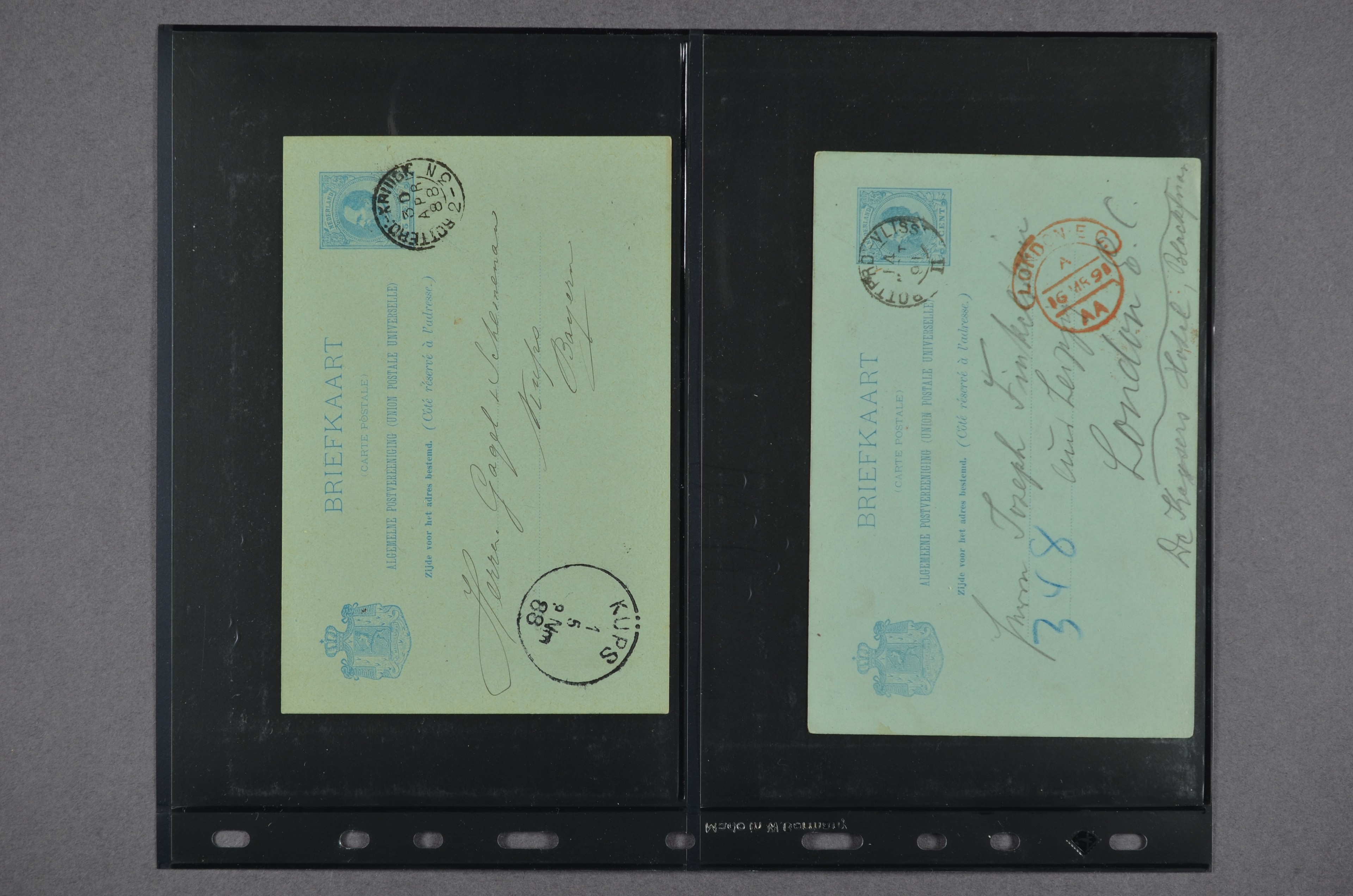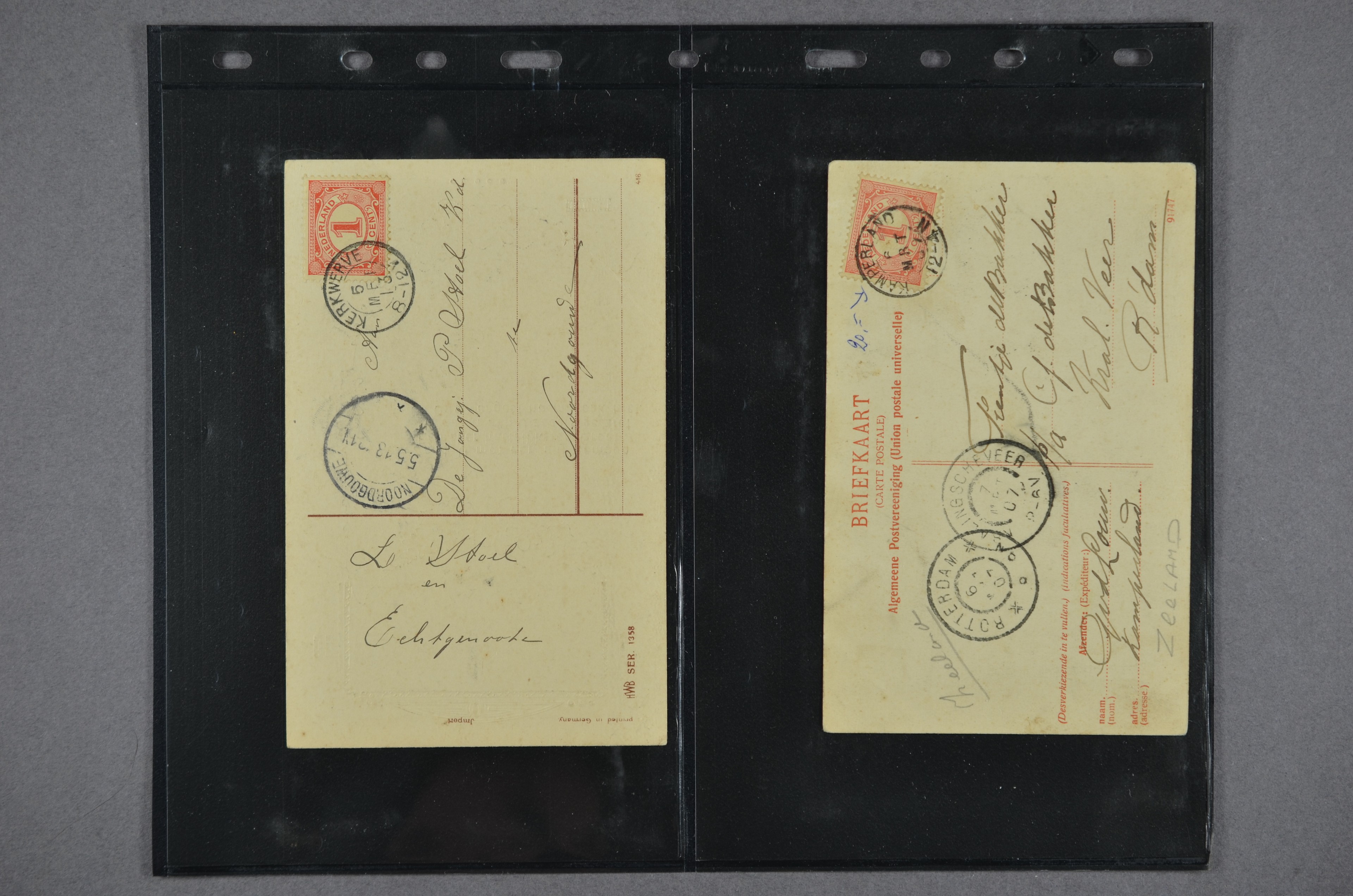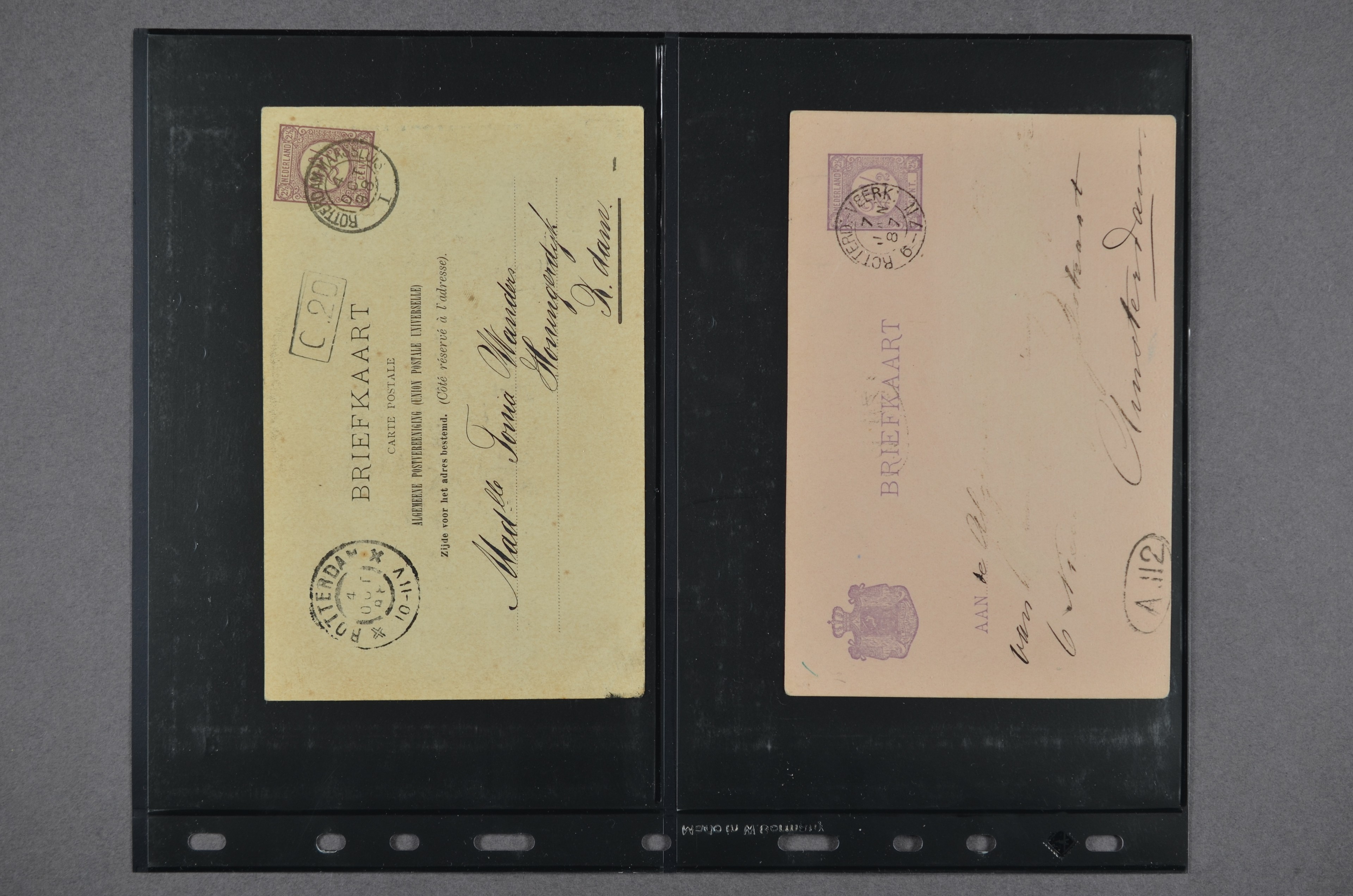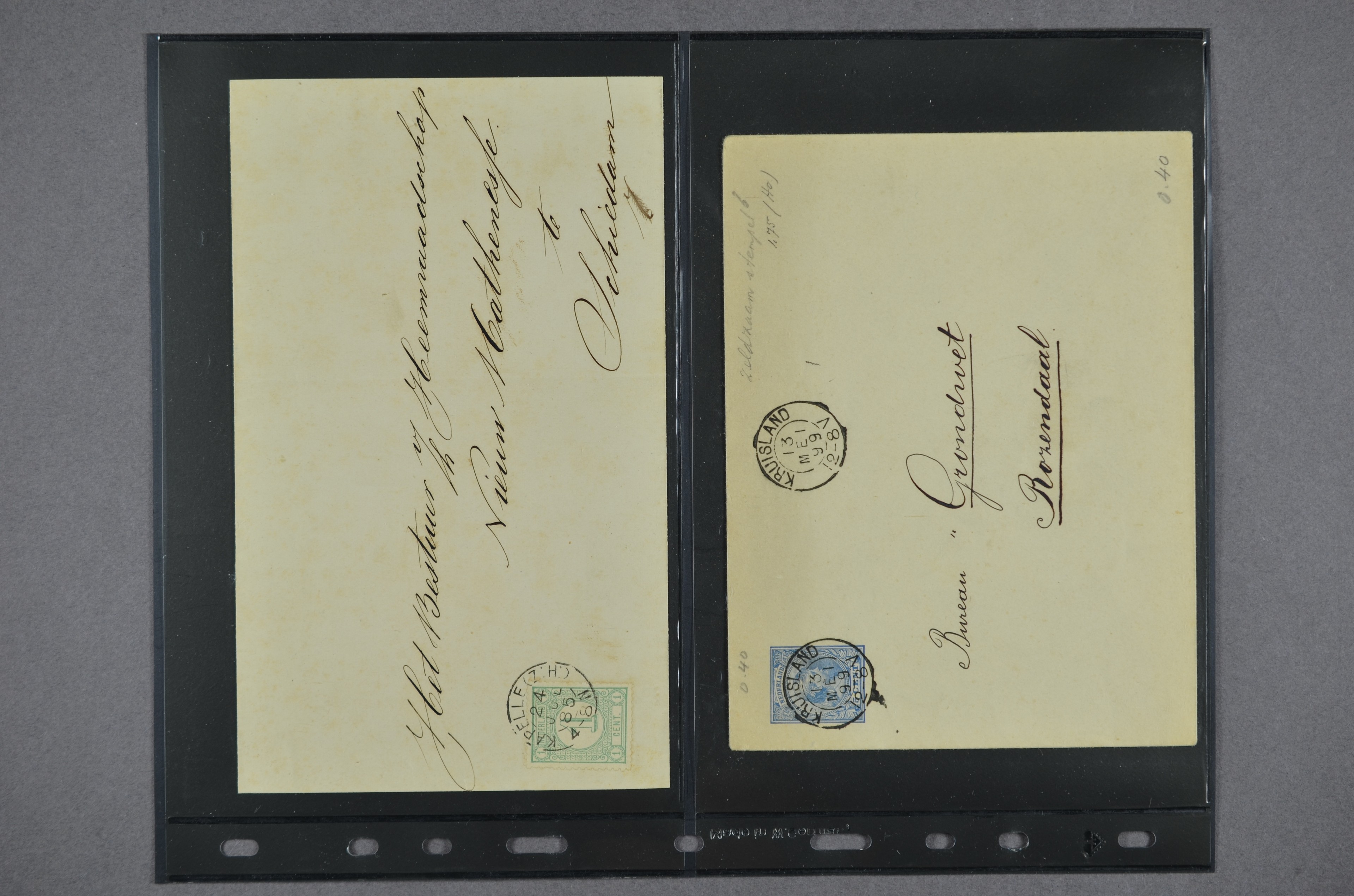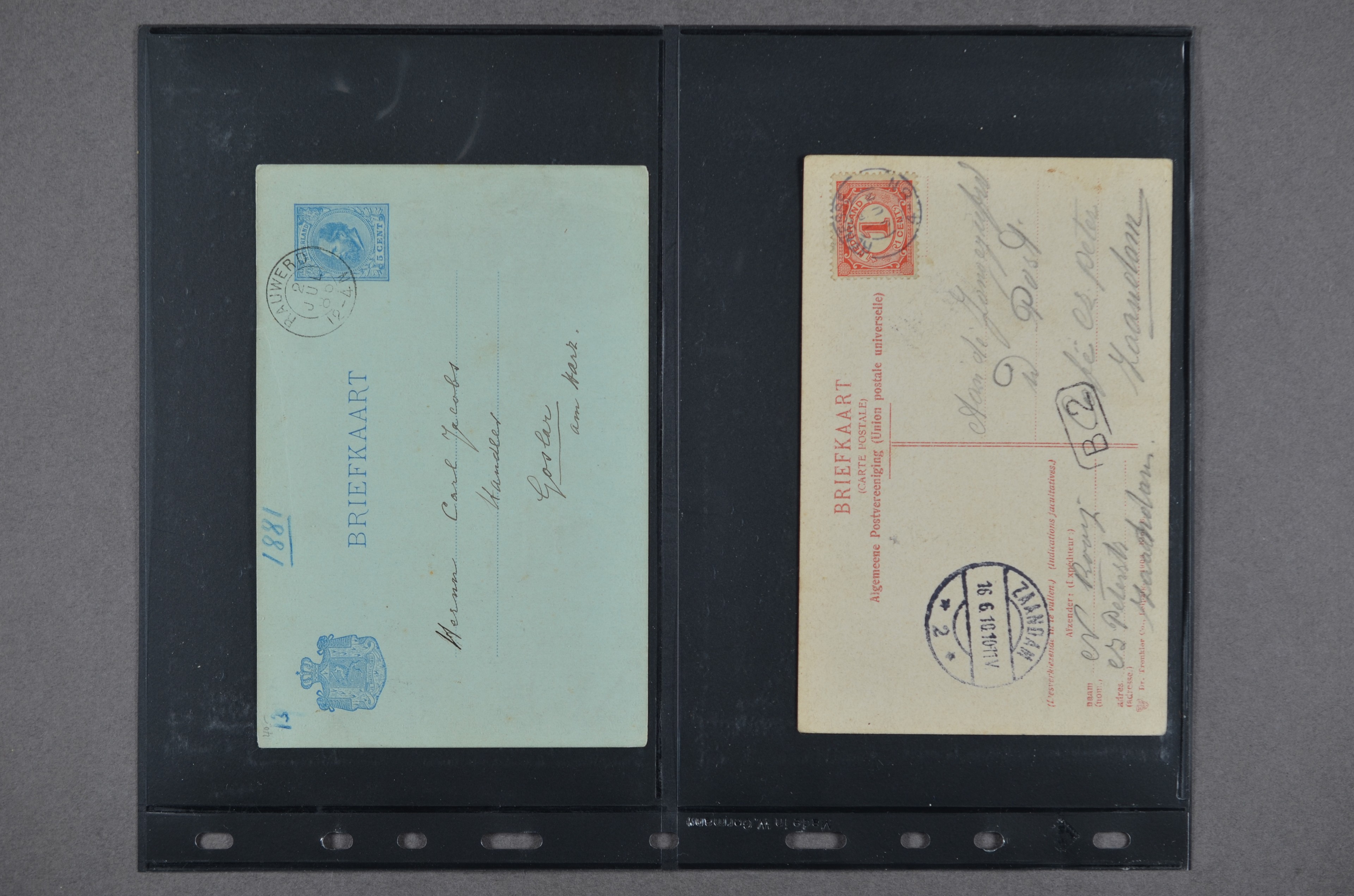 KLEINROND OP POSTSTUK, collectie van ruim 450 poststukken w.o. veel prentbriefkaarten, allemaal met kleinrondstempels van post-, hulppost- (merendeels) en bijpostkantoren, ook van spoorwegtrajecten, stations, Kamp bij Rijen (meerdere ex.), Amsterdam E, diverse schaarse stempels, enige doubletten, veel prachtige afstempelingen, enkele in blauw of violet, in 2 Leuchtturm-ringbanden. Prachtobject voor de handel of verzamelaar om op te zetten