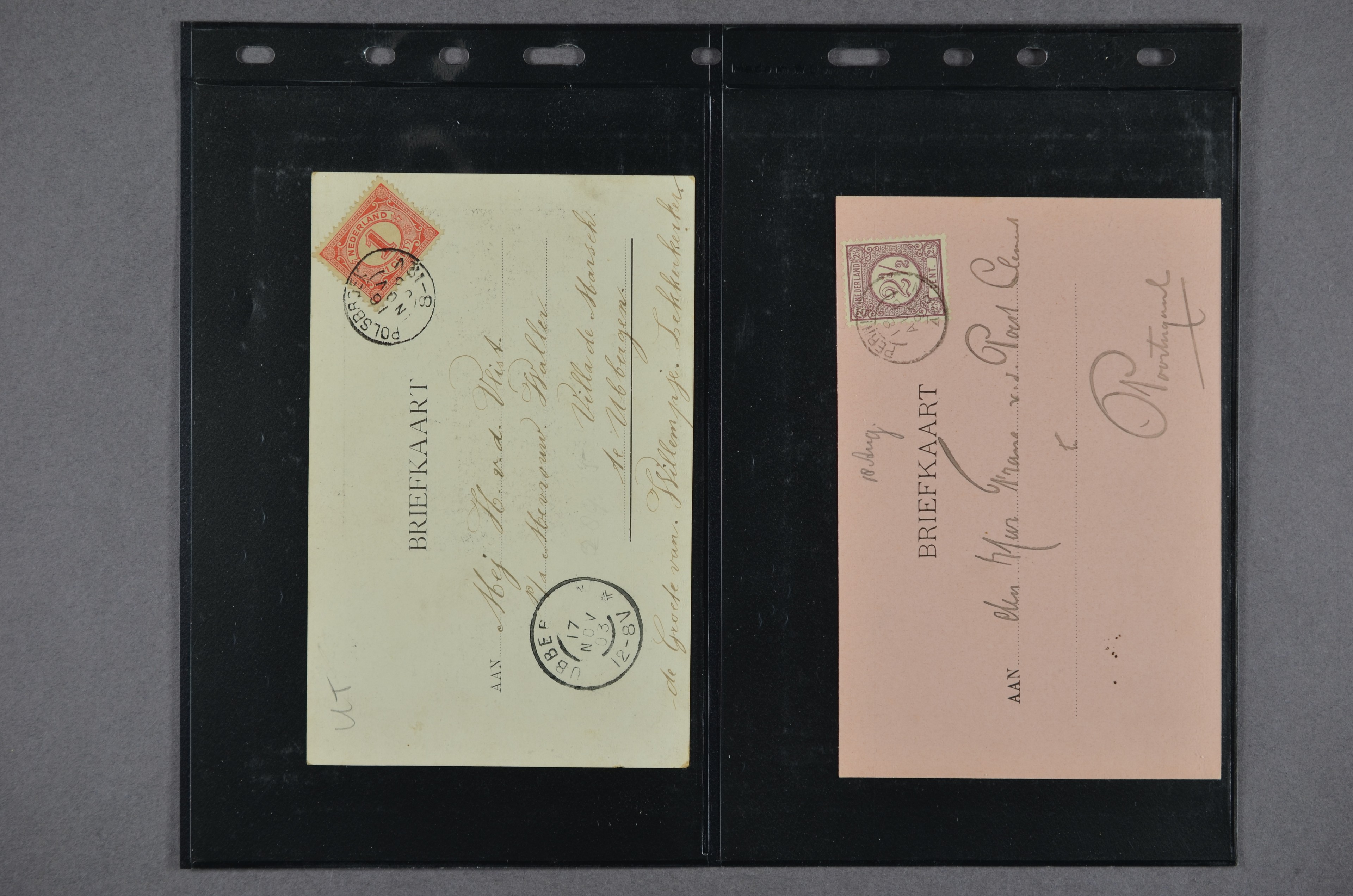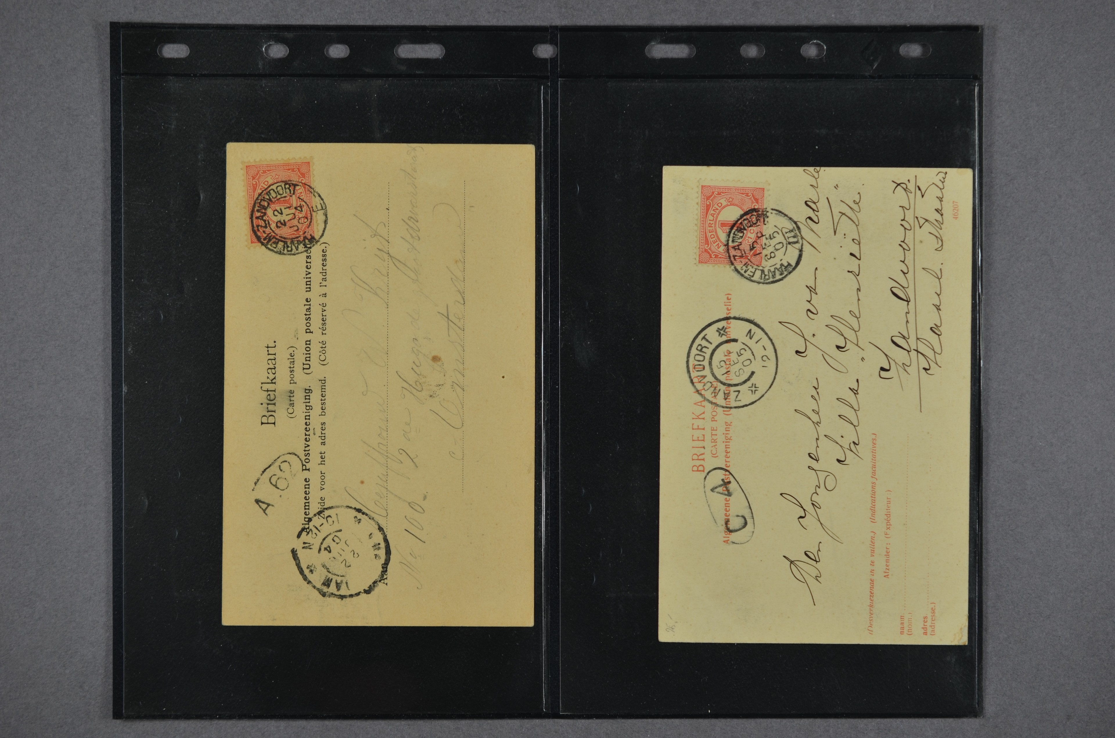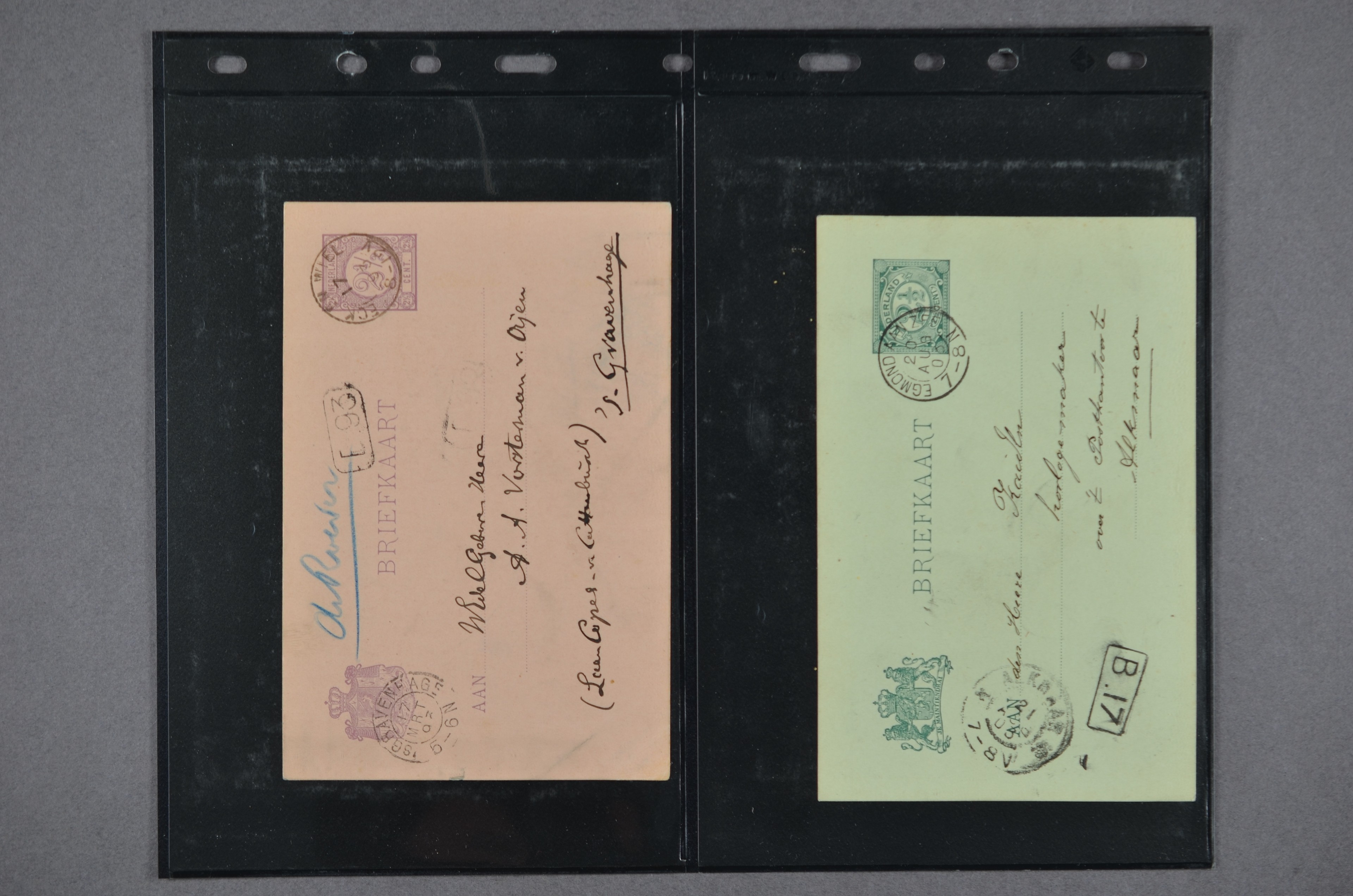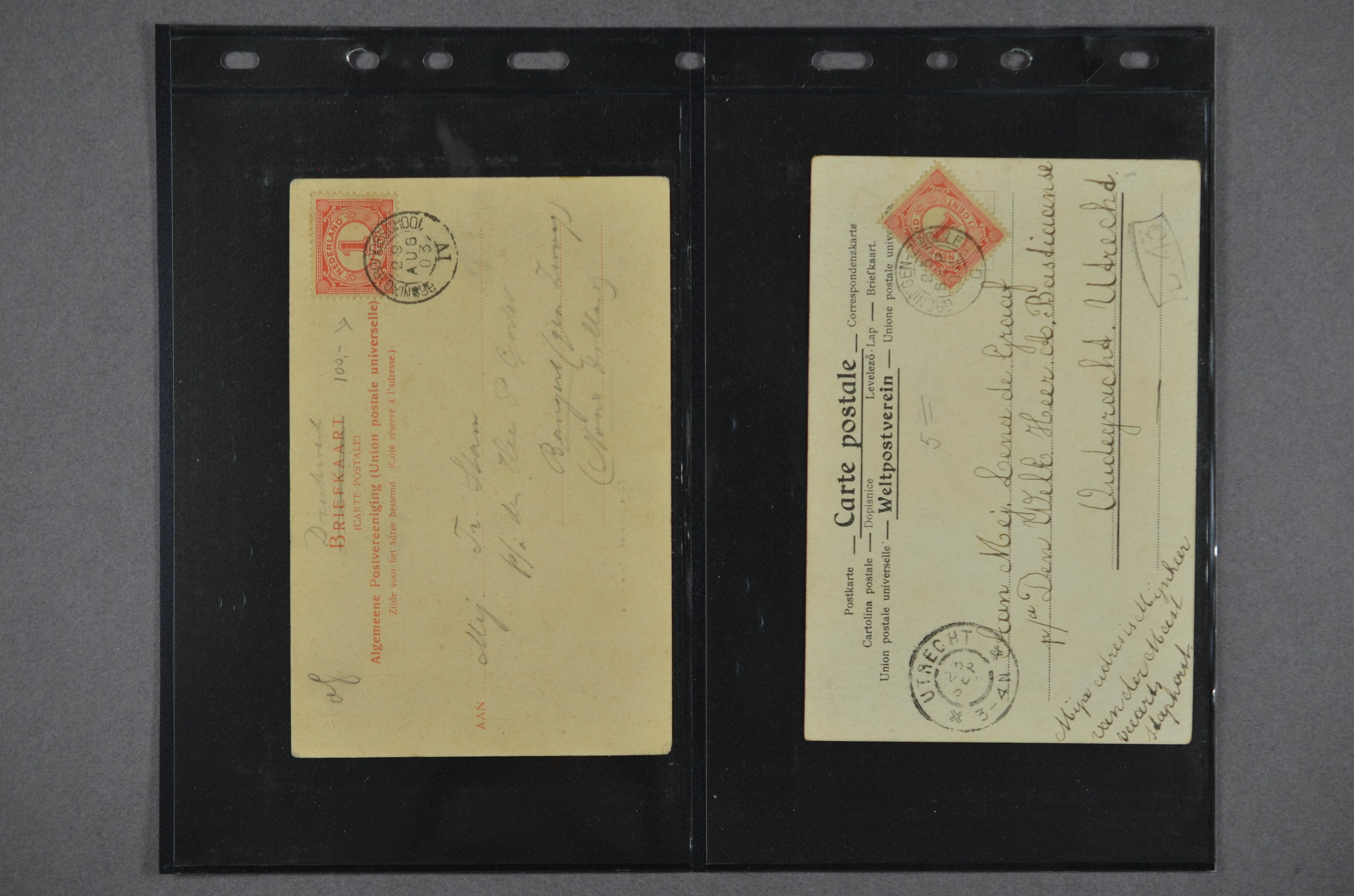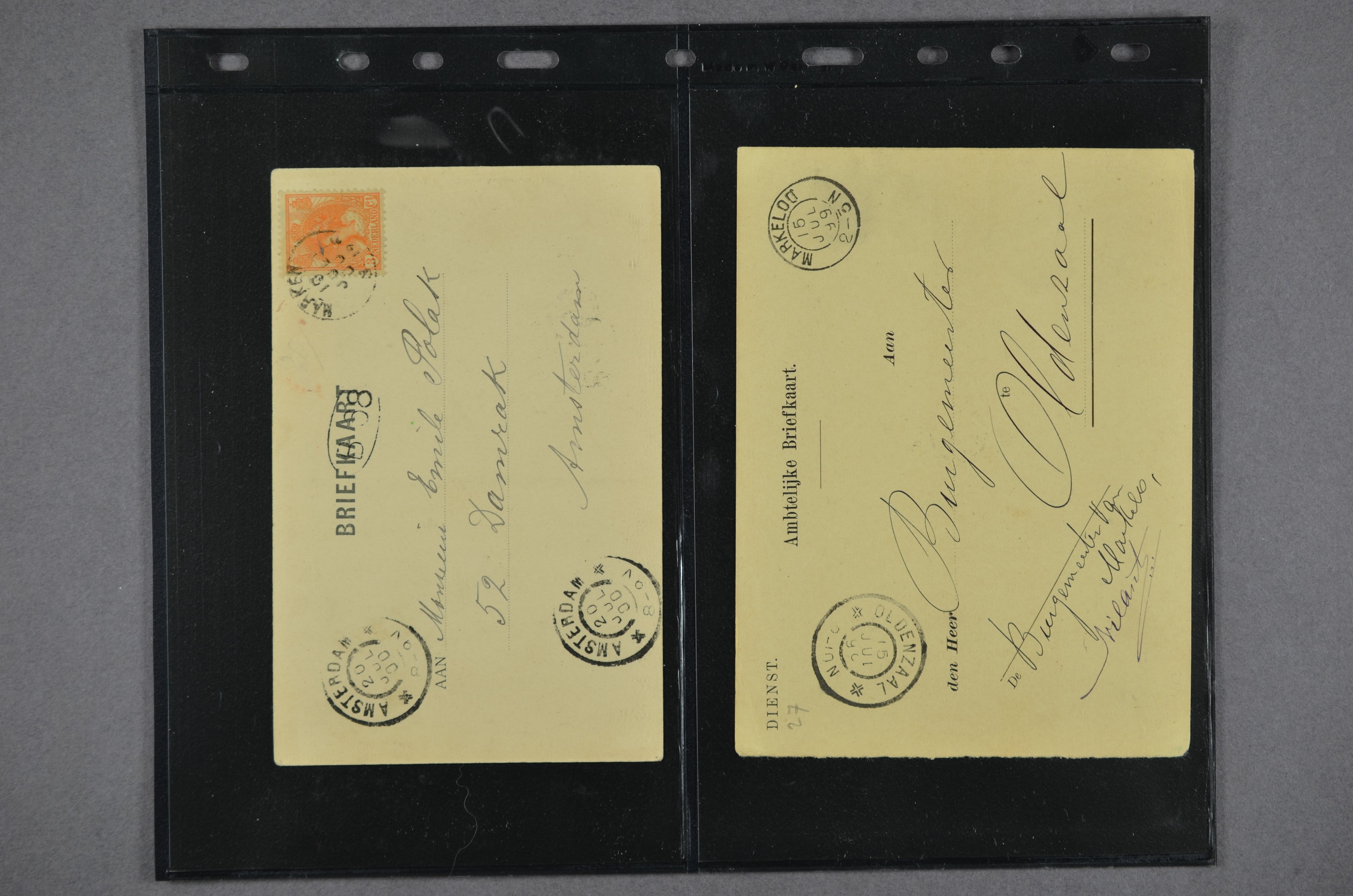 KLEINROND OP POSTSTUK, collectie van ruim 450 poststukken w.o. veel prentbriefkaarten, allemaal met kleinrondstempels van post-, hulppost- (merendeels) en bijpostkantoren, ook van spoorwegtrajecten, stations, Kamp bij Rijen (meerdere ex.), Amsterdam E, diverse schaarse stempels, enige doubletten, veel prachtige afstempelingen, enkele in blauw of violet, in 2 Leuchtturm-ringbanden. Prachtobject voor de handel of verzamelaar om op te zetten