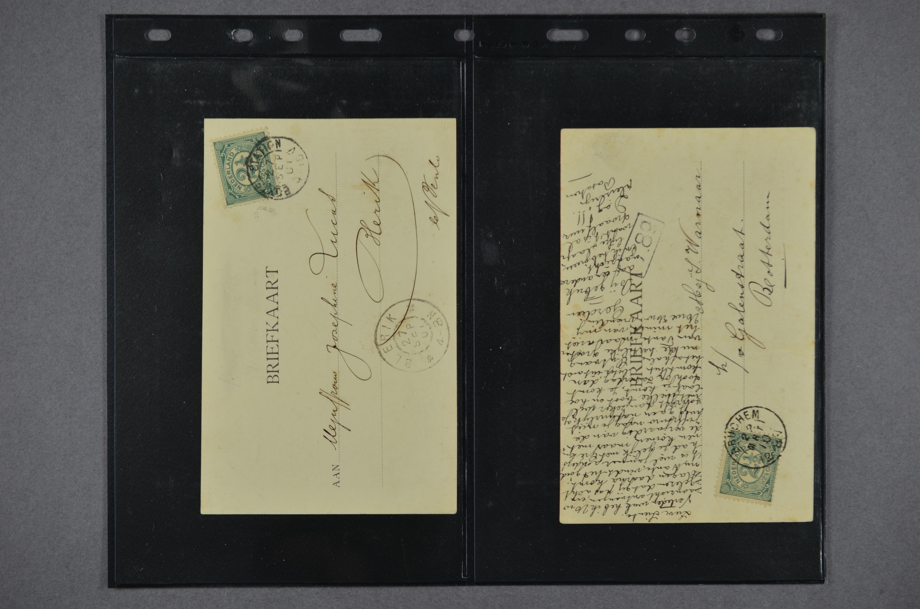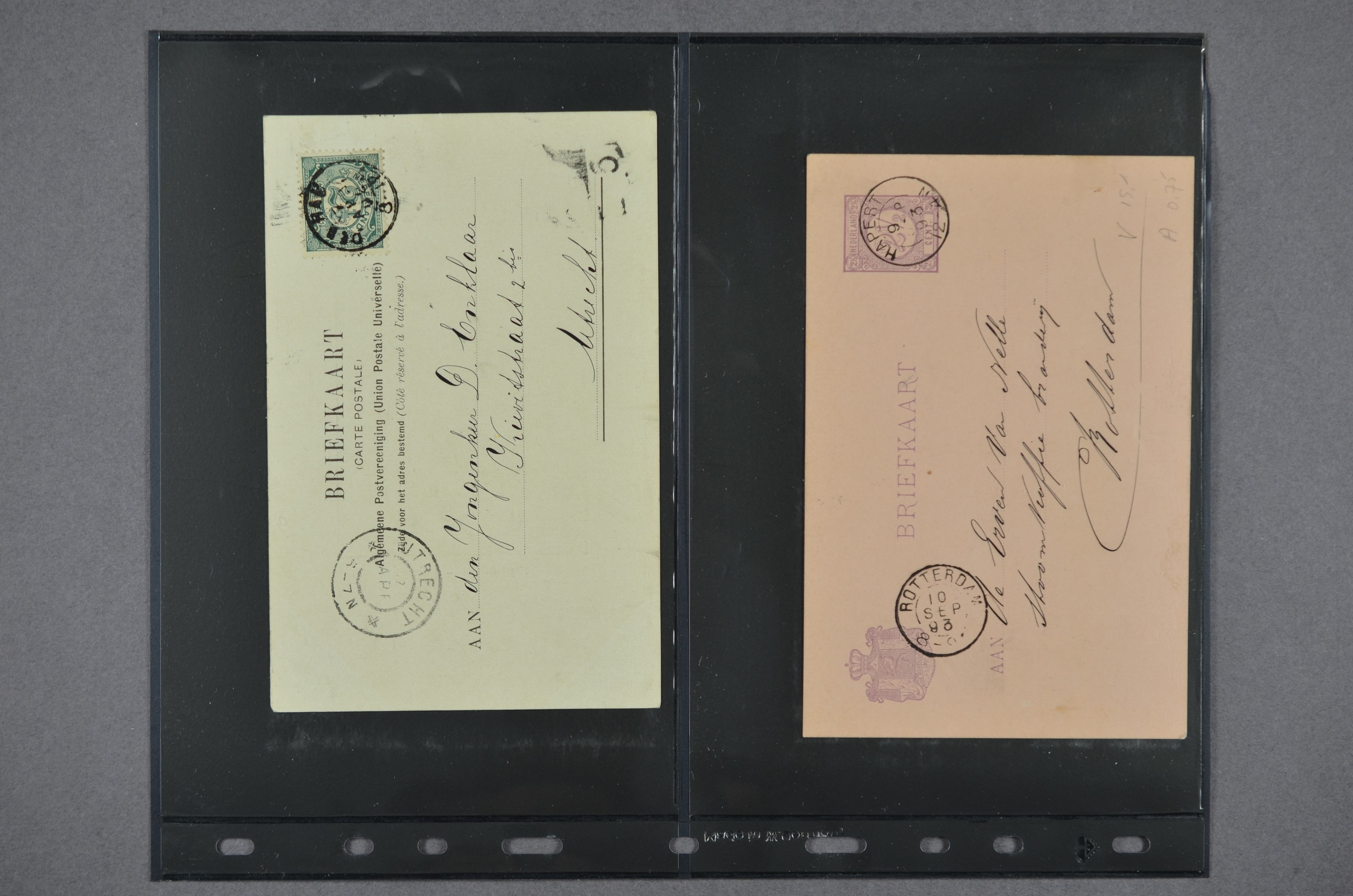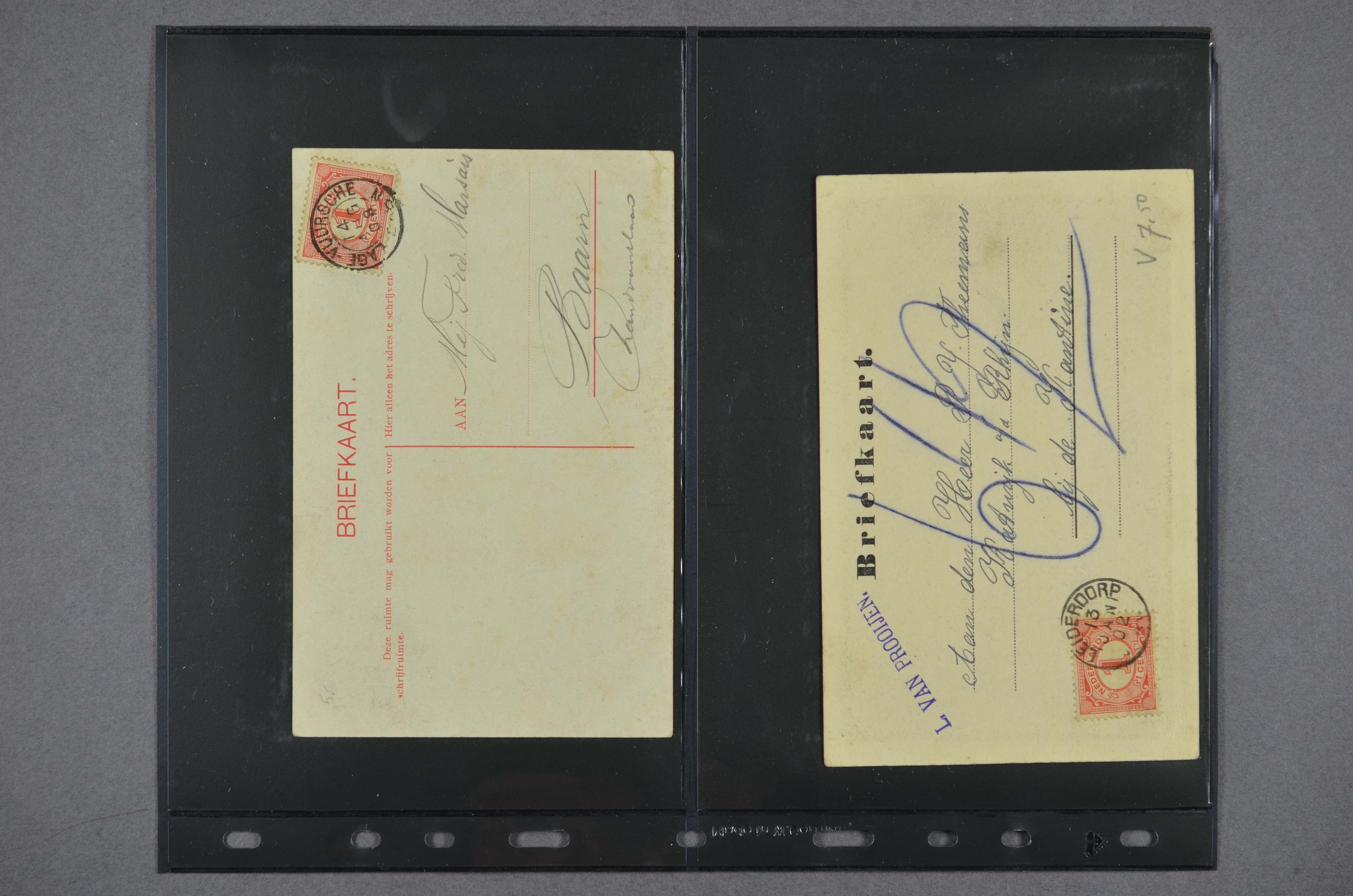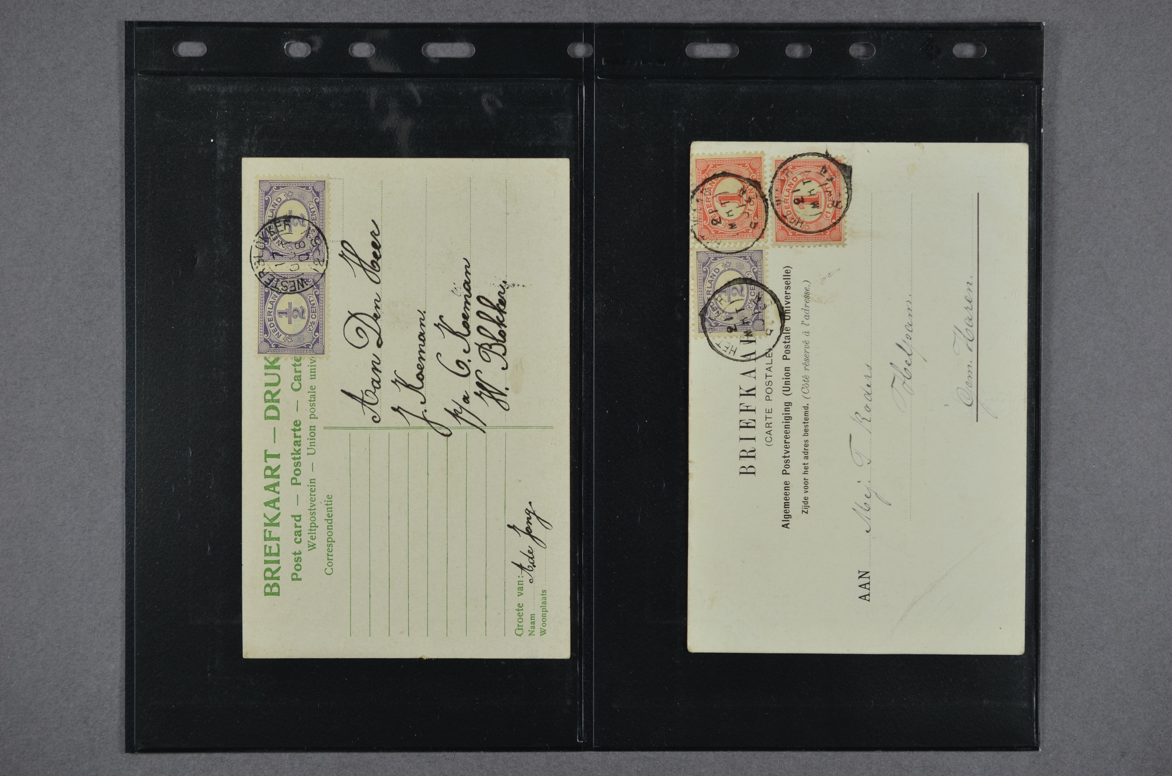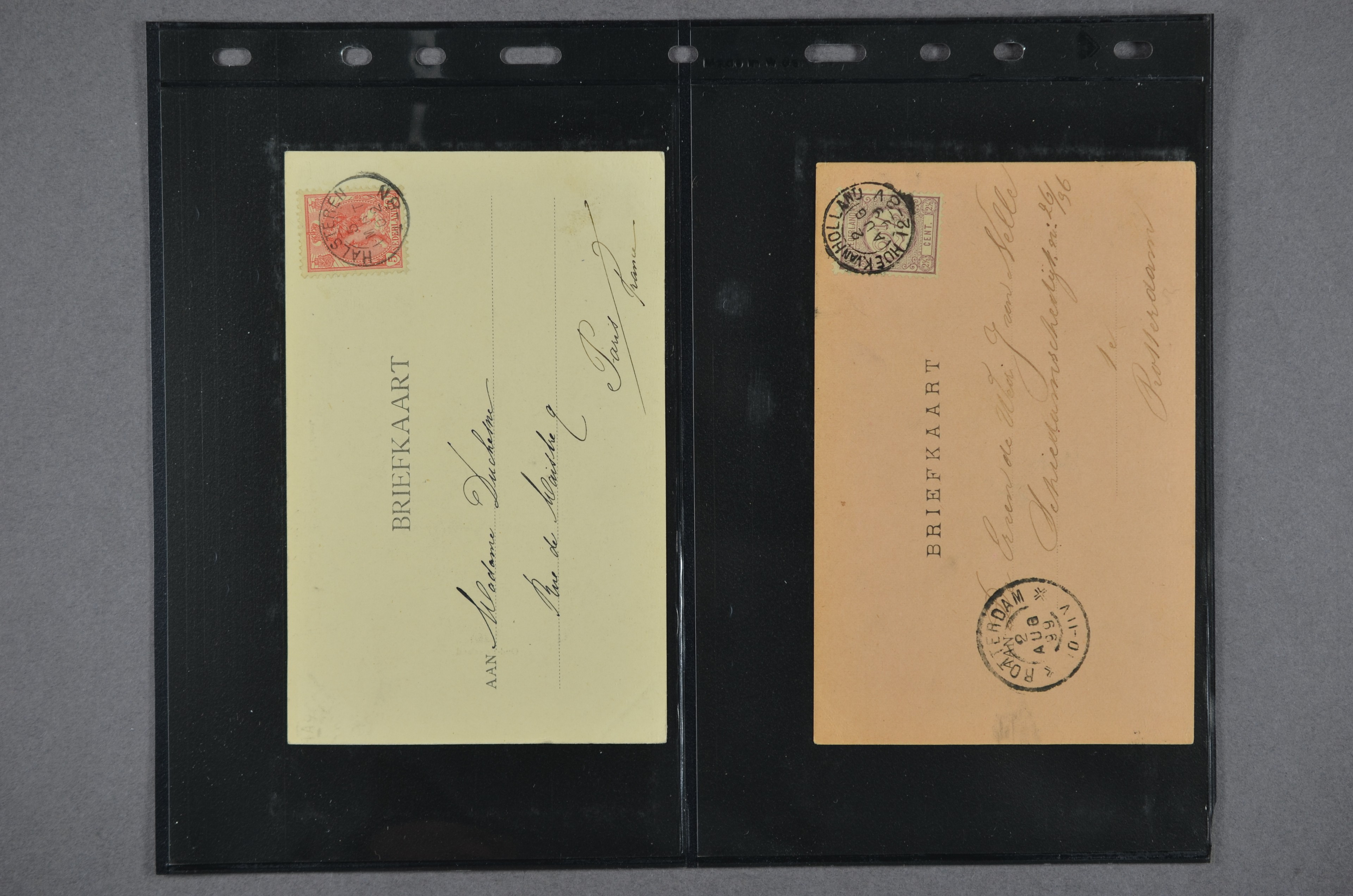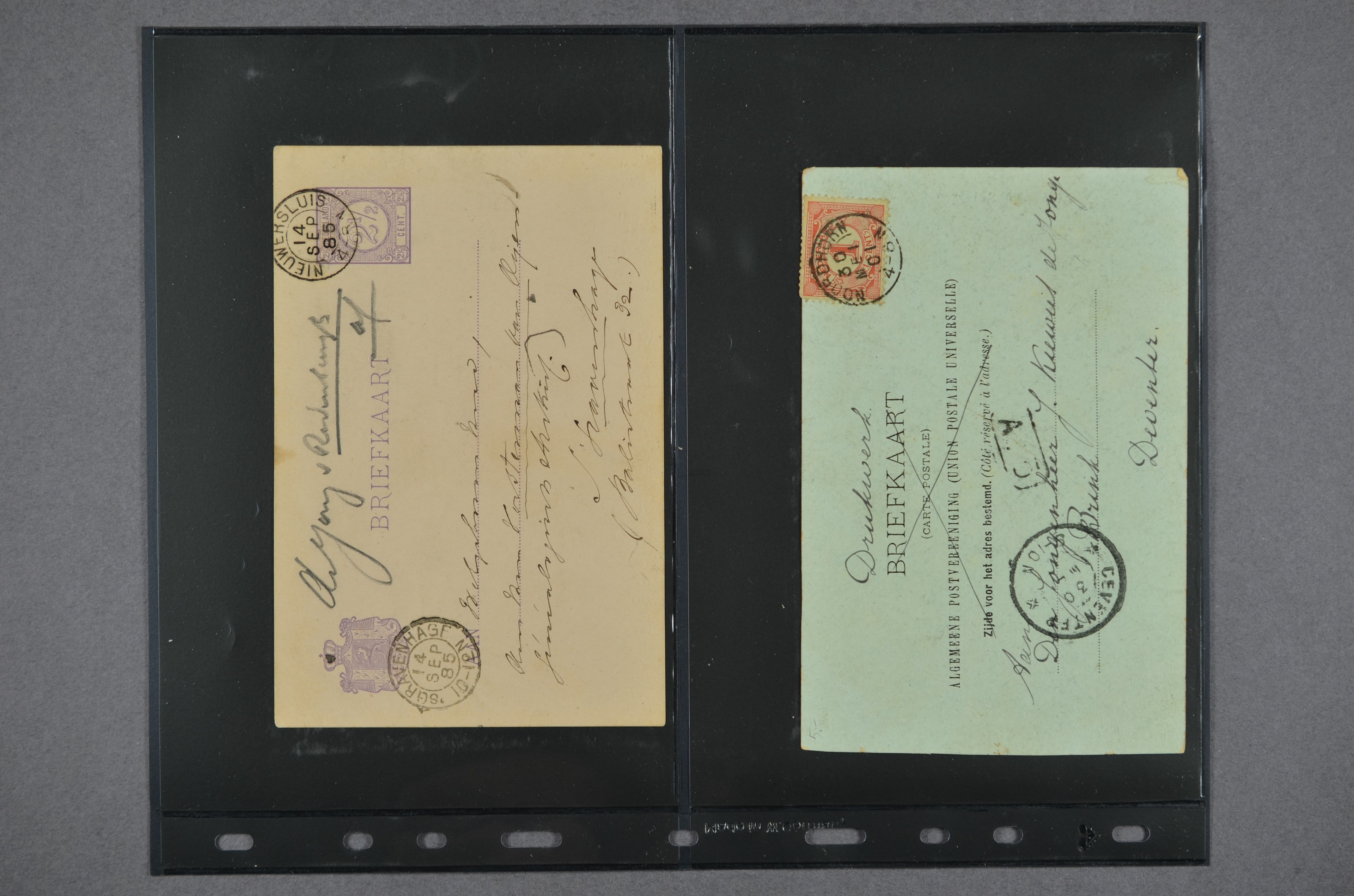 KLEINROND OP POSTSTUK, collectie van ruim 450 poststukken w.o. veel prentbriefkaarten, allemaal met kleinrondstempels van post-, hulppost- (merendeels) en bijpostkantoren, ook van spoorwegtrajecten, stations, Kamp bij Rijen (meerdere ex.), Amsterdam E, diverse schaarse stempels, enige doubletten, veel prachtige afstempelingen, enkele in blauw of violet, in 2 Leuchtturm-ringbanden. Prachtobject voor de handel of verzamelaar om op te zetten