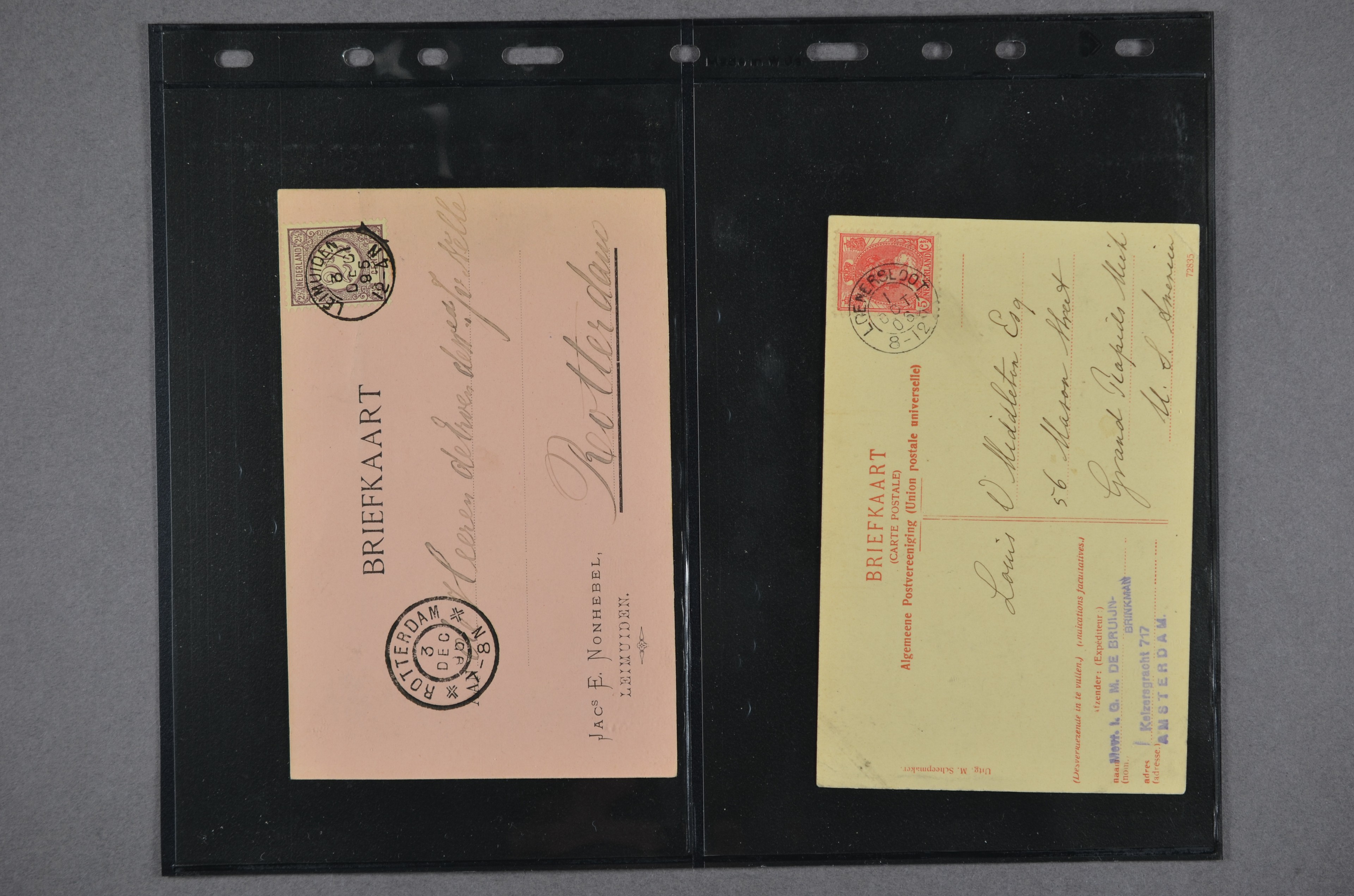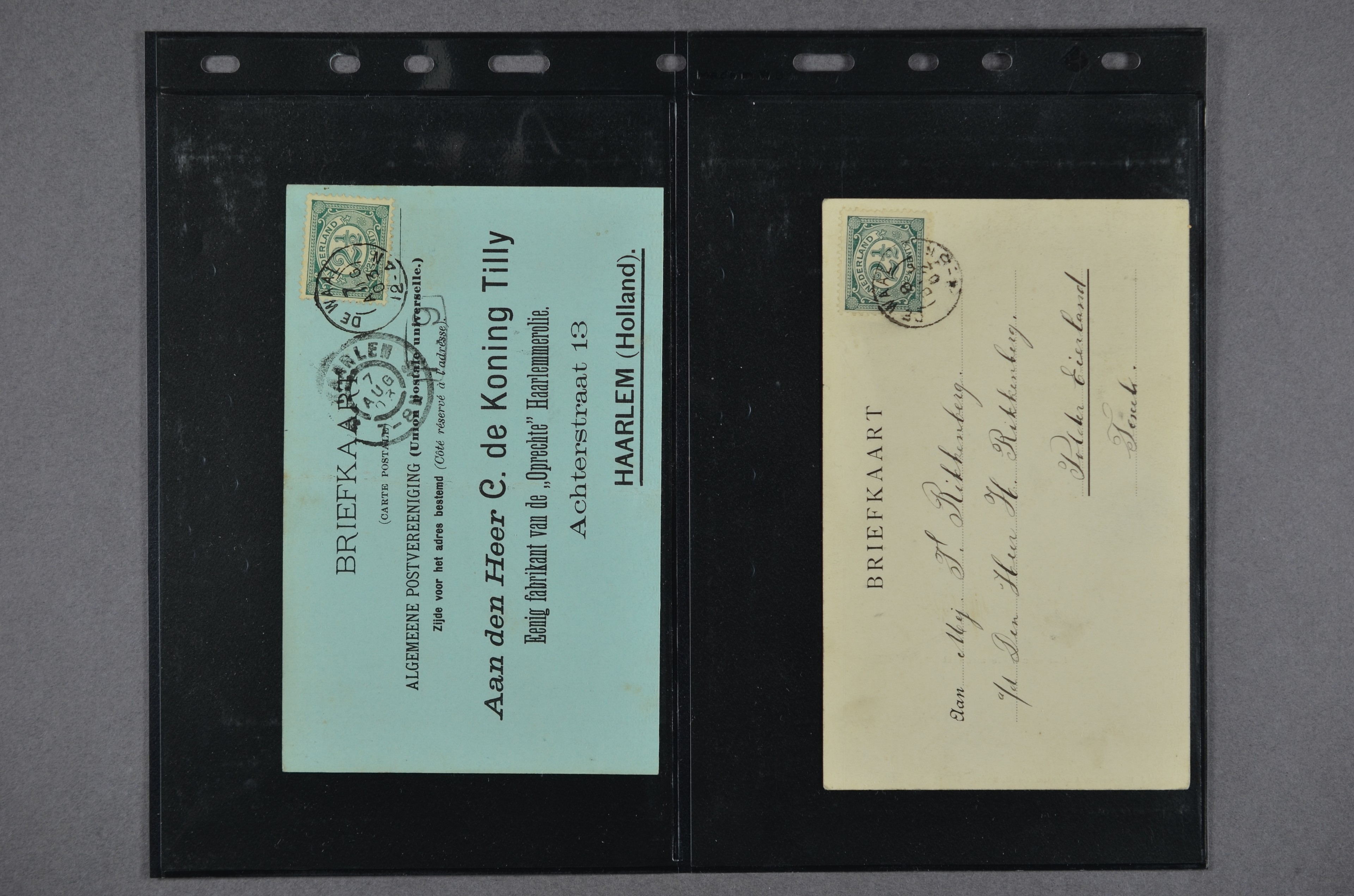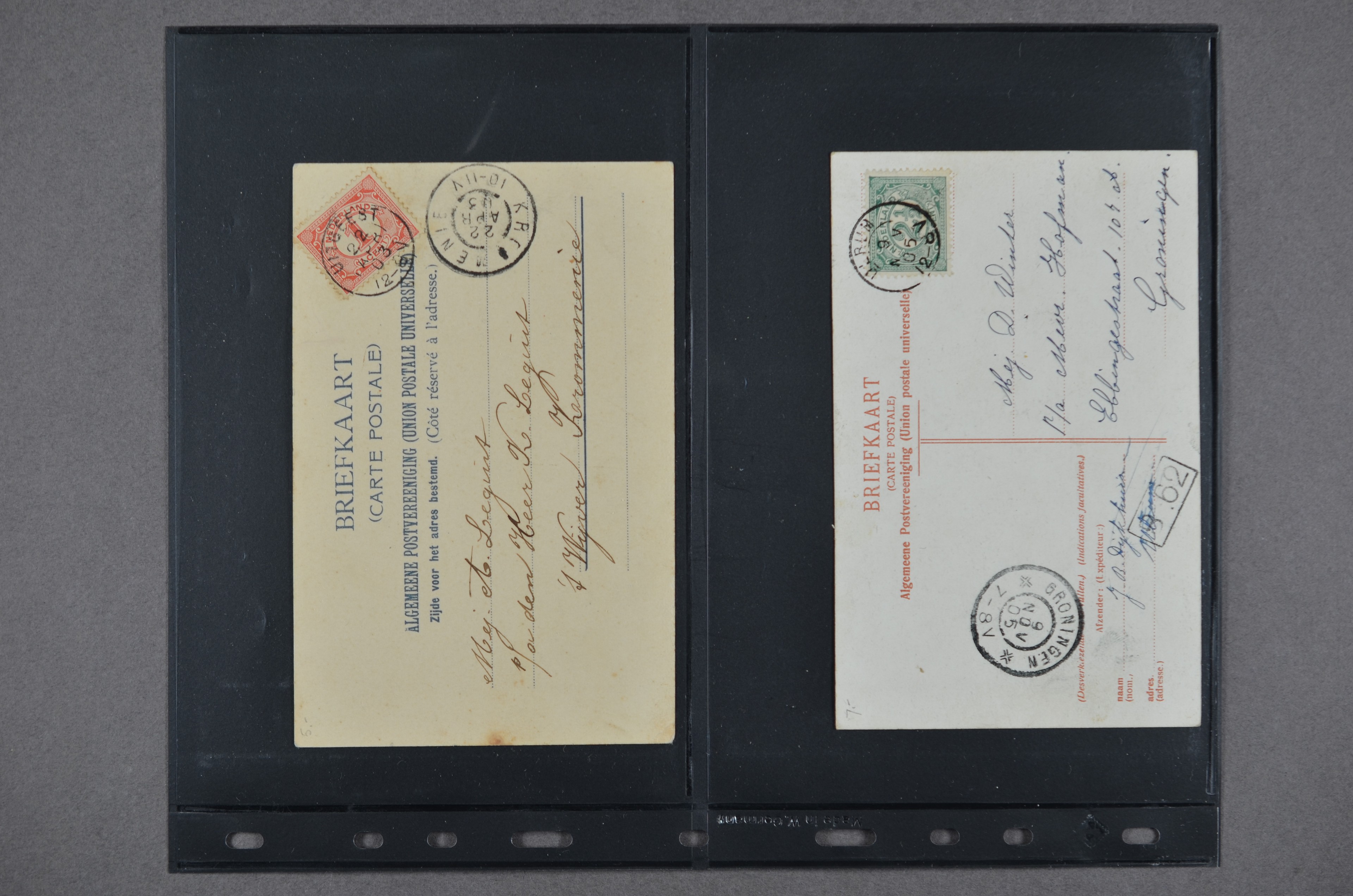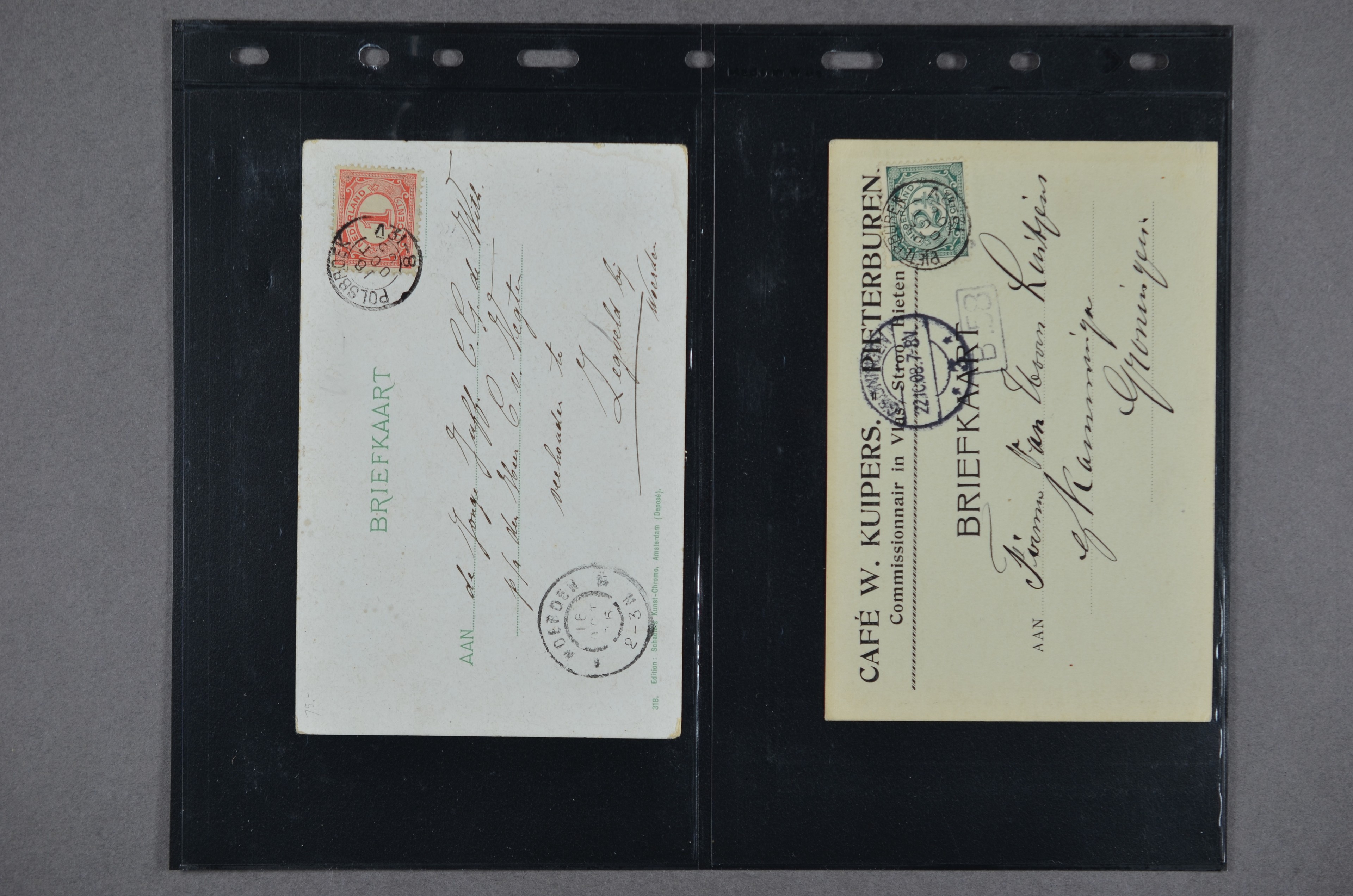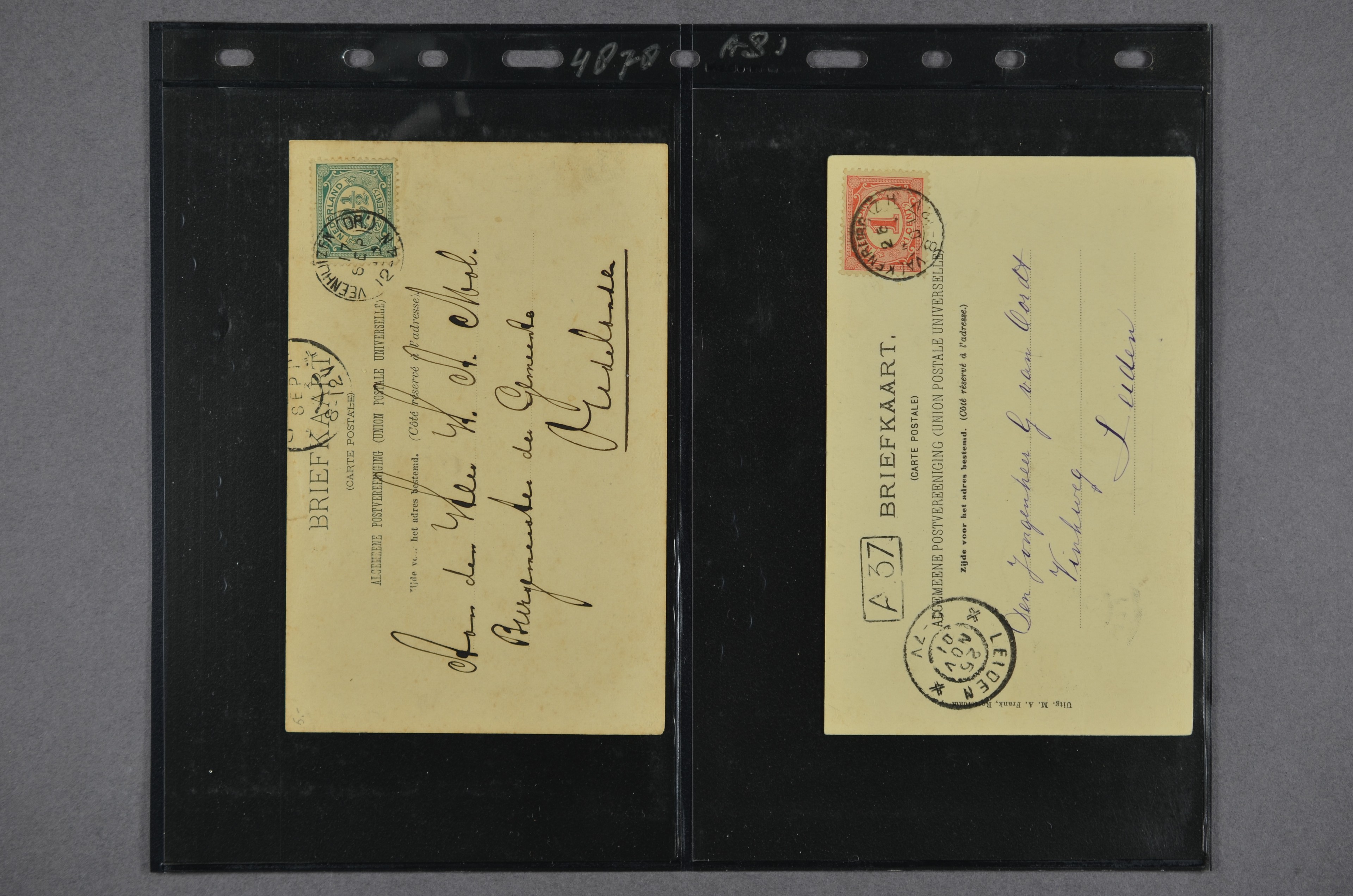 KLEINROND OP POSTSTUK, collectie van ruim 450 poststukken w.o. veel prentbriefkaarten, allemaal met kleinrondstempels van post-, hulppost- (merendeels) en bijpostkantoren, ook van spoorwegtrajecten, stations, Kamp bij Rijen (meerdere ex.), Amsterdam E, diverse schaarse stempels, enige doubletten, veel prachtige afstempelingen, enkele in blauw of violet, in 2 Leuchtturm-ringbanden. Prachtobject voor de handel of verzamelaar om op te zetten