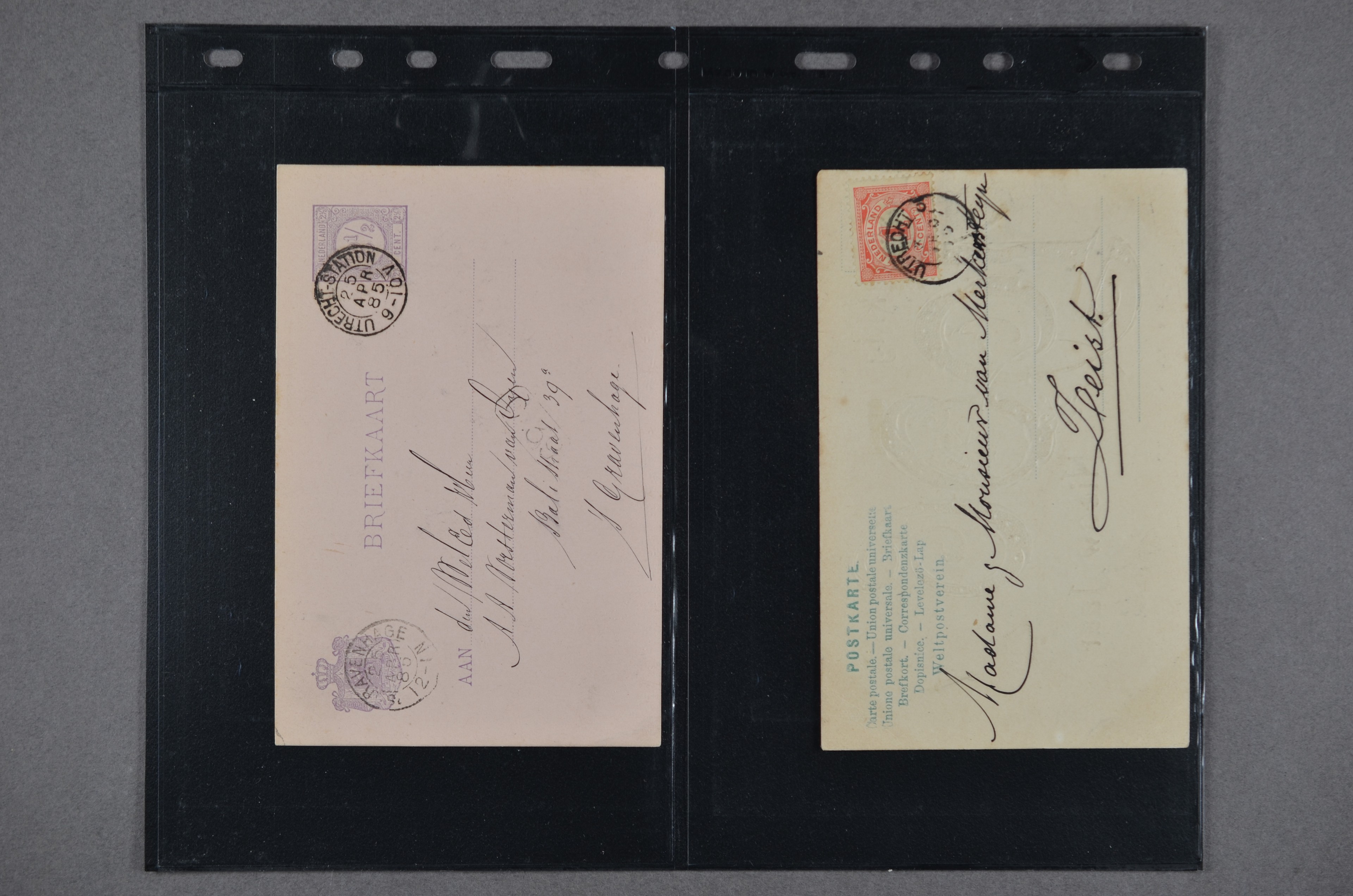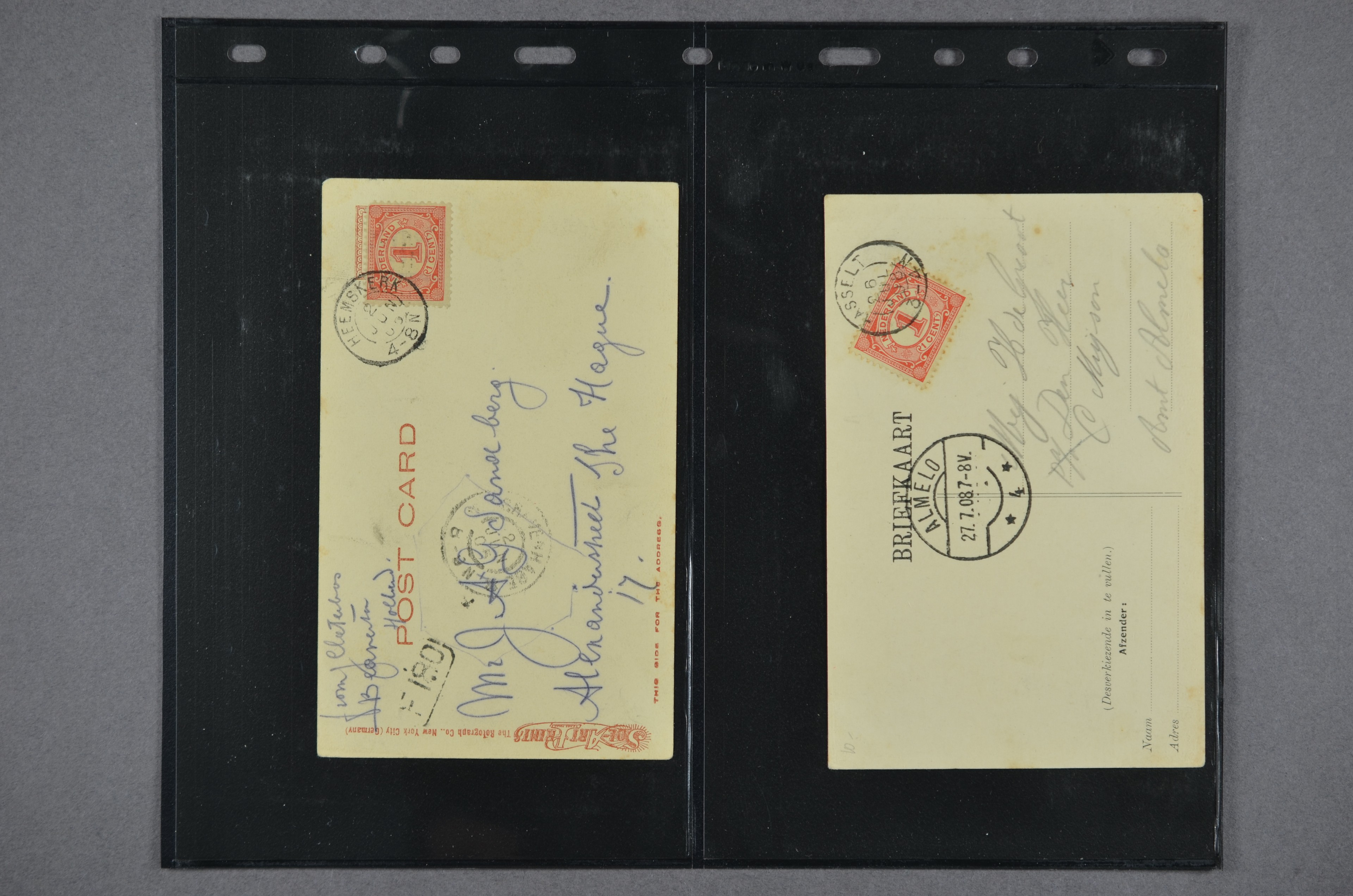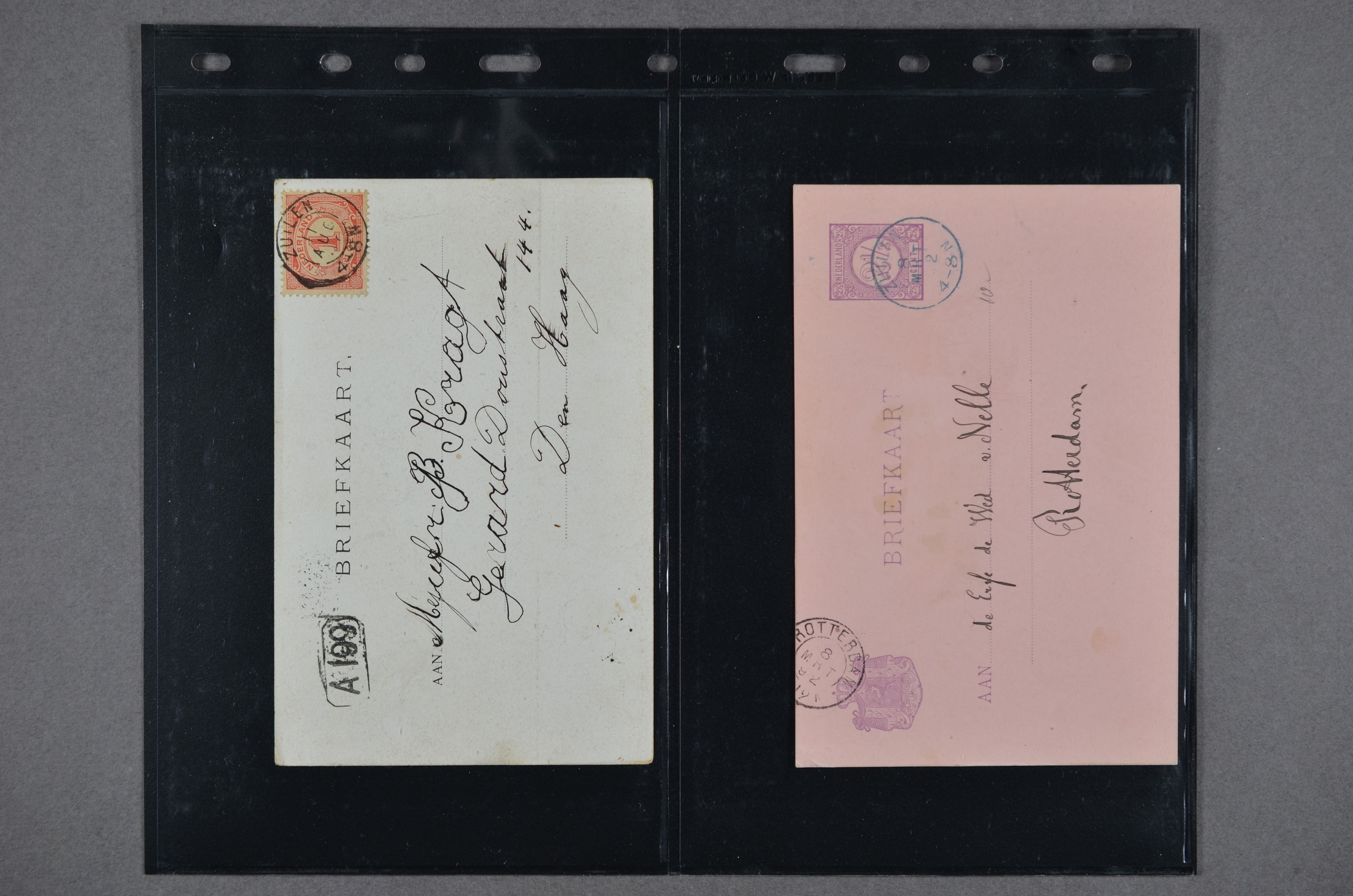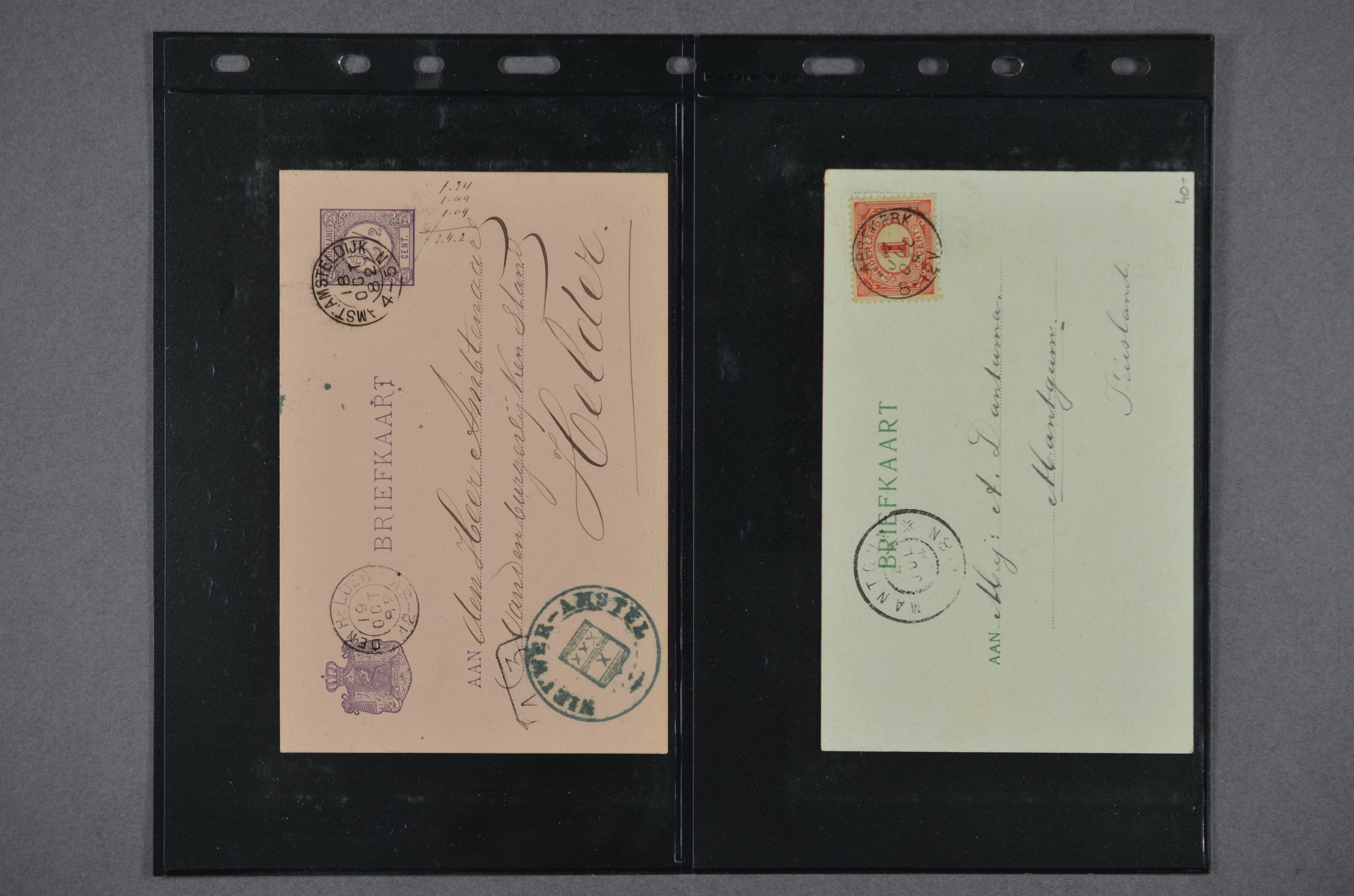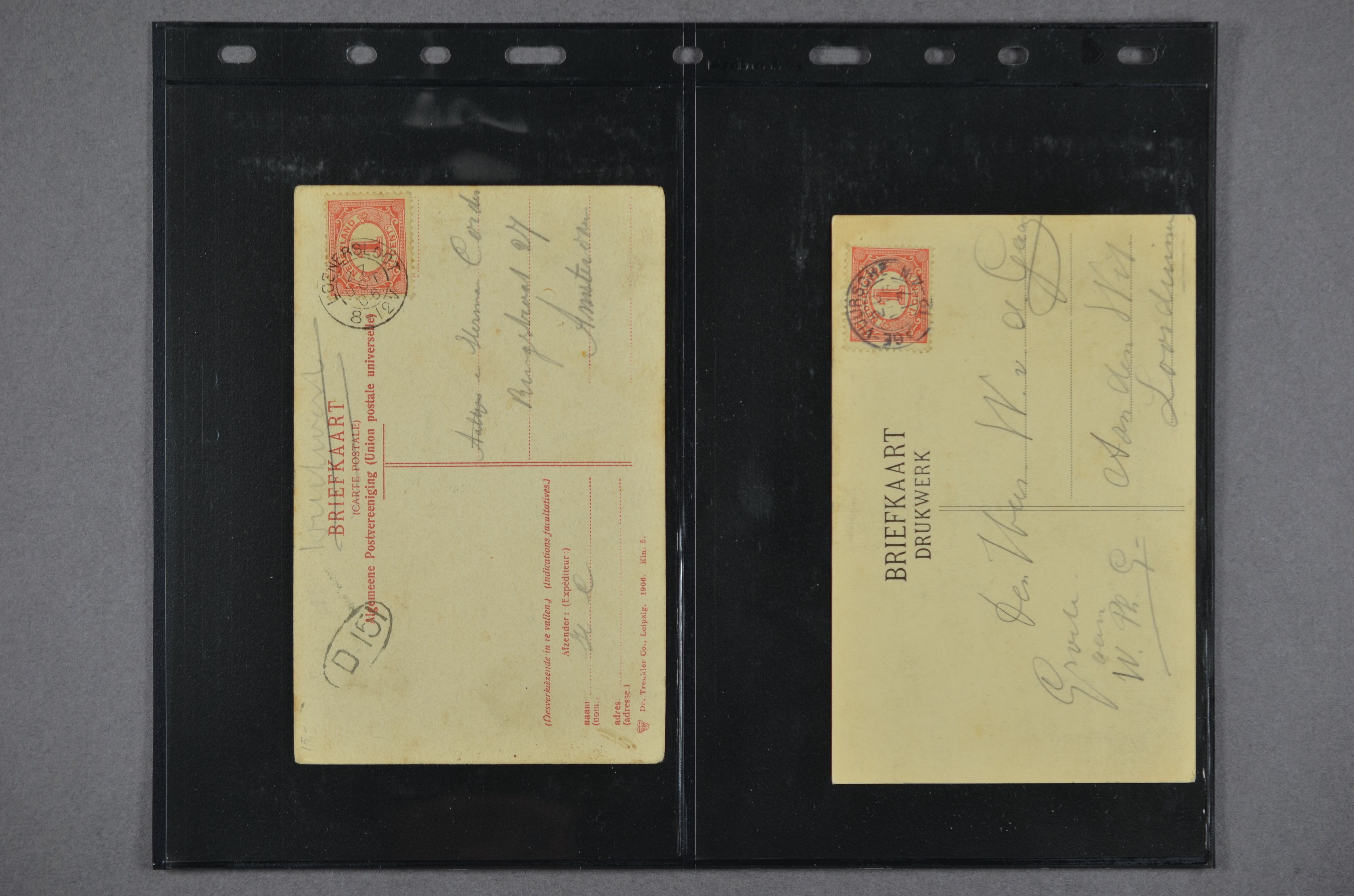 KLEINROND OP POSTSTUK, collectie van ruim 450 poststukken w.o. veel prentbriefkaarten, allemaal met kleinrondstempels van post-, hulppost- (merendeels) en bijpostkantoren, ook van spoorwegtrajecten, stations, Kamp bij Rijen (meerdere ex.), Amsterdam E, diverse schaarse stempels, enige doubletten, veel prachtige afstempelingen, enkele in blauw of violet, in 2 Leuchtturm-ringbanden. Prachtobject voor de handel of verzamelaar om op te zetten