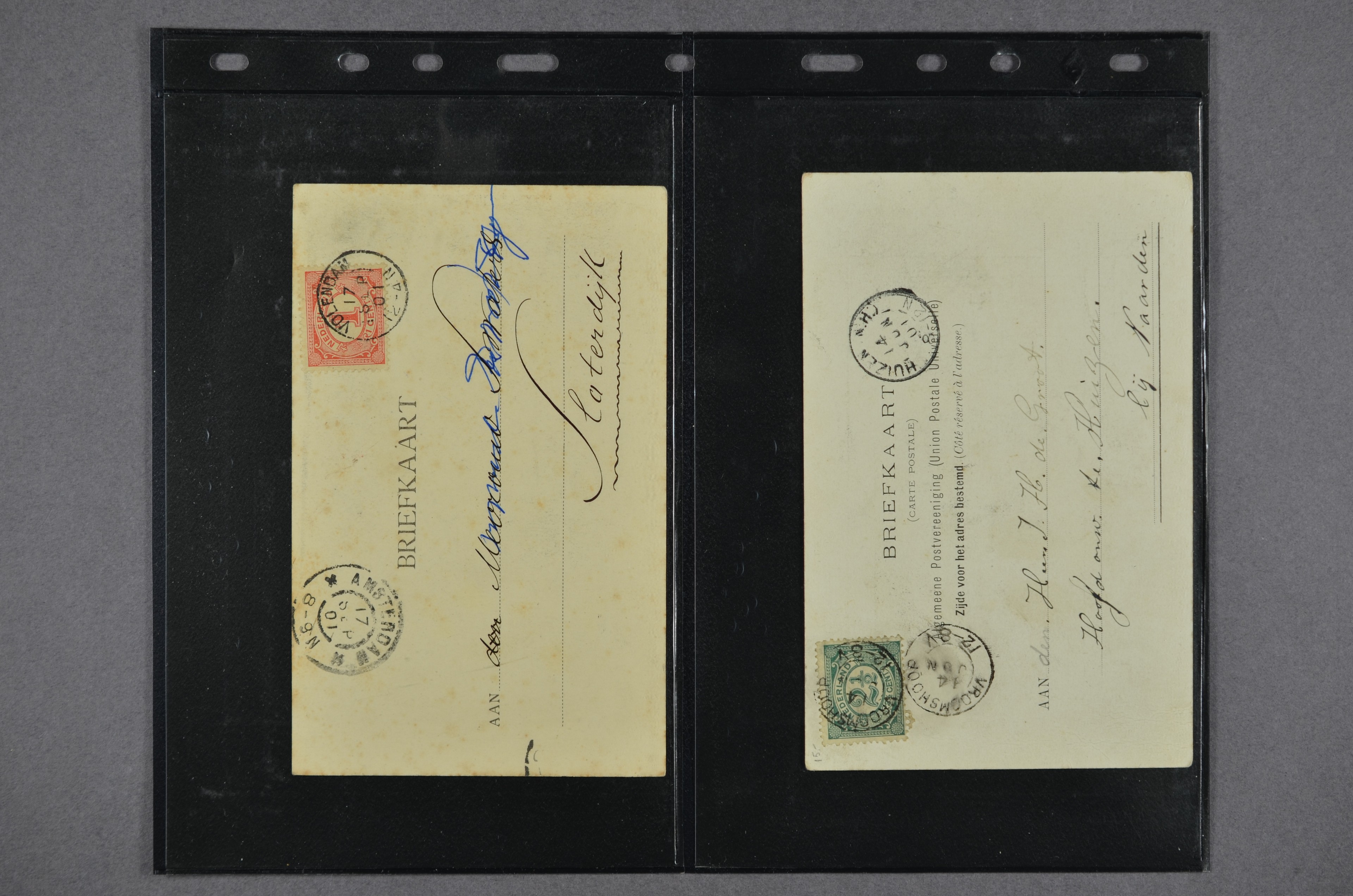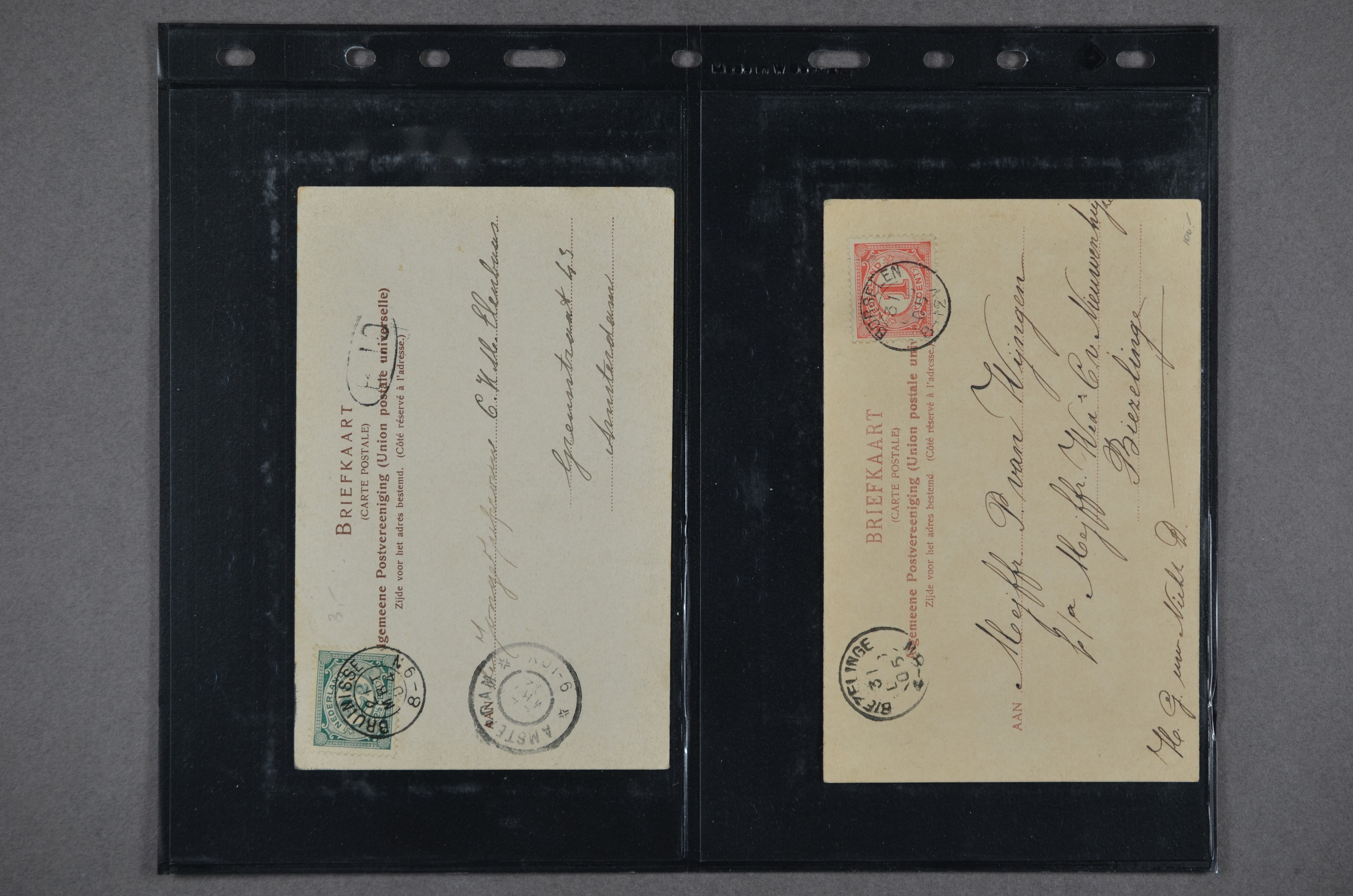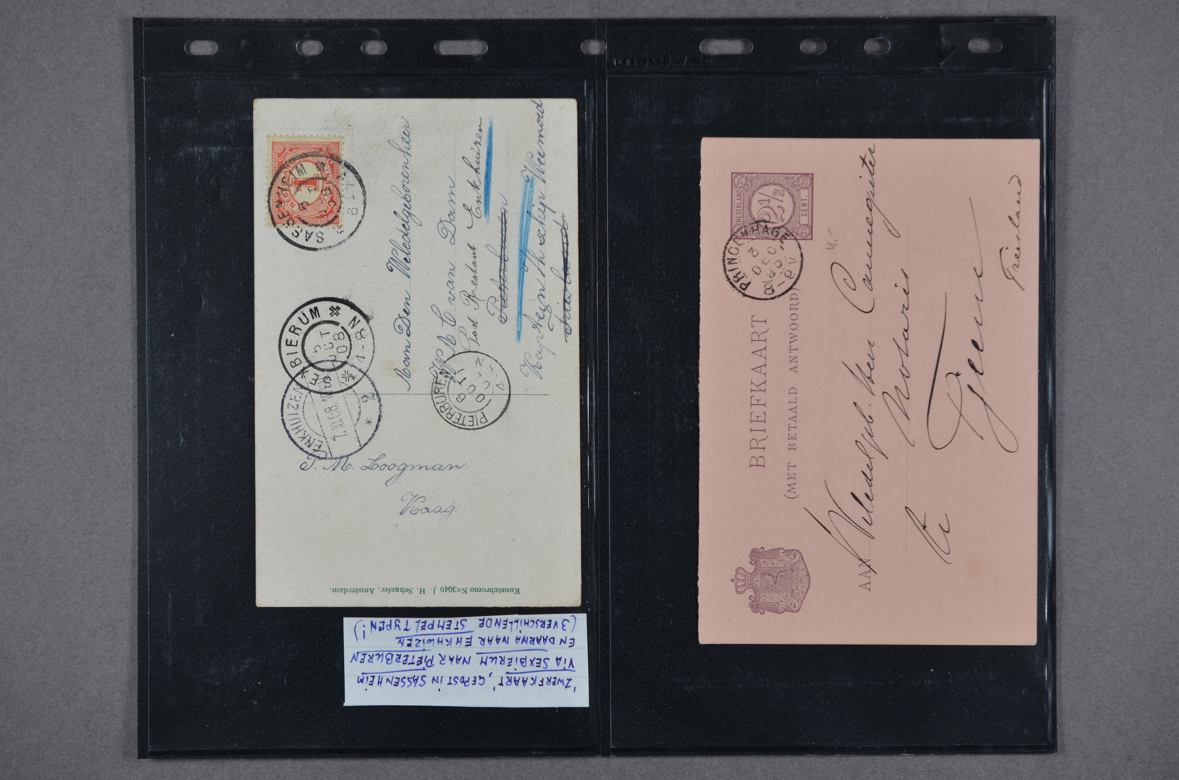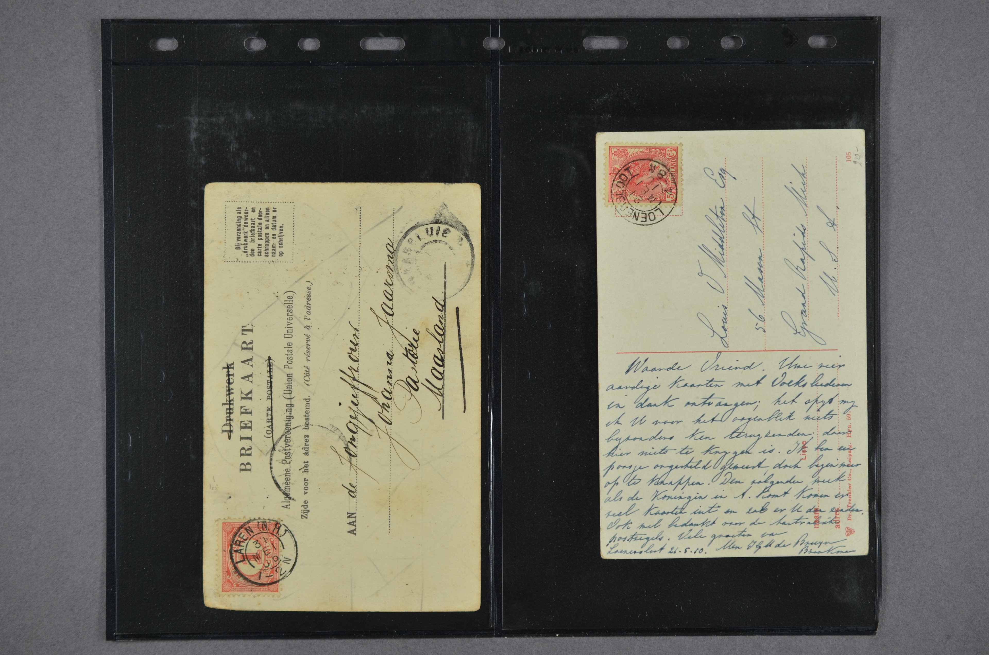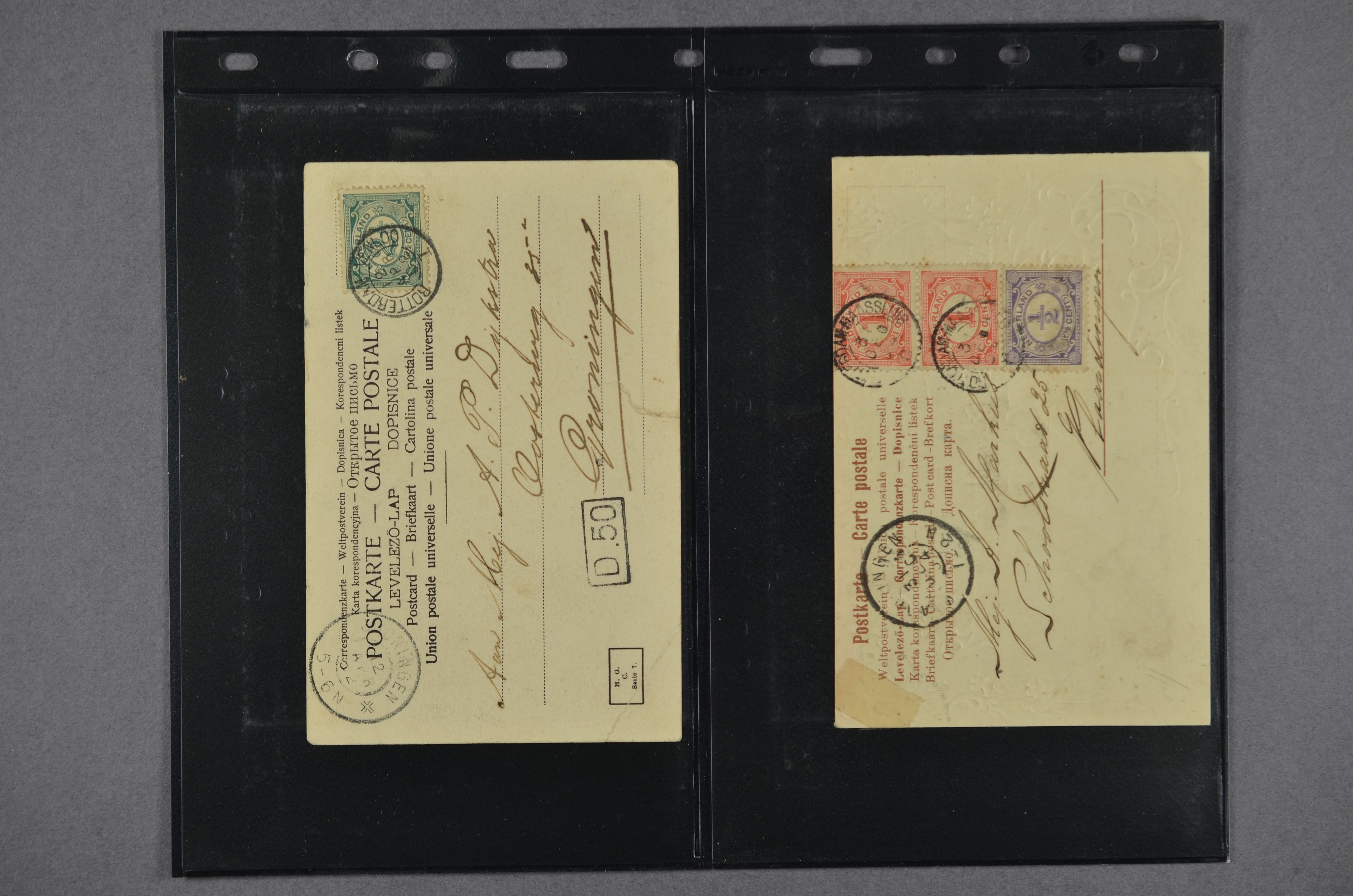 KLEINROND OP POSTSTUK, collectie van ruim 450 poststukken w.o. veel prentbriefkaarten, allemaal met kleinrondstempels van post-, hulppost- (merendeels) en bijpostkantoren, ook van spoorwegtrajecten, stations, Kamp bij Rijen (meerdere ex.), Amsterdam E, diverse schaarse stempels, enige doubletten, veel prachtige afstempelingen, enkele in blauw of violet, in 2 Leuchtturm-ringbanden. Prachtobject voor de handel of verzamelaar om op te zetten