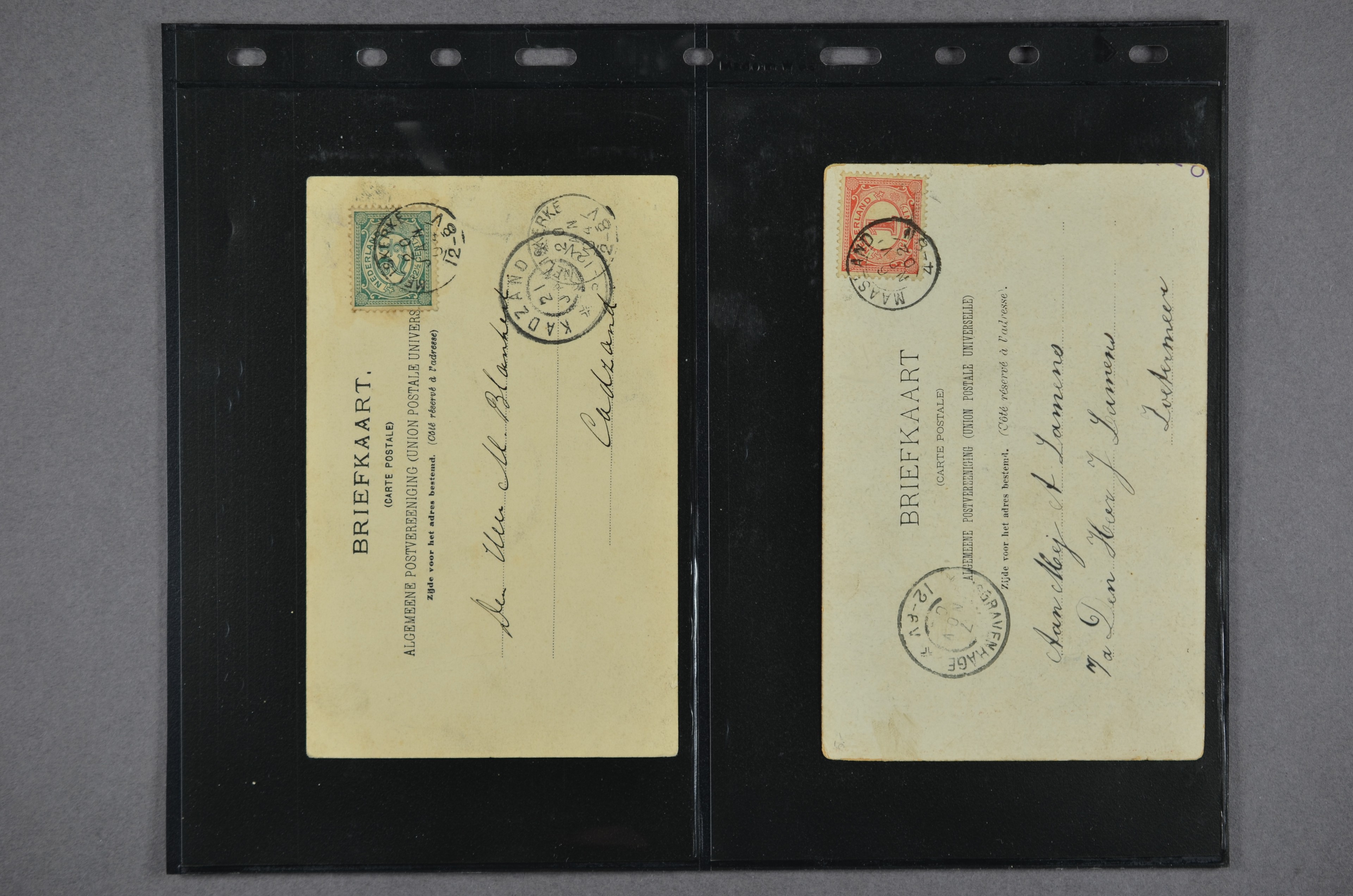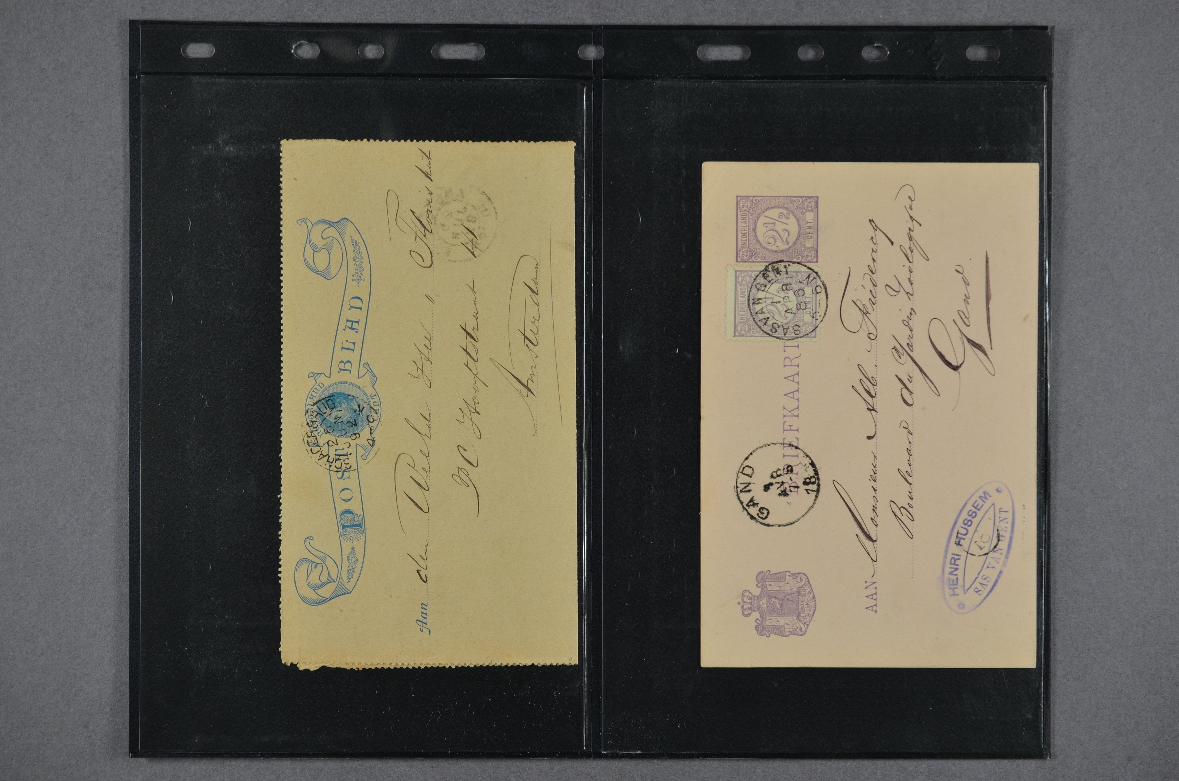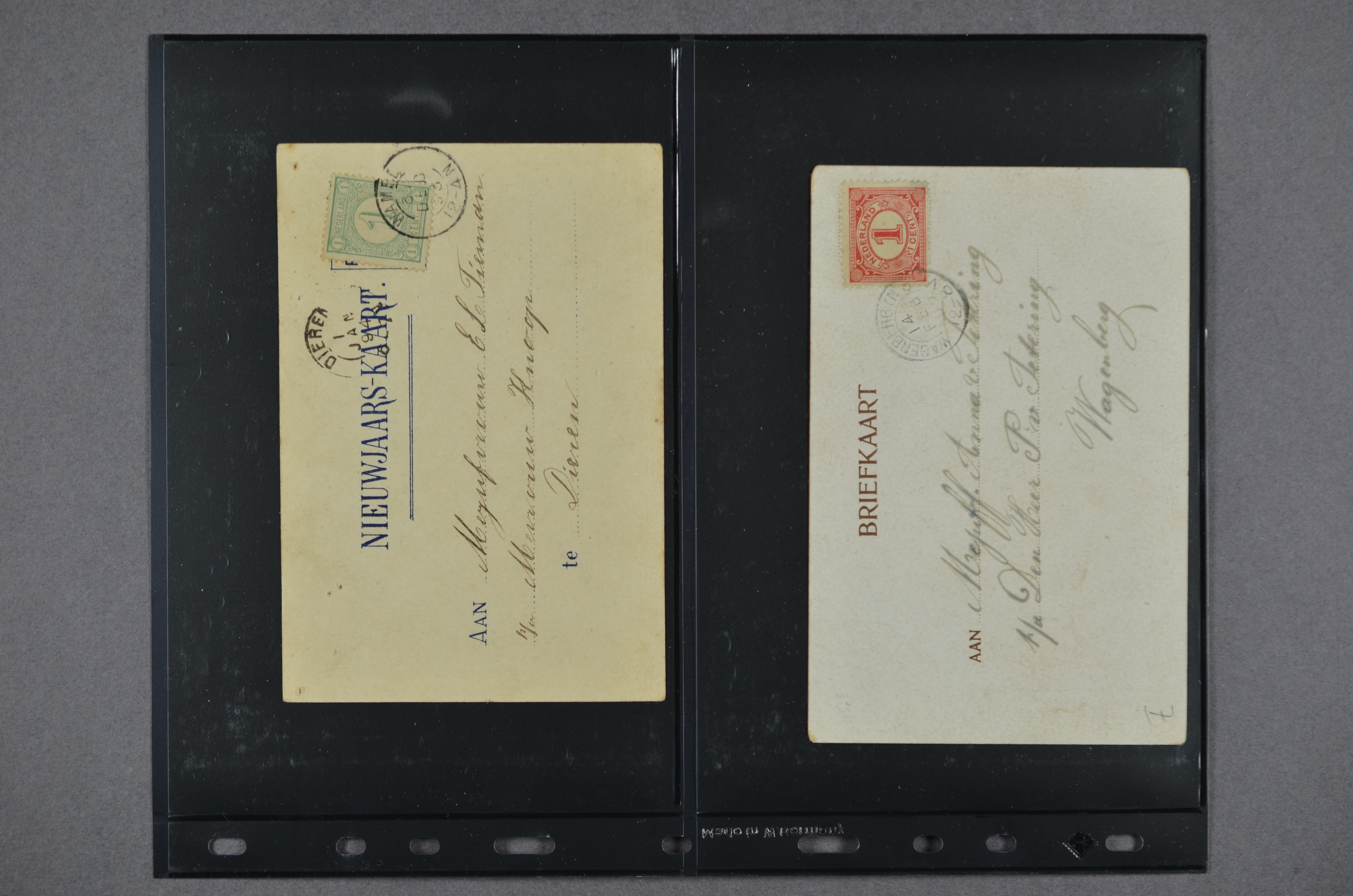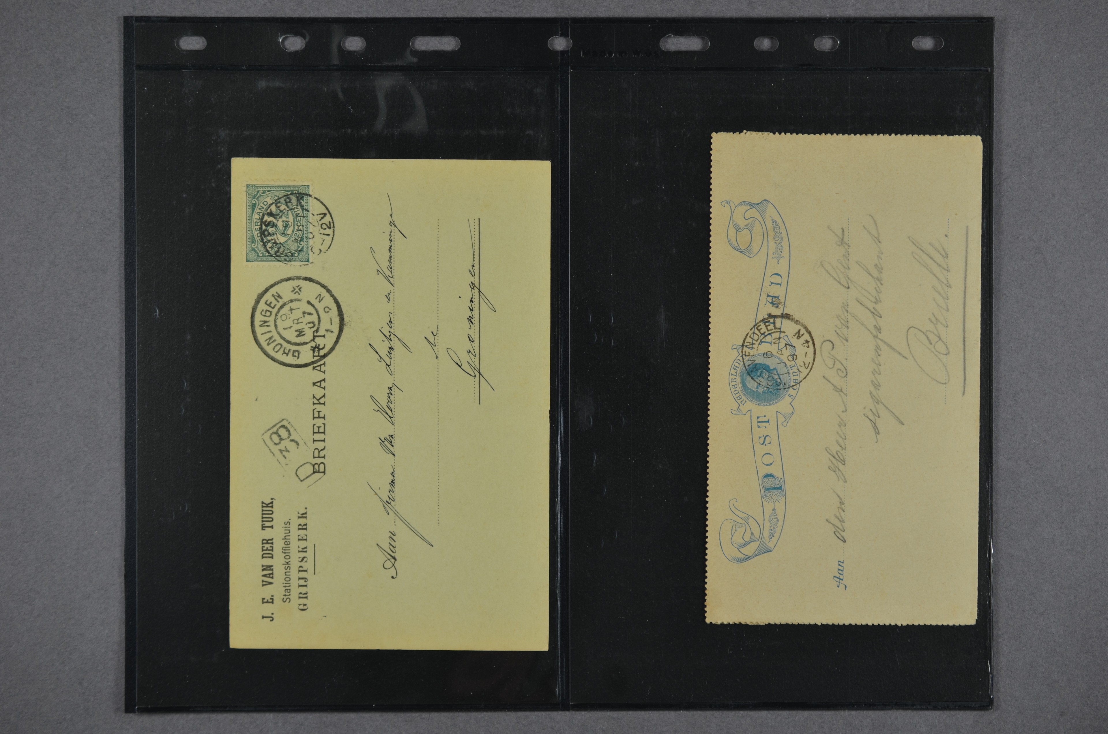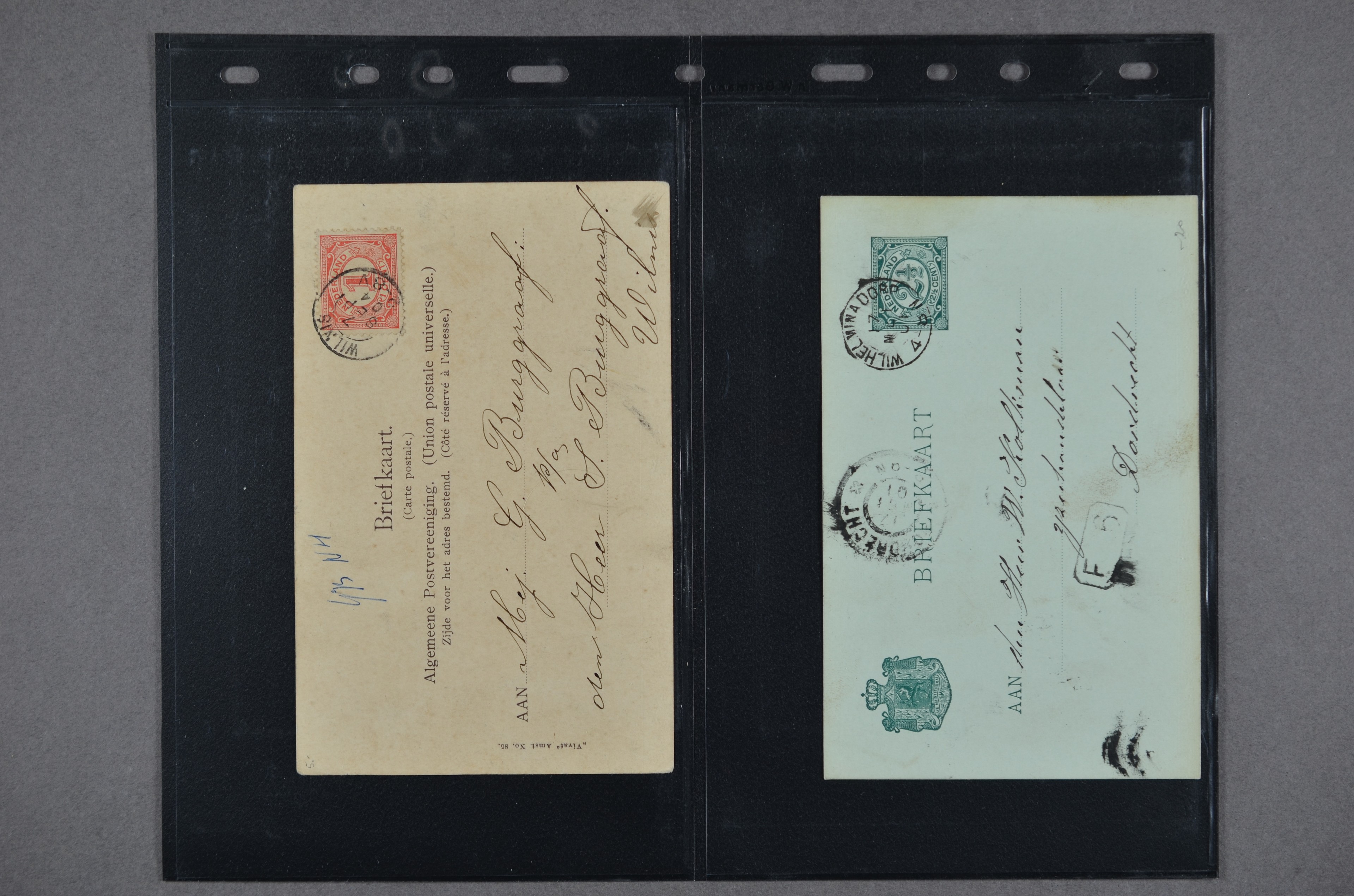 KLEINROND OP POSTSTUK, collectie van ruim 450 poststukken w.o. veel prentbriefkaarten, allemaal met kleinrondstempels van post-, hulppost- (merendeels) en bijpostkantoren, ook van spoorwegtrajecten, stations, Kamp bij Rijen (meerdere ex.), Amsterdam E, diverse schaarse stempels, enige doubletten, veel prachtige afstempelingen, enkele in blauw of violet, in 2 Leuchtturm-ringbanden. Prachtobject voor de handel of verzamelaar om op te zetten