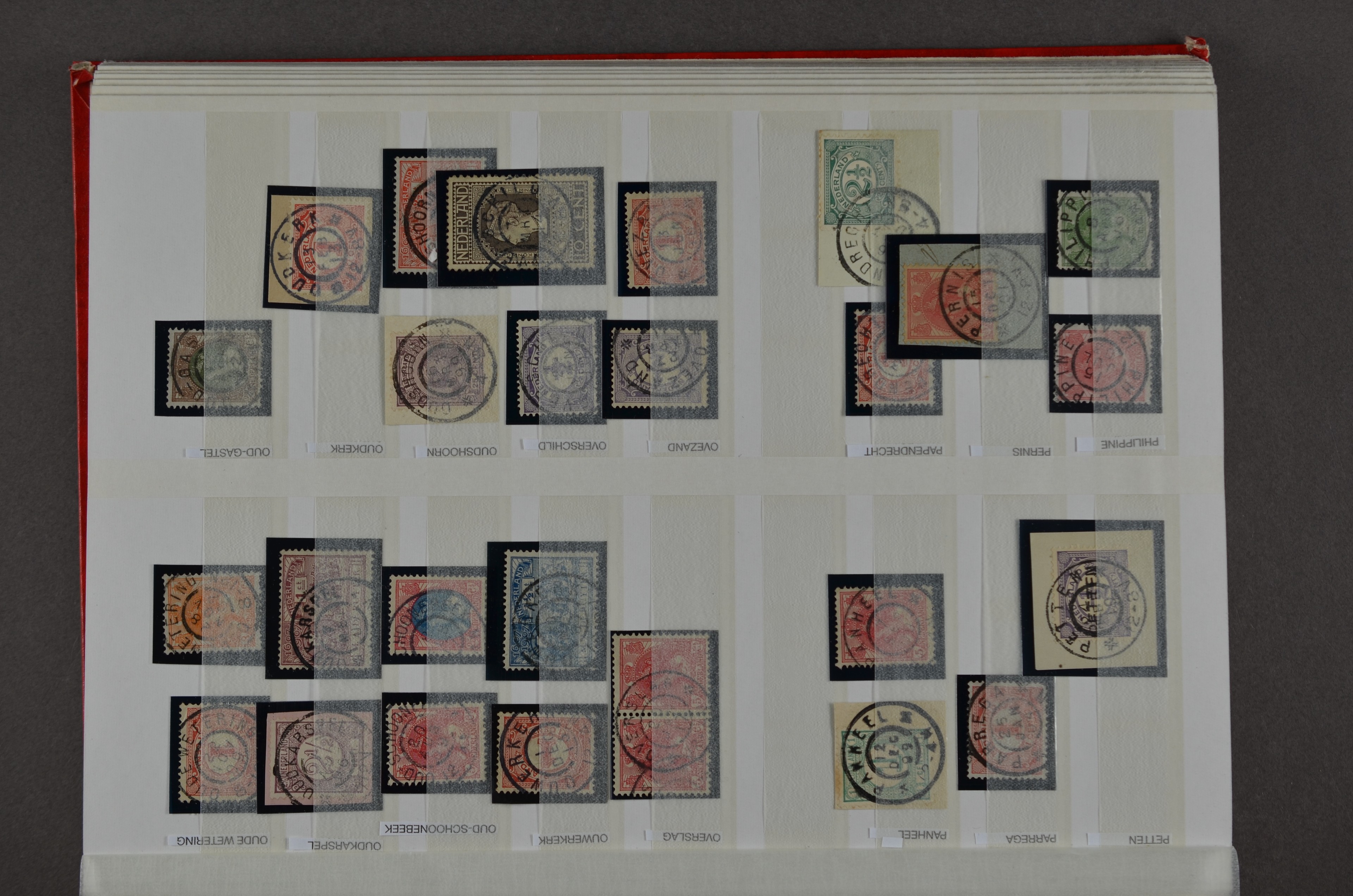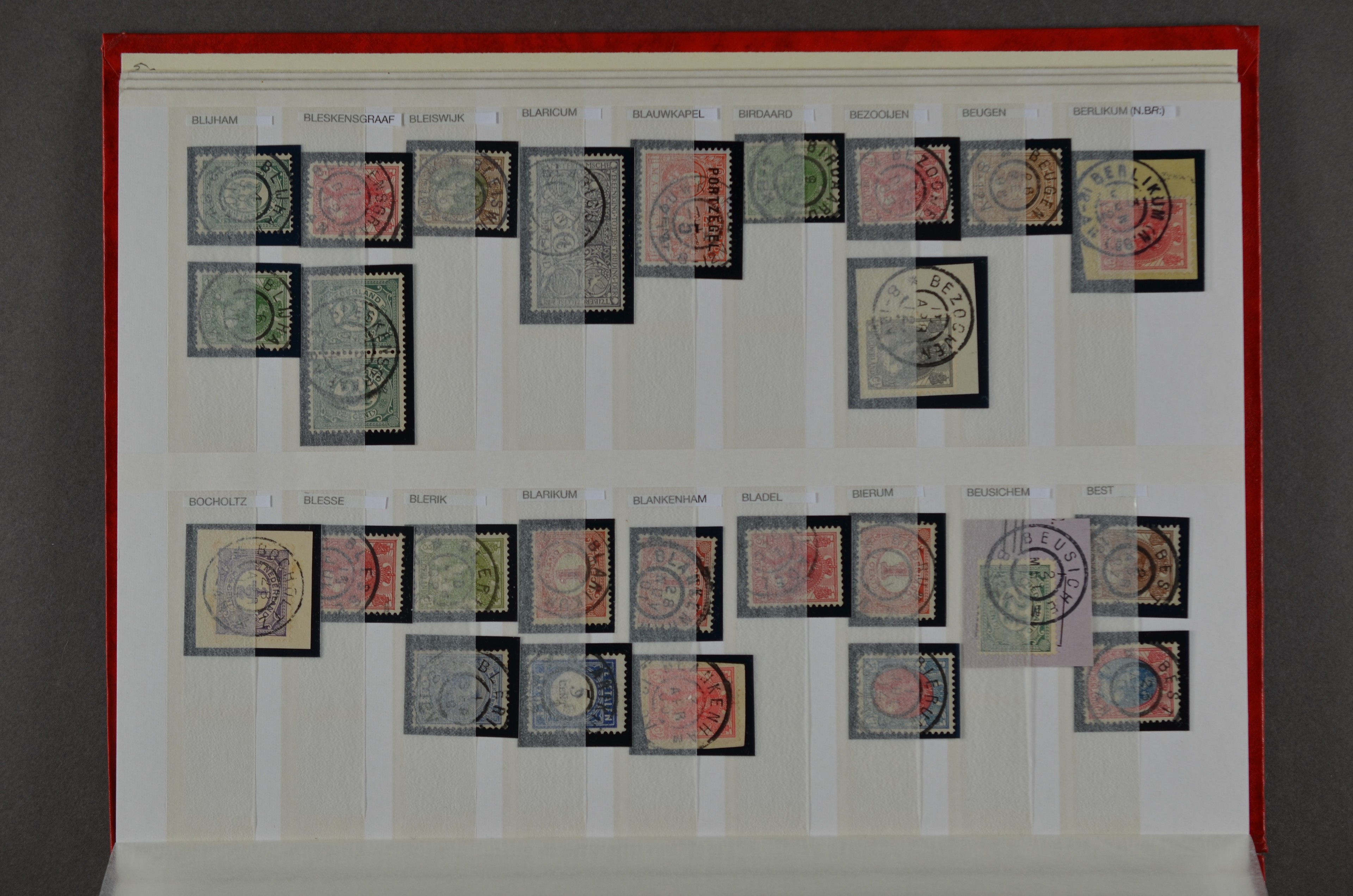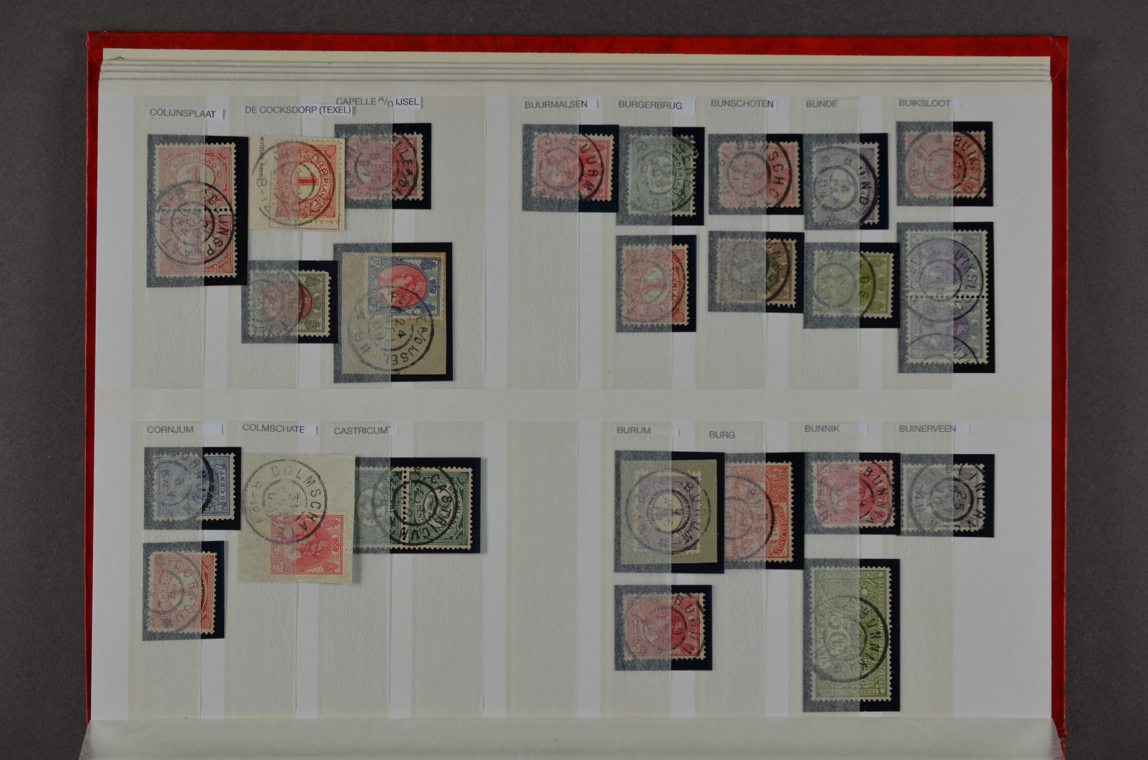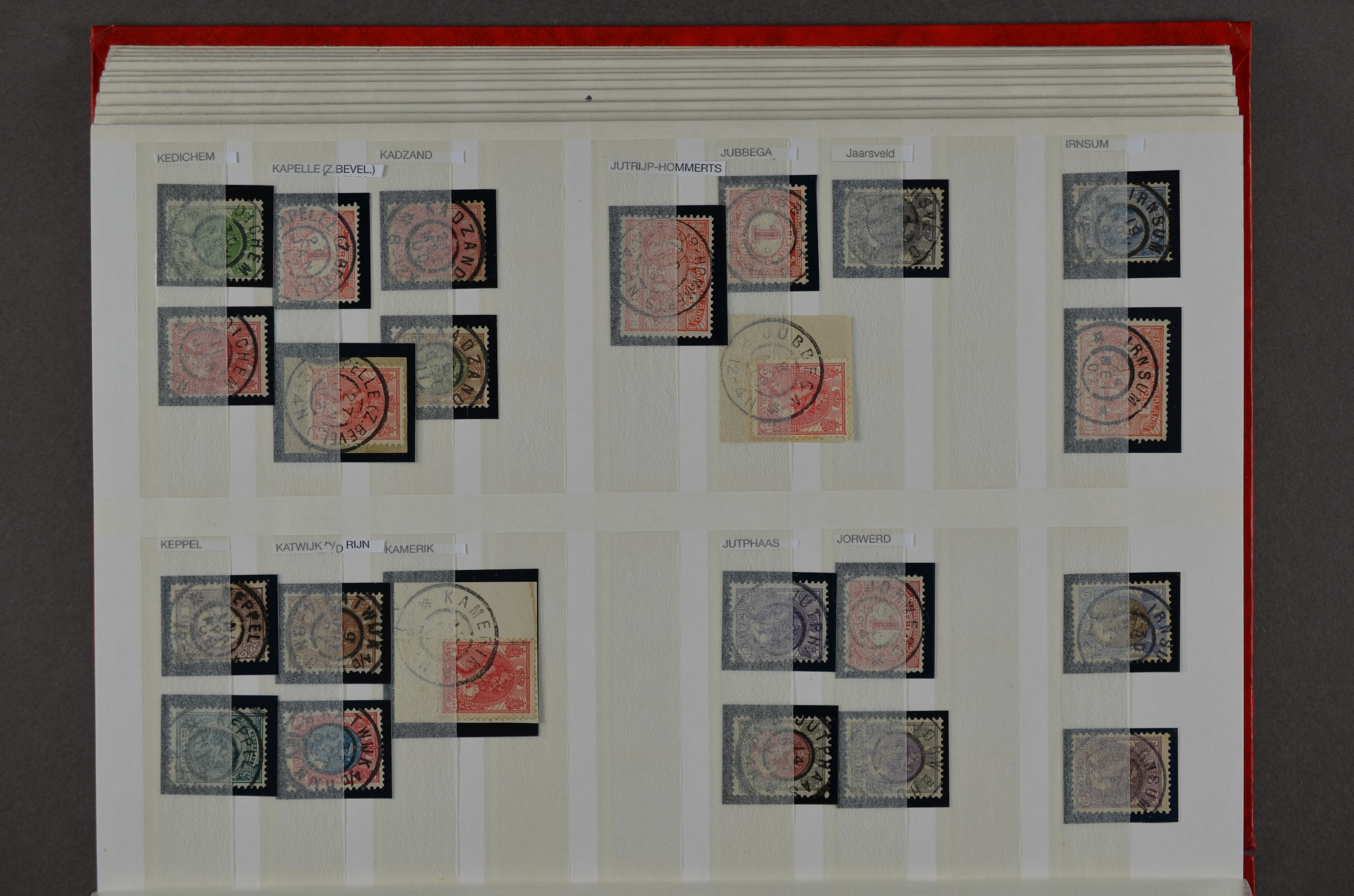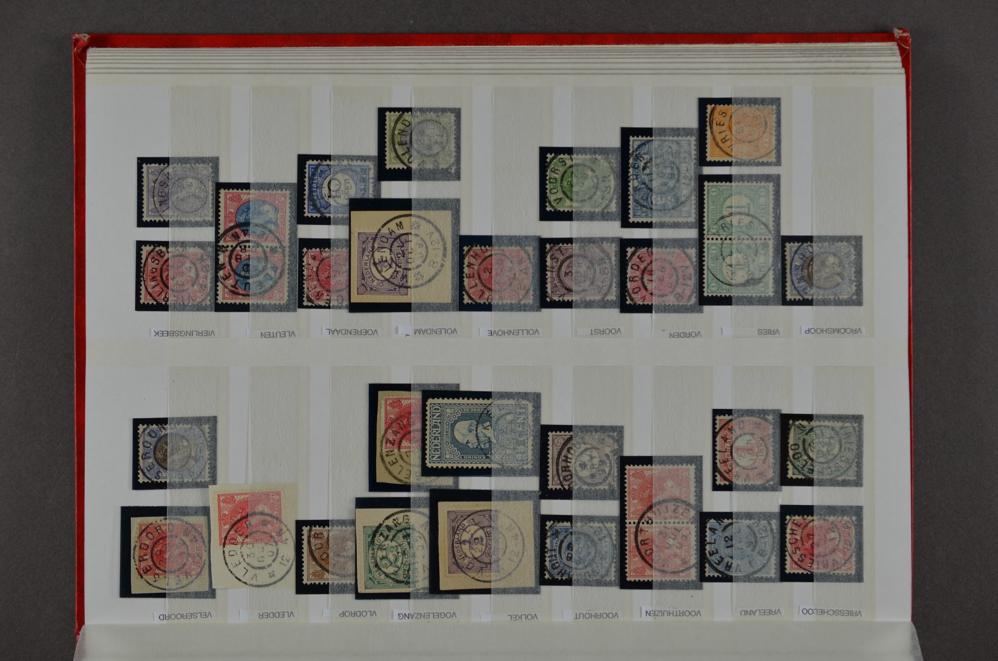 GROOTRONDSTEMPELS van hulppostkantoren, omvangrijke verzameling op losse zegels van verschillende emissies en waarden (o.a. TBC, De Ruyter, Jub. ´13, Port, etc.), w.o. op knipsels, met vele prachtige en feitelijk alleen maar luxe afstempelingen waarbij veel (zeer) schaarse kantoren, een lust voor het oog, en een geweldig mooi object om op te zetten of voor de handelaar om zijn klanten te verwennen met topkwaliteit, in dik insteekboek