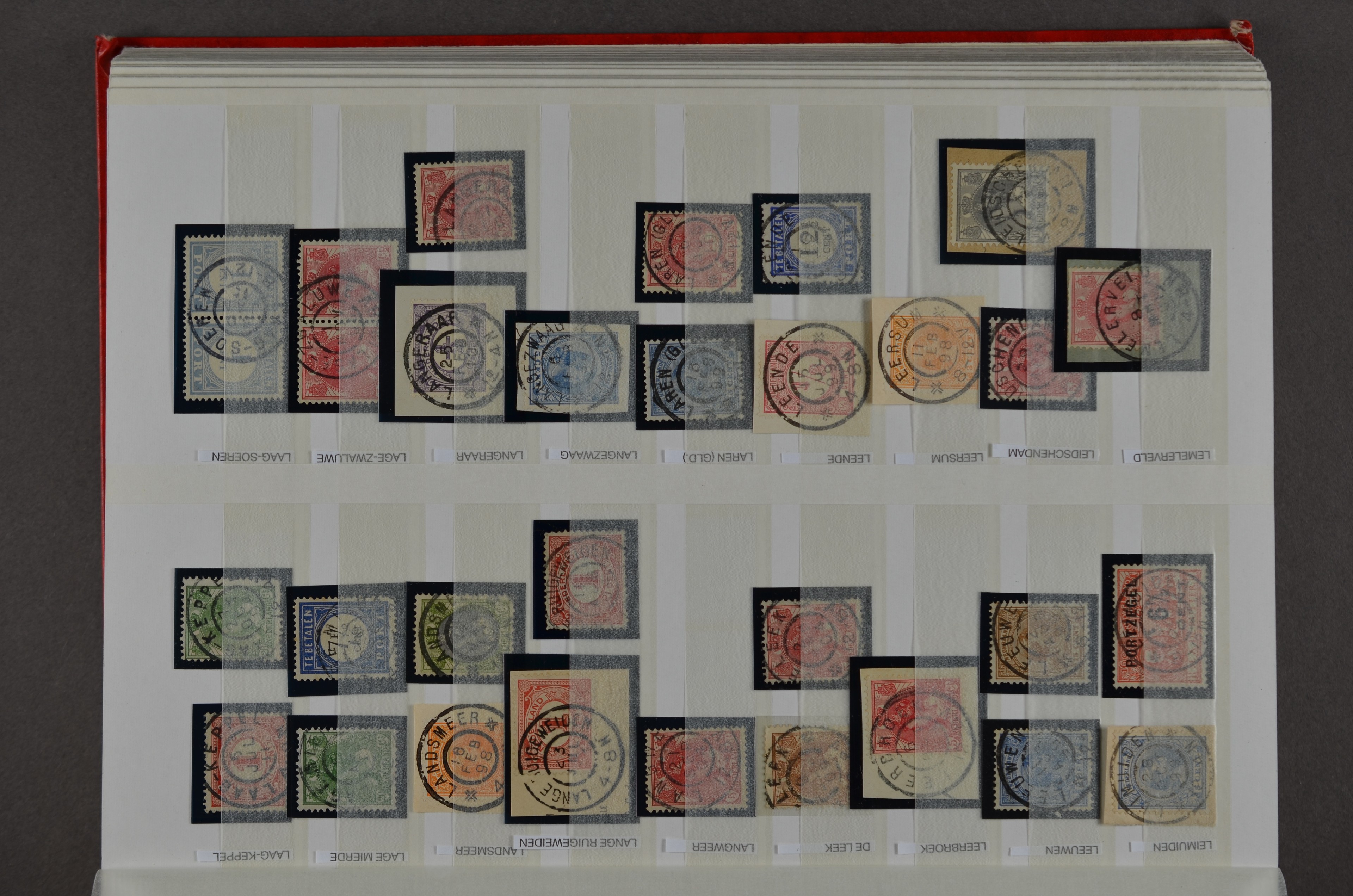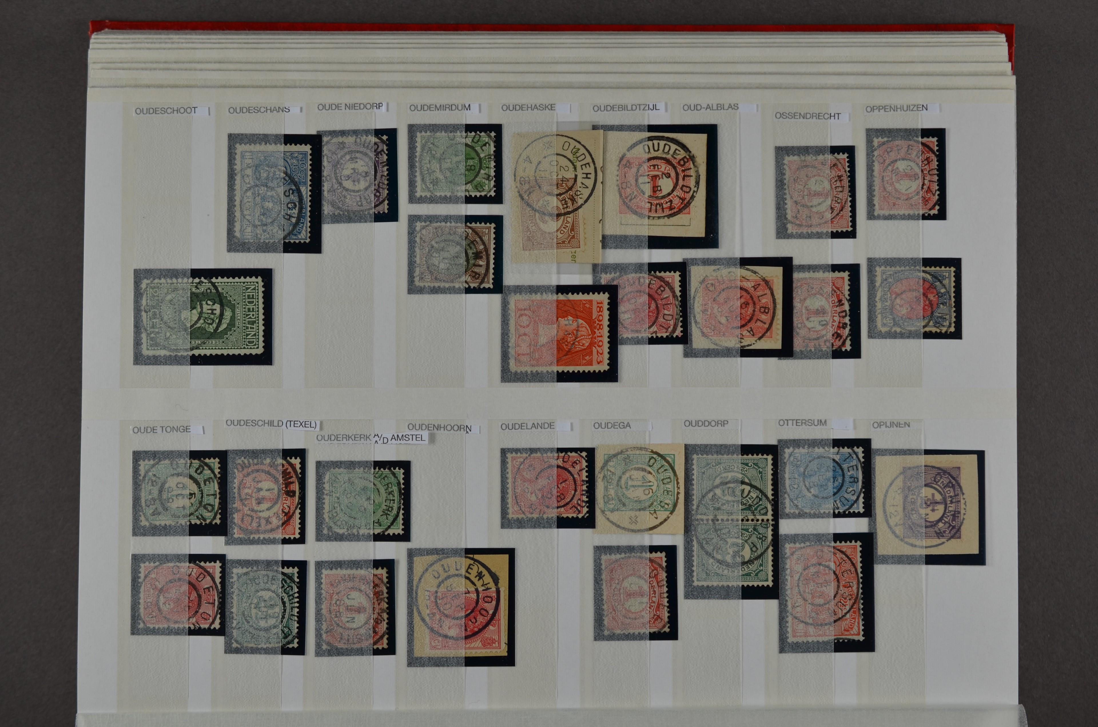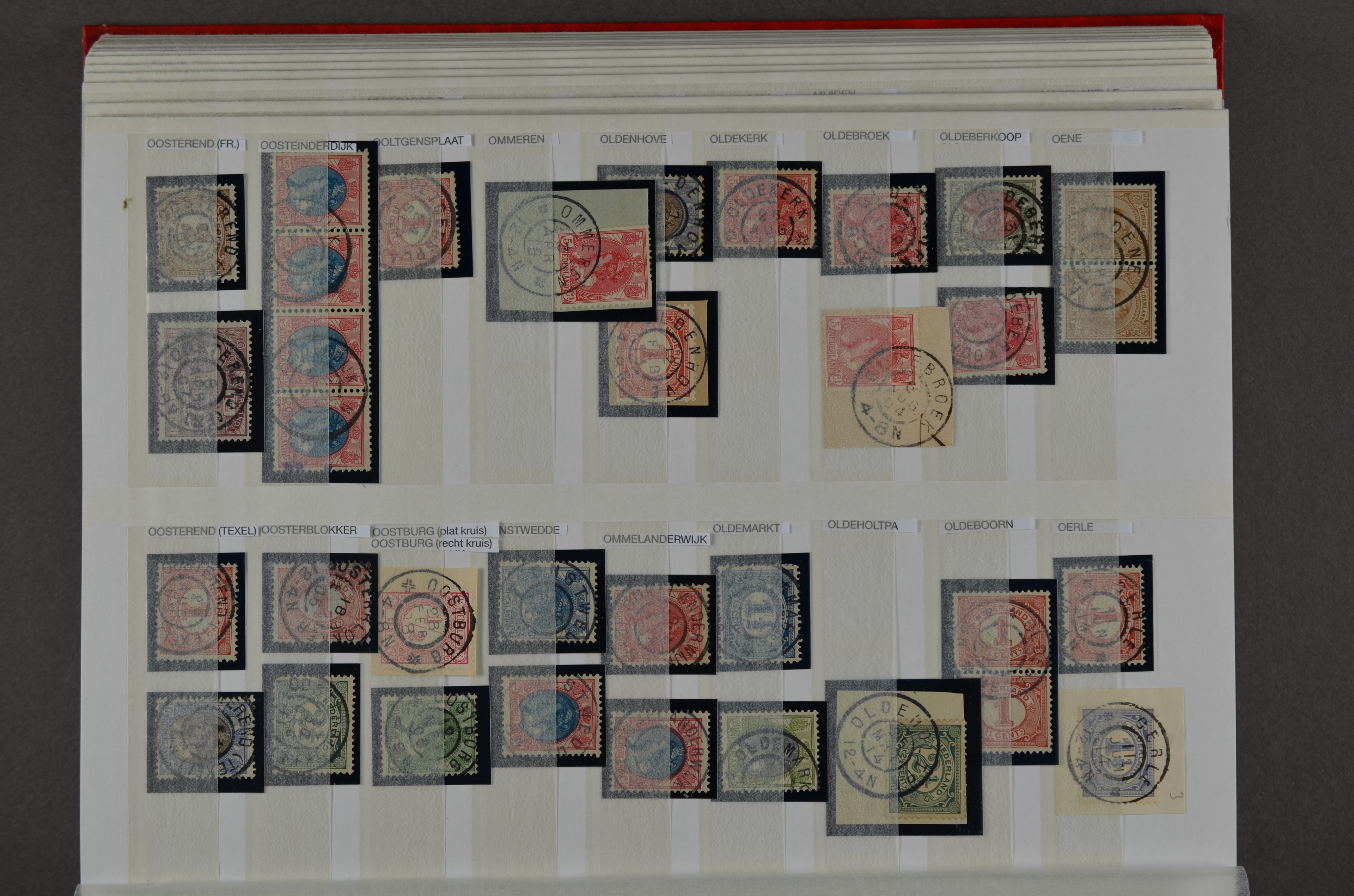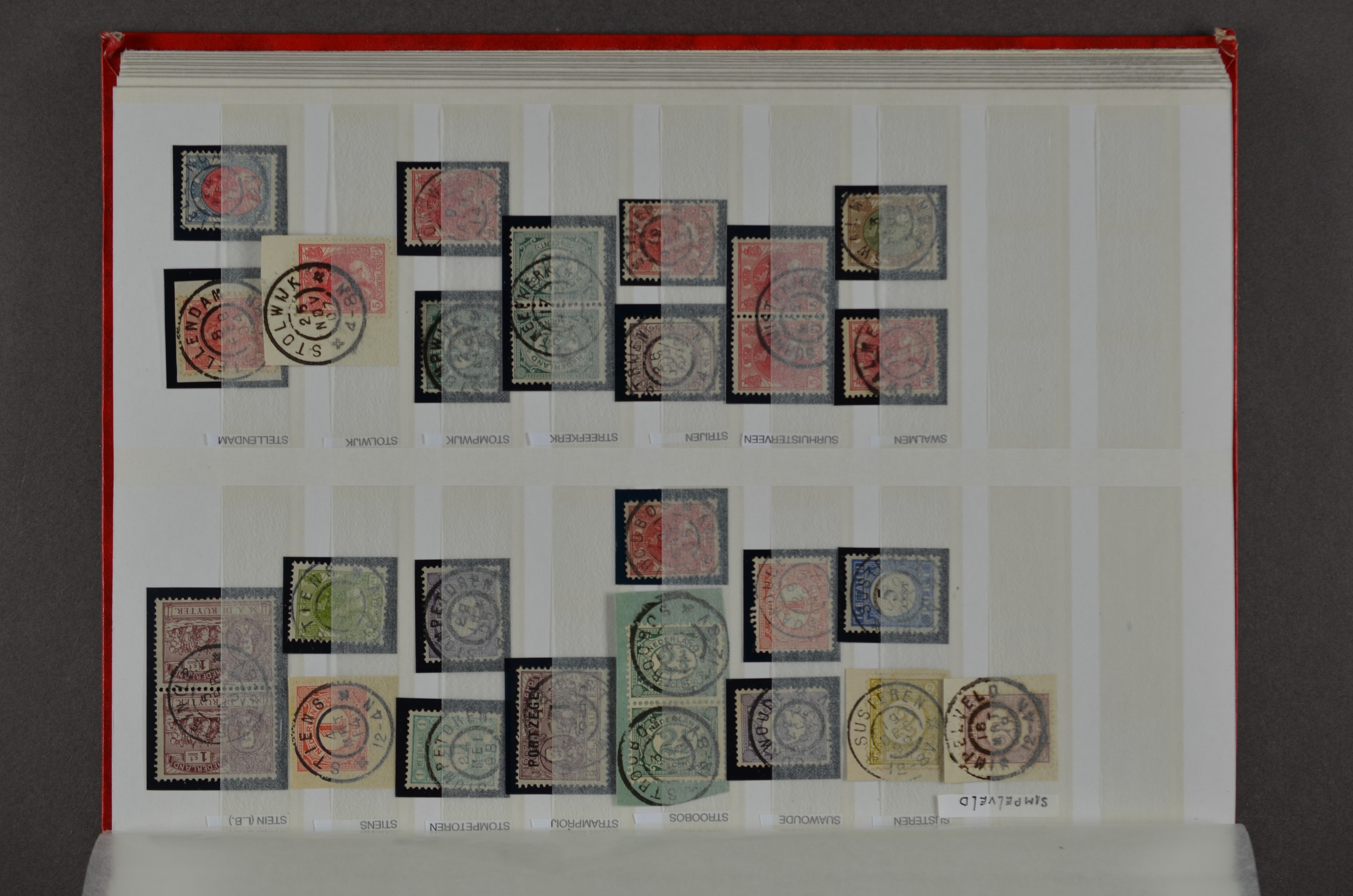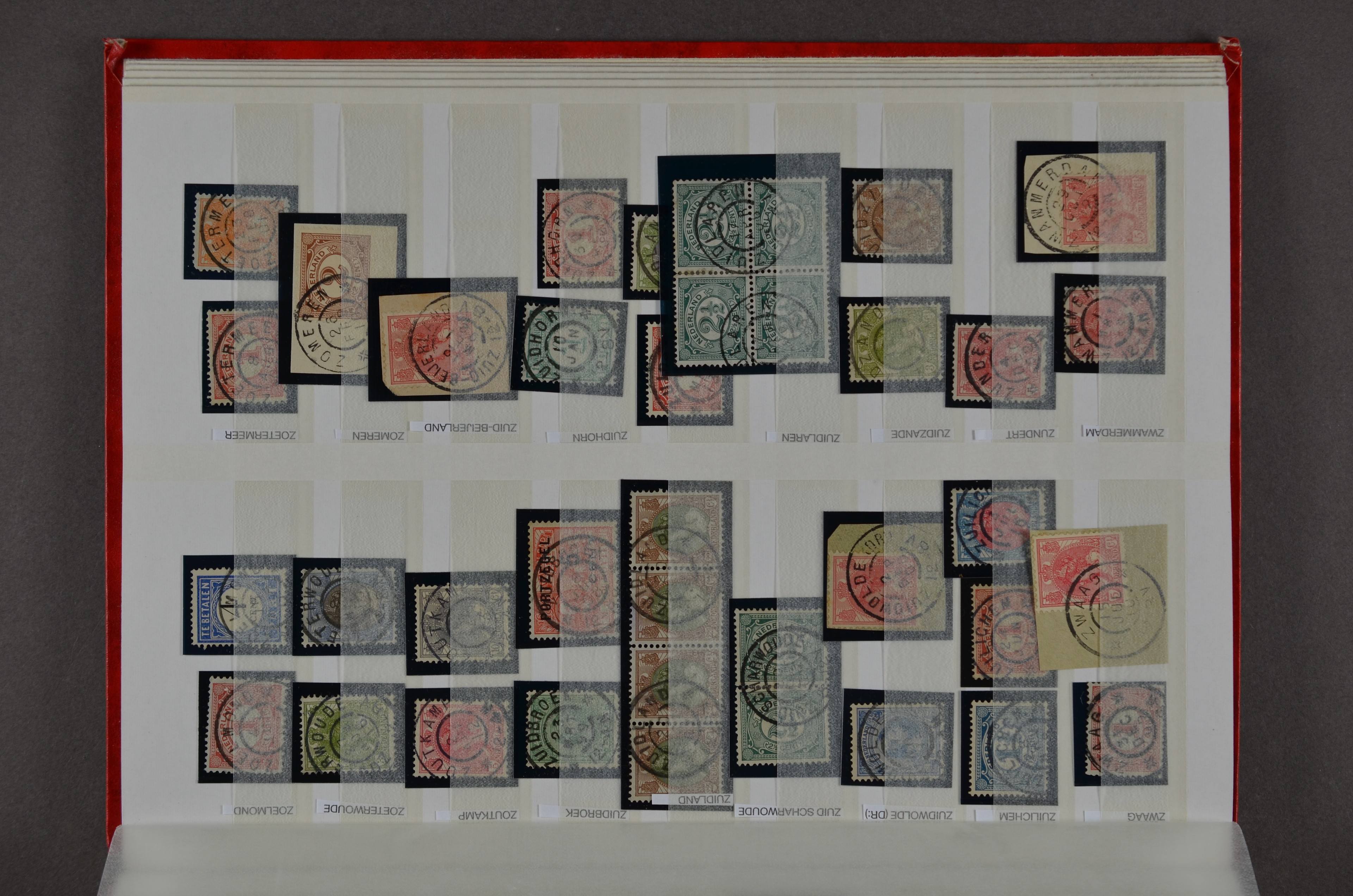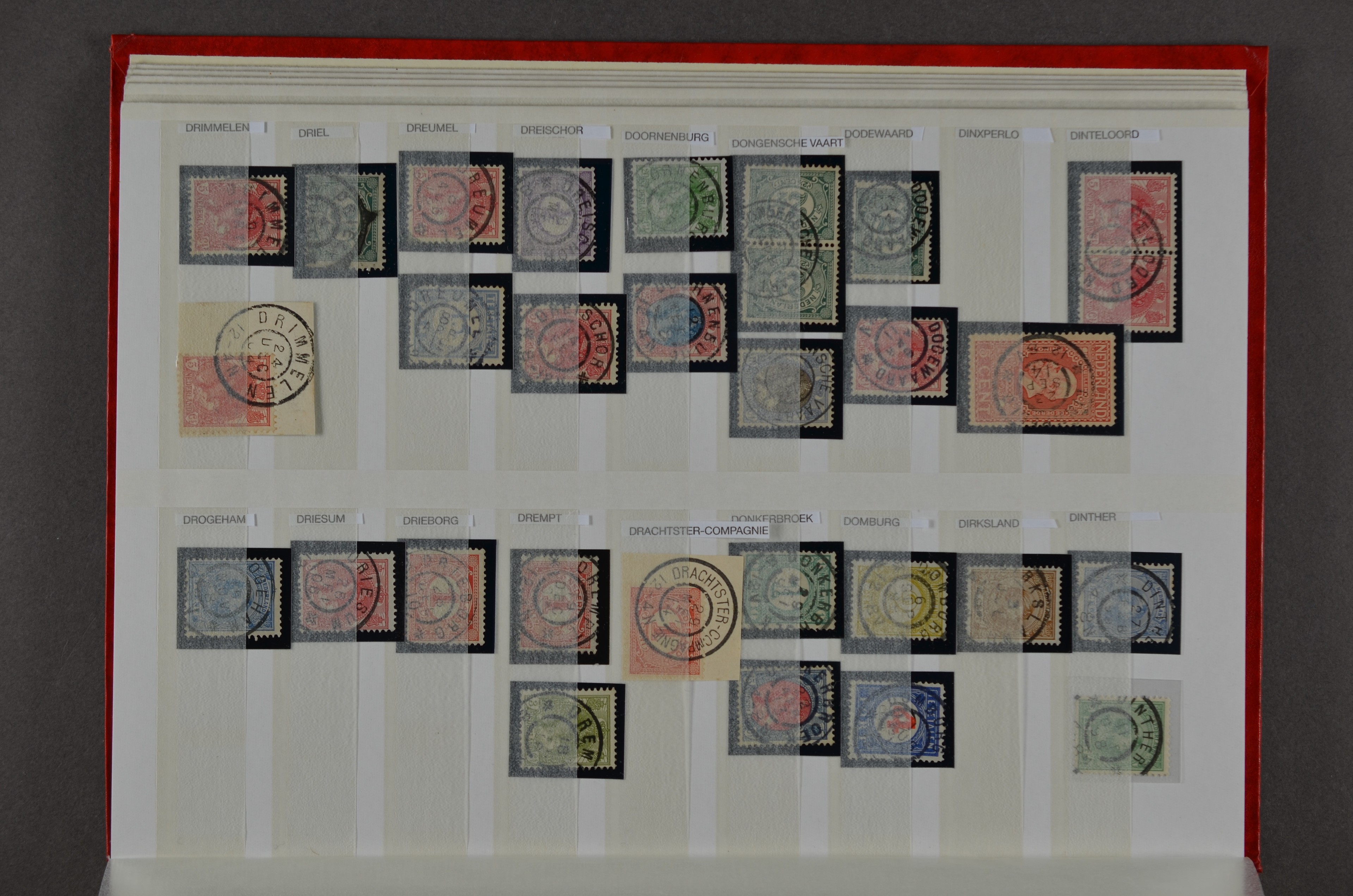 GROOTRONDSTEMPELS van hulppostkantoren, omvangrijke verzameling op losse zegels van verschillende emissies en waarden (o.a. TBC, De Ruyter, Jub. ´13, Port, etc.), w.o. op knipsels, met vele prachtige en feitelijk alleen maar luxe afstempelingen waarbij veel (zeer) schaarse kantoren, een lust voor het oog, en een geweldig mooi object om op te zetten of voor de handelaar om zijn klanten te verwennen met topkwaliteit, in dik insteekboek