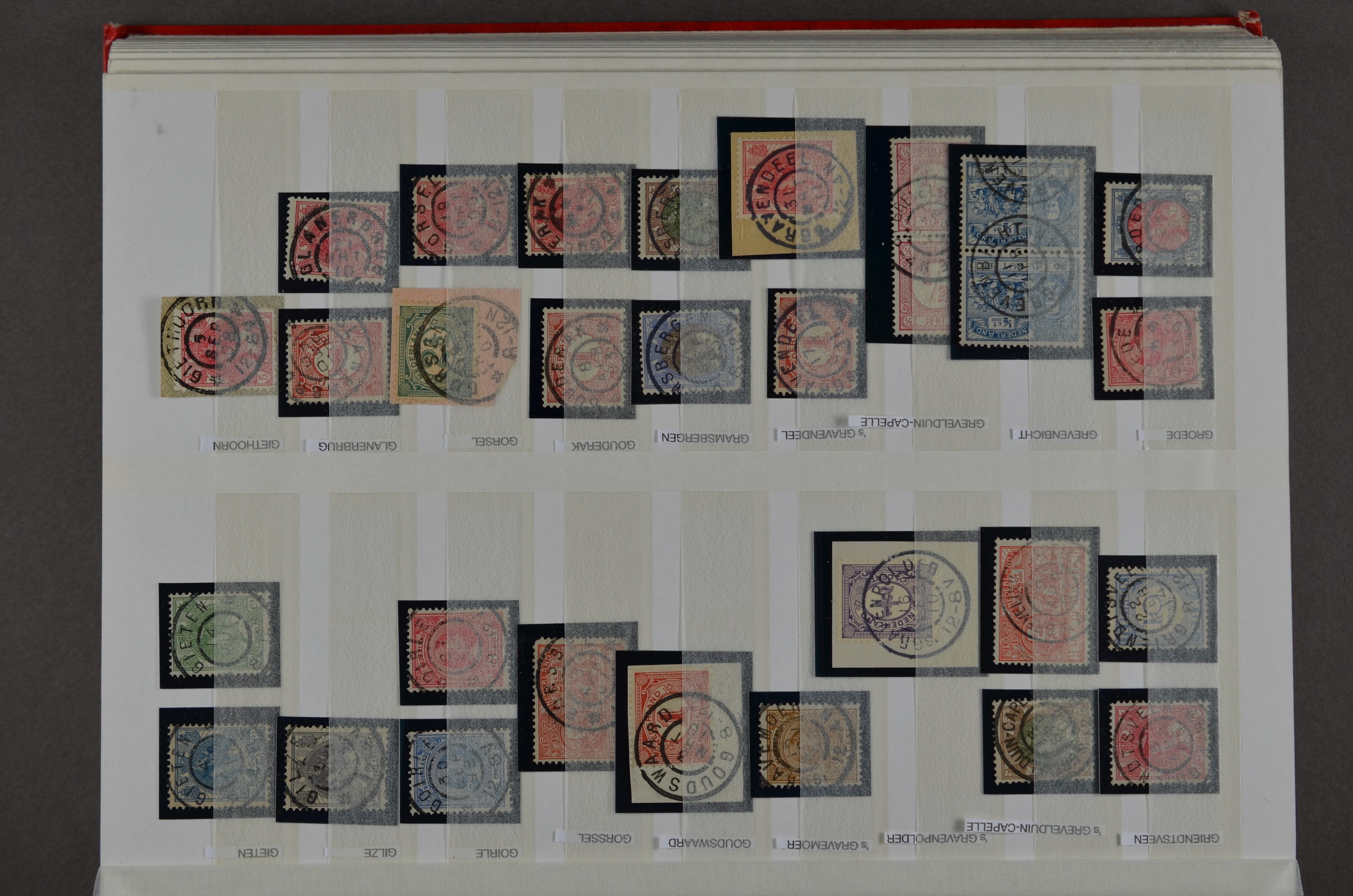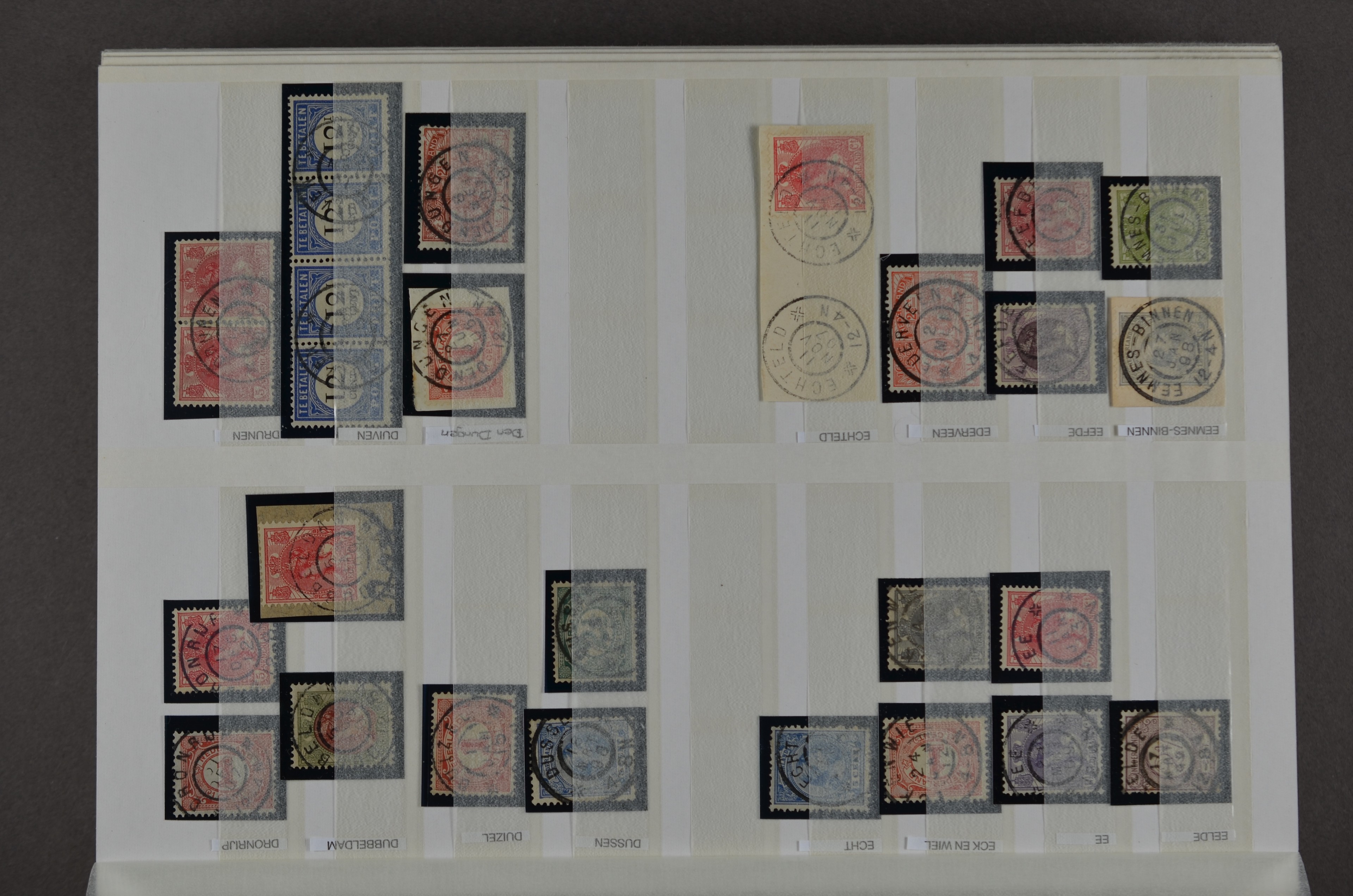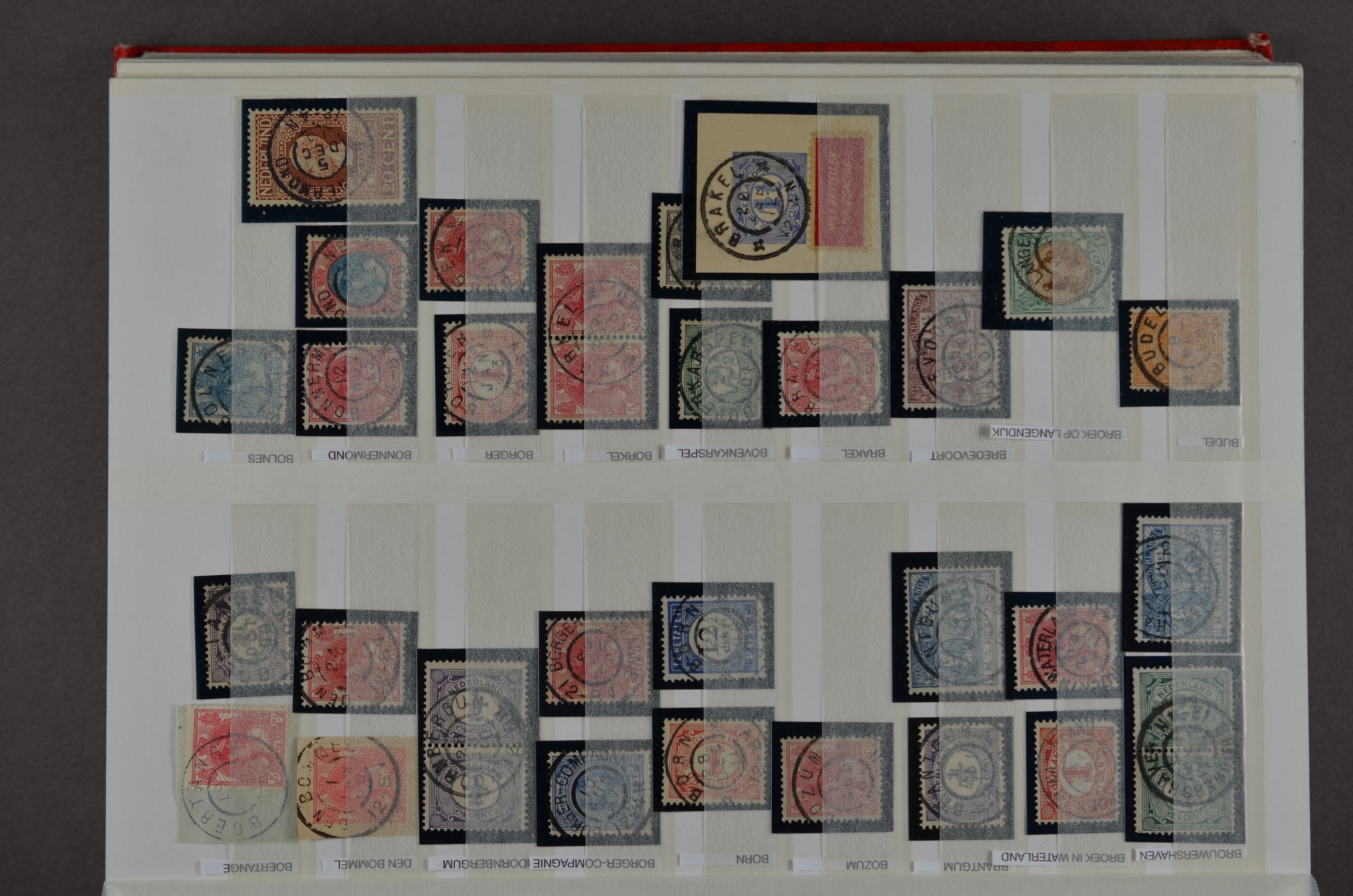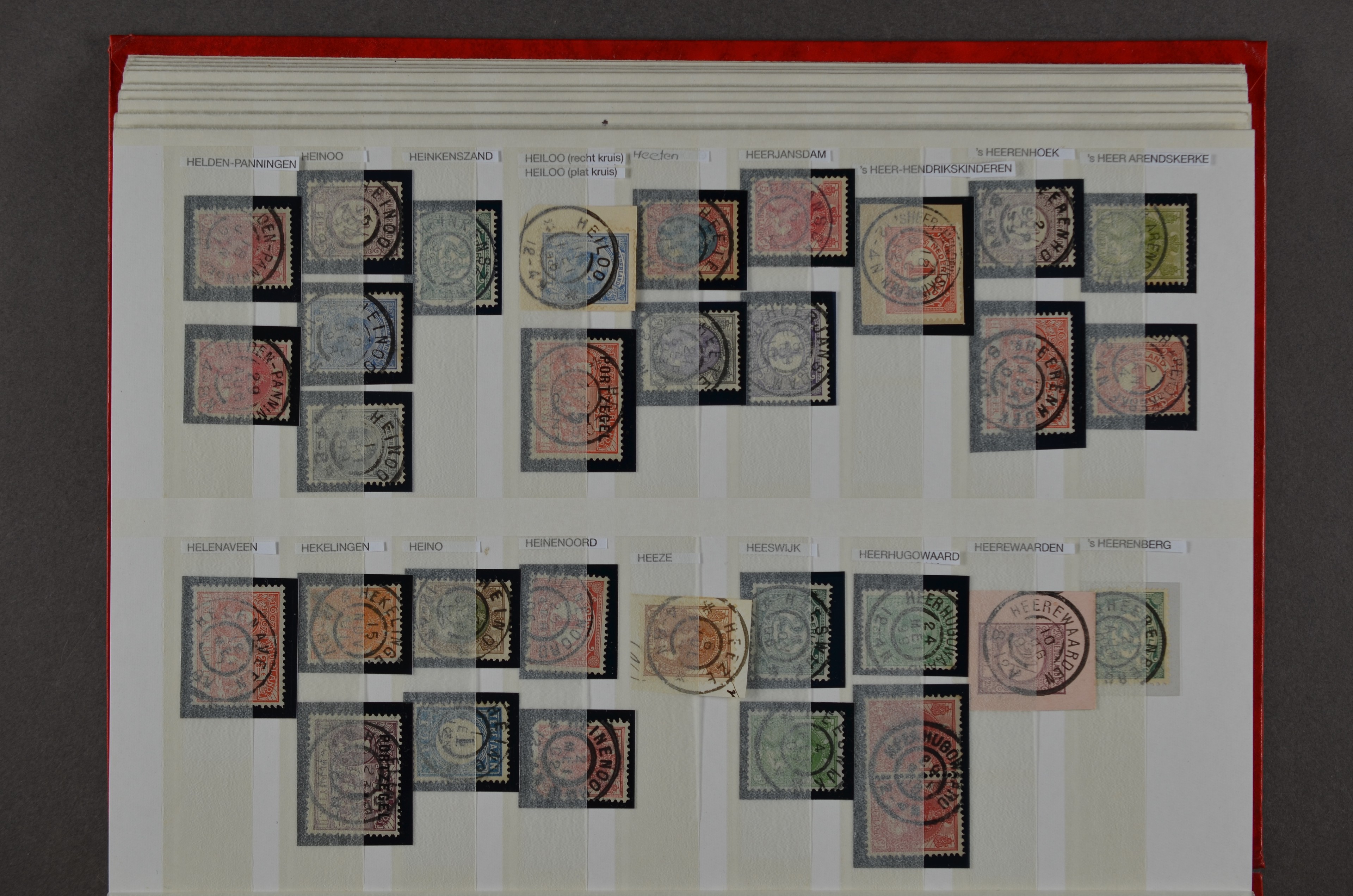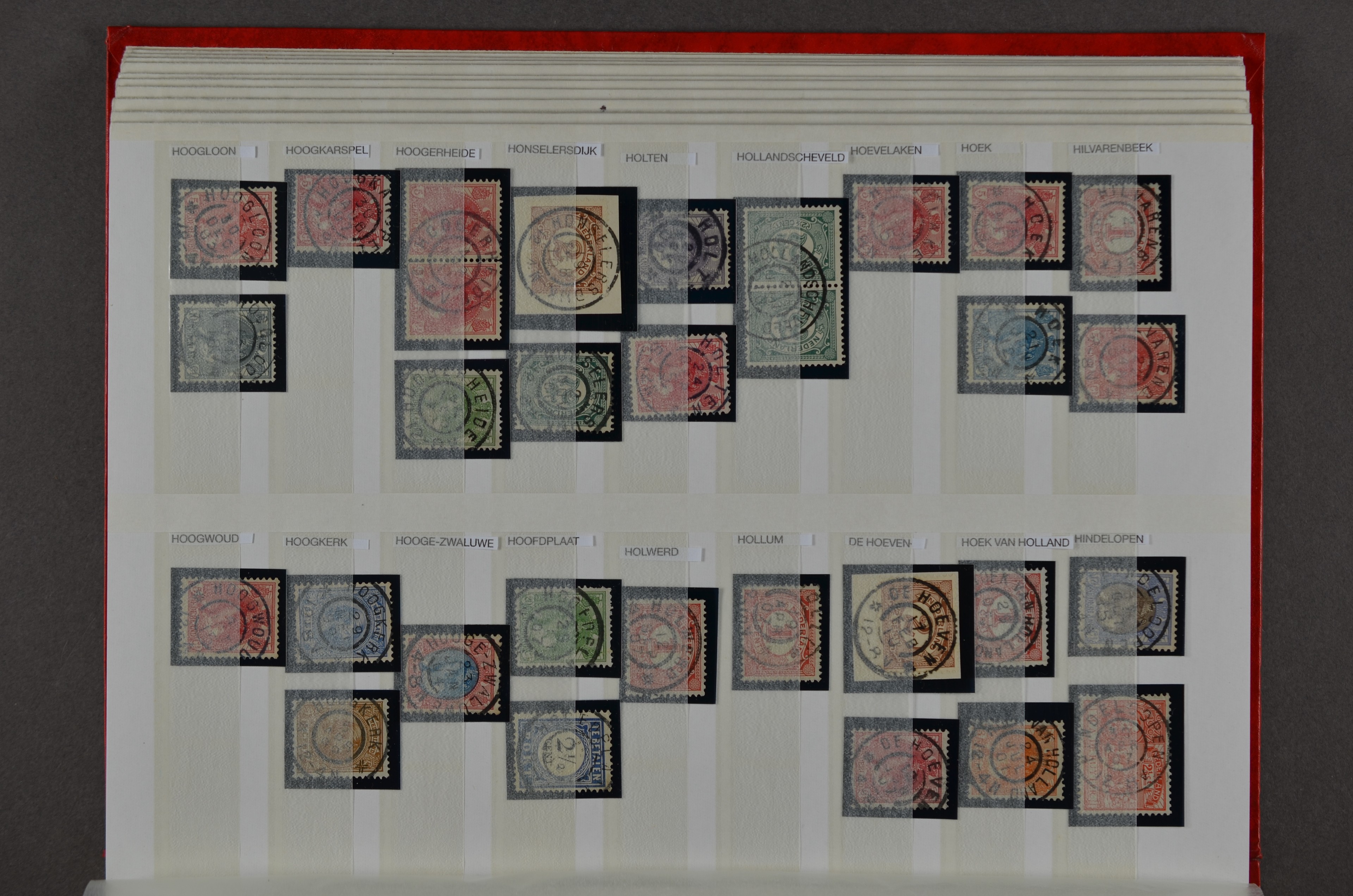 GROOTRONDSTEMPELS van hulppostkantoren, omvangrijke verzameling op losse zegels van verschillende emissies en waarden (o.a. TBC, De Ruyter, Jub. ´13, Port, etc.), w.o. op knipsels, met vele prachtige en feitelijk alleen maar luxe afstempelingen waarbij veel (zeer) schaarse kantoren, een lust voor het oog, en een geweldig mooi object om op te zetten of voor de handelaar om zijn klanten te verwennen met topkwaliteit, in dik insteekboek