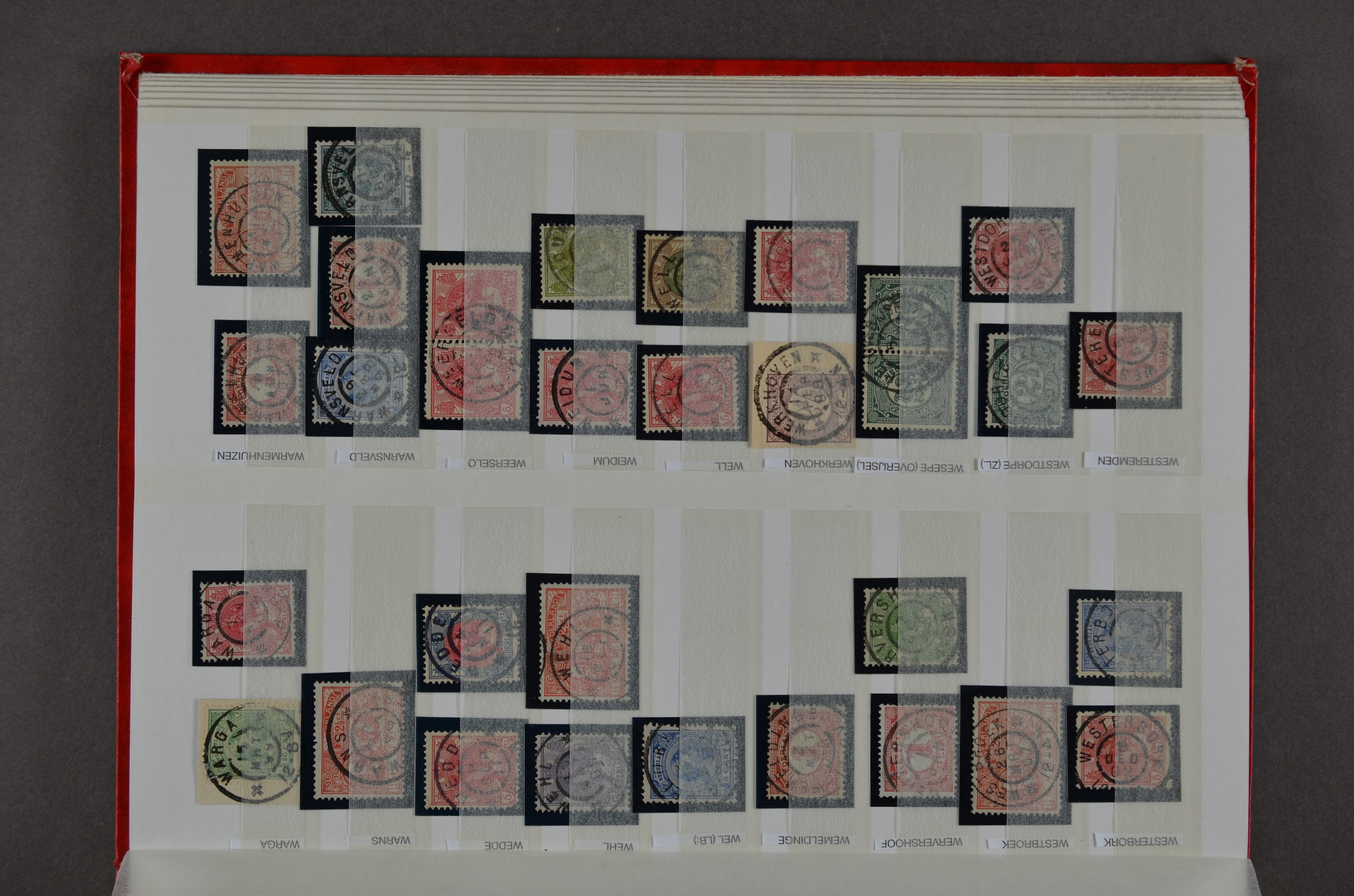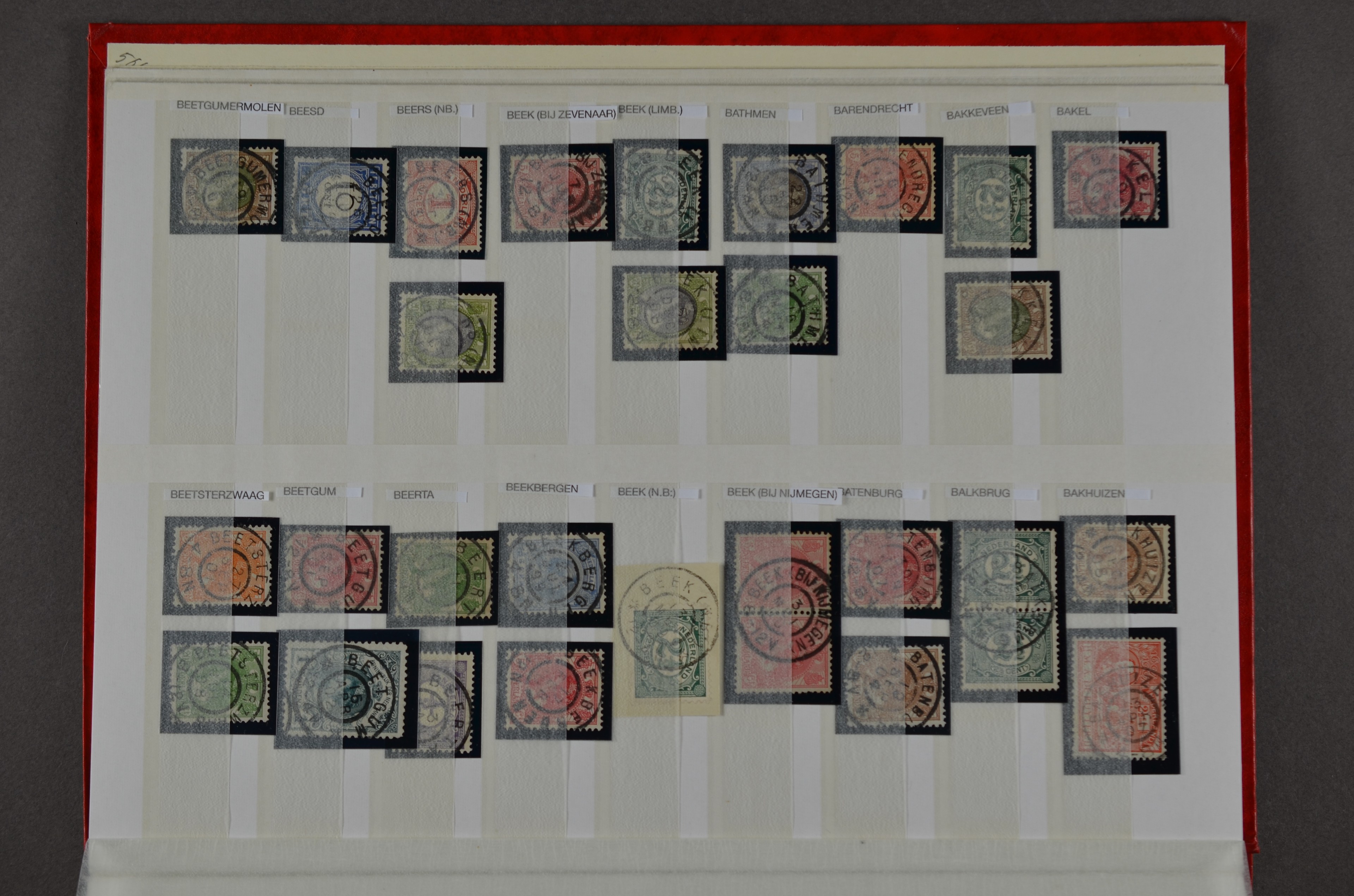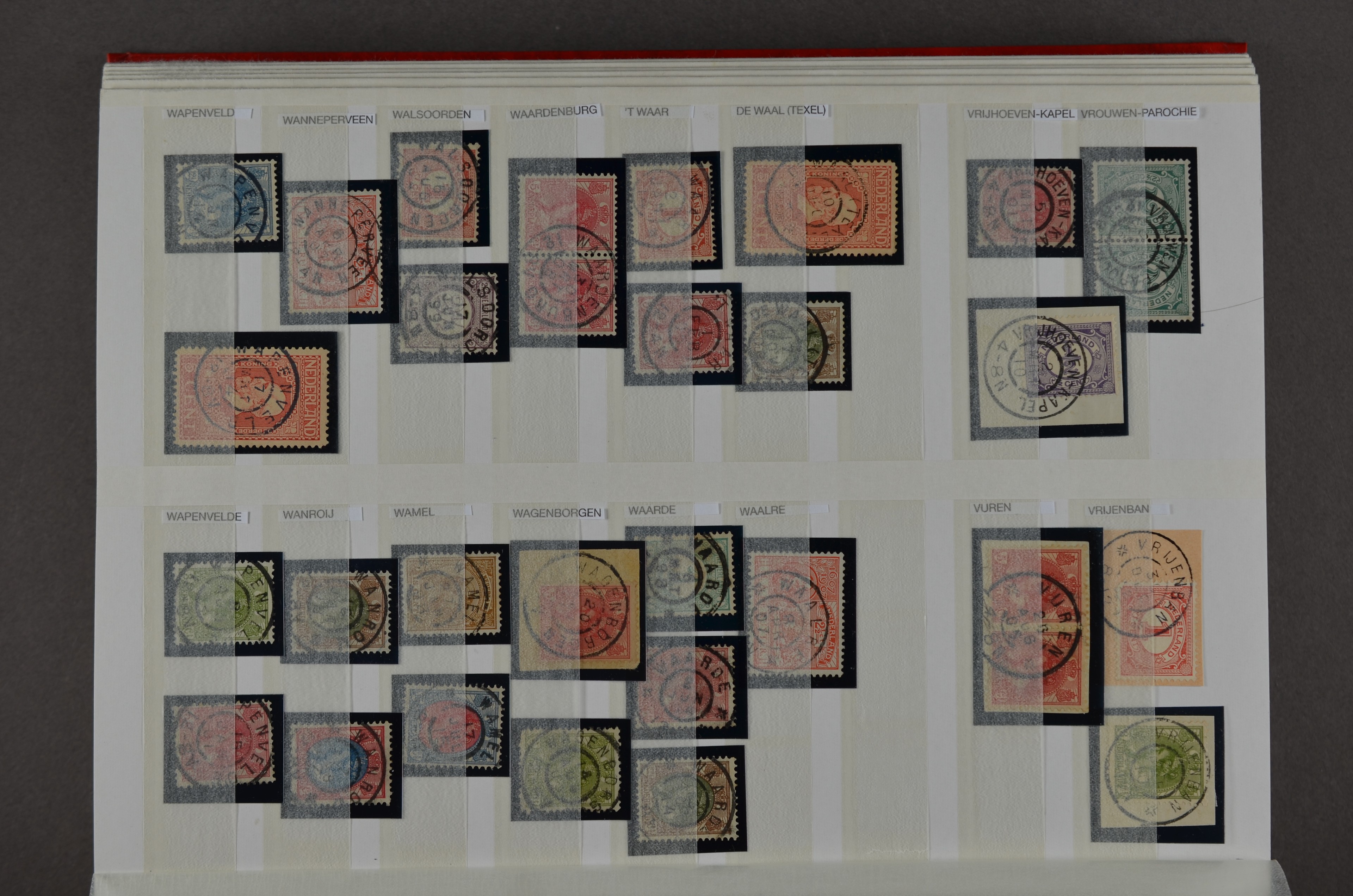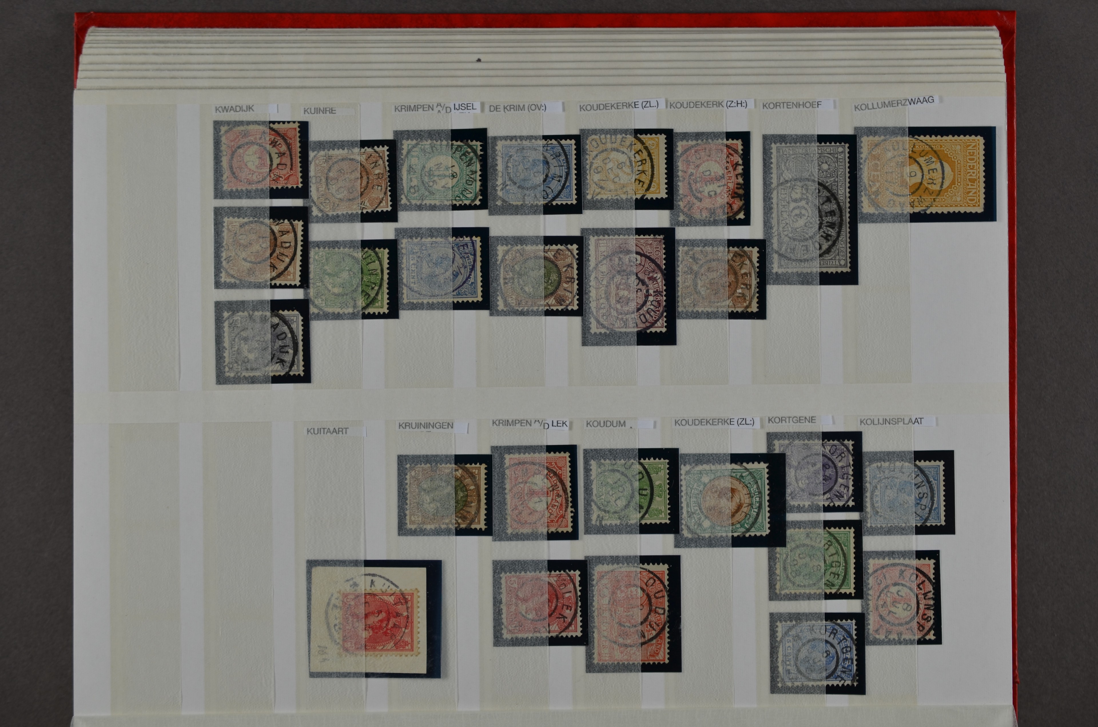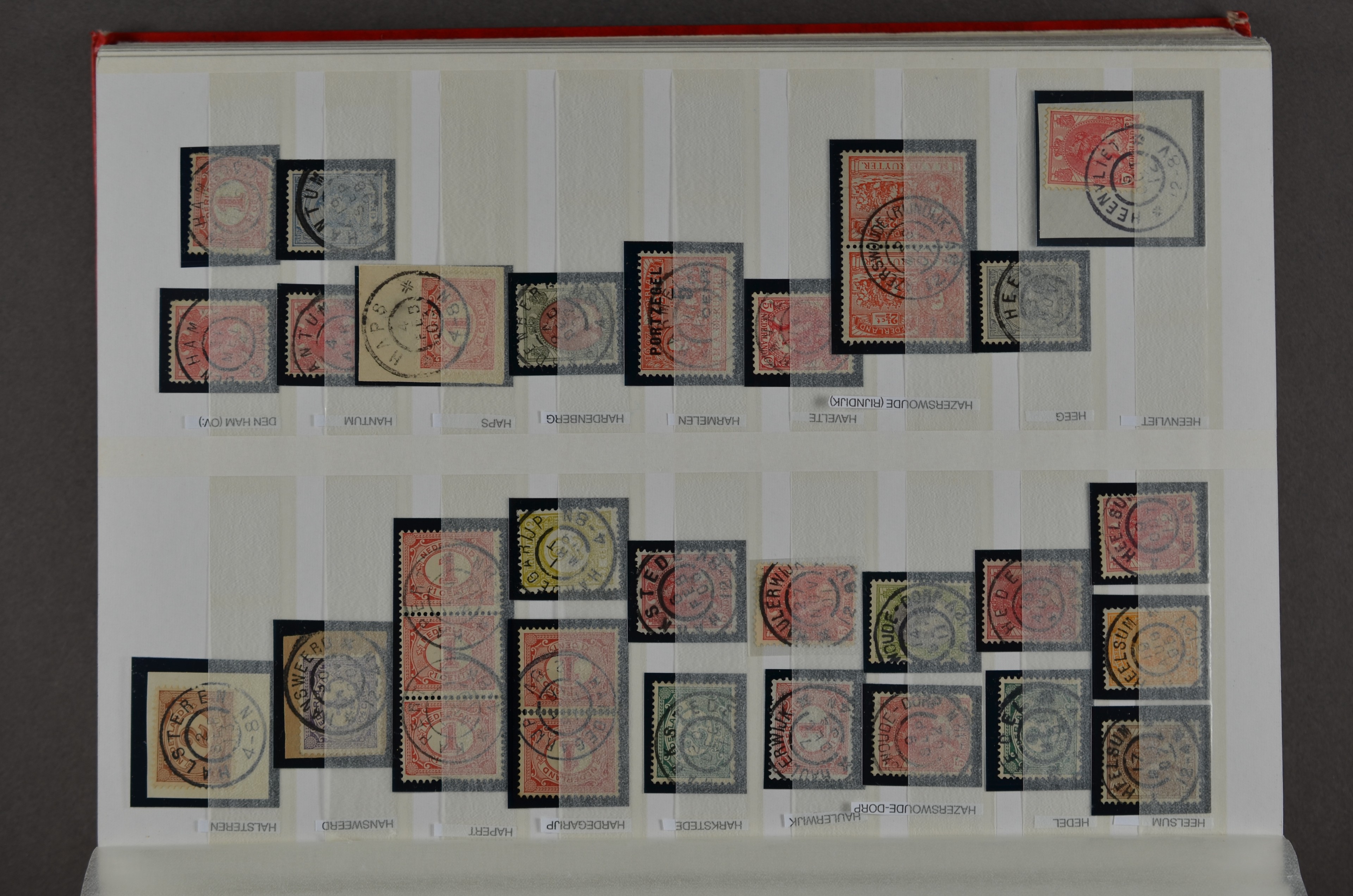 GROOTRONDSTEMPELS van hulppostkantoren, omvangrijke verzameling op losse zegels van verschillende emissies en waarden (o.a. TBC, De Ruyter, Jub. ´13, Port, etc.), w.o. op knipsels, met vele prachtige en feitelijk alleen maar luxe afstempelingen waarbij veel (zeer) schaarse kantoren, een lust voor het oog, en een geweldig mooi object om op te zetten of voor de handelaar om zijn klanten te verwennen met topkwaliteit, in dik insteekboek