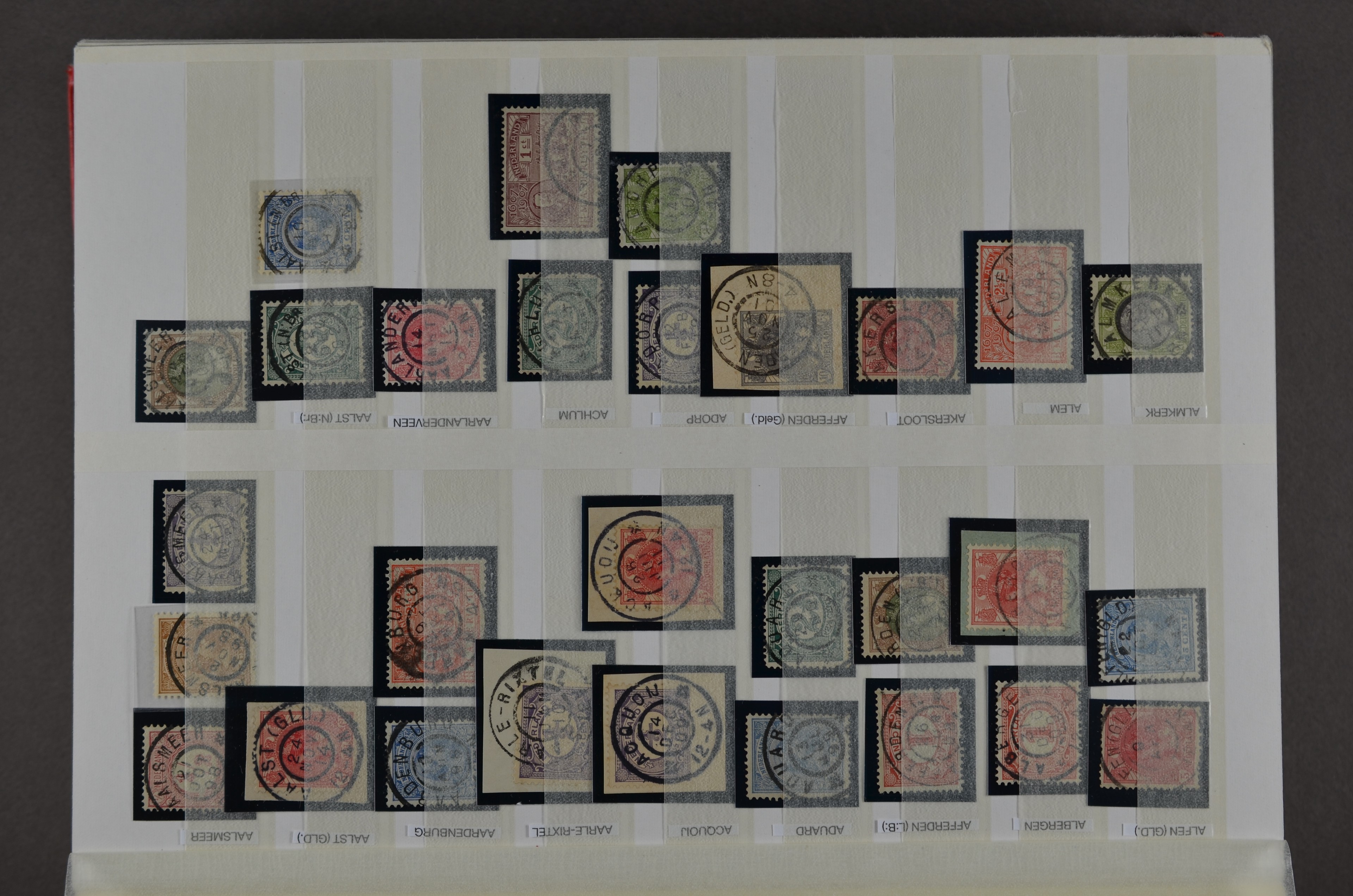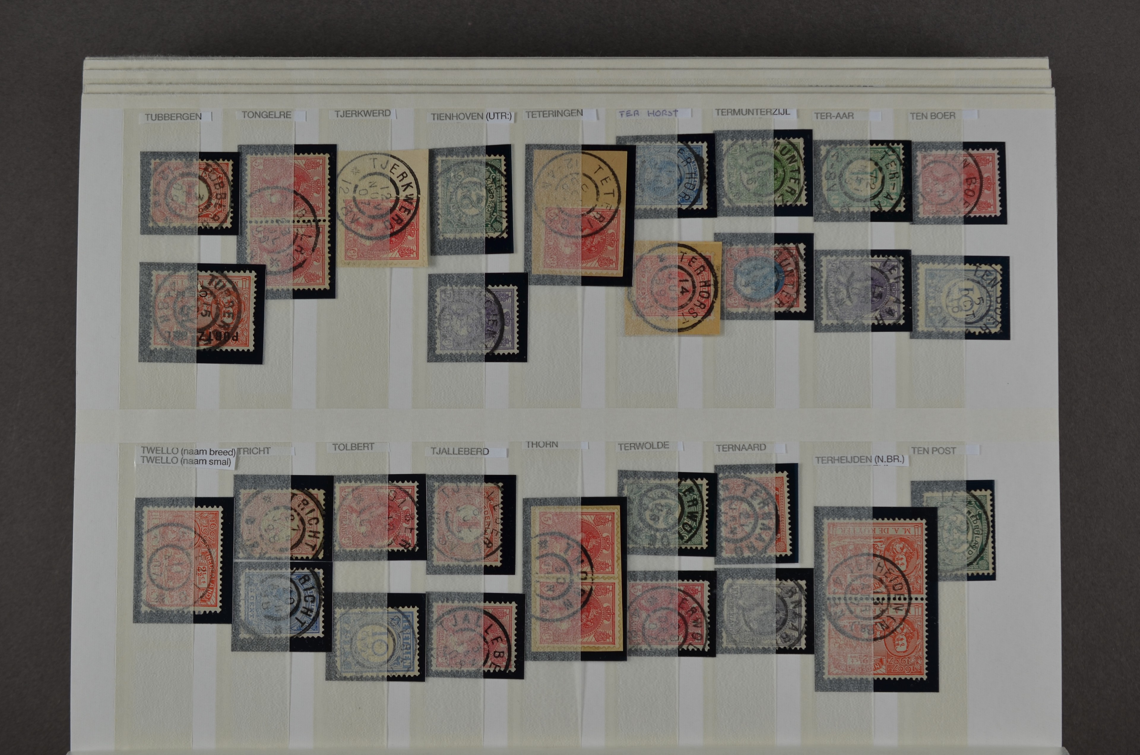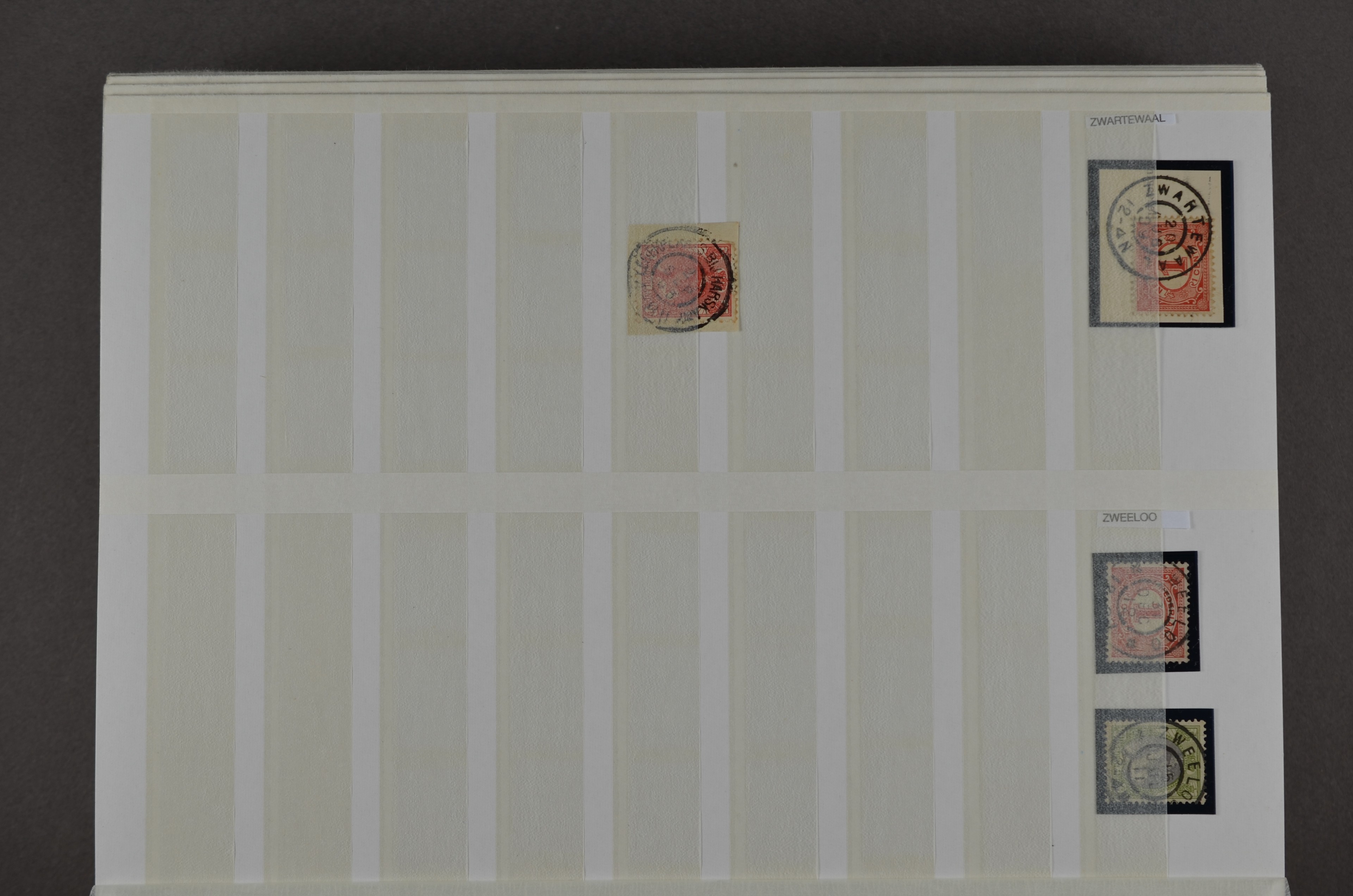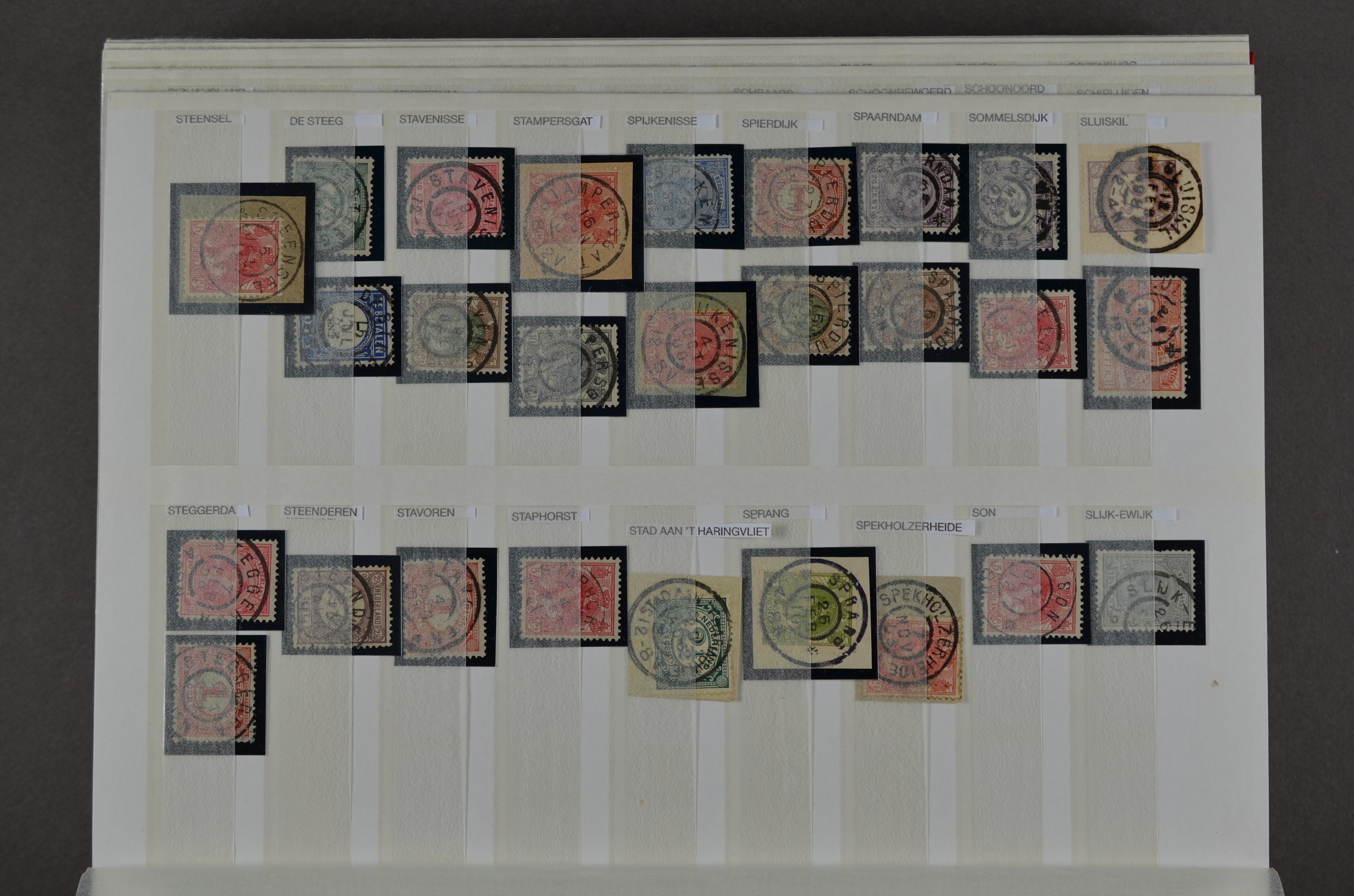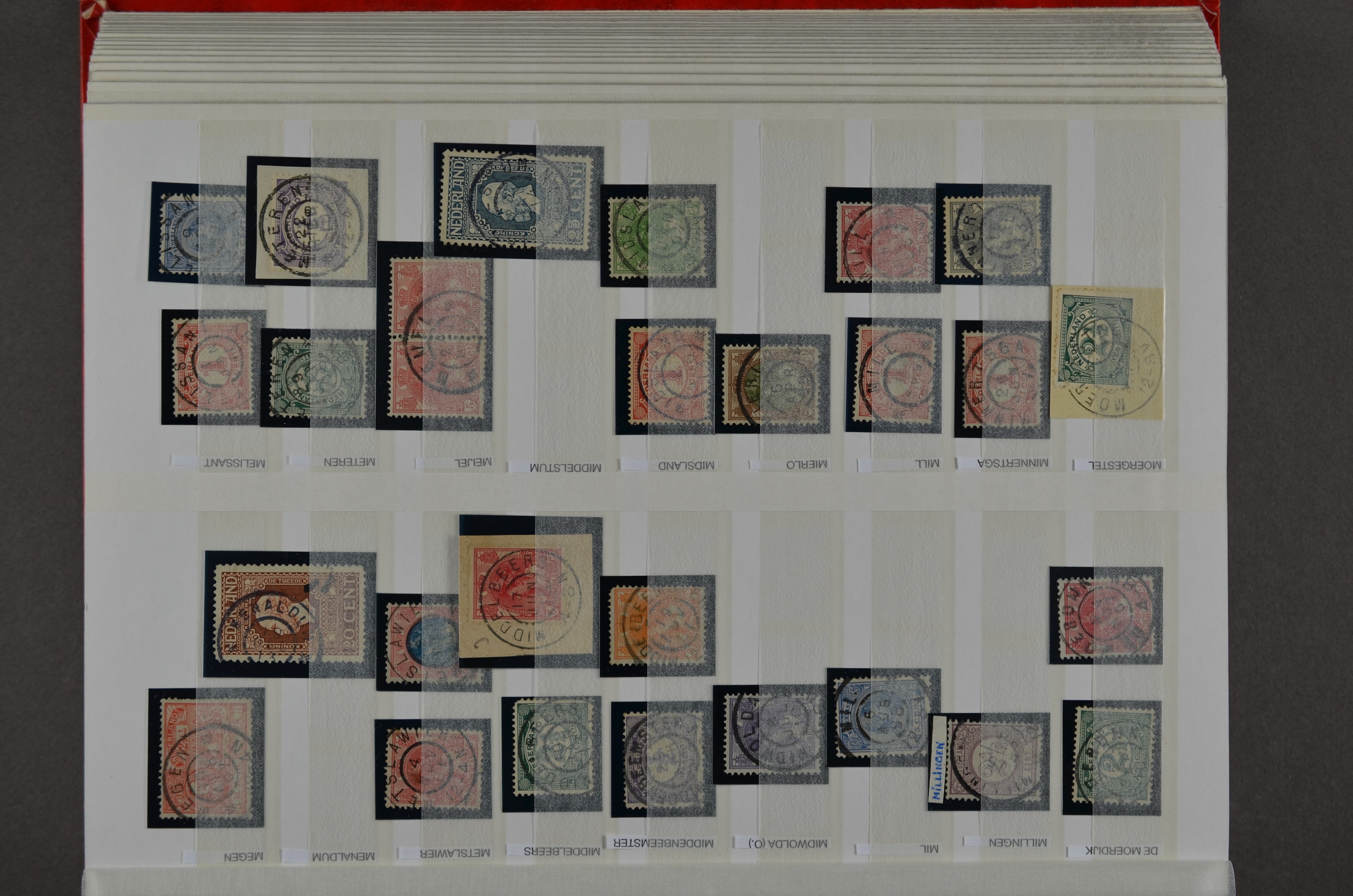 GROOTRONDSTEMPELS van hulppostkantoren, omvangrijke verzameling op losse zegels van verschillende emissies en waarden (o.a. TBC, De Ruyter, Jub. ´13, Port, etc.), w.o. op knipsels, met vele prachtige en feitelijk alleen maar luxe afstempelingen waarbij veel (zeer) schaarse kantoren, een lust voor het oog, en een geweldig mooi object om op te zetten of voor de handelaar om zijn klanten te verwennen met topkwaliteit, in dik insteekboek
