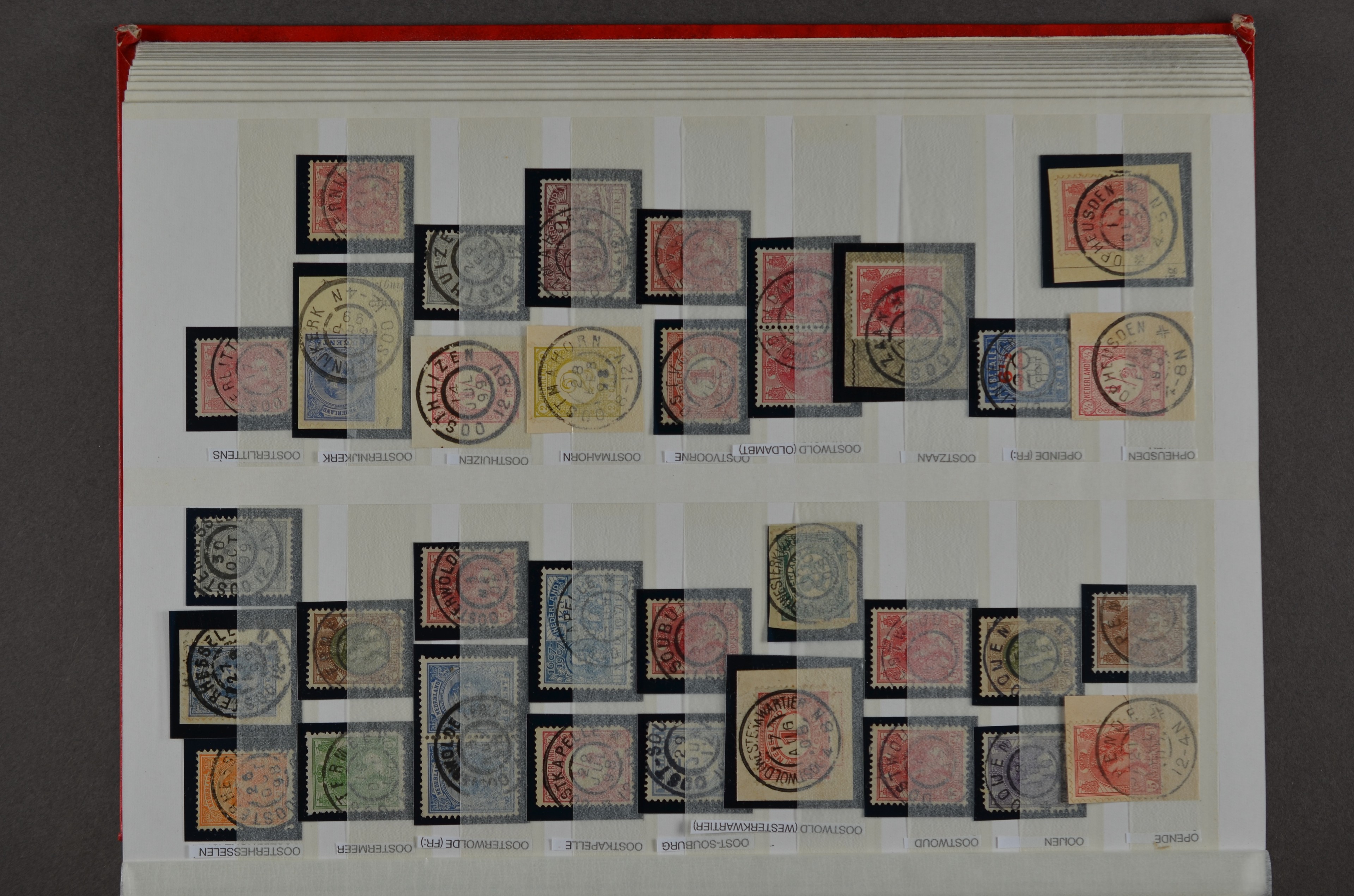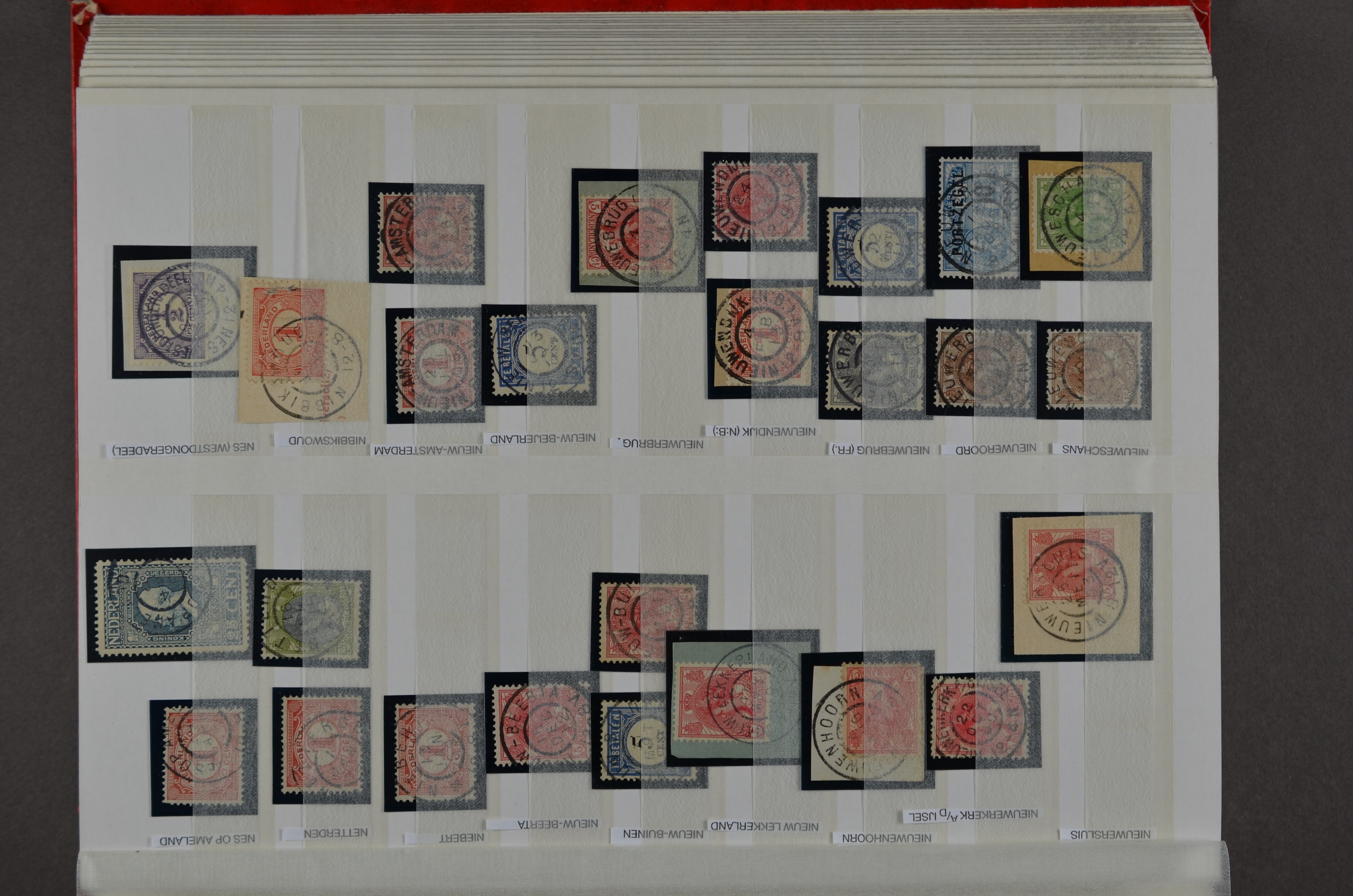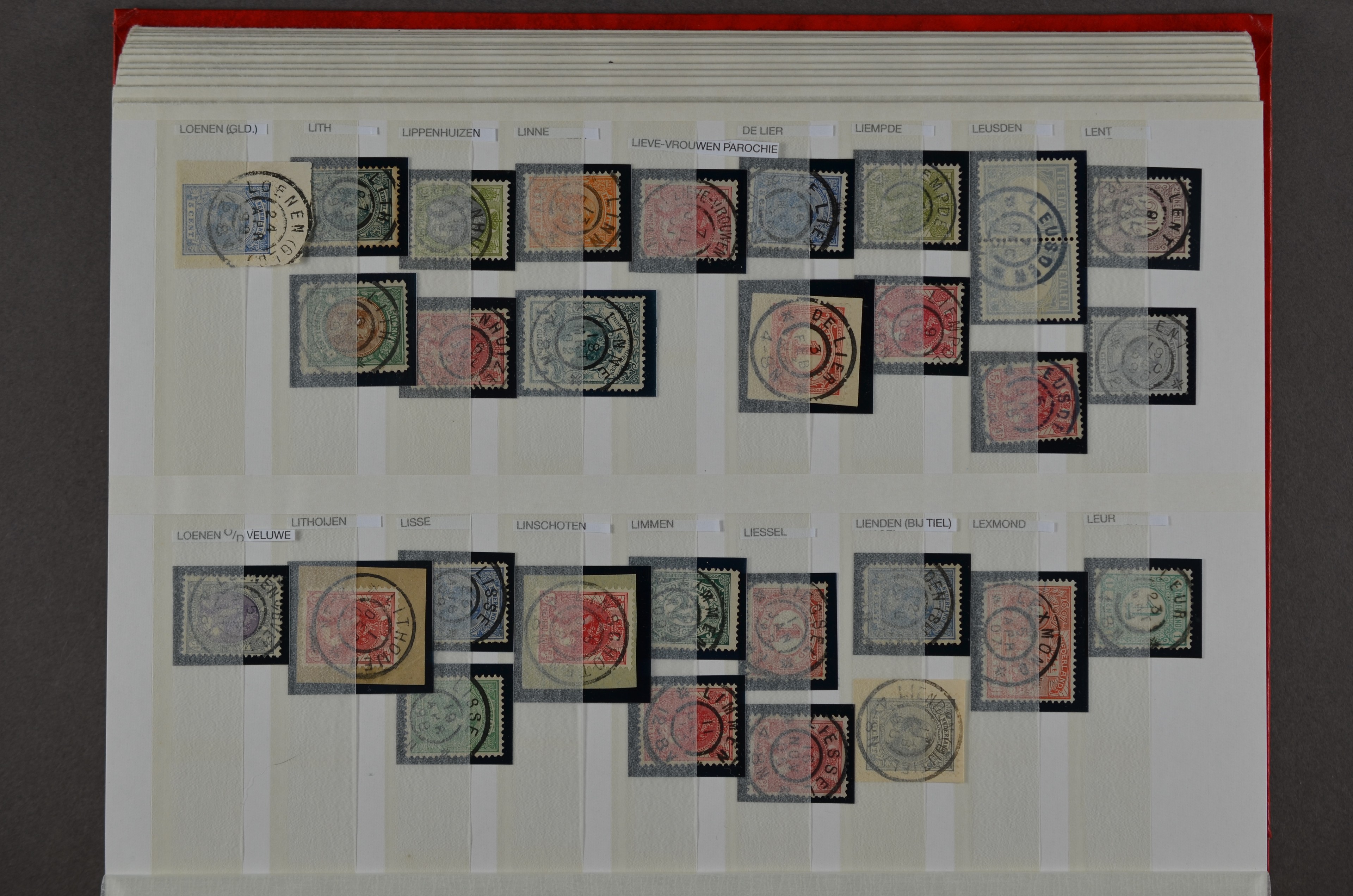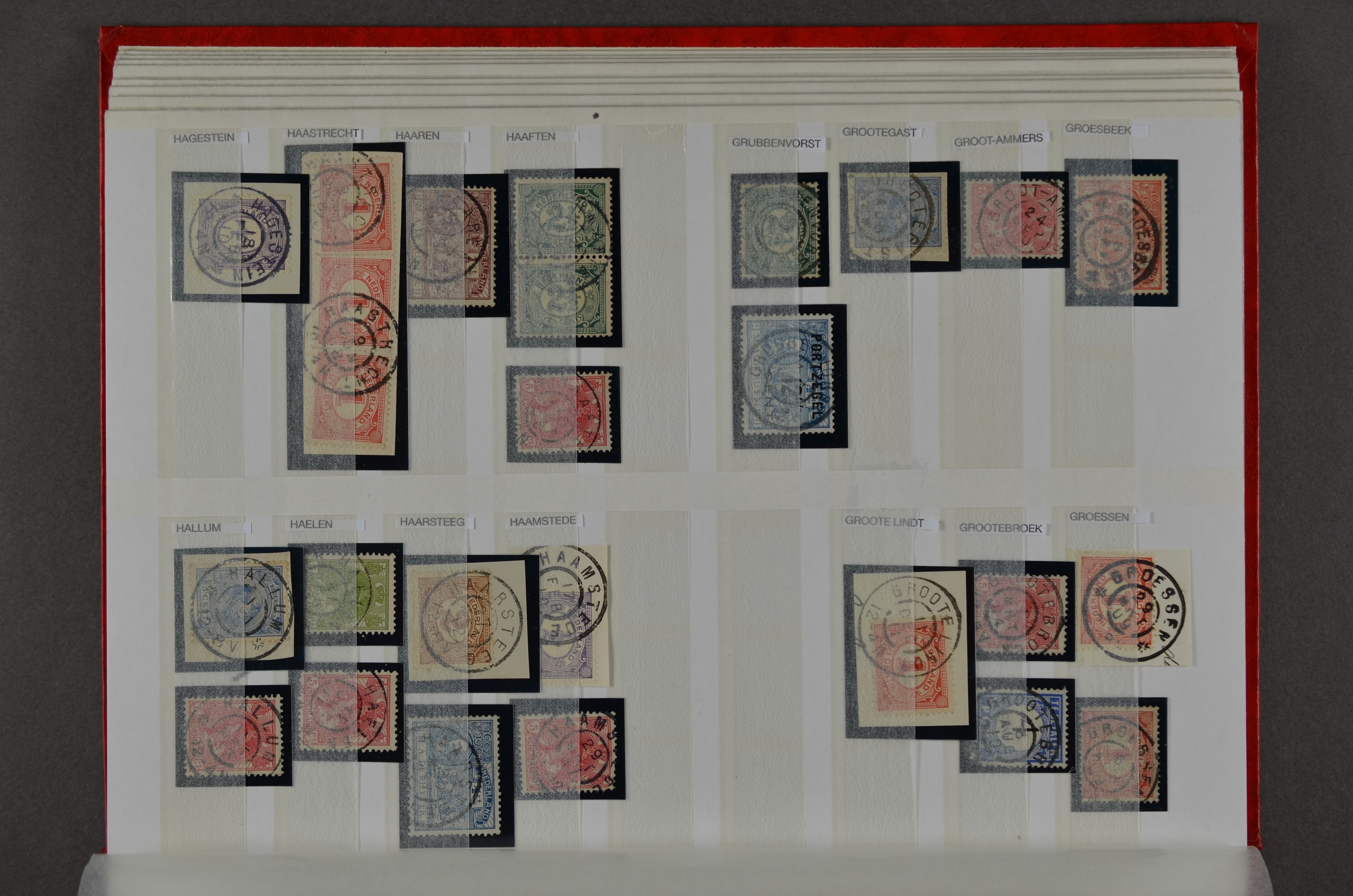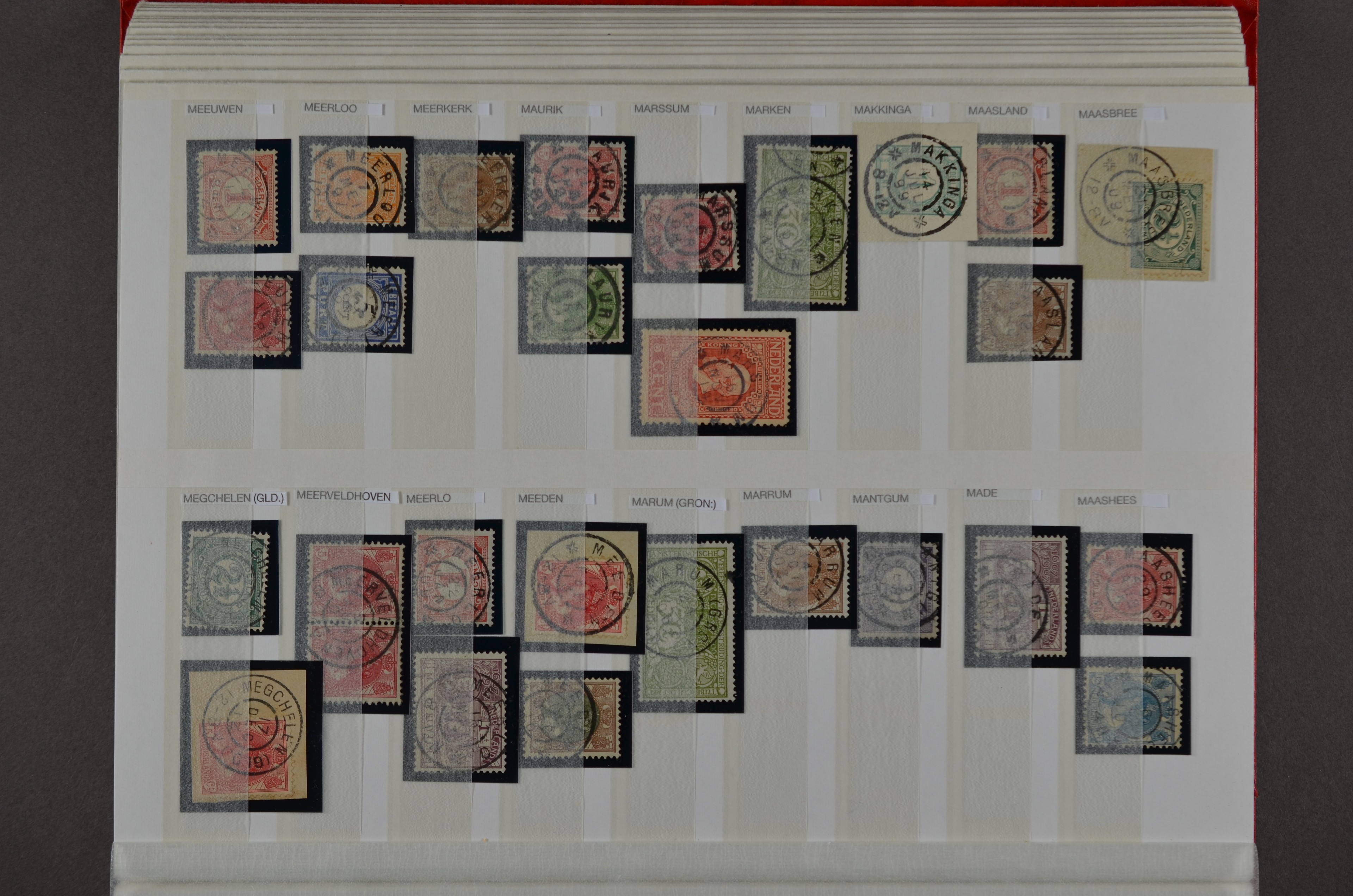 GROOTRONDSTEMPELS van hulppostkantoren, omvangrijke verzameling op losse zegels van verschillende emissies en waarden (o.a. TBC, De Ruyter, Jub. ´13, Port, etc.), w.o. op knipsels, met vele prachtige en feitelijk alleen maar luxe afstempelingen waarbij veel (zeer) schaarse kantoren, een lust voor het oog, en een geweldig mooi object om op te zetten of voor de handelaar om zijn klanten te verwennen met topkwaliteit, in dik insteekboek