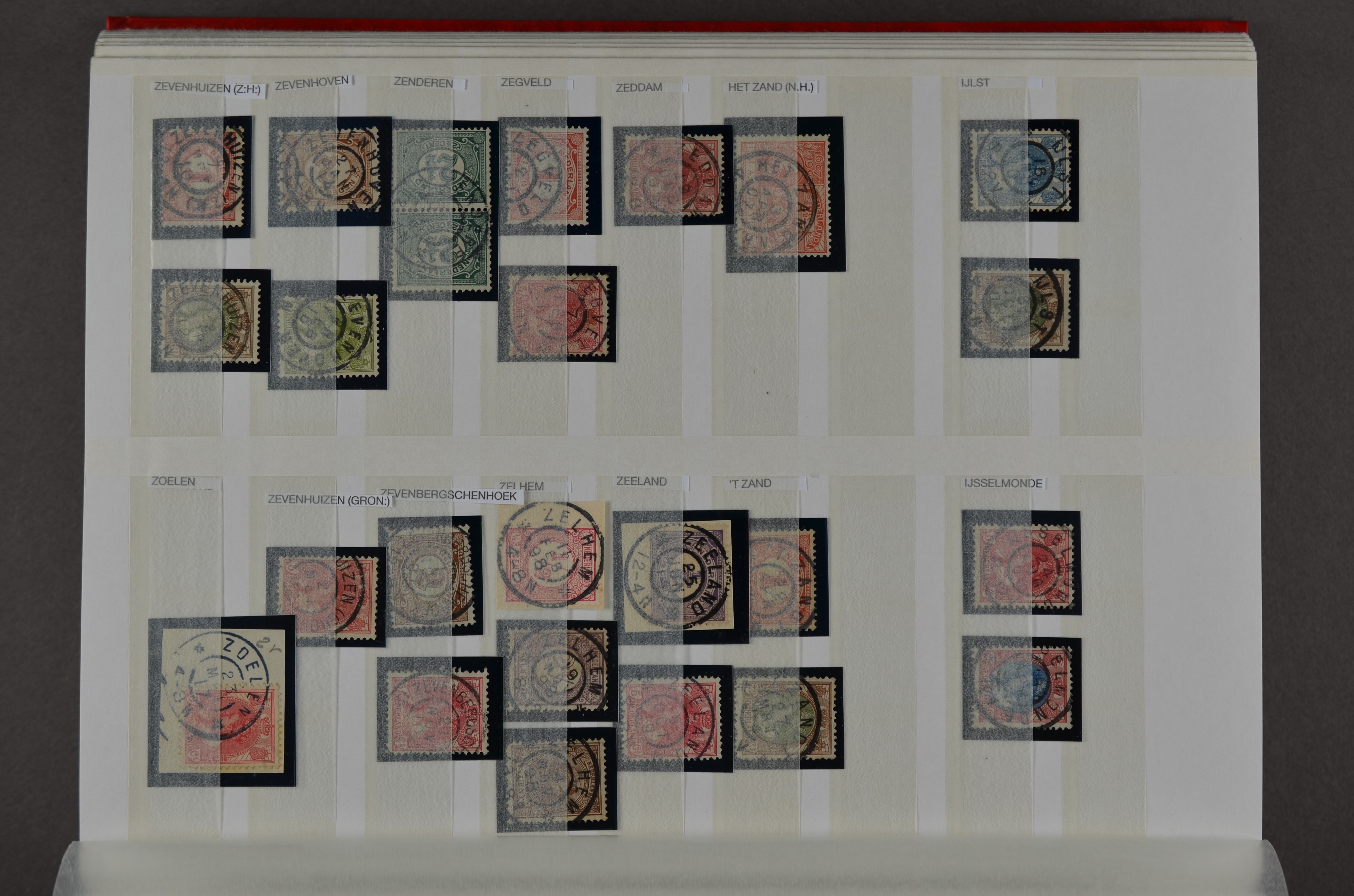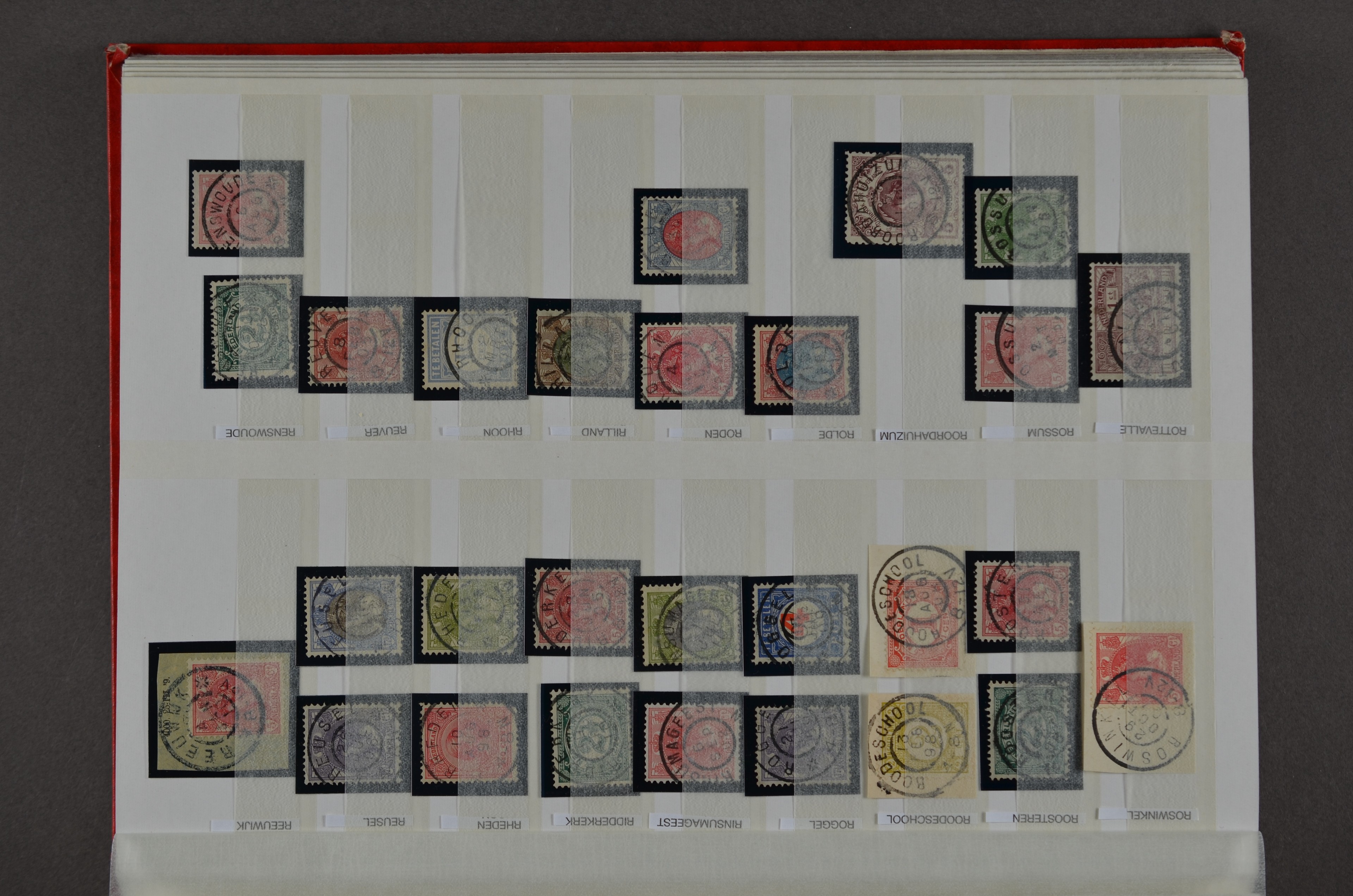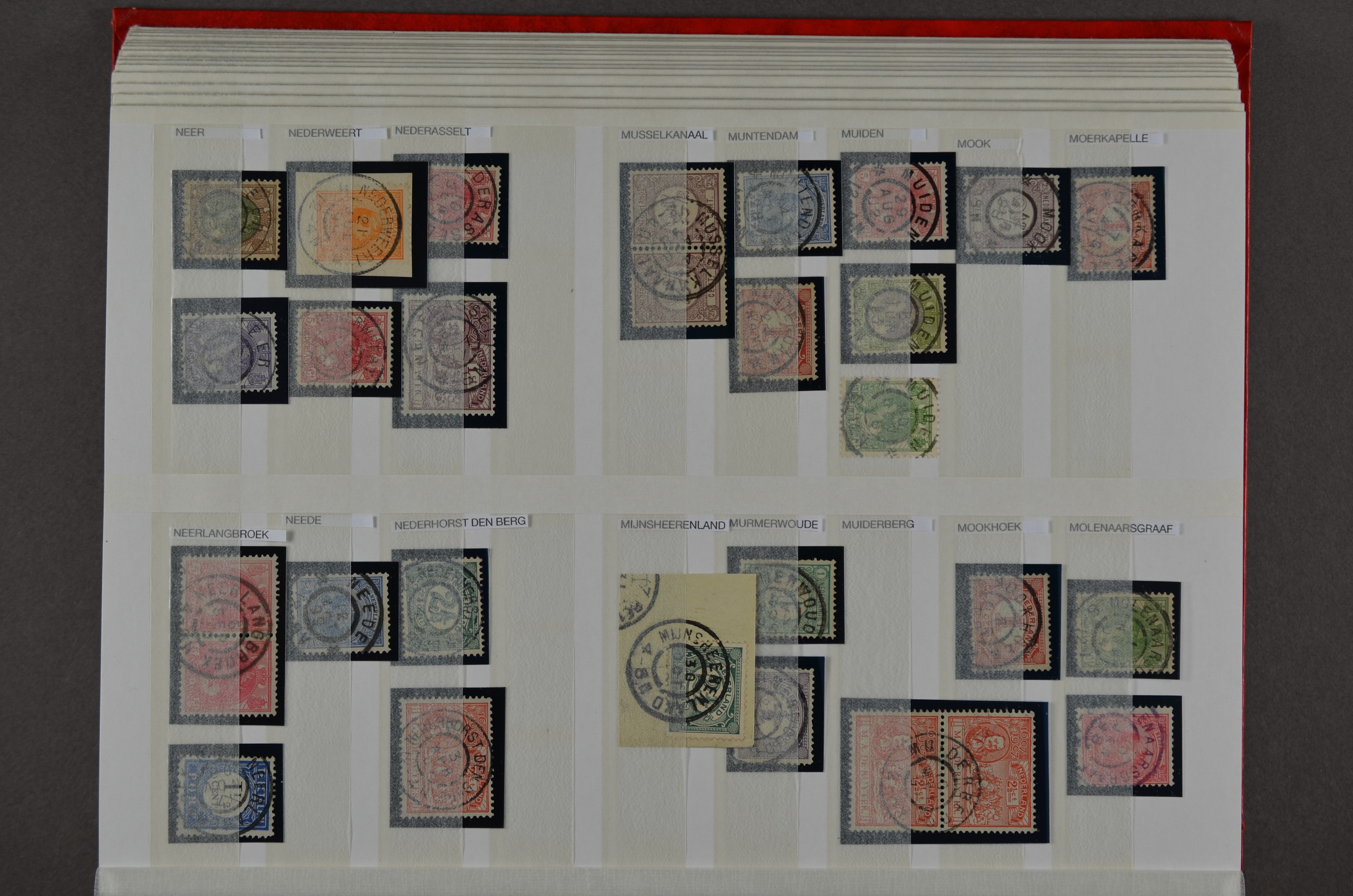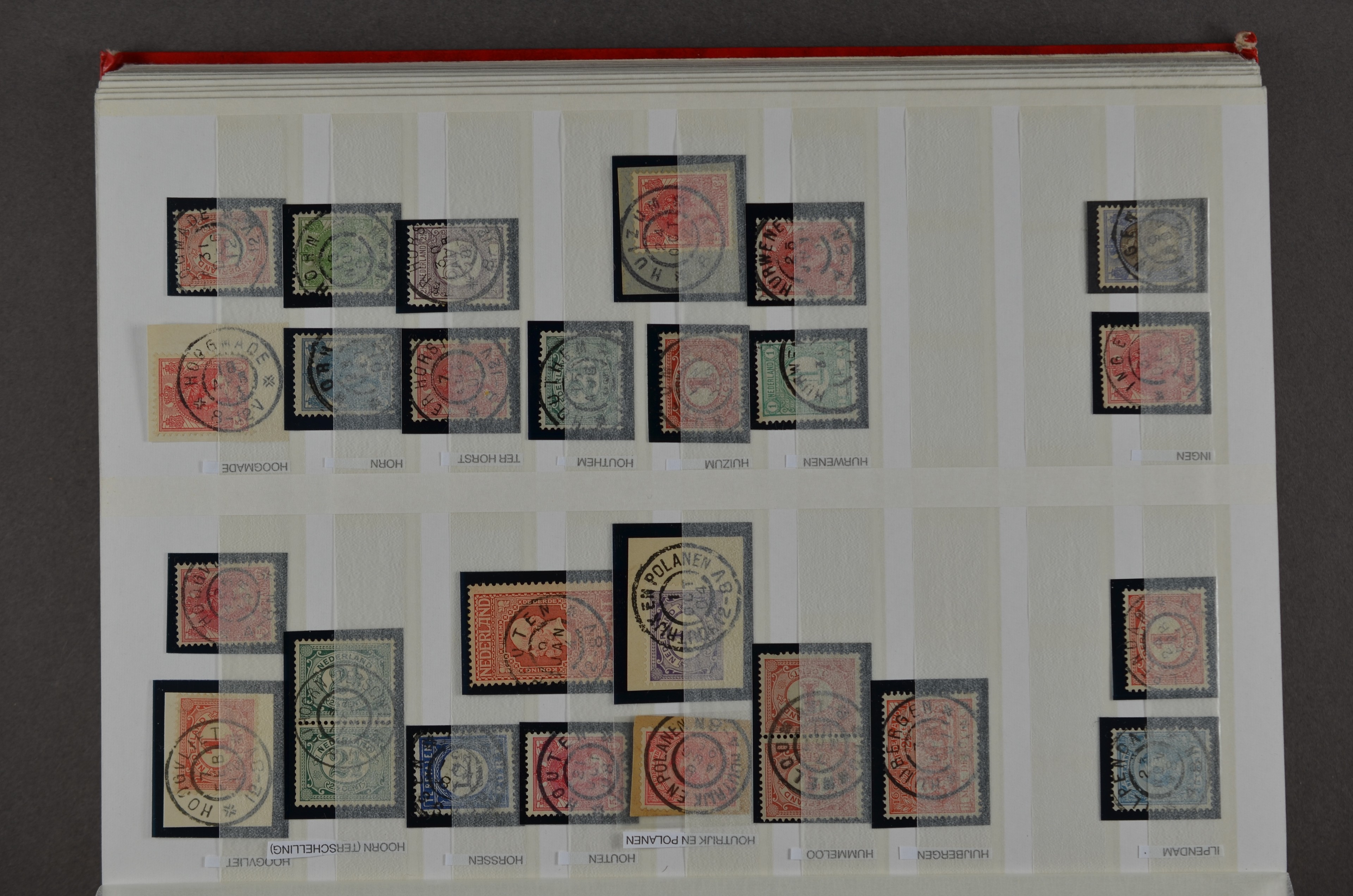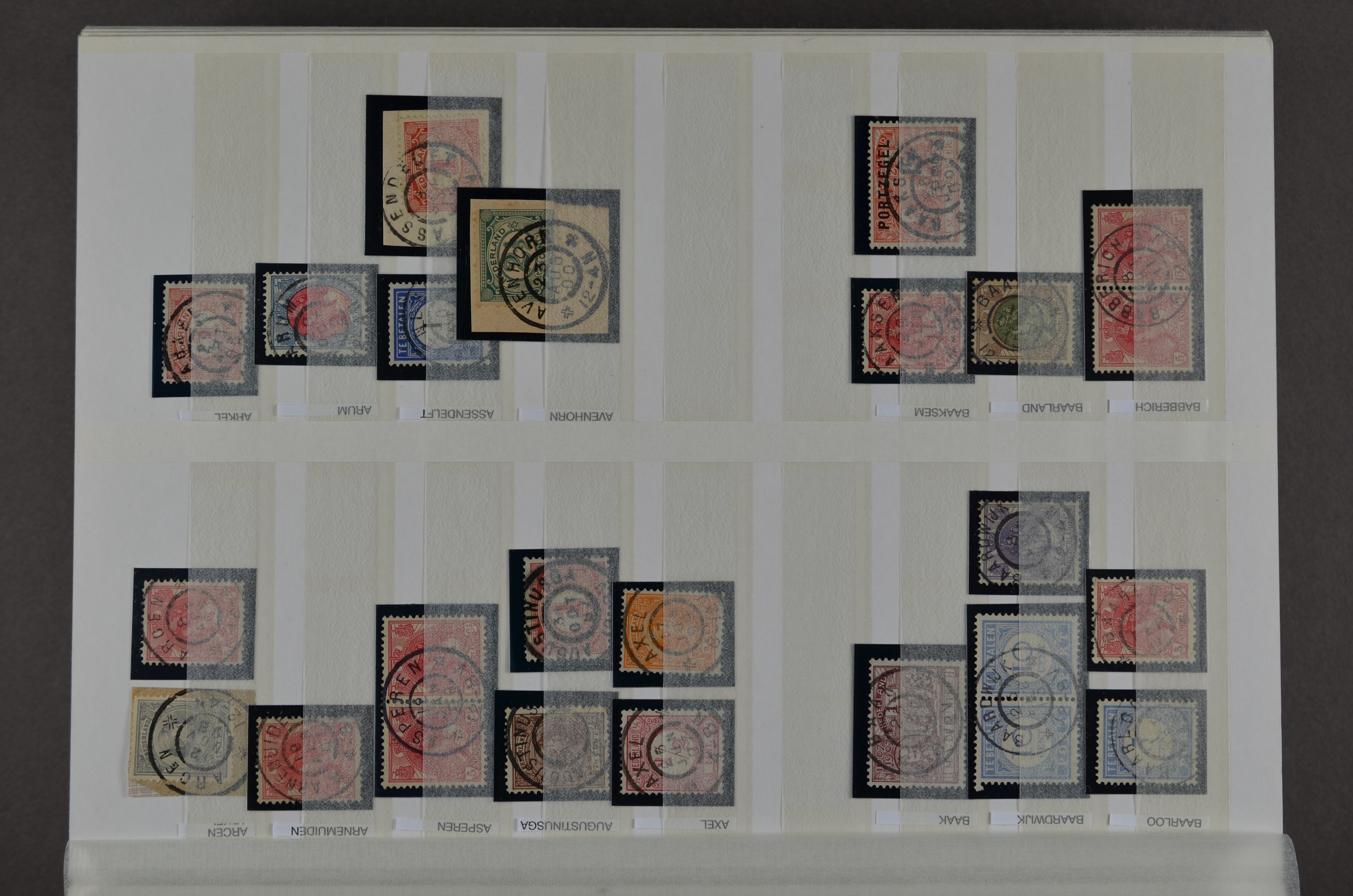 GROOTRONDSTEMPELS van hulppostkantoren, omvangrijke verzameling op losse zegels van verschillende emissies en waarden (o.a. TBC, De Ruyter, Jub. ´13, Port, etc.), w.o. op knipsels, met vele prachtige en feitelijk alleen maar luxe afstempelingen waarbij veel (zeer) schaarse kantoren, een lust voor het oog, en een geweldig mooi object om op te zetten of voor de handelaar om zijn klanten te verwennen met topkwaliteit, in dik insteekboek