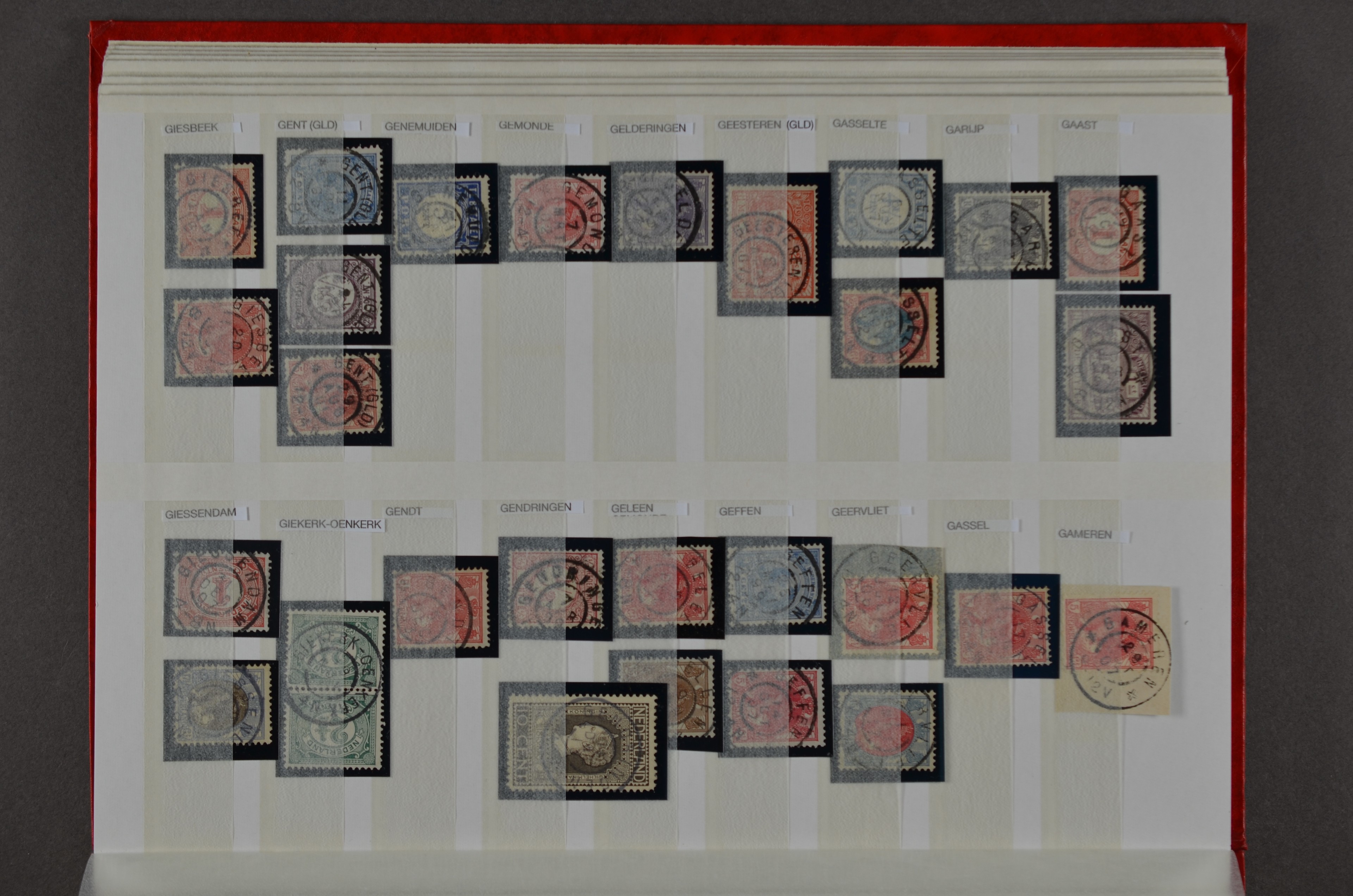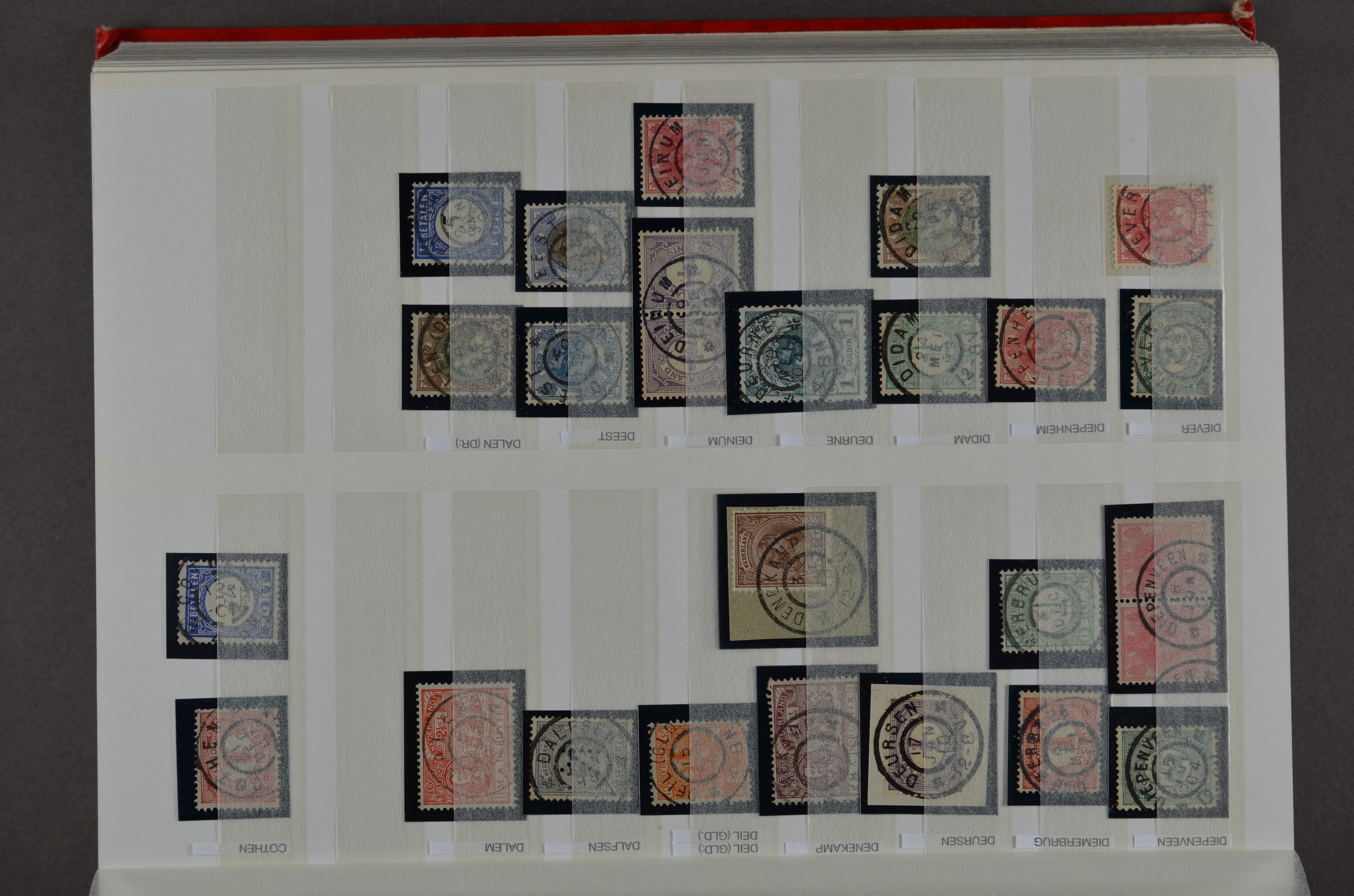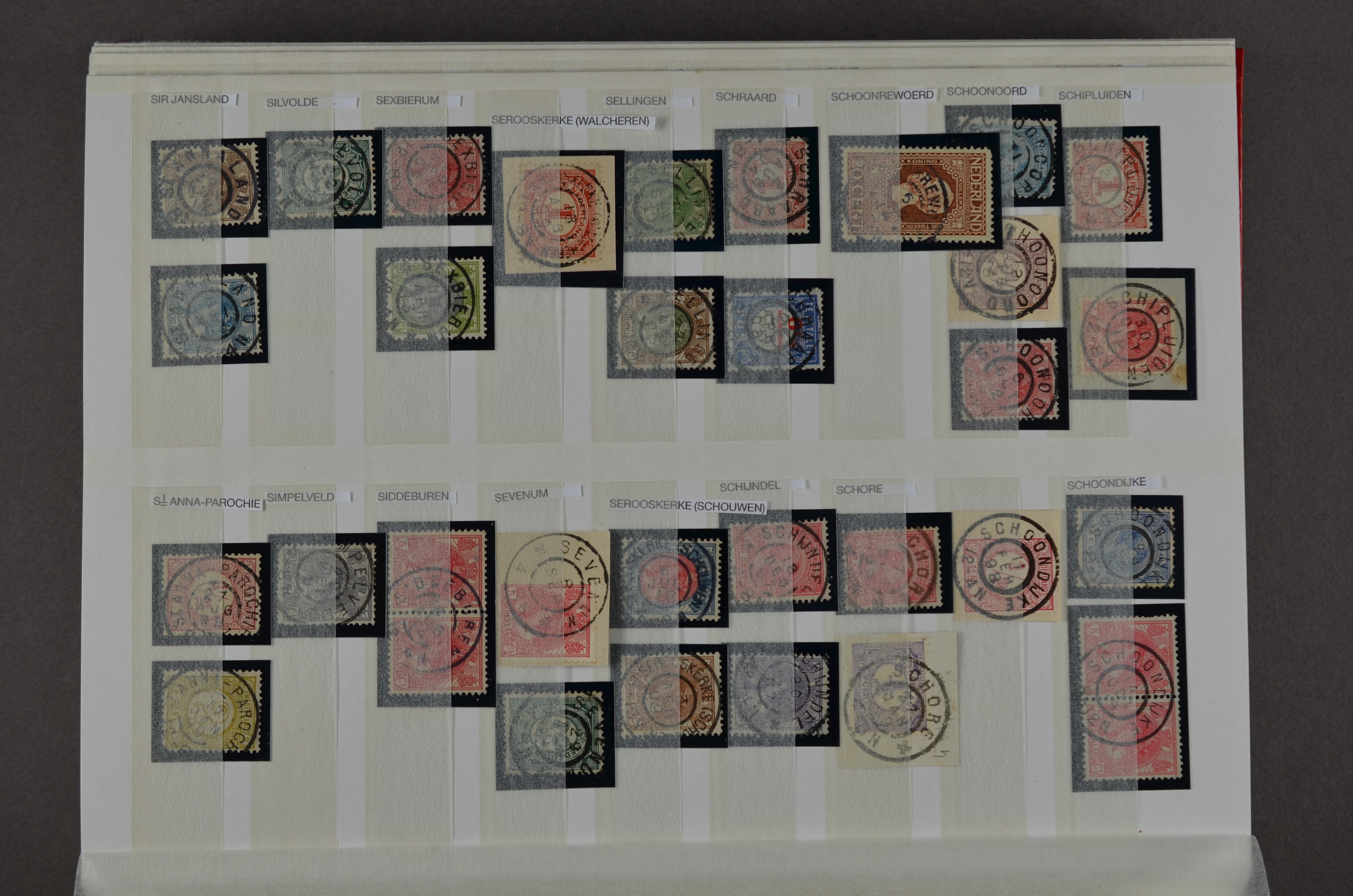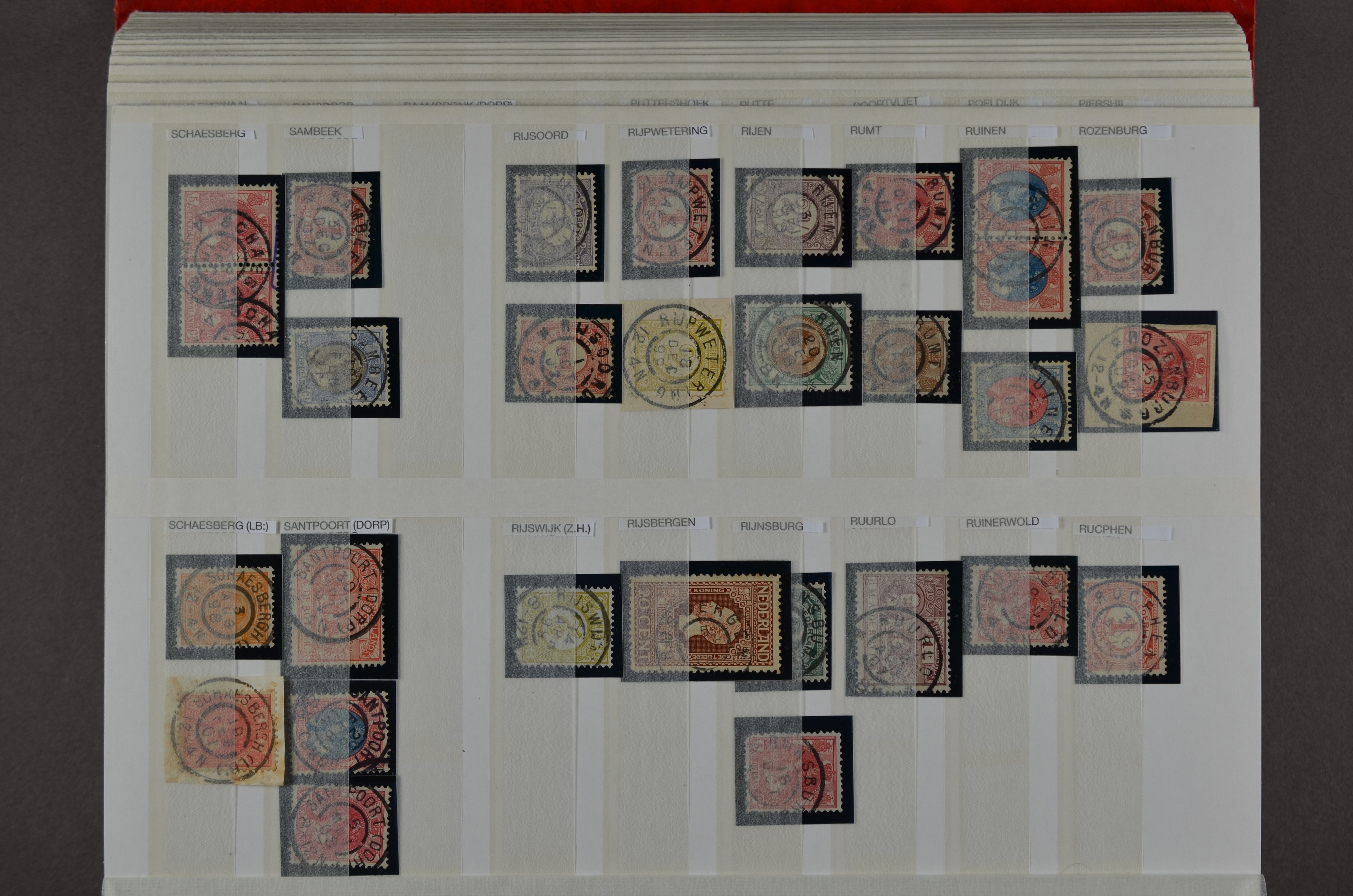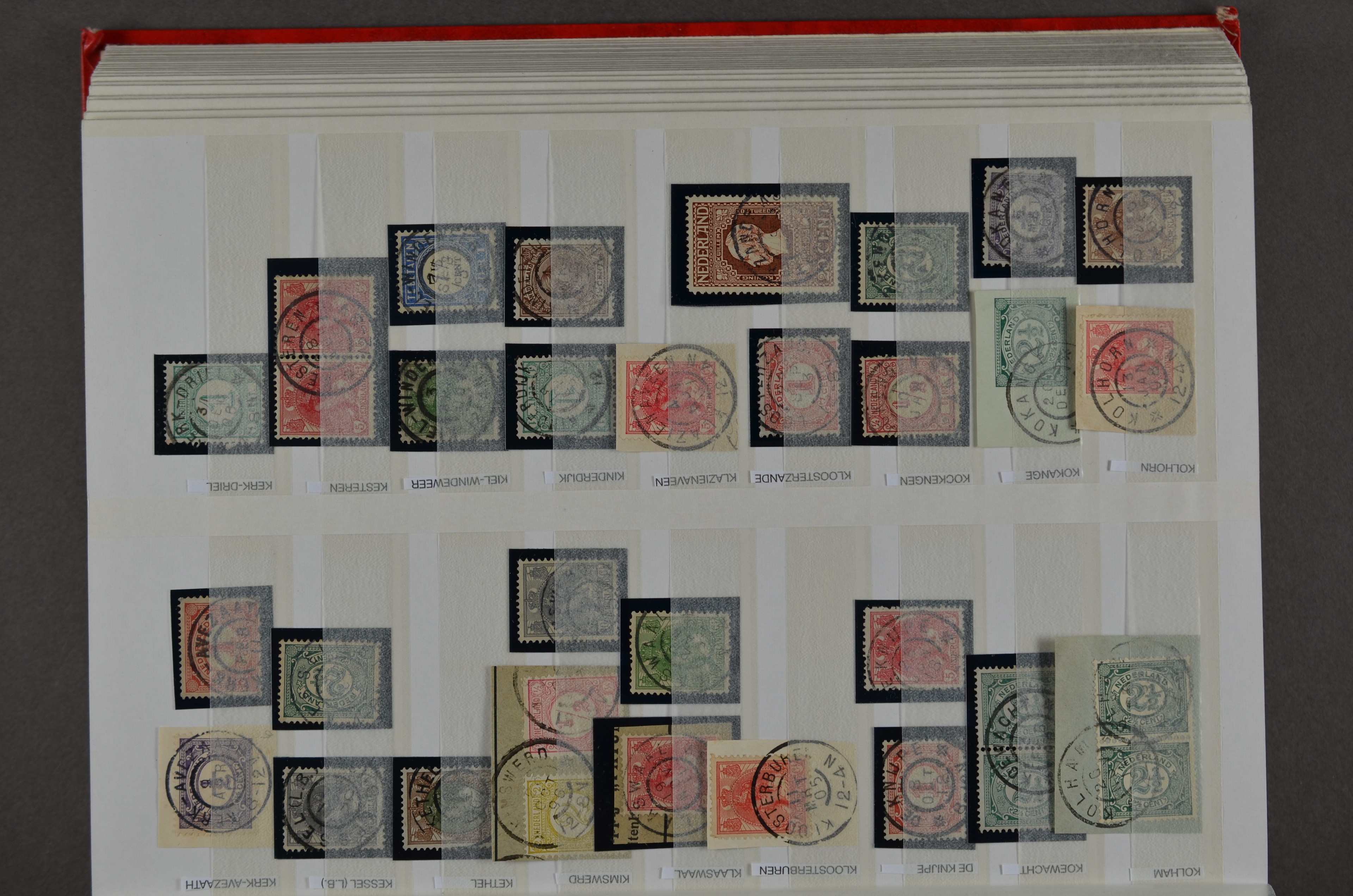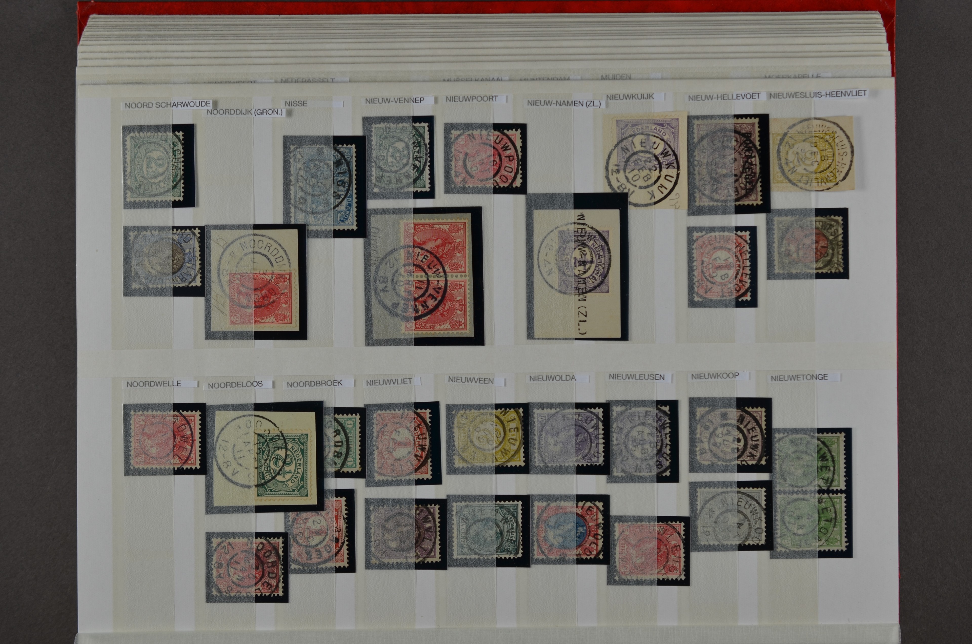 GROOTRONDSTEMPELS van hulppostkantoren, omvangrijke verzameling op losse zegels van verschillende emissies en waarden (o.a. TBC, De Ruyter, Jub. ´13, Port, etc.), w.o. op knipsels, met vele prachtige en feitelijk alleen maar luxe afstempelingen waarbij veel (zeer) schaarse kantoren, een lust voor het oog, en een geweldig mooi object om op te zetten of voor de handelaar om zijn klanten te verwennen met topkwaliteit, in dik insteekboek