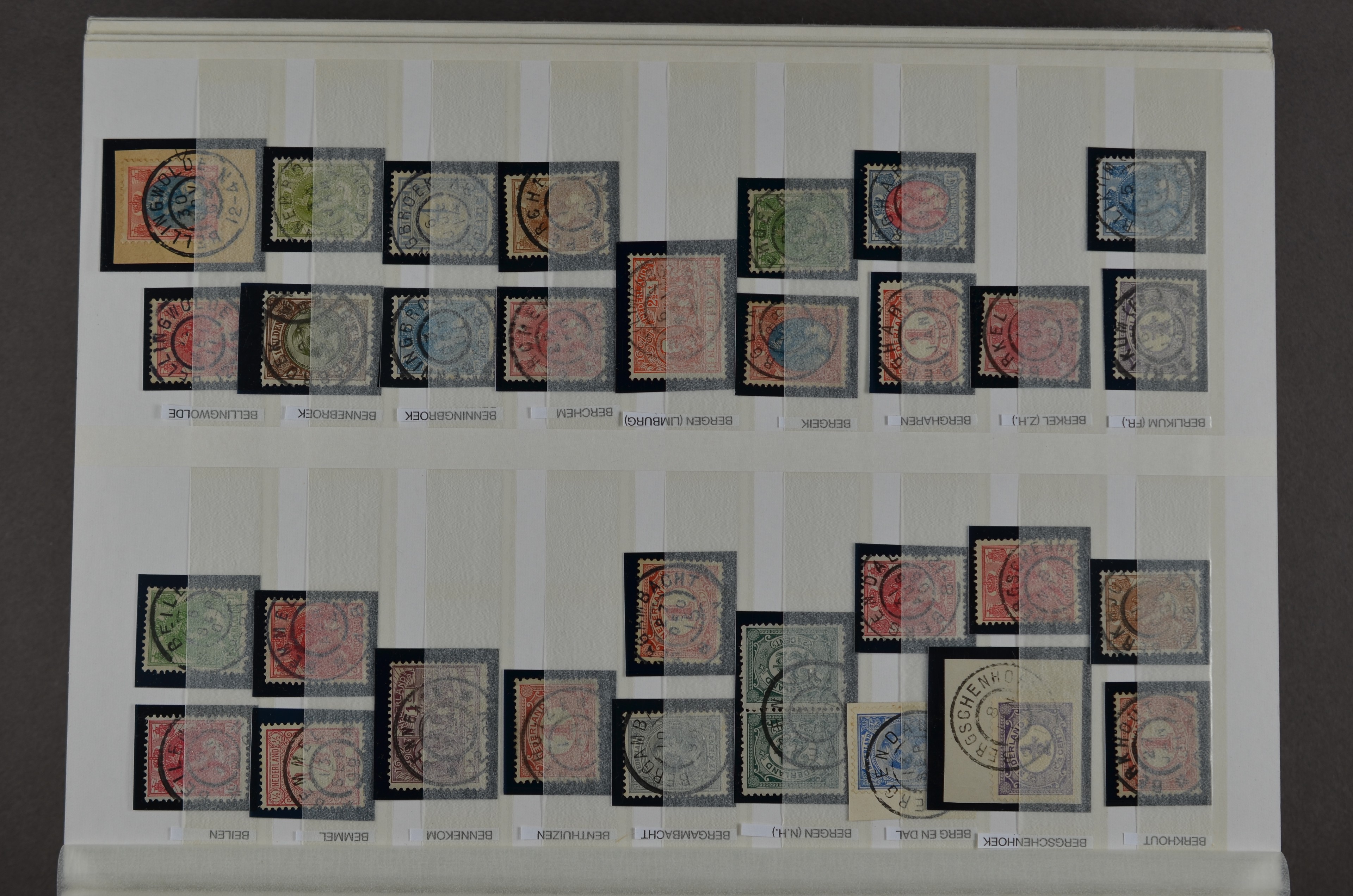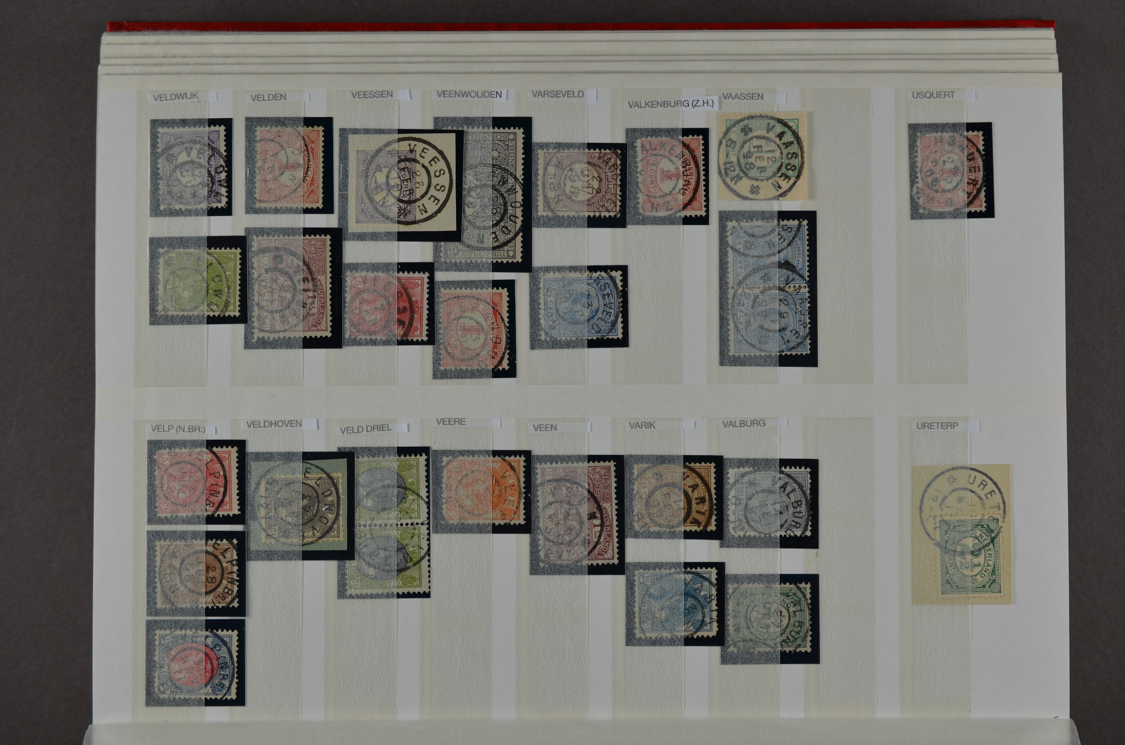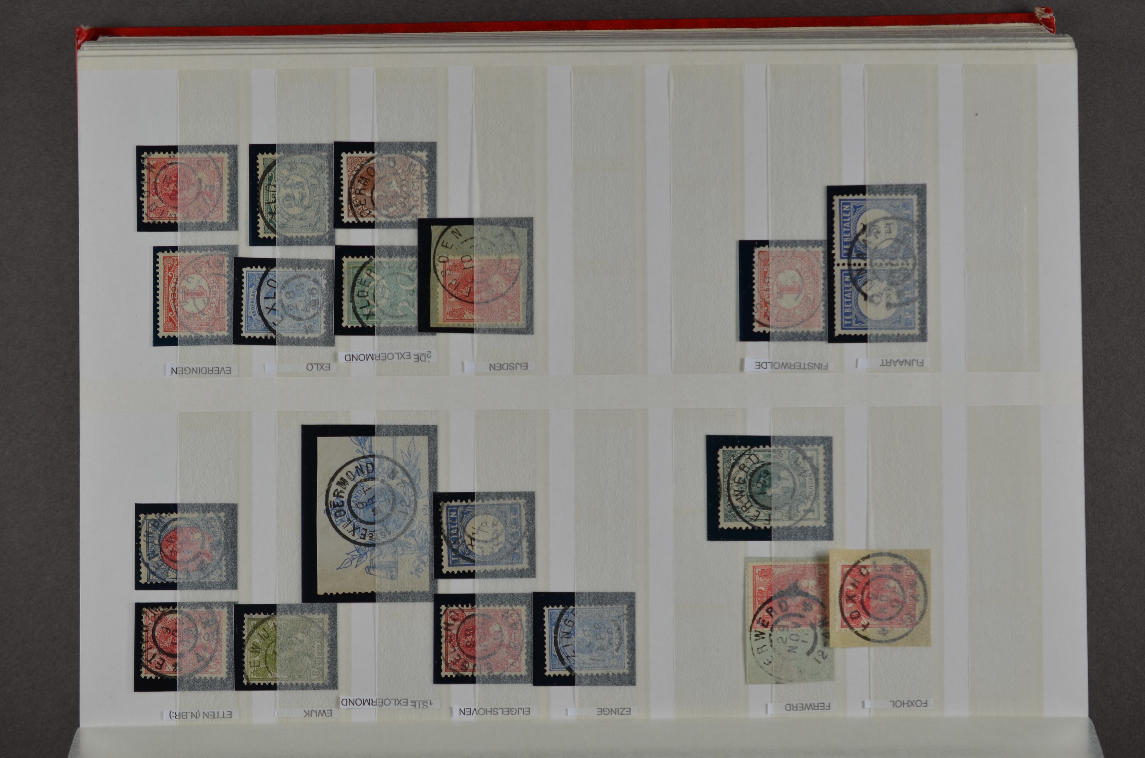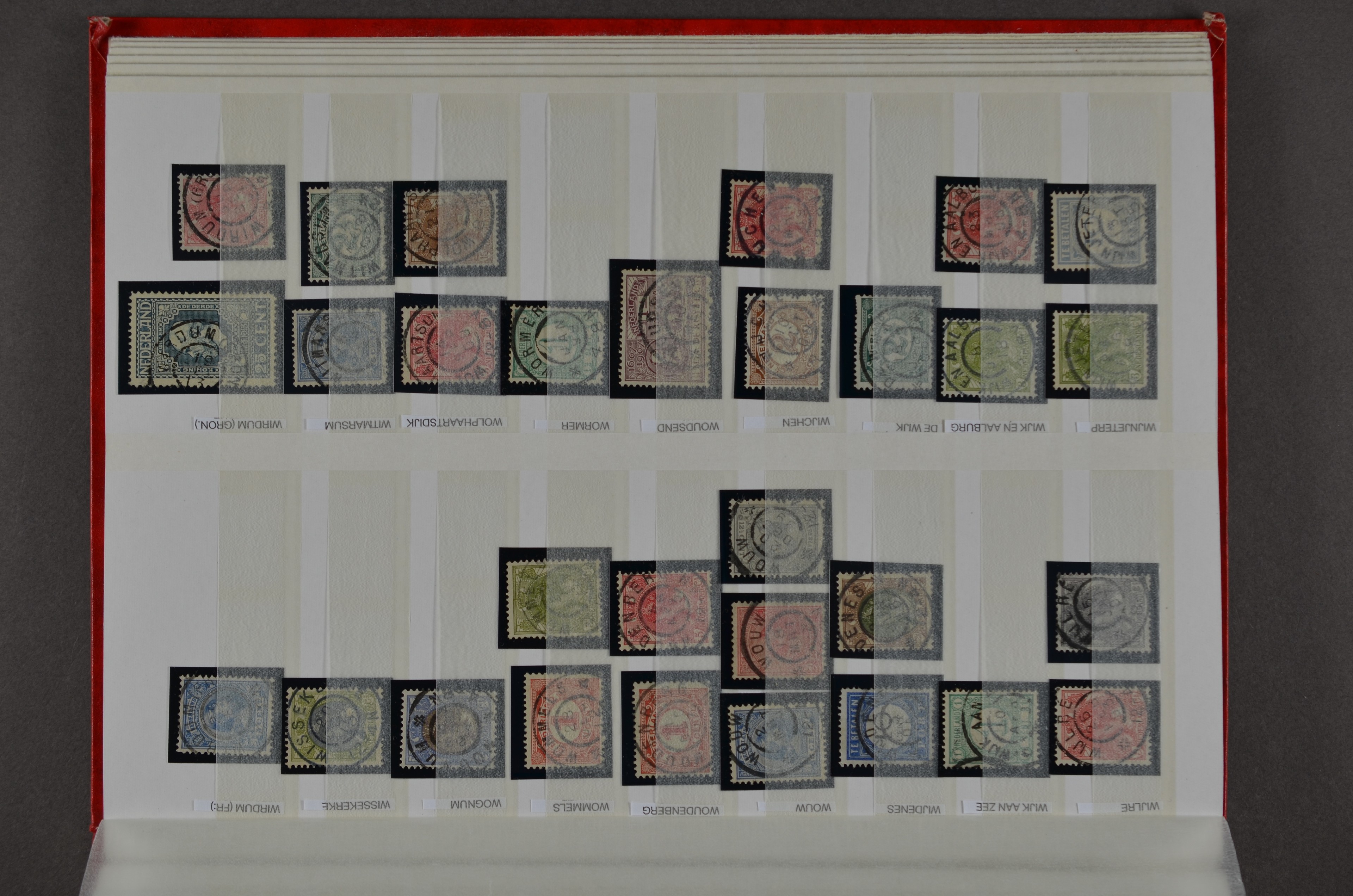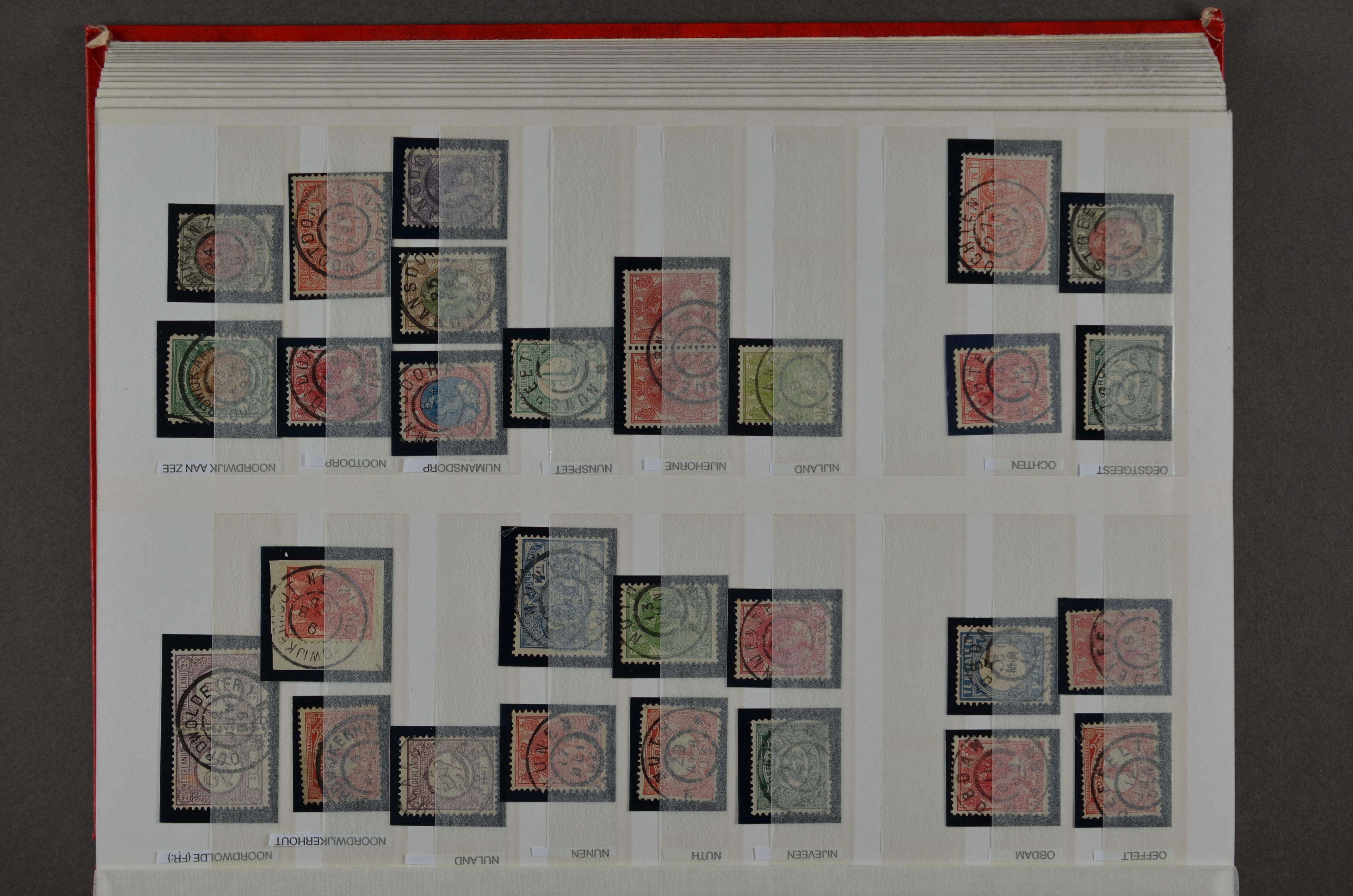 GROOTRONDSTEMPELS van hulppostkantoren, omvangrijke verzameling op losse zegels van verschillende emissies en waarden (o.a. TBC, De Ruyter, Jub. ´13, Port, etc.), w.o. op knipsels, met vele prachtige en feitelijk alleen maar luxe afstempelingen waarbij veel (zeer) schaarse kantoren, een lust voor het oog, en een geweldig mooi object om op te zetten of voor de handelaar om zijn klanten te verwennen met topkwaliteit, in dik insteekboek