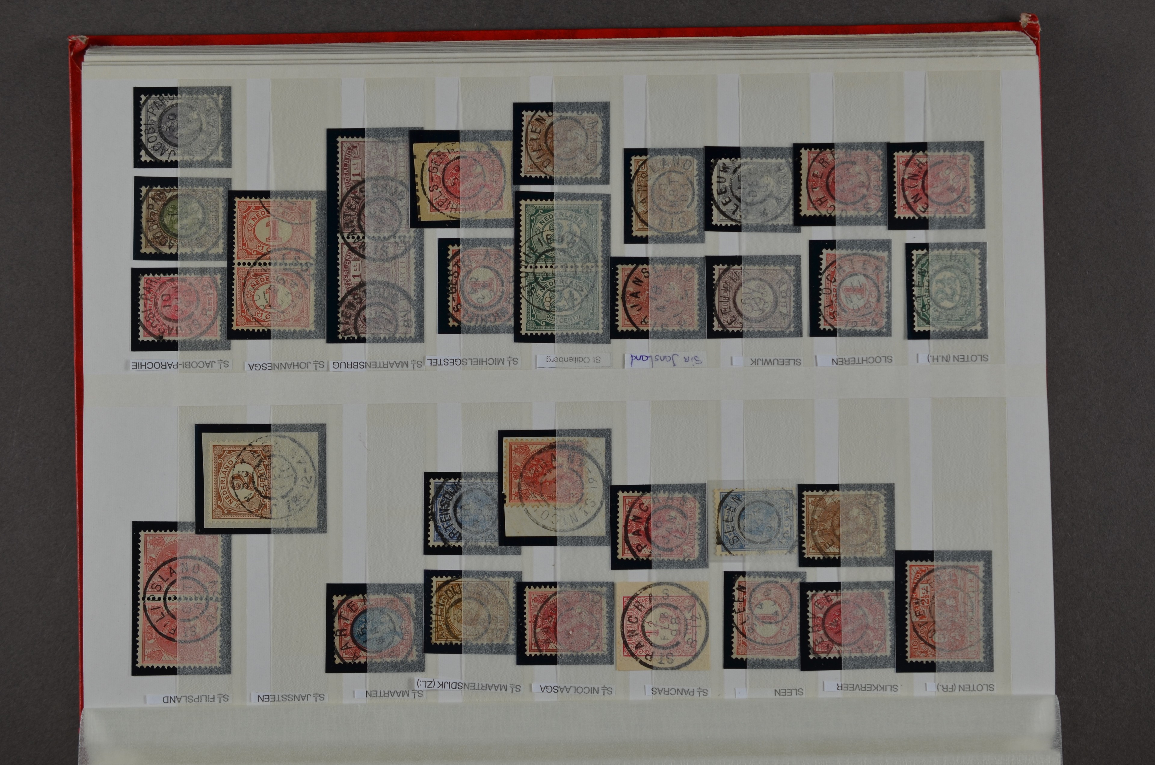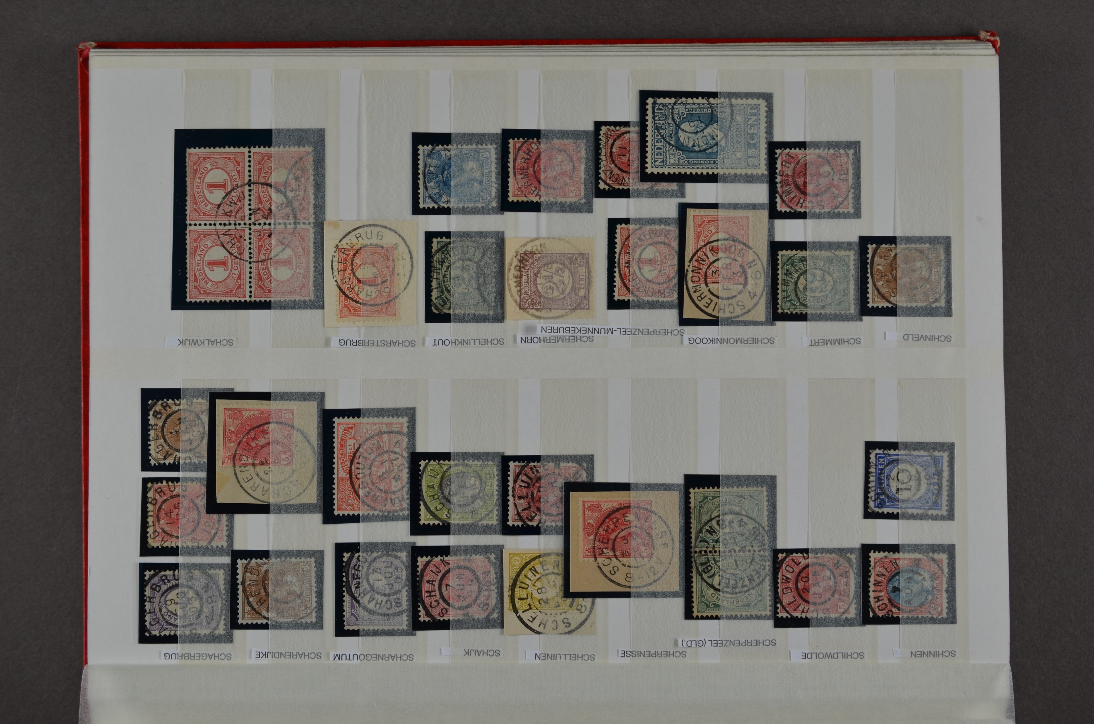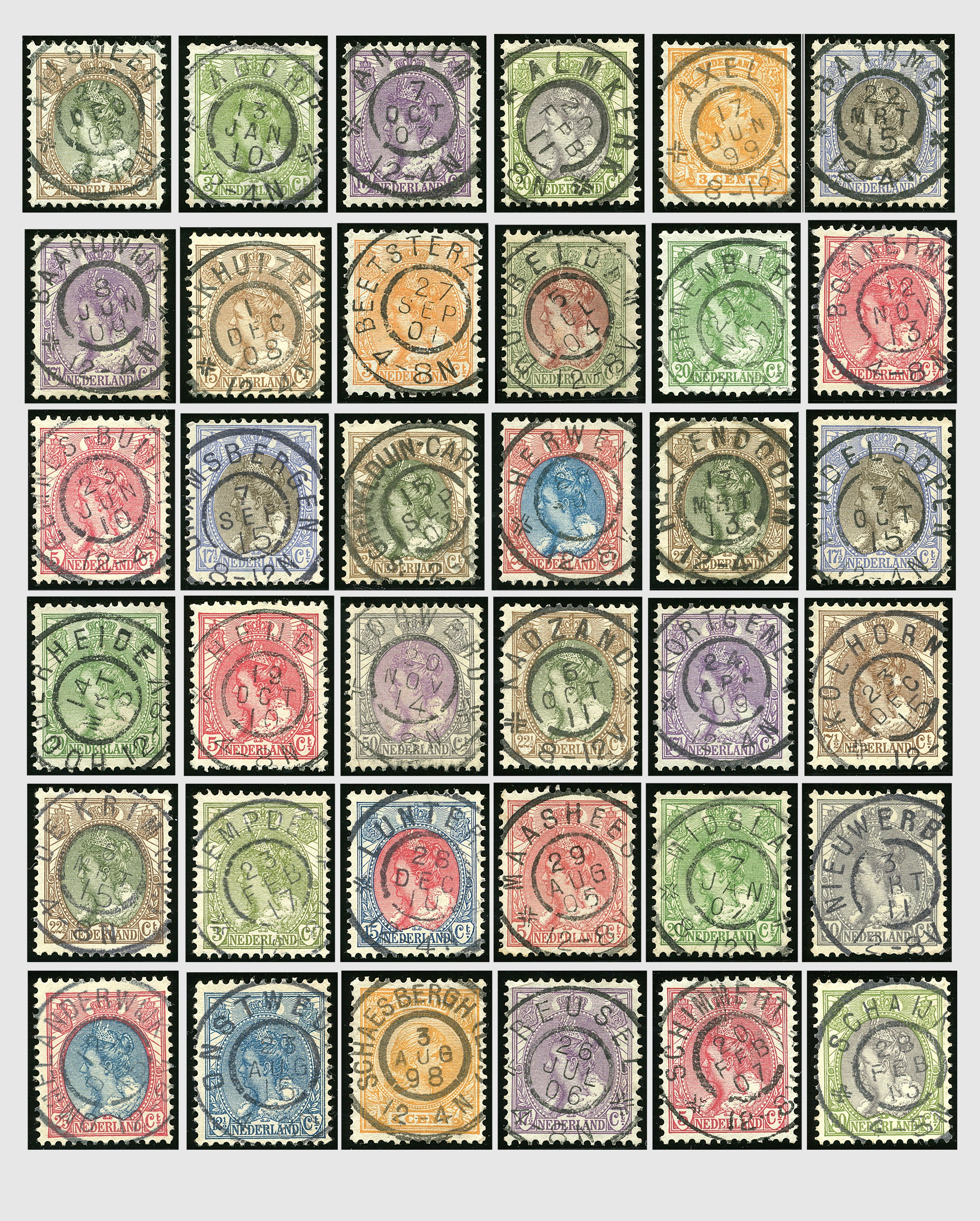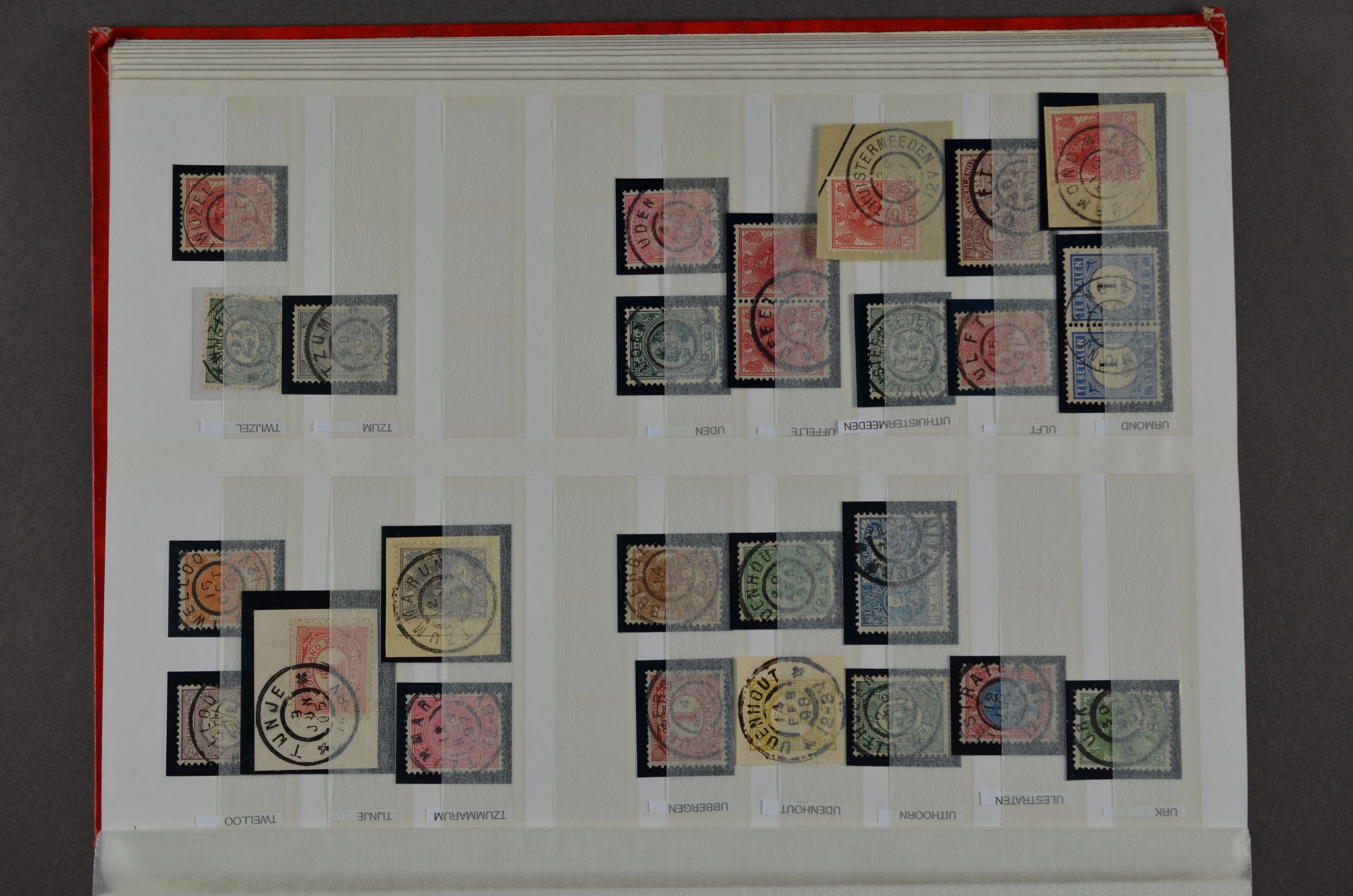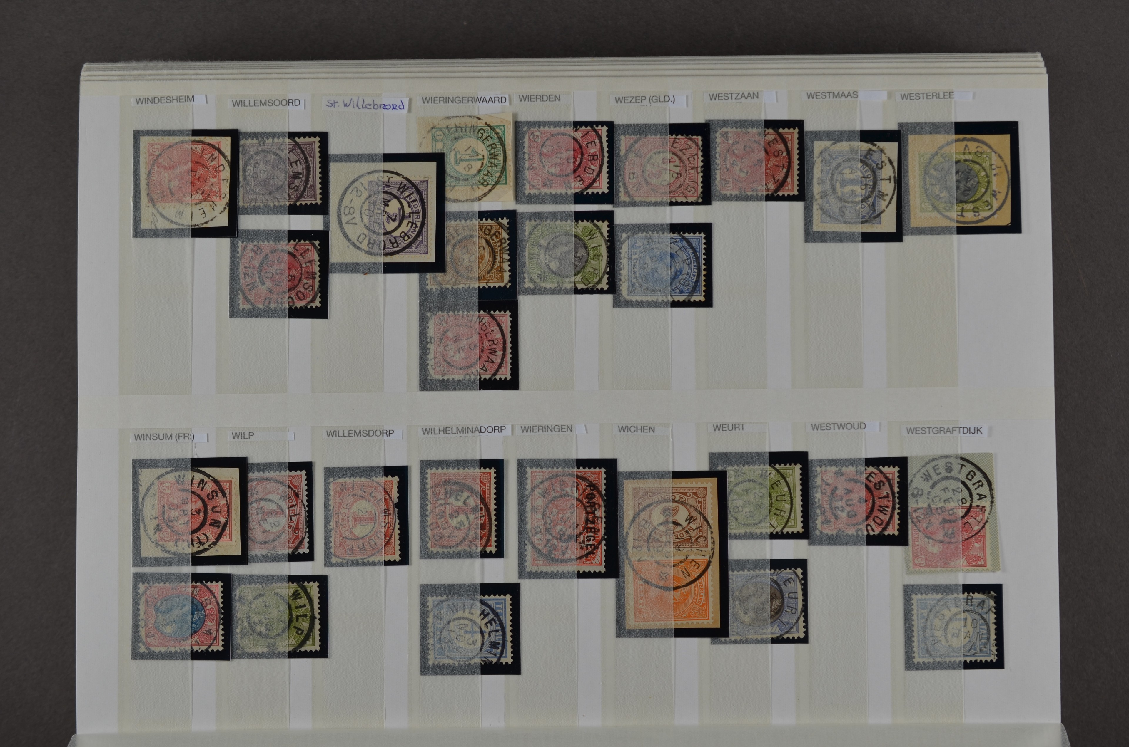 GROOTRONDSTEMPELS van hulppostkantoren, omvangrijke verzameling op losse zegels van verschillende emissies en waarden (o.a. TBC, De Ruyter, Jub. ´13, Port, etc.), w.o. op knipsels, met vele prachtige en feitelijk alleen maar luxe afstempelingen waarbij veel (zeer) schaarse kantoren, een lust voor het oog, en een geweldig mooi object om op te zetten of voor de handelaar om zijn klanten te verwennen met topkwaliteit, in dik insteekboek