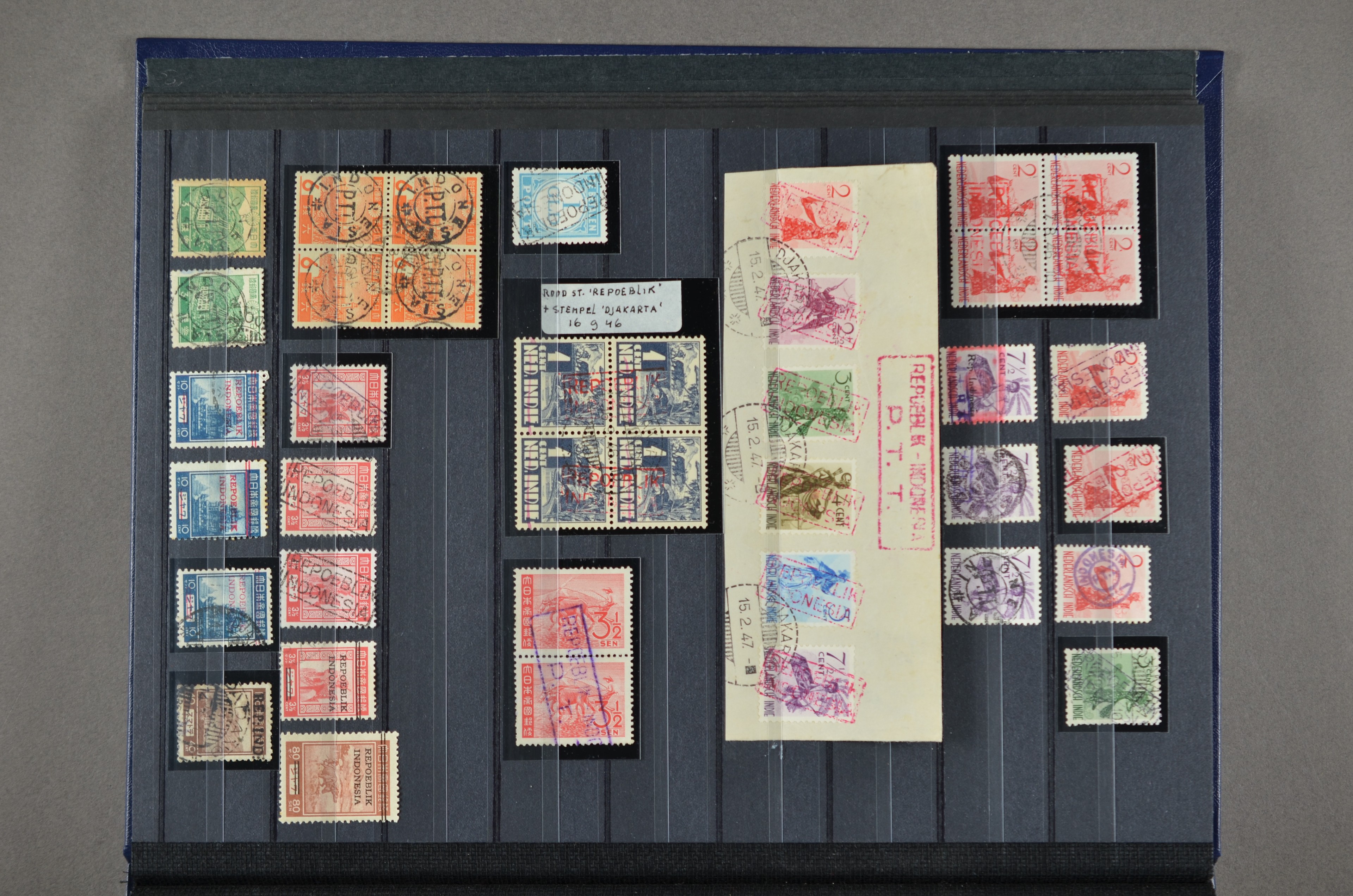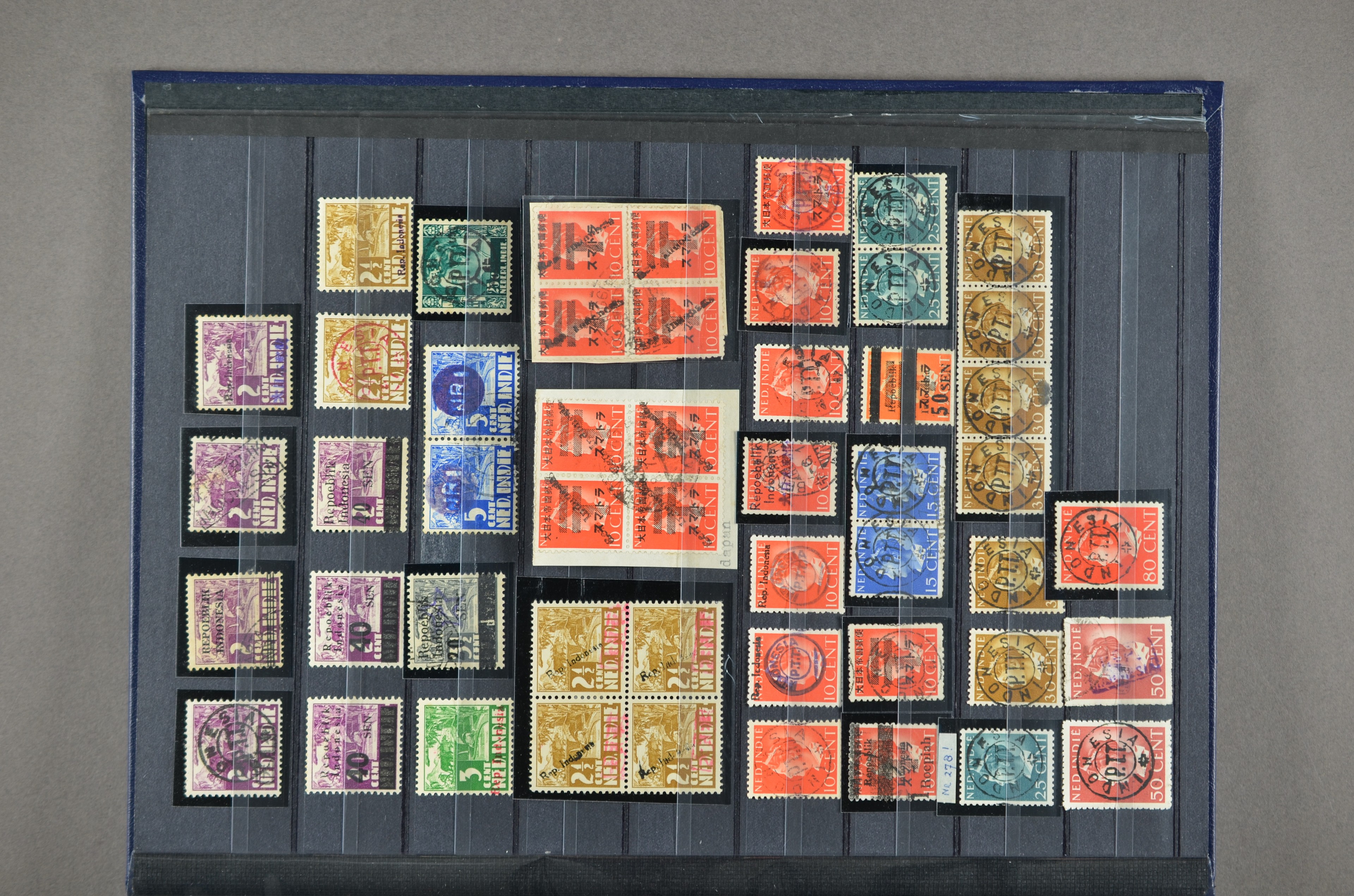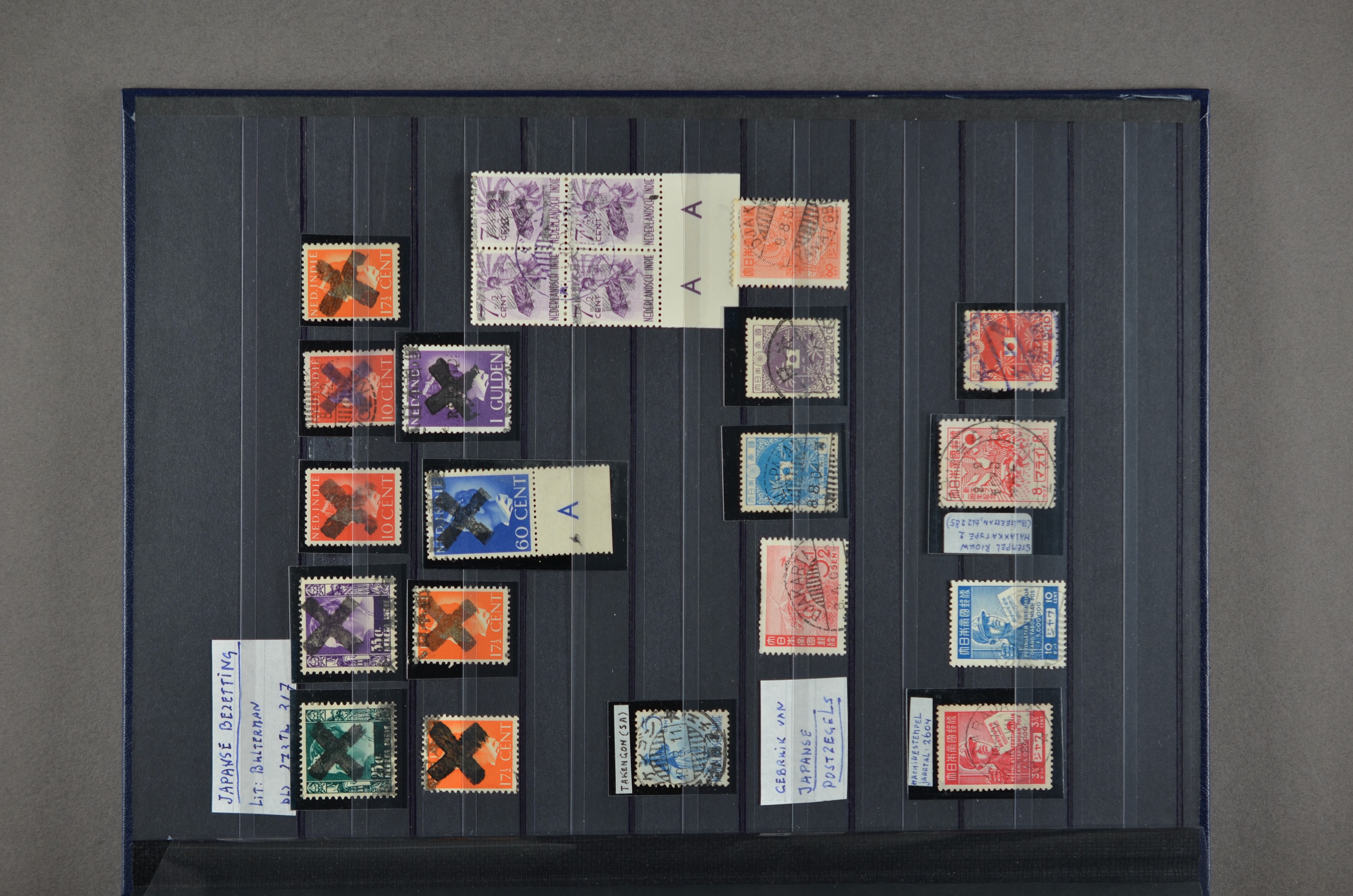 JAPANSE BEZETTING & INDONESIË, bescheiden o/* verzameling 1942-1949 met een aardige verscheidenheid aan opdrukken en enkele goede stempels