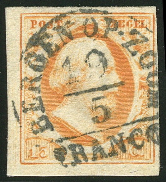BERGEN OP-ZOOM A (EY.250) op 15 cent nr. 3b. Wat smal tot zeer breed gerand prachtex. met voor dit stempel een ideale afdruk